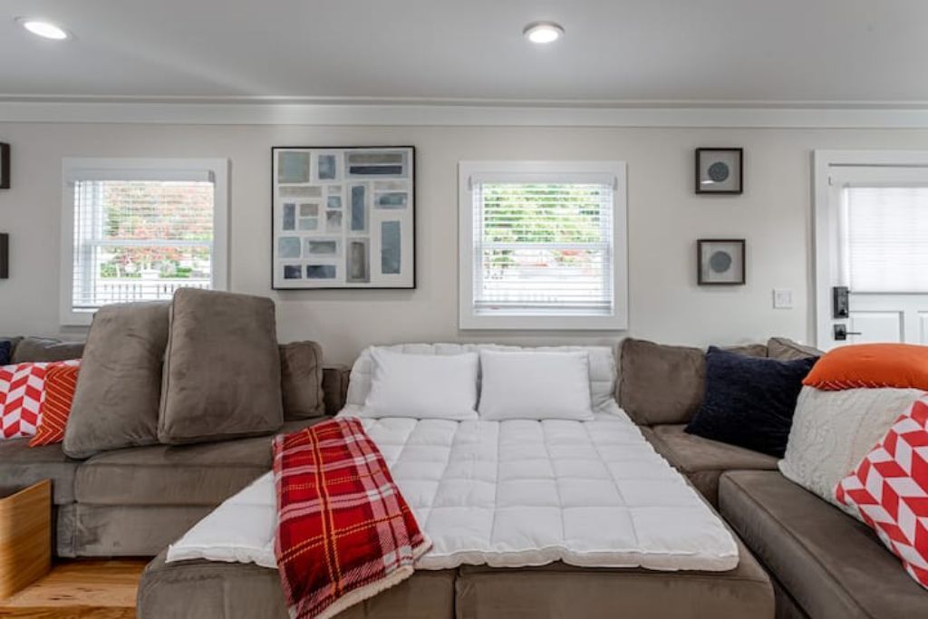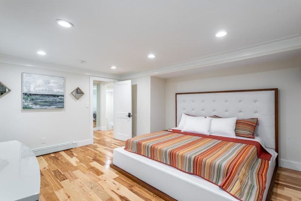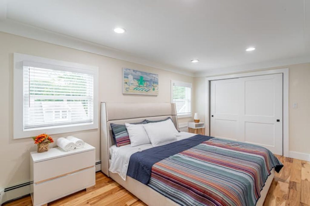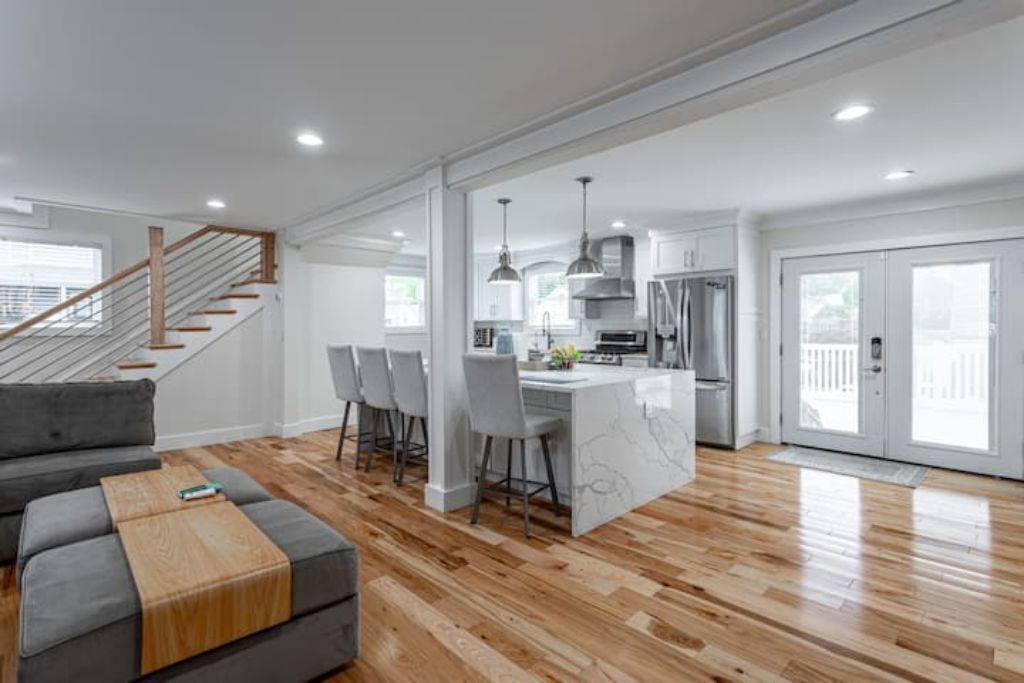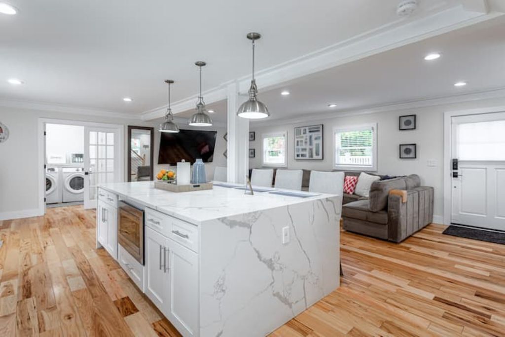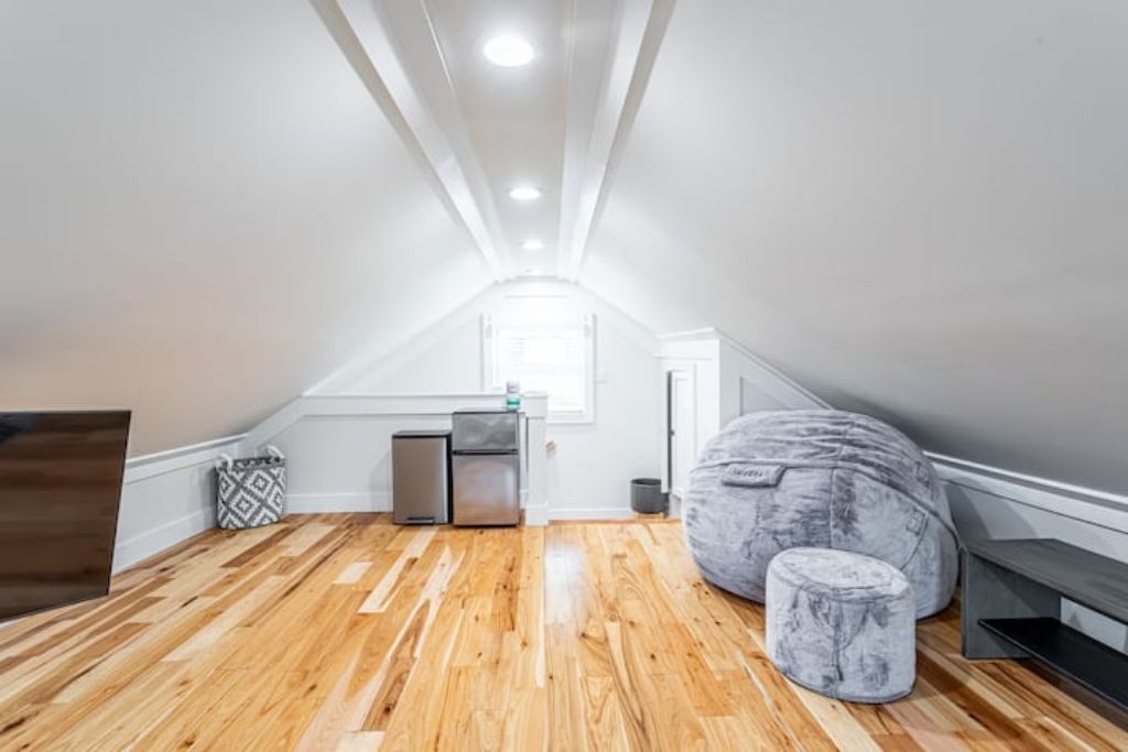 Hamptons Style Living Walk to Cafe Deck Nestled along a quiet street in a leafy neighbourhood is this picture-perfect home with chic Hamptons style and modern contemporary design.Inside you’ll have space to entertain with open living, a gourmet kitchen, 3 beautiful bedrooms, 2 sparkling bathrooms, a charming wrap-around patio, and a decked balcony.Stay just steps from a café, many restaurants, a mall, and Walgreens, or take a 5 min drive into the city giving you the ideal base to experience everything the area has to offer.The spaceMake your way through the front gate and into the home using the easy keyless lock where you are instantly greeted with style, elegance, and modern design from the moment you step through the door.Relax in the inviting living area on the modular lounge that surrounds the wall-mounted smart TV with access to all your favourite streaming apps to keep everyone entertained. The sofa can also be converted into a comfortable bed for an additional two guests.Step through into the large Hamptons-style chef’s kitchen that makes entertaining a breeze with high-end appliances and all the cookware, dinnerware, and utensils you could need. You’ll also have access to a full water filtration system that offers healthy alkaline water from every tap.Enjoy a freshly brewed cup of coffee from the fully stocked coffee station with a selection of tea, coffee and sweeteners then sit up at the large breakfast bar island as you keep the chef company.There are three generous bedrooms within the home that each offer luxuriously large king beds topped in soft, quality linen and plenty of space to unpack and make yourself right at home.The master suite features a large wall-mounted tv – perfect for a movie night tucked up in bed, bedroom two offers view out over the neighbourhood while bedroom three is up in the stylish loft space and has its own mini kitchenette, a beanbag chair, and a roof-mounted TV.You’ll find two sparkling bathrooms on each of the two floors. Bathroom one offers a luxe spa-like experience with a custom floating vanity, a smart toilet and a large walk-in shower equipped with a multi-jet rain shower unit. The second bathroom is located upstairs, is just as lavish and includes a full-size bath with all the essentials provided for you.Guests also have full access to the laundry downstairs with a large washing machine and dryer along with complimentary detergent so you can pack light and wash on the go.On a sunny day step out onto the expansive decked balcony where you can relax on the outdoor lounge and take in the views of the neighbourhood. There is a gorgeous wrap-around patio giving you many places to sit with your morning coffee surrounded by colourful planters and leafy street trees.So, if you’re looking for the perfect place to call home just steps away from a charming café and only a short walk to Huntington Commons Mall, you can’t go past this spacious, picture-perfect home for your next family or group getaway – We can’t wait to welcome you!For those with larger groups, we also offer an exclusively designed basement-level unit that can also be reserved. This option extends the available space, giving you even more room for your family and friends to unwind and relax.(STARTING 12/1/2023)Guest accessGuests have private access to the entire home and outdoor areas including the wrap-around patio are decked balcony as well as free Wi-Fi, free parking, complimentary coffee access to a washing machine and dryer in the laundry......Other details to note:Please note that there is a basement-level unit below the home so we ask that any loud noises like the TV or music to be kept to a minimum out of respect to the guests below and to respect the quiet time after 10pm.We would also appreciate if guests could remove their shoes before upon entering the home and to refrain from running, as you can imagine this sound travels downstairs and would be very disruptive! We strive to make sure each and every guest has a memorable stay and would really appreciate if you could take these small steps to ensure everyone enjoys their time in beautiful Huntington.