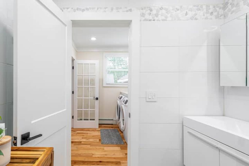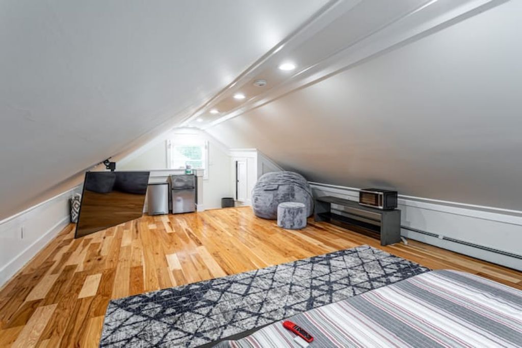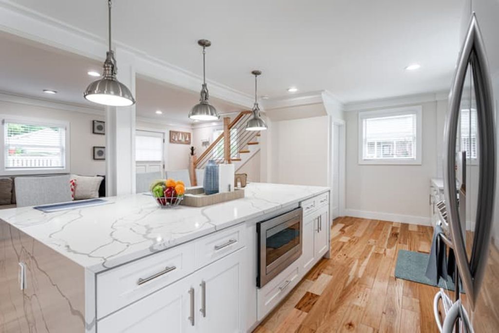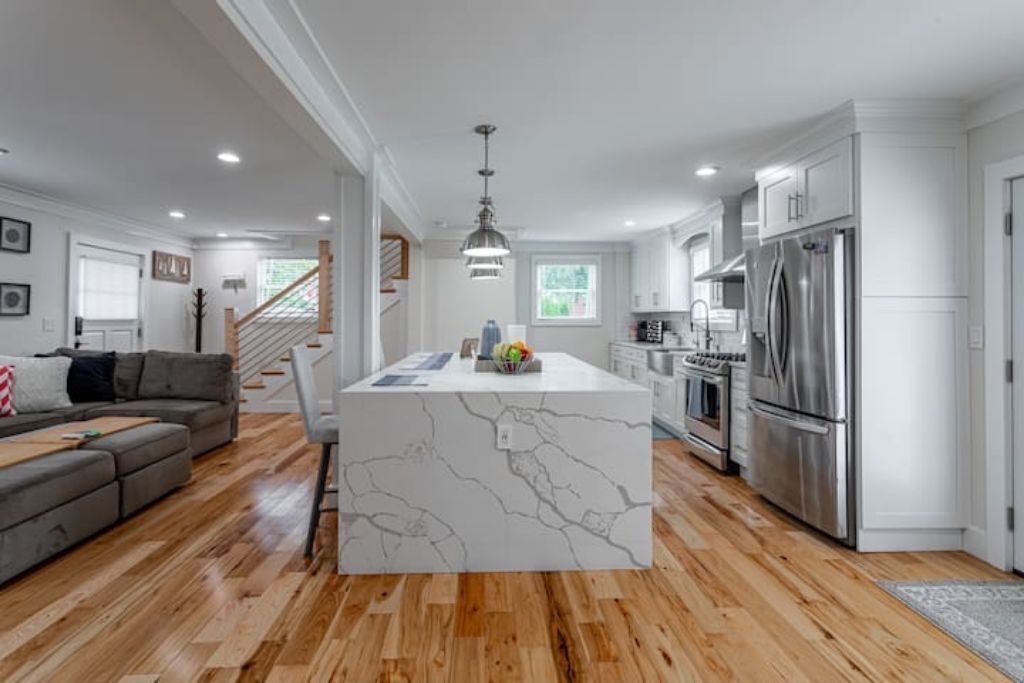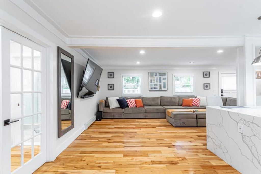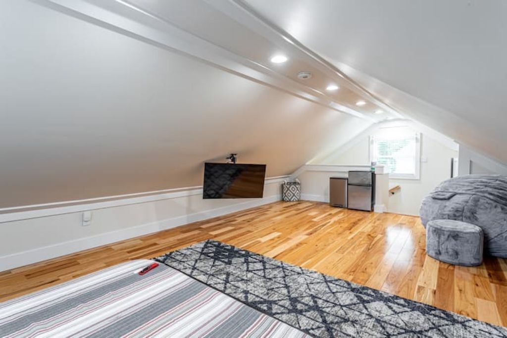 Hamptons Style Living Walk to Cafe Deck Nestled along a quiet street in a leafy neighbourhood is this picture-perfect home with chic Hamptons style and modern contemporary design.Inside you’ll have space to entertain with open living, a gourmet kitchen, 3 beautiful bedrooms, 2 sparkling bathrooms, a charming wrap-around patio, and a decked balcony.Stay just steps from a café, many restaurants, a mall, and Walgreens, or take a 5 min drive into the city giving you the ideal base to experience everything the area has to offer.The spaceMake your way through the front gate and into the home using the easy keyless lock where you are instantly greeted with style, elegance, and modern design from the moment you step through the door.Relax in the inviting living area on the modular lounge that surrounds the wall-mounted smart TV with access to all your favourite streaming apps to keep everyone entertained. The sofa can also be converted into a comfortable bed for an additional two guests.Step through into the large Hamptons-style chef’s kitchen that makes entertaining a breeze with high-end appliances and all the cookware, dinnerware, and utensils you could need. You’ll also have access to a full water filtration system that offers healthy alkaline water from every tap.Enjoy a freshly brewed cup of coffee from the fully stocked coffee station with a selection of tea, coffee and sweeteners then sit up at the large breakfast bar island as you keep the chef company.There are three generous bedrooms within the home that each offer luxuriously large king beds topped in soft, quality linen and plenty of space to unpack and make yourself right at home.The master suite features a large wall-mounted tv – perfect for a movie night tucked up in bed, bedroom two offers view out over the neighbourhood while bedroom three is up in the stylish loft space and has its own mini kitchenette, a beanbag chair, and a roof-mounted TV.You’ll find two sparkling bathrooms on each of the two floors. Bathroom one offers a luxe spa-like experience with a custom floating vanity, a smart toilet and a large walk-in shower equipped with a multi-jet rain shower unit. The second bathroom is located upstairs, is just as lavish and includes a full-size bath with all the essentials provided for you.Guests also have full access to the laundry downstairs with a large washing machine and dryer along with complimentary detergent so you can pack light and wash on the go.On a sunny day step out onto the expansive decked balcony where you can relax on the outdoor lounge and take in the views of the neighbourhood. There is a gorgeous wrap-around patio giving you many places to sit with your morning coffee surrounded by colourful planters and leafy street trees.So, if you’re looking for the perfect place to call home just steps away from a charming café and only a short walk to Huntington Commons Mall, you can’t go past this spacious, picture-perfect home for your next family or group getaway – We can’t wait to welcome you!For those with larger groups, we also offer an exclusively designed basement-level unit that can also be reserved. This option extends the available space, giving you even more room for your family and friends to unwind and relax.(STARTING 12/1/2023)Guest accessGuests have private access to the entire home and outdoor areas including the wrap-around patio are decked balcony as well as free Wi-Fi, free parking, complimentary coffee access to a washing machine and dryer in the laundry......Other details to note:Please note that there is a basement-level unit below the home so we ask that any loud noises like the TV or music to be kept to a minimum out of respect to the guests below and to respect the quiet time after 10pm.We would also appreciate if guests could remove their shoes before upon entering the home and to refrain from running, as you can imagine this sound travels downstairs and would be very disruptive! We strive to make sure each and every guest has a memorable stay and would really appreciate if you could take these small steps to ensure everyone enjoys their time in beautiful Huntington.