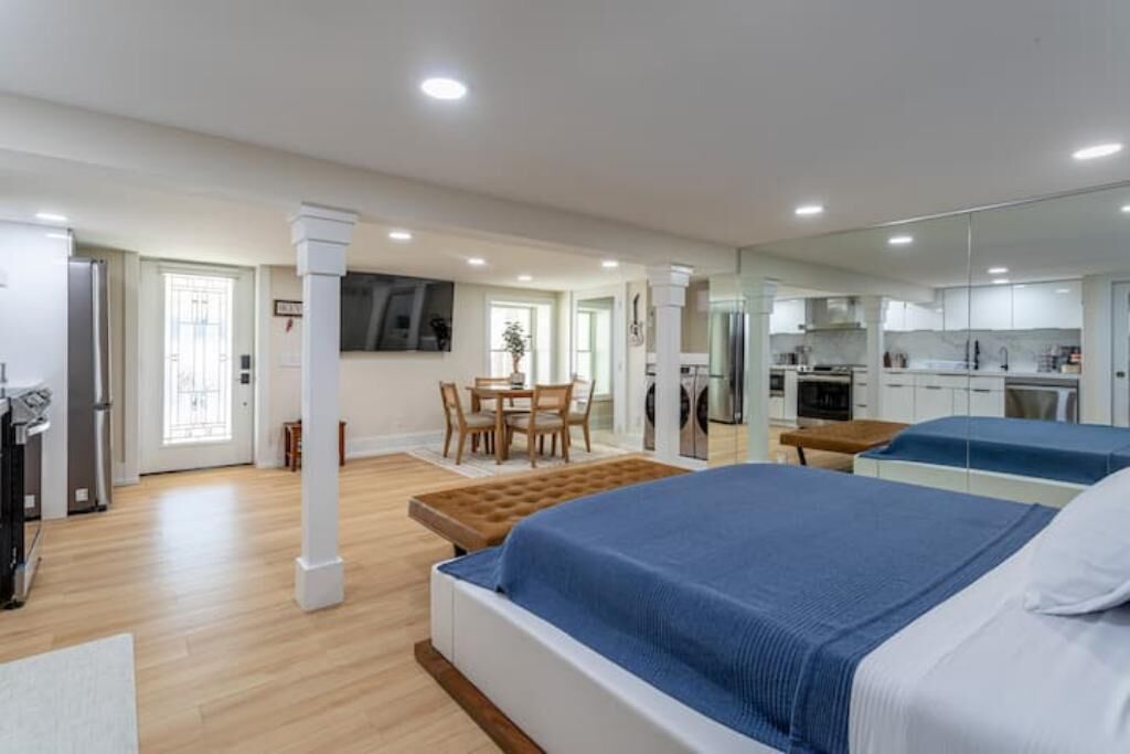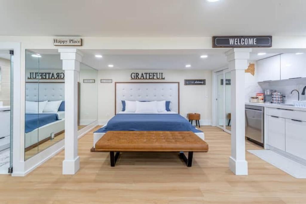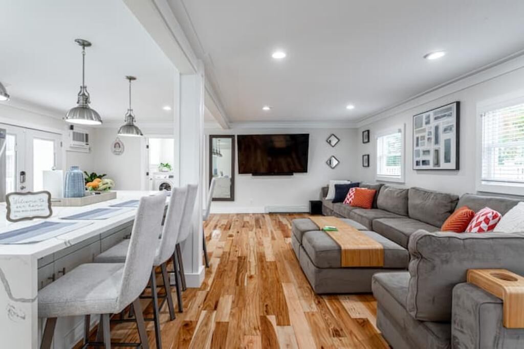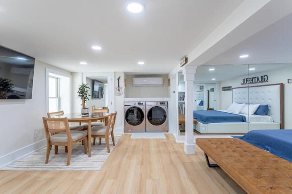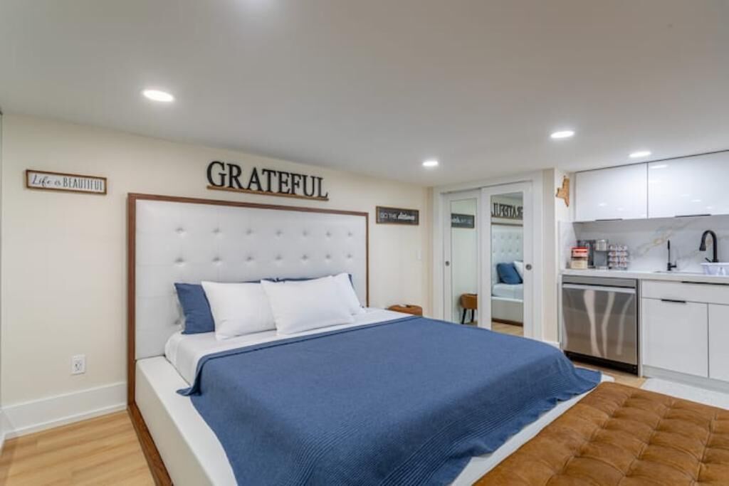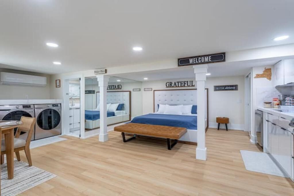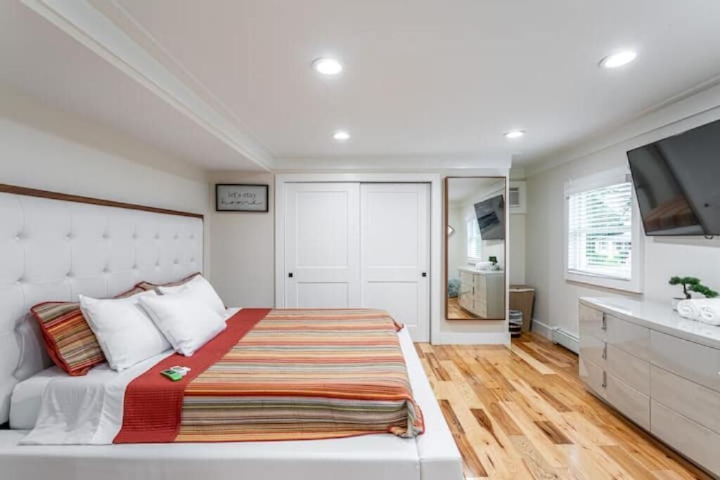Two for One Luxury Home & Studio Pre Weddings SUMMARY : If you’re looking for style, space, modern design and high end everything coupled with an amazing central location and picture perfect outdoor spaces – then this Hamptons style home and luxe studio is for you.Ideal for groups with room for 12, the home and studio are perfect for your pre wedding location, a family vacation or a special getaway.You’ll be steps from restaurants, cafes and Walgreens or drive just 5 mins to Walt Whitman Mall with Bloomingdale’s, Sax Fifth Ave and so much more!SPACE SECTION: Walk along the landscaped gardens and check yourself into the grand, Hamptons style home or take the stairs down to the gorgeous, designer studio with both offering luxury living at its finest.With modern open concept living, both spaces invite you in to relax. In the main home you’ll find a large modular sofa where you can sit back and stream a movie on the big screen or gather together with friends. The living area can also be used as an additional sleeping space with a comfortable sofa bed.With not one, but two gourmet kitchens there is sure to be some decadent dining with one home whipping up dinner and the other dessert. The kitchens come fully equipped with stainless steel appliances, a full-size fridge/freezer, a Keurig coffee bar and all the cookware, dinnerware and utensils you could need.You’ll also have access to a full water filtration system that offers healthy alkaline water from every tap.Eat together in the elegant dining areas or if a night out is on the cards, drive just 5 minutes into the heart of Huntington and experience everything from fine dining to local pizzerias and everything inbetween.Across the two homes you’ll find four generous bedrooms with each offering luxuriously large king beds topped in soft, quality linen and plenty of space to unpack and make yourself at home. The master suite features a large wall-mounted TV – perfect for a movie night tucked up in bed, bedroom two offers views out over the neighborhood while bedroom three is up in the stylish loft space and has a mini kitchenette, a beanbag chair and a roof-mounted TV.The fourth bedroom encompasses the stylish studio which is located below the main home making it ideal for couples wanting their own space or to separate the bride and groom before their big day.There are two sparkling bathrooms on each of the two floors and another in the studio. Each gives you a luxe spa-like experience with modern vanities, smart toilets and large walk in showers equipped with a multi-jet rain shower unit. The upstairs bathroom also includes a full-size bath and all the essentials for your stay.The two full size laundries across both homes feature large, family sized washing machines and dryers along with complimentary detergent so you can leave feeling fresh with a suitcase packed full of clean clothes.On a sunny day step out onto the expansive decked balcony where you can relax on the outdoor lounge and take in the views of the neighborhood or enjoy the gorgeous wrap-around paved patio and the shady outdoor area by the studio entrance giving you many places to sit with your morning coffee surrounded by colorful planters and leafy street trees.So if you’re looking for the perfect place to call home with a charming café right on your doorstep, only minutes to the Walt Whitman Mall and Downtown, you can’t go past this spacious, picture-perfect home and studio for your next getaway, wedding or special occasion.OTHER THINGS TO NOTE: If you are a bride or groom wanting to book the home and studio to stay at before/after your wedding, feel free to get in contact to arrange your special day with us.GUEST ACCESS: Guests have private access to the Hamptons style home as well as the exclusively designed basement-level studio along with all the outdoor areas including a deck and patio. Should you wish to use the home and Studio as a place to get ready and take photos before a wedding or for a small intimate gathering, please do not hesitate to contact us for availability inquiries. INTERACTION WITH GUESTS: We strive to make sure your time at the home and studio is relaxing and enjoyable and are always available during your stay if there are any questions or for any recommendations on what to do and see in the area.NEIGHBORHOOD: Welcome to the charming neighborhood in beautiful Huntington Station, a peaceful, quiet community that is perfect for guests who are seeking a relaxing space only minutes from all the action. Here are some of the things guests can see, do, and discover in and around the area:☆ See:Walt Whitman Birthplace State Historic Site: Only 5 minutes away, guests can visit the birthplace of one of America's most influential poets.Oheka Castle: Located just 20 minutes away, guests can visit one of the largest mansions in the country and admire its magnificent architecture and beautiful gardens.Cold Spring Harbor Fish Hatchery & Aquarium: Only 10 minutes away, guests can discover various species of fish and other aquatic creatures.☆ Do:Visit Huntington Village: Located just 15 minutes away, guests can explore the charming downtown area, which is home to a variety of boutiques, cafes, and restaurants.Enjoy a day at the beach: Guests can take a short 20-minute drive to nearby Jones Beach, one of Long Island's most beautiful beaches.Take a hike: For guests who enjoy hiking, there are several beautiful trails located within 30 minutes of the apartment, including Caumsett State Historic Park Preserve and the beautiful Cold Spring Harbor State Park.☆ Discover:Gold Coast Mansions: Located within 30 minutes of the home, guests can discover the grandeur and opulence of the Gilded Age by visiting the beautiful mansions that were once the homes of the wealthy and influential.Adventureland: Just 15 minutes away, guests can have a fun-filled day with their families at this exciting amusement park.Nassau Veterans Memorial Coliseum: Located just 2