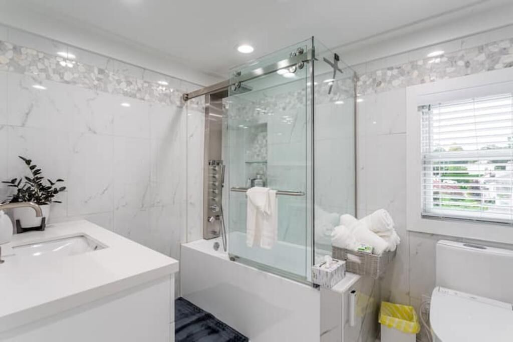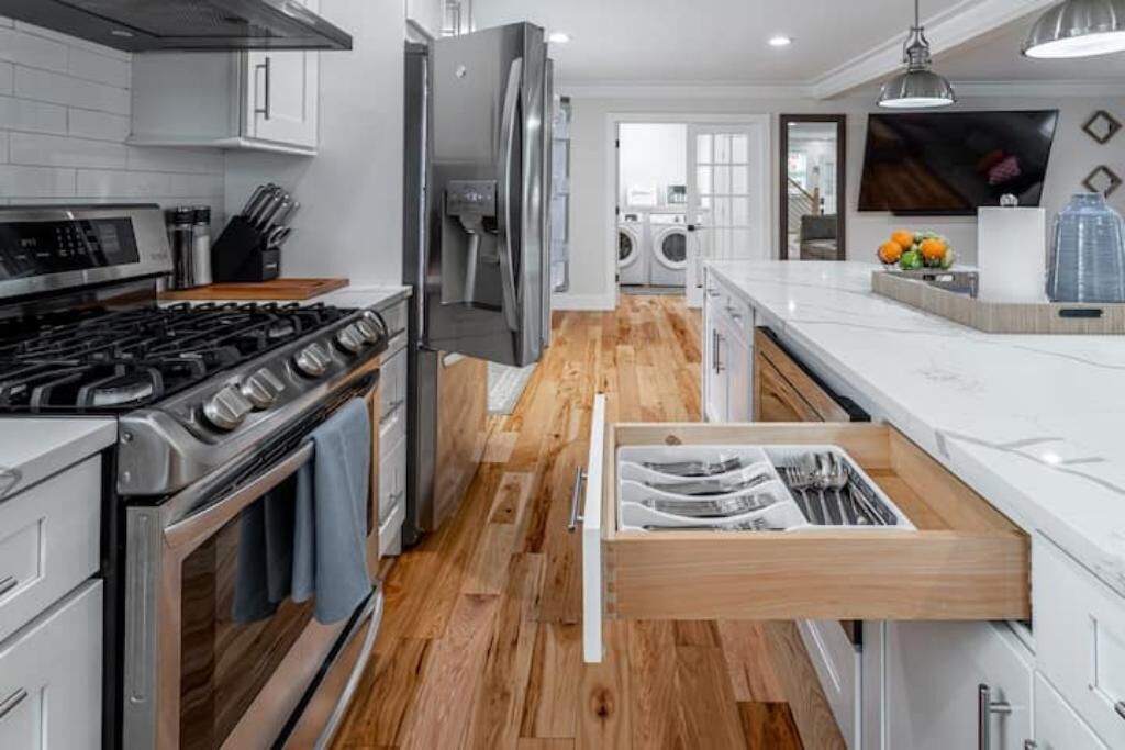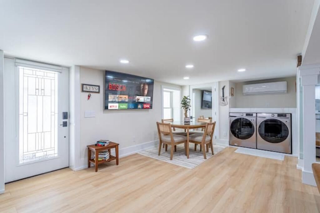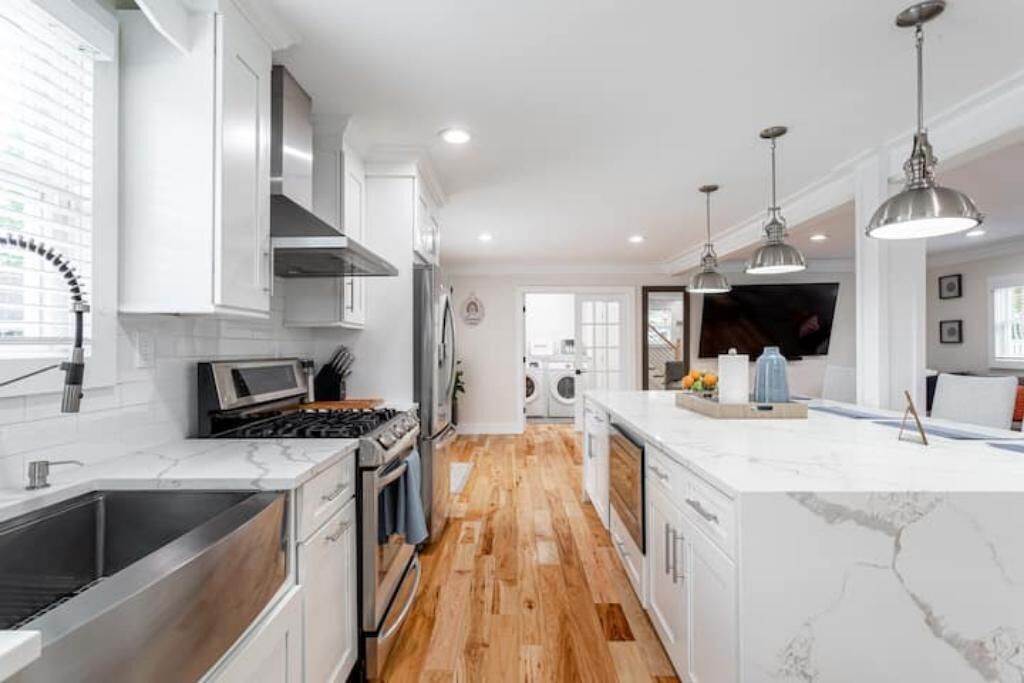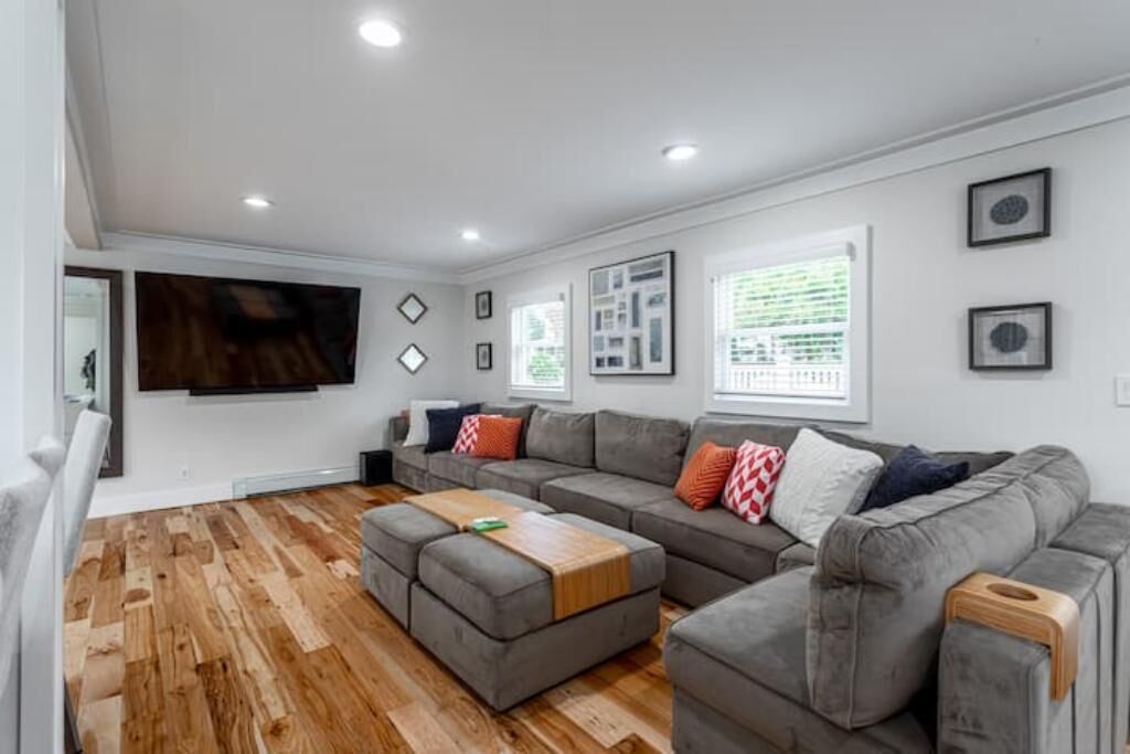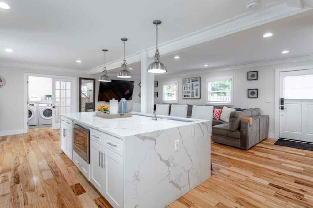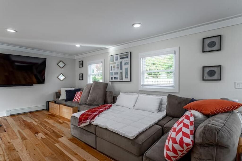 Two for One Luxury Home & Studio Pre Weddings SUMMARY : If you’re looking for style, space, modern design and high end everything coupled with an amazing central location and picture perfect outdoor spaces – then this Hamptons style home and luxe studio is for you.Ideal for groups with room for 12, the home and studio are perfect for your pre wedding location, a family vacation or a special getaway.You’ll be steps from restaurants, cafes and Walgreens or drive just 5 mins to Walt Whitman Mall with Bloomingdale’s, Sax Fifth Ave and so much more!SPACE SECTION: Walk along the landscaped gardens and check yourself into the grand, Hamptons style home or take the stairs down to the gorgeous, designer studio with both offering luxury living at its finest.With modern open concept living, both spaces invite you in to relax. In the main home you’ll find a large modular sofa where you can sit back and stream a movie on the big screen or gather together with friends. The living area can also be used as an additional sleeping space with a comfortable sofa bed.With not one, but two gourmet kitchens there is sure to be some decadent dining with one home whipping up dinner and the other dessert. The kitchens come fully equipped with stainless steel appliances, a full-size fridge/freezer, a Keurig coffee bar and all the cookware, dinnerware and utensils you could need.You’ll also have access to a full water filtration system that offers healthy alkaline water from every tap.Eat together in the elegant dining areas or if a night out is on the cards, drive just 5 minutes into the heart of Huntington and experience everything from fine dining to local pizzerias and everything inbetween.Across the two homes you’ll find four generous bedrooms with each offering luxuriously large king beds topped in soft, quality linen and plenty of space to unpack and make yourself at home. The master suite features a large wall-mounted TV – perfect for a movie night tucked up in bed, bedroom two offers views out over the neighborhood while bedroom three is up in the stylish loft space and has a mini kitchenette, a beanbag chair and a roof-mounted TV.The fourth bedroom encompasses the stylish studio which is located below the main home making it ideal for couples wanting their own space or to separate the bride and groom before their big day.There are two sparkling bathrooms on each of the two floors and another in the studio. Each gives you a luxe spa-like experience with modern vanities, smart toilets and large walk in showers equipped with a multi-jet rain shower unit. The upstairs bathroom also includes a full-size bath and all the essentials for your stay.The two full size laundries across both homes feature large, family sized washing machines and dryers along with complimentary detergent so you can leave feeling fresh with a suitcase packed full of clean clothes.On a sunny day step out onto the expansive decked balcony where you can relax on the outdoor lounge and take in the views of the neighborhood or enjoy the gorgeous wrap-around paved patio and the shady outdoor area by the studio entrance giving you many places to sit with your morning coffee surrounded by colorful planters and leafy street trees.So if you’re looking for the perfect place to call home with a charming café right on your doorstep, only minutes to the Walt Whitman Mall and Downtown, you can’t go past this spacious, picture-perfect home and studio for your next getaway, wedding or special occasion.OTHER THINGS TO NOTE: If you are a bride or groom wanting to book the home and studio to stay at before/after your wedding, feel free to get in contact to arrange your special day with us.GUEST ACCESS: Guests have private access to the Hamptons style home as well as the exclusively designed basement-level studio along with all the outdoor areas including a deck and patio. Should you wish to use the home and Studio as a place to get ready and take photos before a wedding or for a small intimate gathering, please do not hesitate to contact us for availability inquiries. INTERACTION WITH GUESTS: We strive to make sure your time at the home and studio is relaxing and enjoyable and are always available during your stay if there are any questions or for any recommendations on what to do and see in the area.NEIGHBORHOOD: Welcome to the charming neighborhood in beautiful Huntington Station, a peaceful, quiet community that is perfect for guests who are seeking a relaxing space only minutes from all the action. Here are some of the things guests can see, do, and discover in and around the area:☆ See:Walt Whitman Birthplace State Historic Site: Only 5 minutes away, guests can visit the birthplace of one of America's most influential poets.Oheka Castle: Located just 20 minutes away, guests can visit one of the largest mansions in the country and admire its magnificent architecture and beautiful gardens.Cold Spring Harbor Fish Hatchery & Aquarium: Only 10 minutes away, guests can discover various species of fish and other aquatic creatures.☆ Do:Visit Huntington Village: Located just 15 minutes away, guests can explore the charming downtown area, which is home to a variety of boutiques, cafes, and restaurants.Enjoy a day at the beach: Guests can take a short 20-minute drive to nearby Jones Beach, one of Long Island's most beautiful beaches.Take a hike: For guests who enjoy hiking, there are several beautiful trails located within 30 minutes of the apartment, including Caumsett State Historic Park Preserve and the beautiful Cold Spring Harbor State Park.☆ Discover:Gold Coast Mansions: Located within 30 minutes of the home, guests can discover the grandeur and opulence of the Gilded Age by visiting the beautiful mansions that were once the homes of the wealthy and influential.Adventureland: Just 15 minutes away, guests can have a fun-filled day with their families at this exciting amusement park.Nassau Veterans Memorial Coliseum: Located just 2