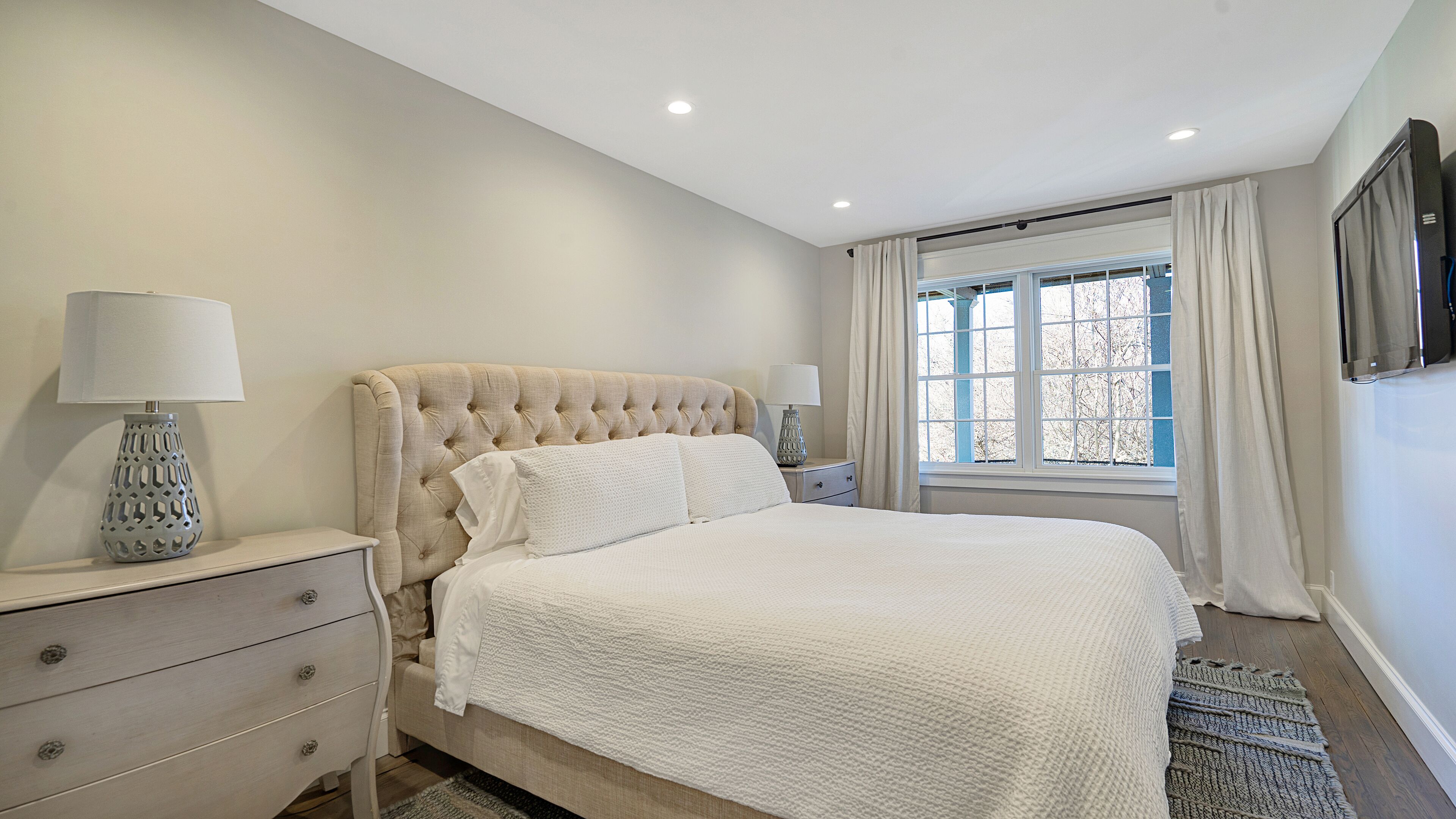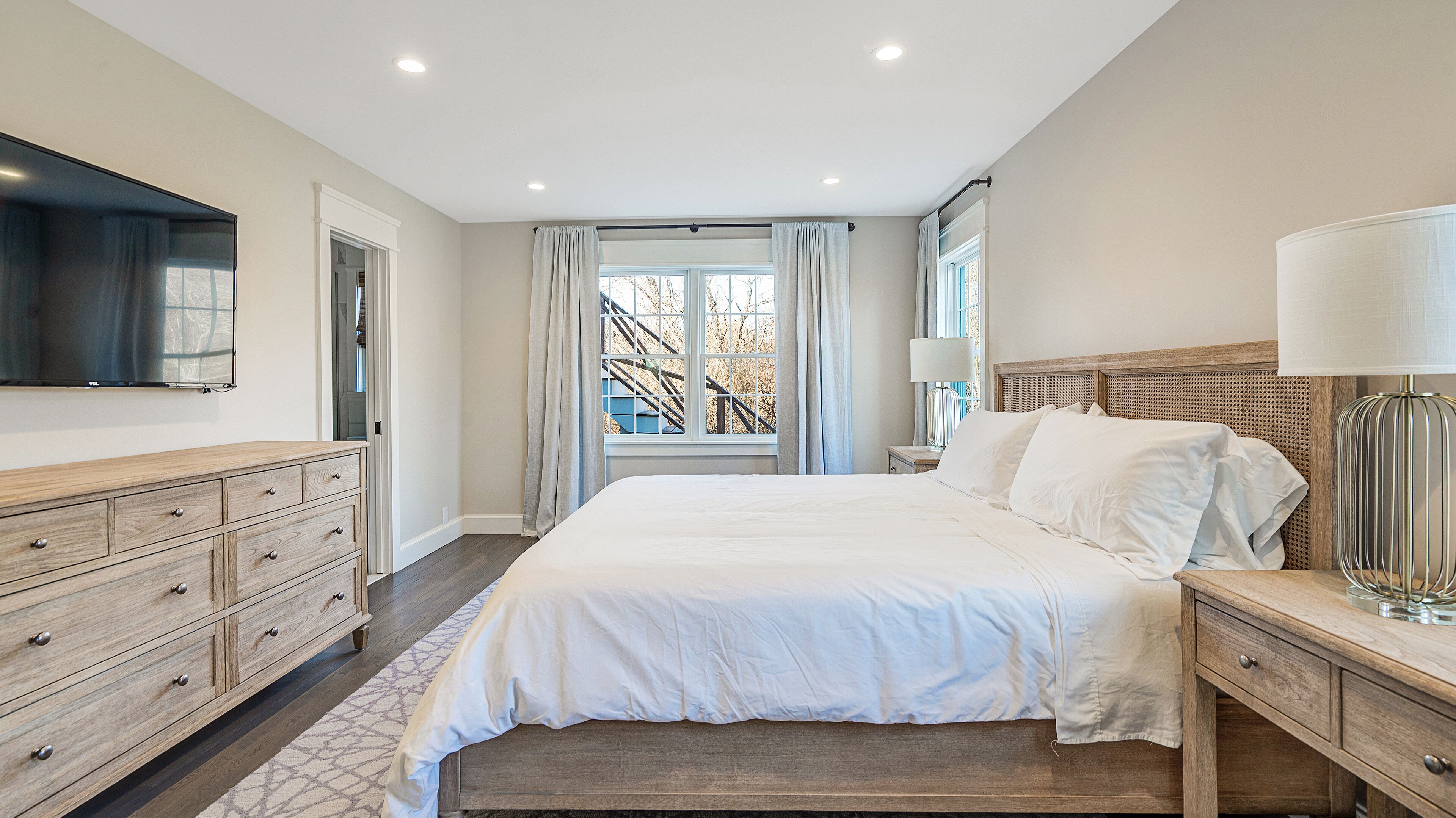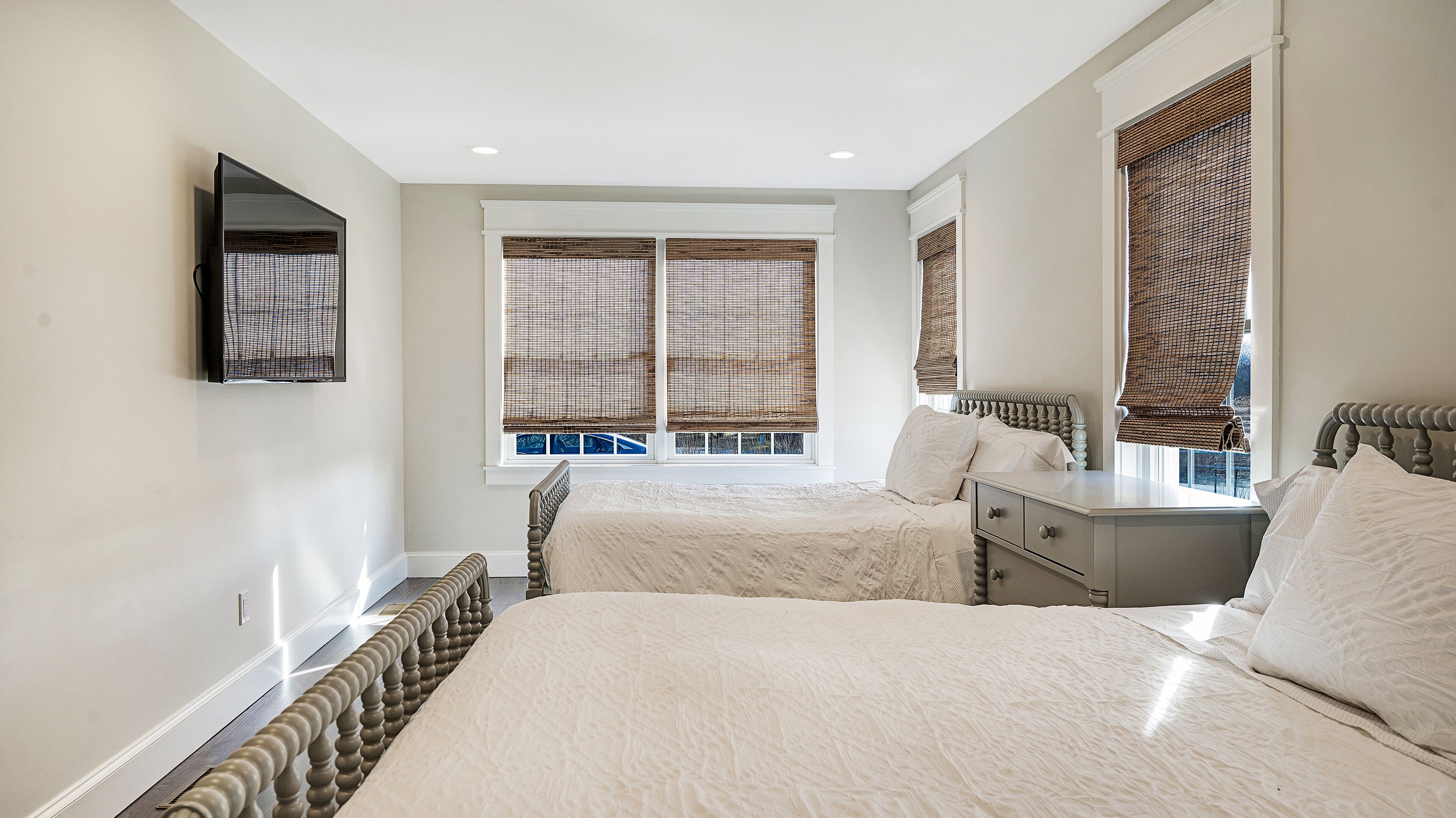 Fully Renovated & Luxurious Montauk Beach House Fully renovated in 2019, this 2,500 square foot private home features a professional chef's kitchen, 3 or 4 spacious bedrooms with sleeping for either 6 or 10 (can be rented either way), 3.5 luxurious bathrooms, an inviting outdoor shower (hot and cold water), wrap around decking offering sunset views, and comfortable living space for your entire group. We offer the home as either a 3 bedroom (sleeps 6) or a 4 bedroom (sleeps 10). The pricing quoted is for the 4-BR house; contact house if you would like a quote without the fourth bedroom (reserved for parties of 6 or smaller). The home is conveniently located less than a mile from the beach and the Village of Montauk, and near all else that Montauk has to offer!This reverse layout home, with living space on the second floor and bedrooms on the first, offers significant natural light provided by 29 windows, over-sized sliding glass doors, and skylights. The second floor living area is an open floor plan with 14' cathedral ceilings accented with shiplap trim. The first floor includes two separate master suites (each with their own bathroom), two additional bedrooms, a full bathroom, and laundry. The renovation was completed with energy efficiency in mind, and the home is powered 100% by roof mounted solar panels.Sonos stereo system available in living room, dining room, kitchen, master bathroom, outdoor decking, and backyard / outdoor shower.Beds include 2 King, 1 Queen, and 2 Full beds.Outdoor decking include large teak dining table and teak chaise lounges. Gas BBQ available for guest use.No Share Rentals or Prom Parties - Minimum Age = 30. Town of East Hampton Code limits occupancy to no more than four unrelated guests. Town of East Hampton Code limits cars parked at home to no more than four.East Hampton Rental Registry Certificate # 24-565Instagram @themtkhouse