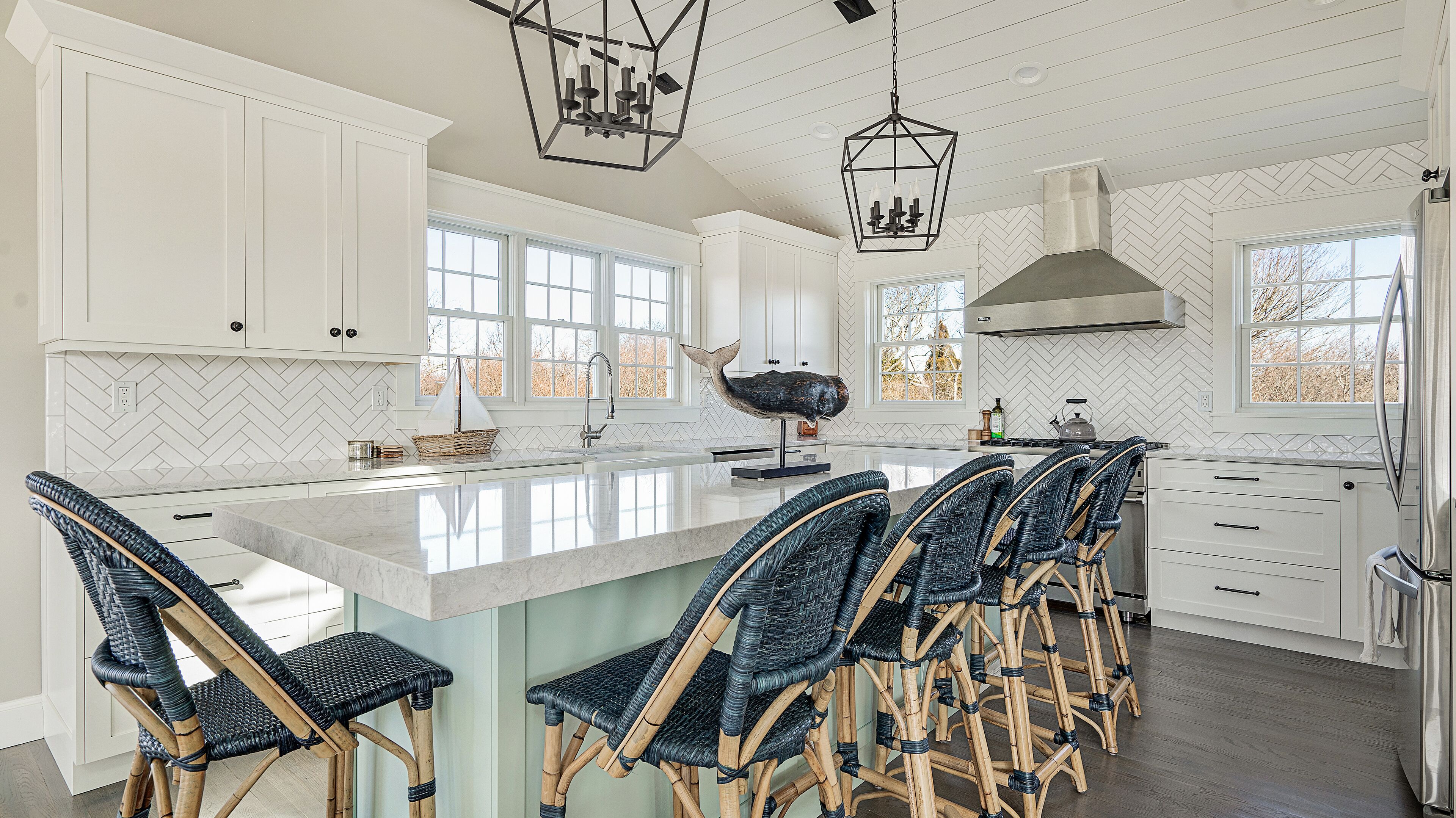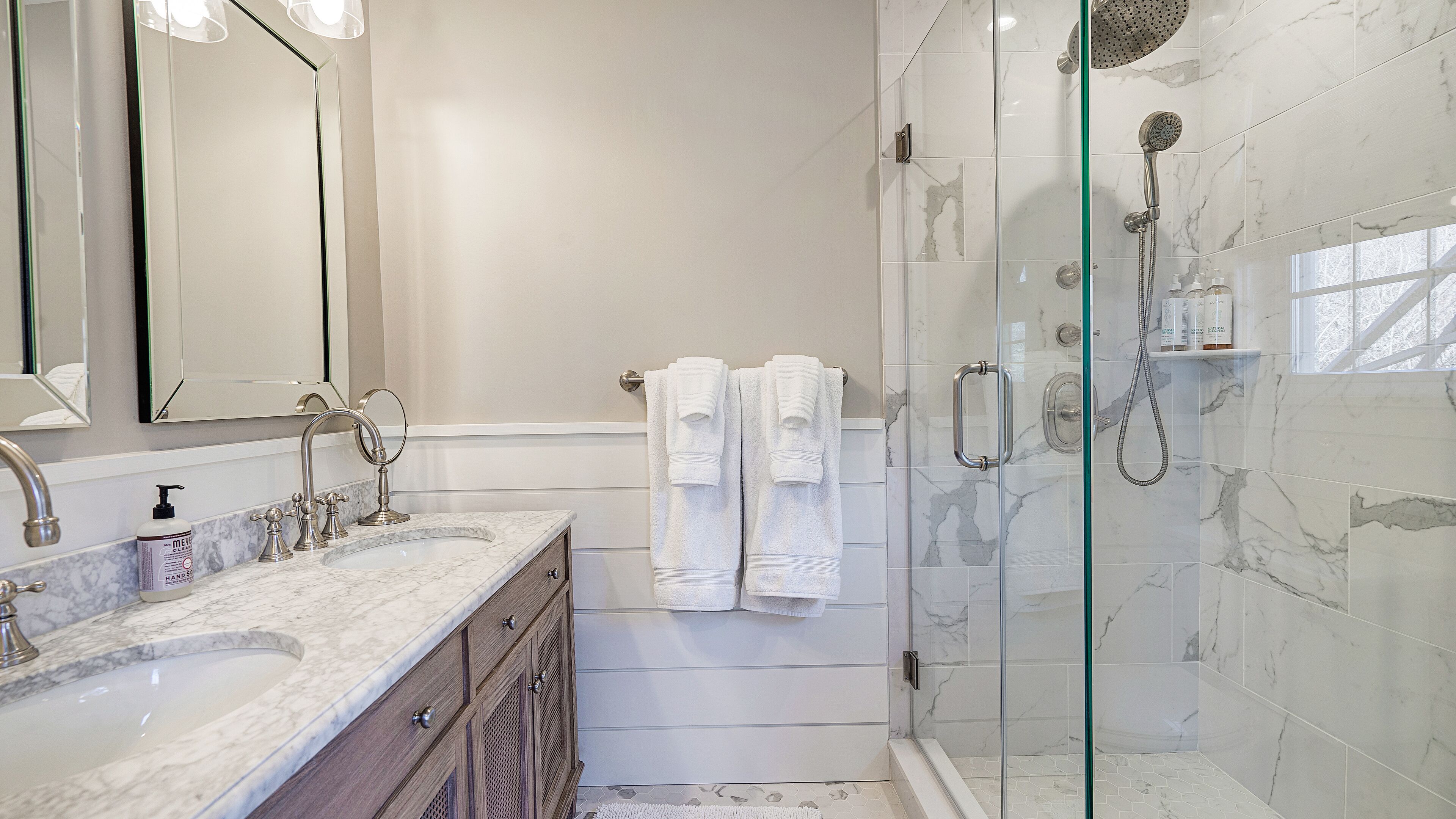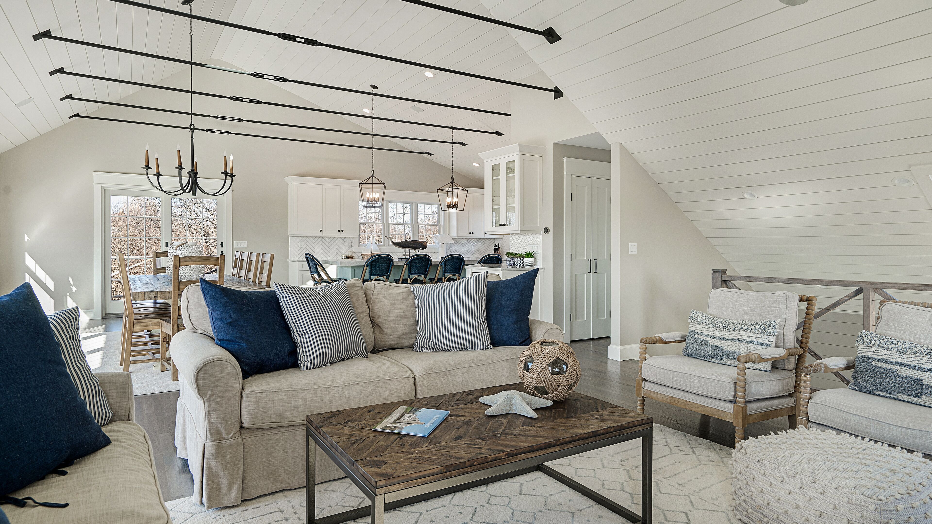 Fully Renovated & Luxurious Montauk Beach House Fully renovated in 2019, this 2,500 square foot private home features a professional chef's kitchen, 3 or 4 spacious bedrooms with sleeping for either 6 or 10 (can be rented either way), 3.5 luxurious bathrooms, an inviting outdoor shower (hot and cold water), wrap around decking offering sunset views, and comfortable living space for your entire group. We offer the home as either a 3 bedroom (sleeps 6) or a 4 bedroom (sleeps 10). The pricing quoted is for the 4-BR house; contact house if you would like a quote without the fourth bedroom (reserved for parties of 6 or smaller). The home is conveniently located less than a mile from the beach and the Village of Montauk, and near all else that Montauk has to offer!This reverse layout home, with living space on the second floor and bedrooms on the first, offers significant natural light provided by 29 windows, over-sized sliding glass doors, and skylights. The second floor living area is an open floor plan with 14' cathedral ceilings accented with shiplap trim. The first floor includes two separate master suites (each with their own bathroom), two additional bedrooms, a full bathroom, and laundry. The renovation was completed with energy efficiency in mind, and the home is powered 100% by roof mounted solar panels.Sonos stereo system available in living room, dining room, kitchen, master bathroom, outdoor decking, and backyard / outdoor shower.Beds include 2 King, 1 Queen, and 2 Full beds.Outdoor decking include large teak dining table and teak chaise lounges. Gas BBQ available for guest use.No Share Rentals or Prom Parties - Minimum Age = 30. Town of East Hampton Code limits occupancy to no more than four unrelated guests. Town of East Hampton Code limits cars parked at home to no more than four.East Hampton Rental Registry Certificate # 24-565Instagram @themtkhouse