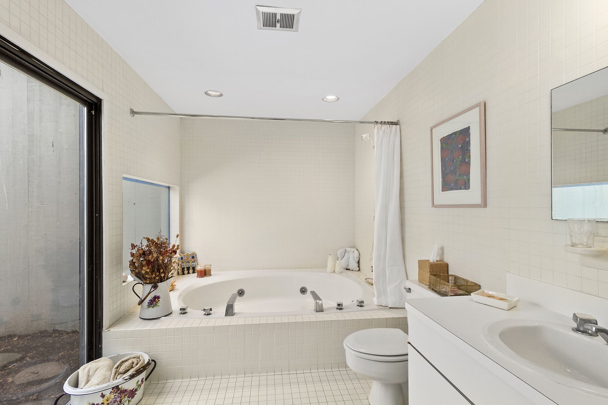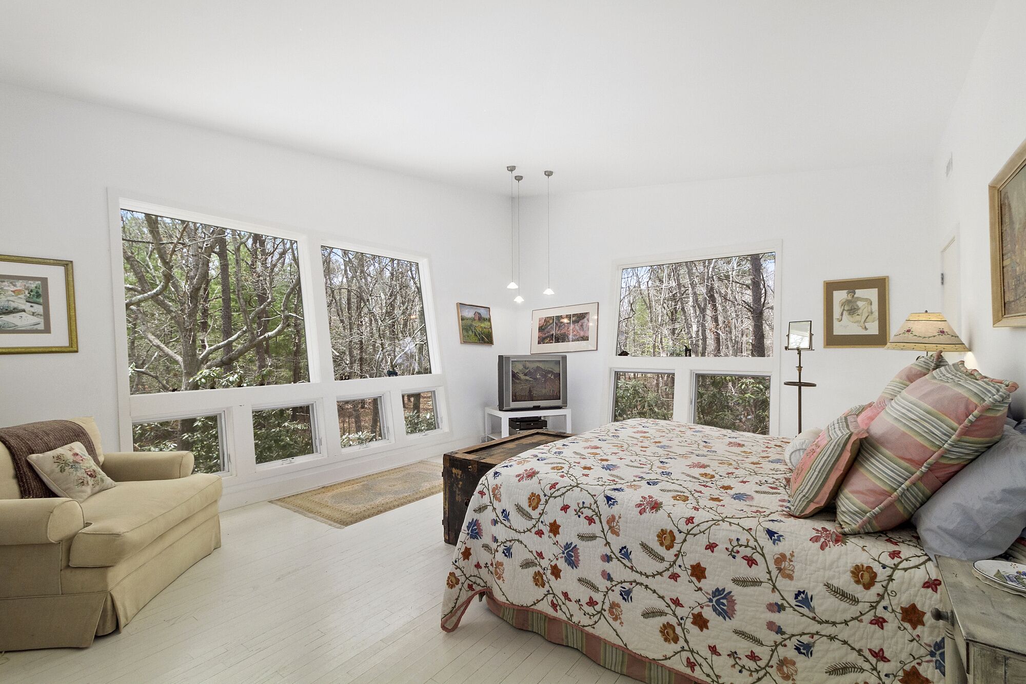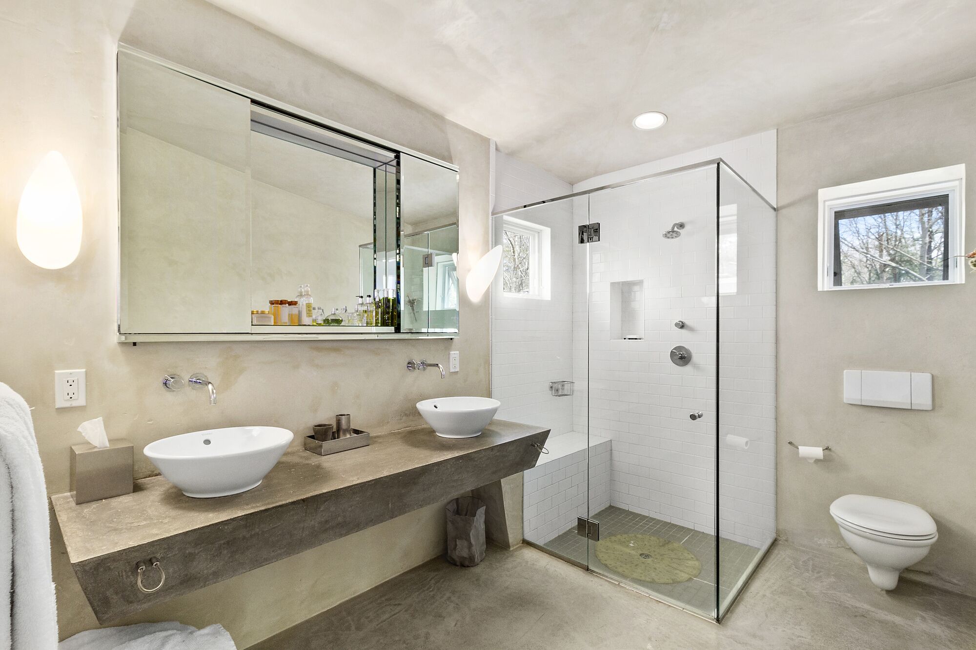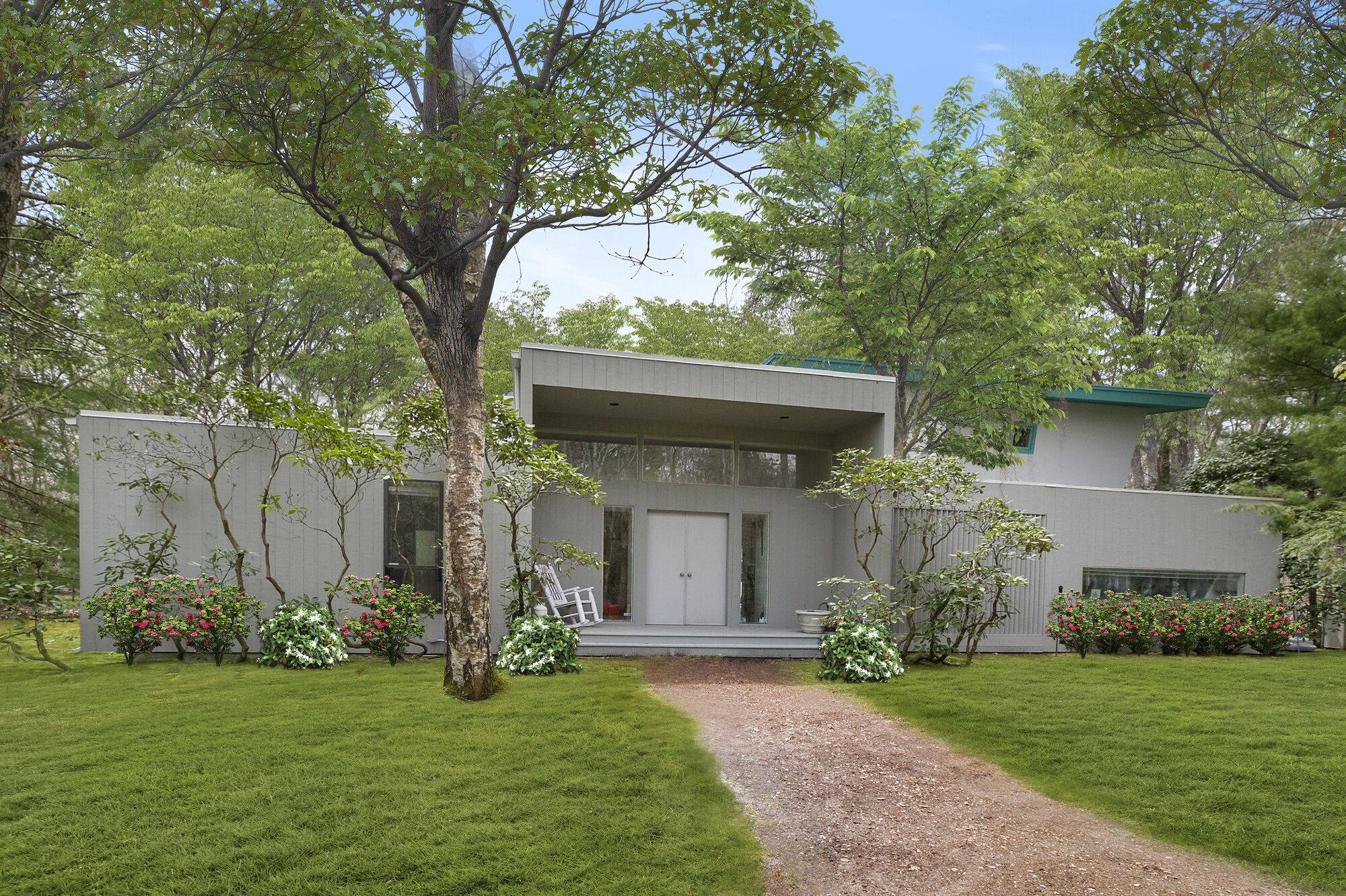 Beautiful Home in Wainscott, walking distance to the ocean with large pool. THE PROPERTY IN A SNAPSHOT5 Bedrooms, including 2 masters, 1 office/ den, which has a sofa-bed, 3 Bathrooms, Sleeps up to 12WHERE YOU’LL BE STAYINGOur home is in the ideal location. On a quiet street in Wainscott, it is located south of the highway in the sweet spot between Bridgehampton and East Hampton. It’s unique setting—walking or biking distance from the ocean beach, two blocks from the jitney stop and the shops in Wainscott, including the best seafood shop in the Hamptons—make it a true find. A large variety of excellent restaurants, tennis courts, civic center and a multiplex movie theater are within 5-7 minutes by car. The house is on a private, landscaped full acre with luxurious trees surrounding the spacious deck and large heated pool.A HOUSE TO ENJOYThe house is designed by the famous architect Philippe Starck, who intended to capture the surrounding nature of the house within its bedrooms. The upstairs master is super-large with a king-sized bed and overlooks the swimming pool. It opens up into the tree-filled surroundings giving you the feeling of sleeping in a treehouse. The den has a computer desk, printer and ample work space in addition to comfortable chairs and a pull-out sofa. The bathroom next to it contains a glass enclosed stall shower. The downstairs bedroom opens up to its own nature filled patio and has direct access to a large bathroom with jacuzzi. Two additional bedrooms are very comfortablThe living room is spacious and has a wood-burning fireplace to enjoy the nights you want to relax at home. Our home is filled with books providing you access to any reading you may want to do. The open kitchen will offer an opportunity to cook at home. Our kitchen is fully equipped with appliances, including a washer and dryer. You can receive guests for dinner in the dining room.There are televisions in every bedroom and in the den, excellent wifi throughout the house, a sound system on the main floor and deck area, with a collection of dvds in the cabinets. Numerous chaises and an umbrella surround our pool. We have a new large grill, a picnic table and benches and, in addition to our pool lights, small strung lighting across the deck providing for extra hours of outdoor evening dining. There is an outdoor shower for after beach and pool activities.The house has a washer and dryer, a dishwasher, picnic coolers, pool/ beach towels, bikes in the shed and access to the beach. Housekeeping service is available. OwnersBarbara J. Berg and Arnold SchlangerBarbara is an historian/ writer who has spent many hours writing in the sun-filled upstairs den. Arnold is an attorney and legal consultant. We fell in love with this house the moment we saw it because it manages to be secluded yet very central to all that we enjoy: the ocean, some of the best biking routes in the Hamptons, antique fairs, great shops, cultural centers and restaurants ranging from fun to fine-dining. The house is extremely well-built and quiet. Adults can read or relax or work but are always close enough to supervise children.Our own children are all married now, but they love coming to the house with their own children for all the reasons that our renters and guests love it.Guests provide their own mealsMin age of renters, 28Max occupancy 8Parties/ events not permittedPets not allowed unless specially cleared by owners.Amenities include: Two zone air conditioningInternetLinens Coffee and espresso makerMicrowaveToaster ovenUtensils, dishes, full kitchen--all appliancesBeautiful heated pooldeck chairsumbrellapicnic tablepool lights for evening outdoor diningLeisure activities include:AntiquingBoatingKayakingSurfingShoppingWalkingClose to: Numerous farm standsChurchesSynagogueUrgent Medical care facilityManicuristYoga studioFitness CenterHome storeBakeriesBagel StorePost OfficeSeafood Shop