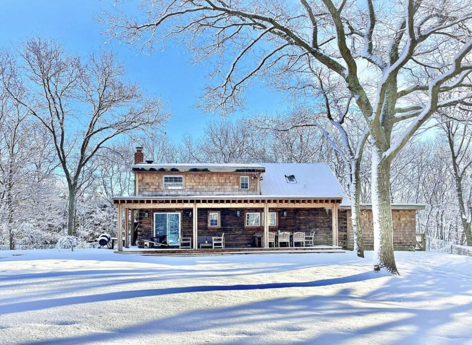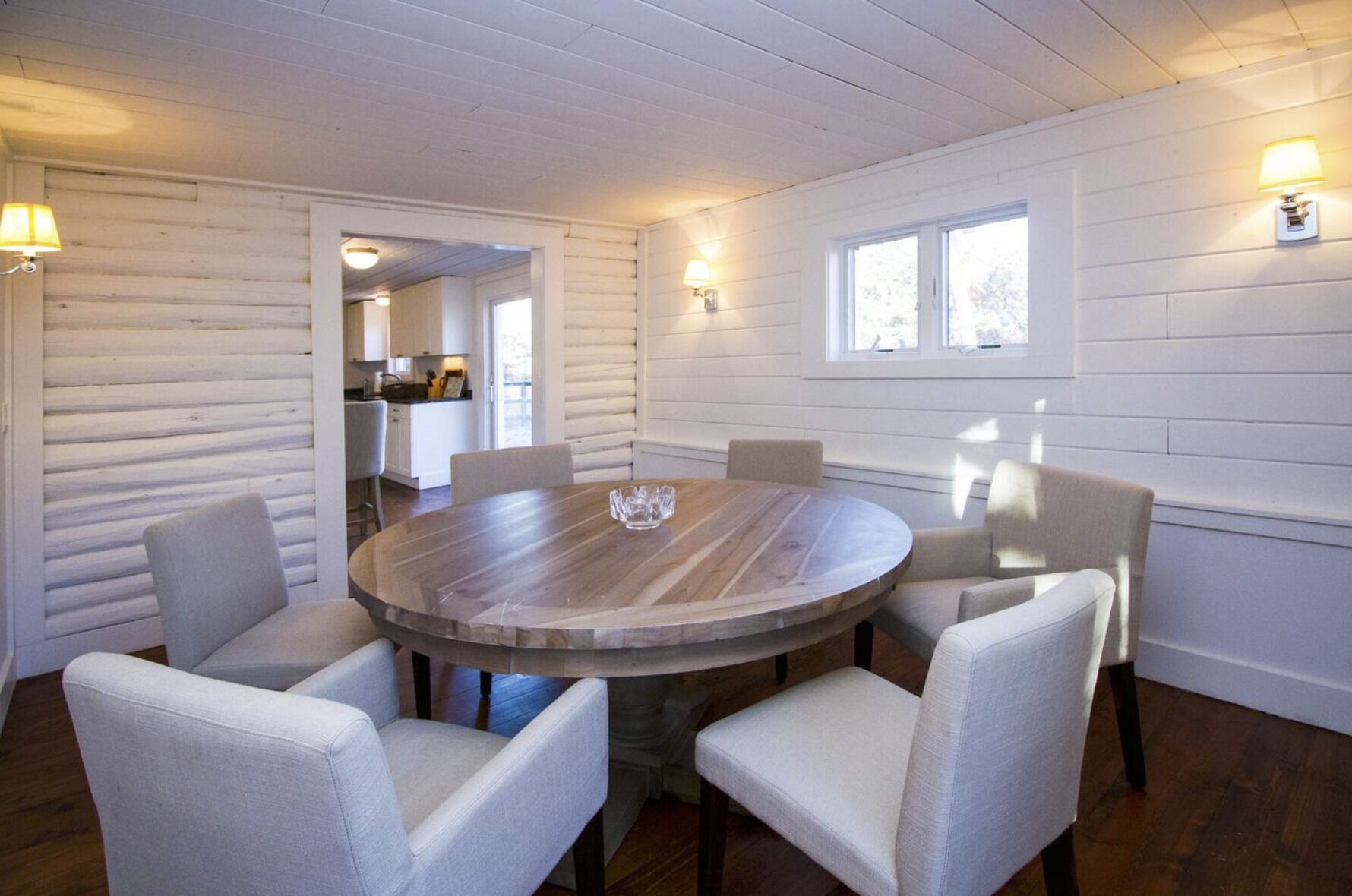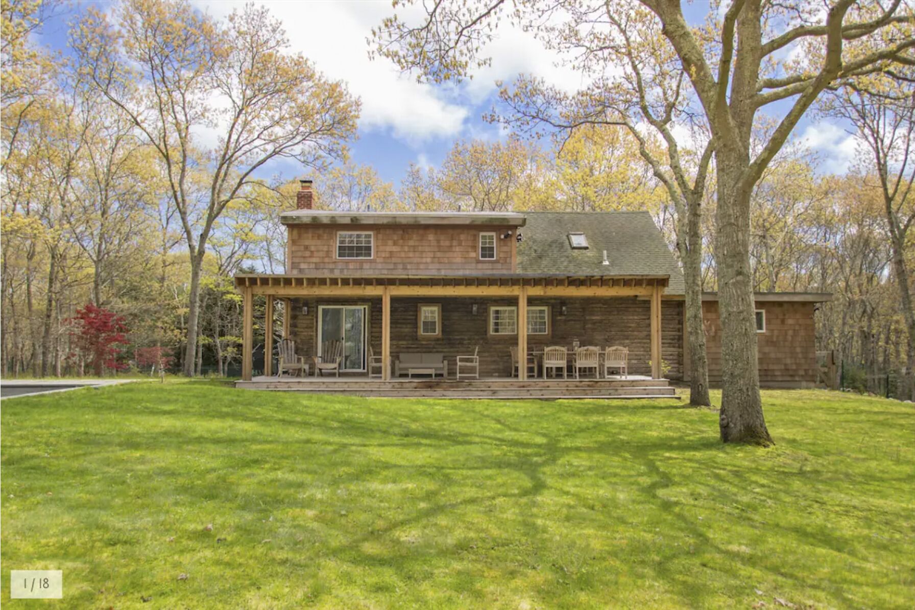 Private 1.4 acres 4 bedroom/ 3 bath cottage in the woods. AVAILABLE FOR AUGUST The log house has 3 bedrooms downstairs , and the master bedroom with en suite master bathroom and walk in closet on the first floor. The living room has a TV with home theatre, the adjacent kitchen is fully equipped. There is a granite pool on the back lawn (heating not included in price), with a deck and 1.4 acres of garden and woods. INFRARED SAUNA and Norditrack Rowing Machine. Amazing location