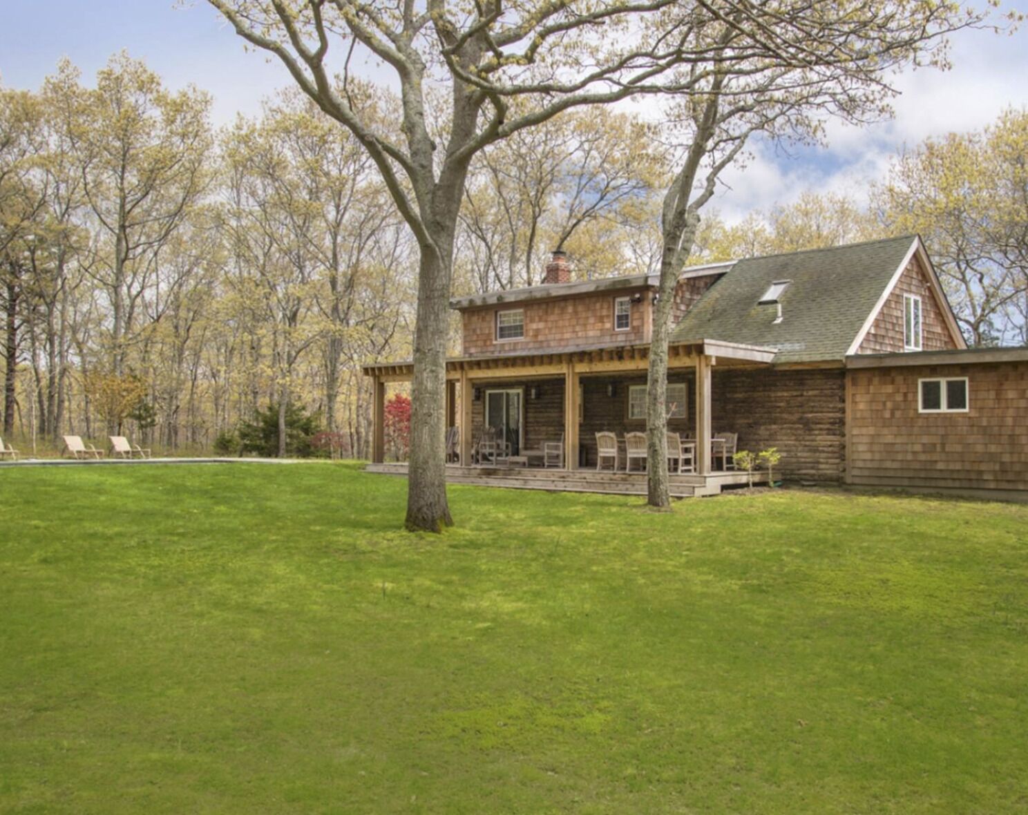 Private 1.4 acres 4 bedroom/ 3 bath cottage in the woods. AVAILABLE FOR AUGUST The log house has 3 bedrooms downstairs , and the master bedroom with en suite master bathroom and walk in closet on the first floor. The living room has a TV with home theatre, the adjacent kitchen is fully equipped. There is a granite pool on the back lawn (heating not included in price), with a deck and 1.4 acres...