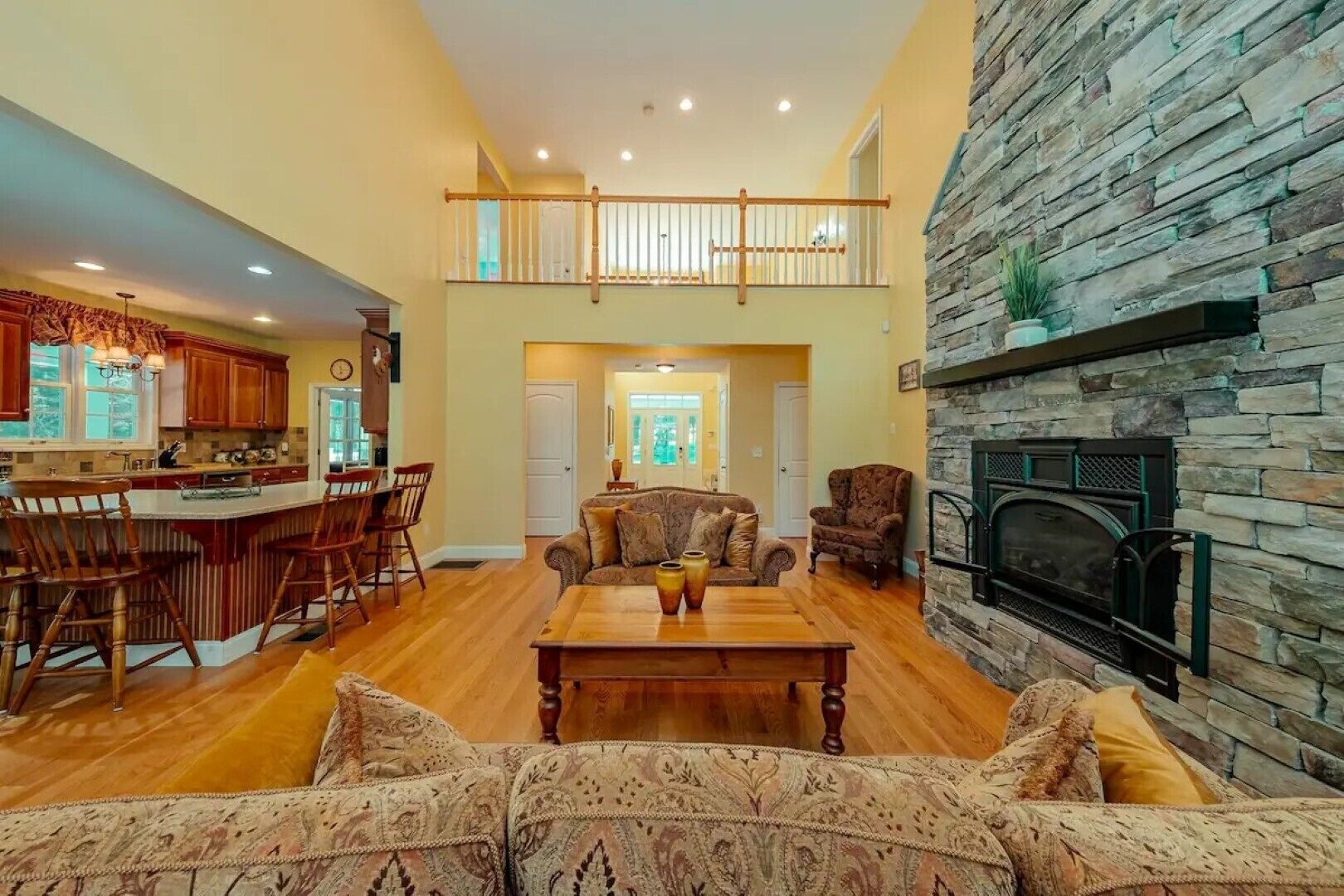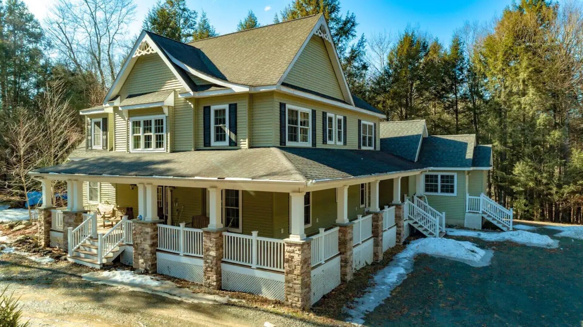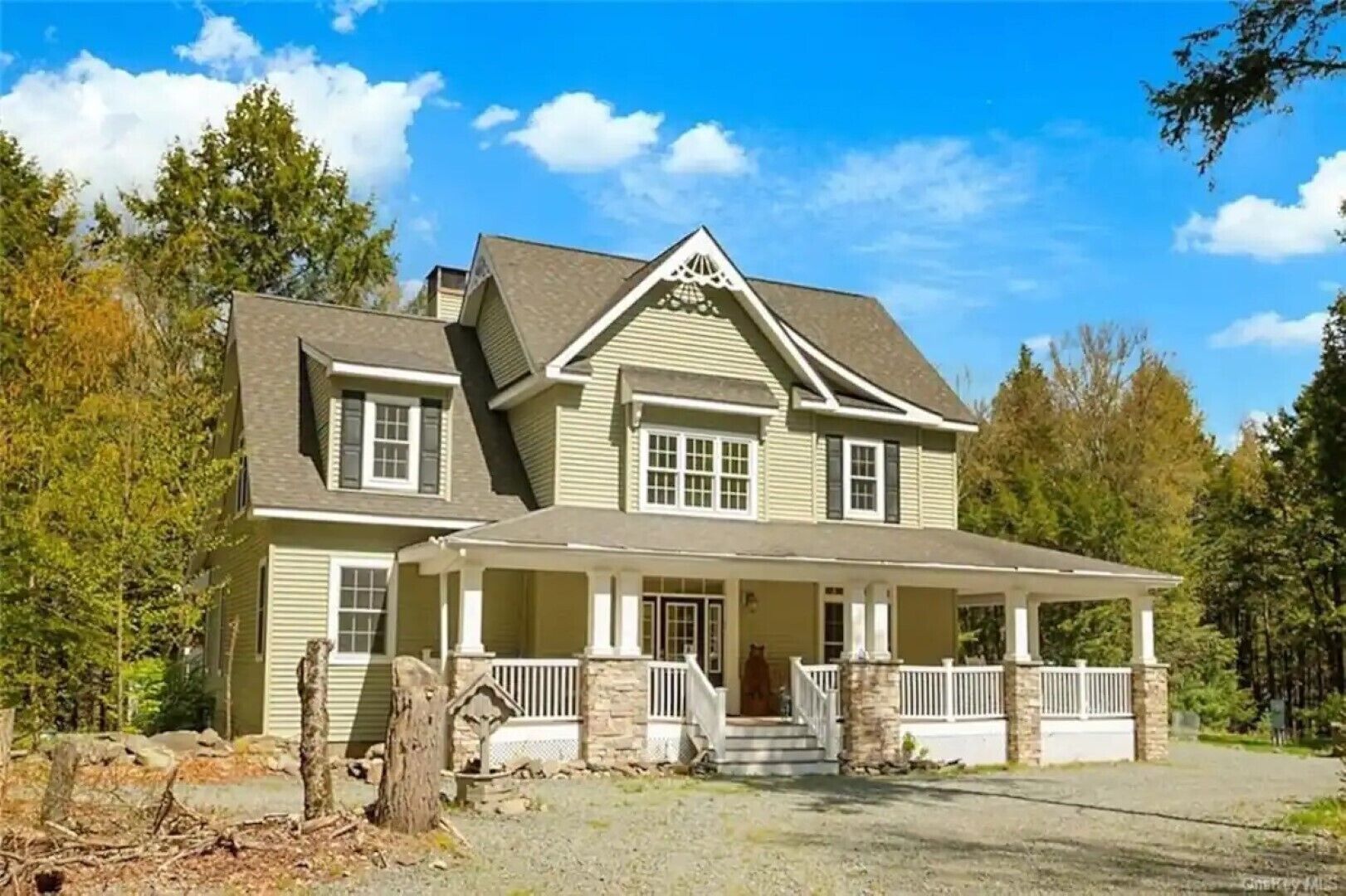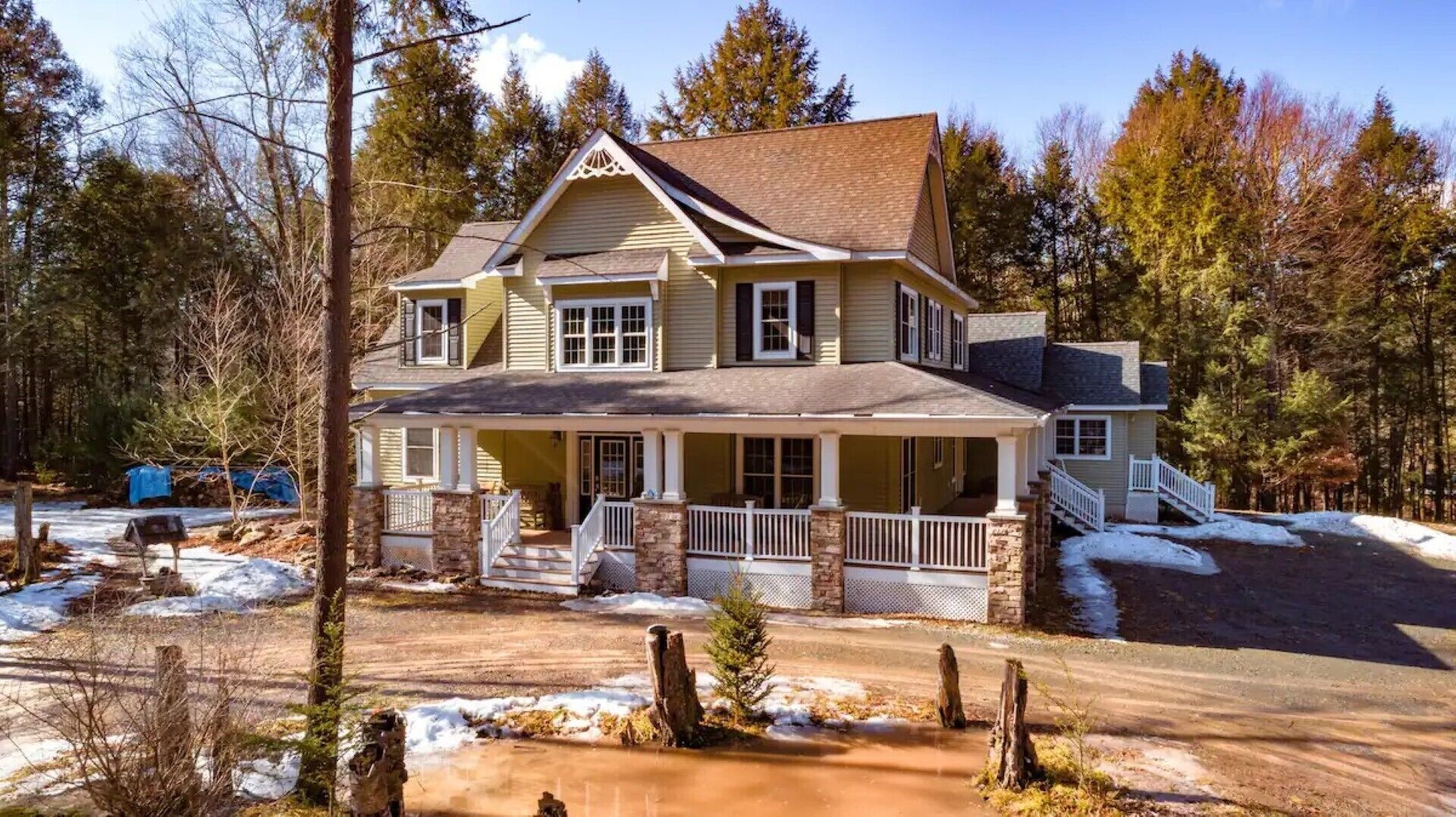 *NEW* Catskills Hideaway A picturesque Catskills Hideaway, walk to the Neversink River in the back yard. Conveniently located in the heart of the Sullivan Catskills. Beautifully secluded home located on 7 acres in a gated community. This is truly a hideaway nestled down a long driveway, that will fit your whole family! This is a two story home, with 3 Bedrooms upstairs and 1 master downstairs. 2 full bathrooms and 2 half baths. There are two separate living rooms downstairs and a large country kitchen.