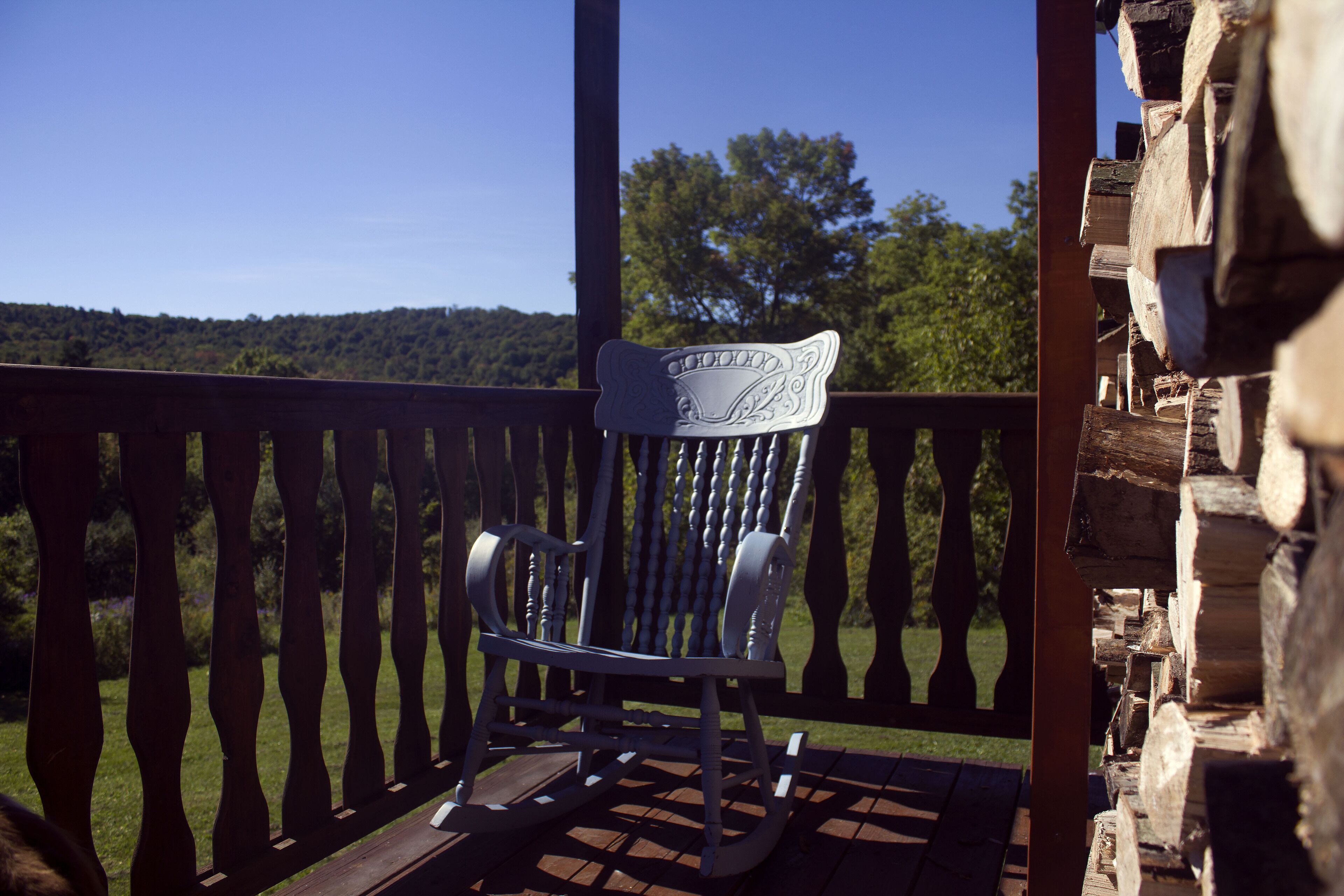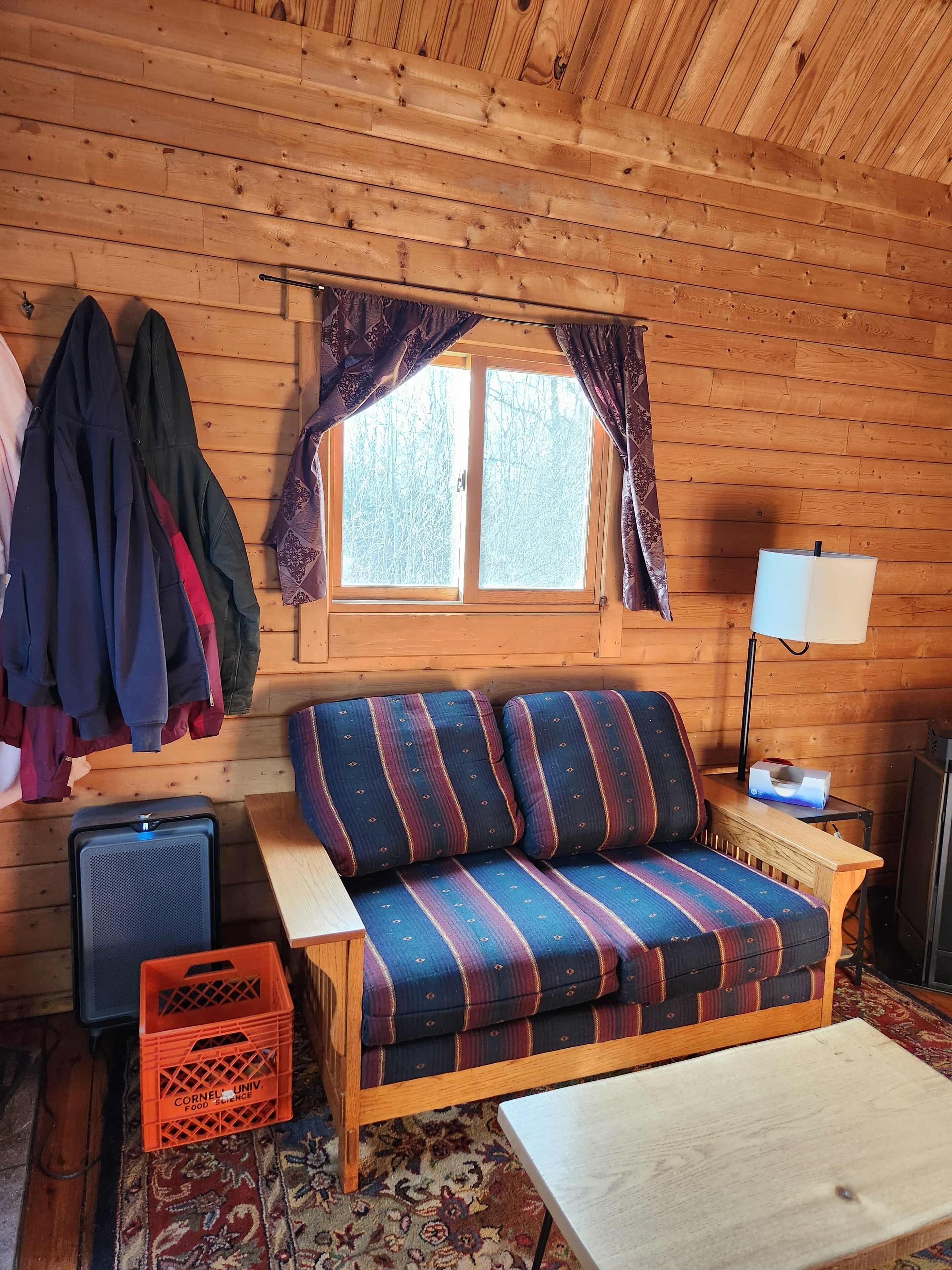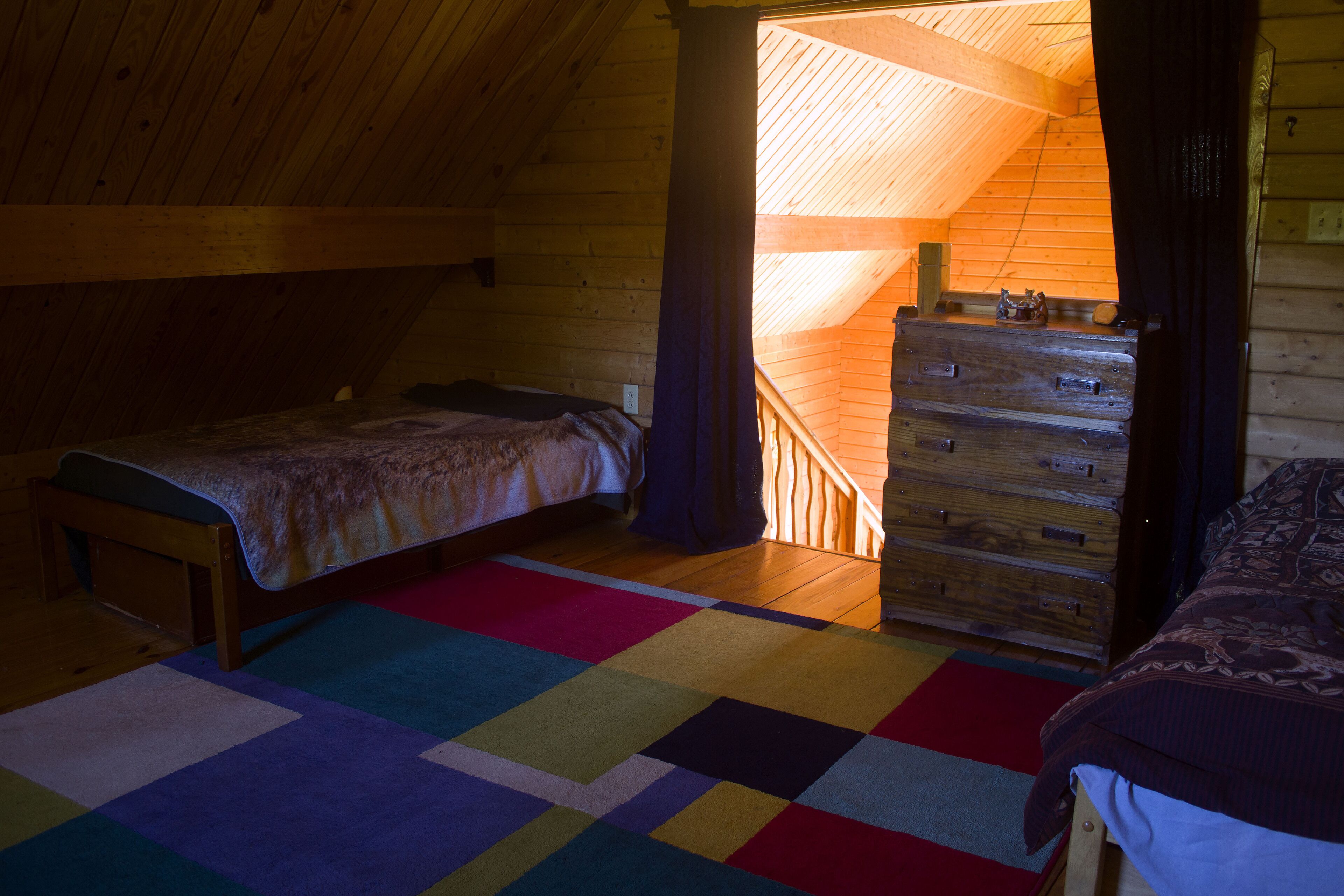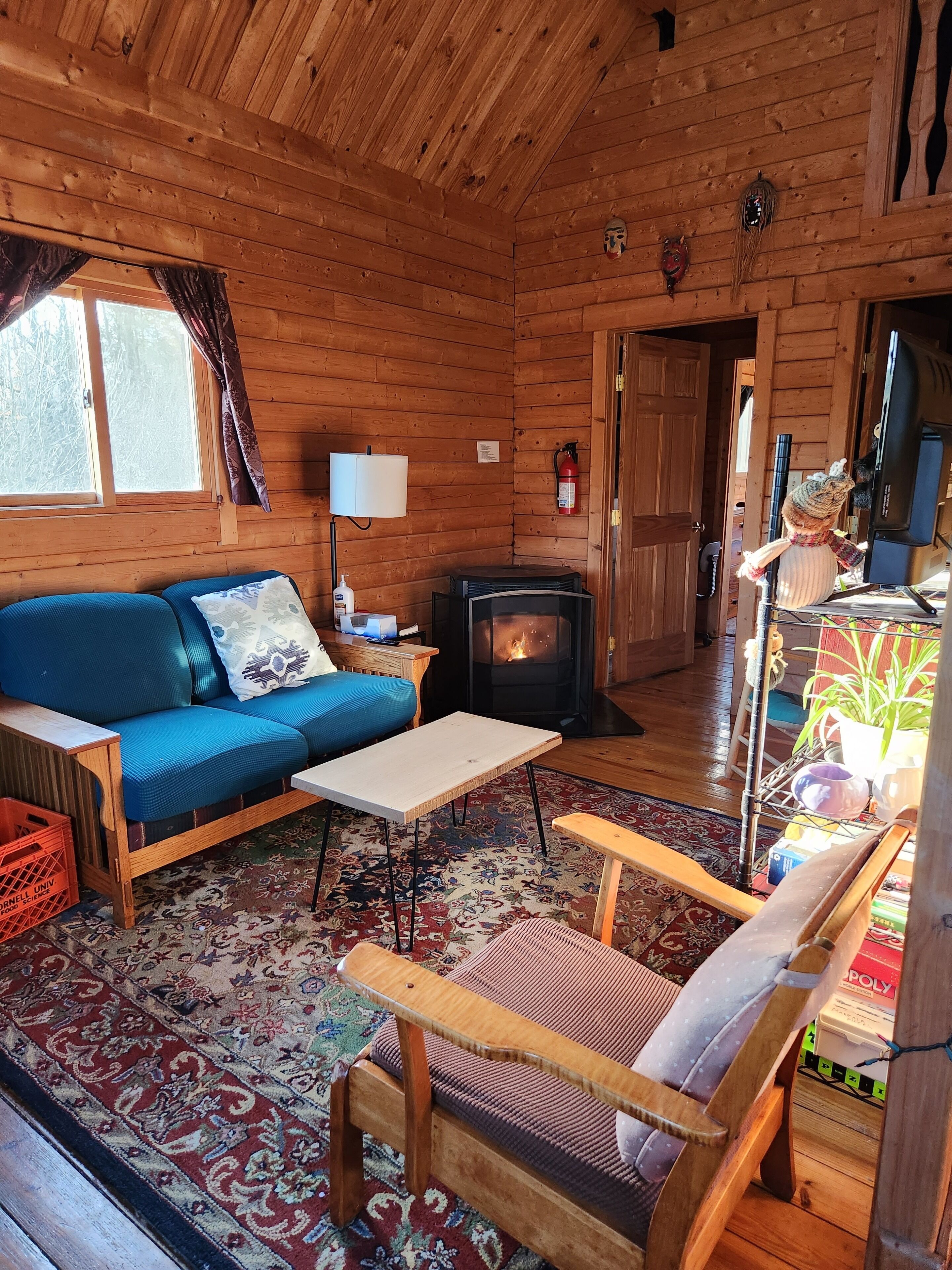Queen Log Cabin Mountain This beautiful Rustic Log Cabin is located on the top of Hammond Hill adjacent 20 miles of trails for hiking, biking and cross-country skiing in the Hammond Hill State Forest in the town of Dryden, NY. It has beautiful views year round and is private. A Tiny House is located on other side of garage, also available via VRBO. This cabin and the facilities are alcohol, drug and smoke free. Alcohol and drugs are not allowed on the premises. The cabin has two bedrooms with full size beds, dressers, and desks. The cabin also has a full bathroom and a loft which has 4 single beds. A Hot Tub for two is ready to use on the porch. There is high speed wifi, a washer & dryer, a pellet stove and central heating and air. Included is a TV. The kitchen includes a coffee, maker, microwave, dishwasher, full stove/oven and full size fridge. Dishes and cookware are included. This is an environmentally friendly home with solar panels and solar hot water. Cloth tablecloths and napkins are provided. The cabin sits on 60 acres of land. Down the hill from the cabin is a small woodland campground, Camp Earth Connection. The owner manages this campground and is easily accessible. The owner and her business Camp Earth Connection believes in Acceptance, Diversity and Community. The cabin and all facilities are LGBT & BIPOC friendly, and we welcome families and people from diverse backgrounds. The Mountain Queen as well as the other cabins on the land offer people the chance to enjoy the peace and tranquility of nature in a safe environment. Check in is between 3 and 7pm with no check ins allowed past 8pm.