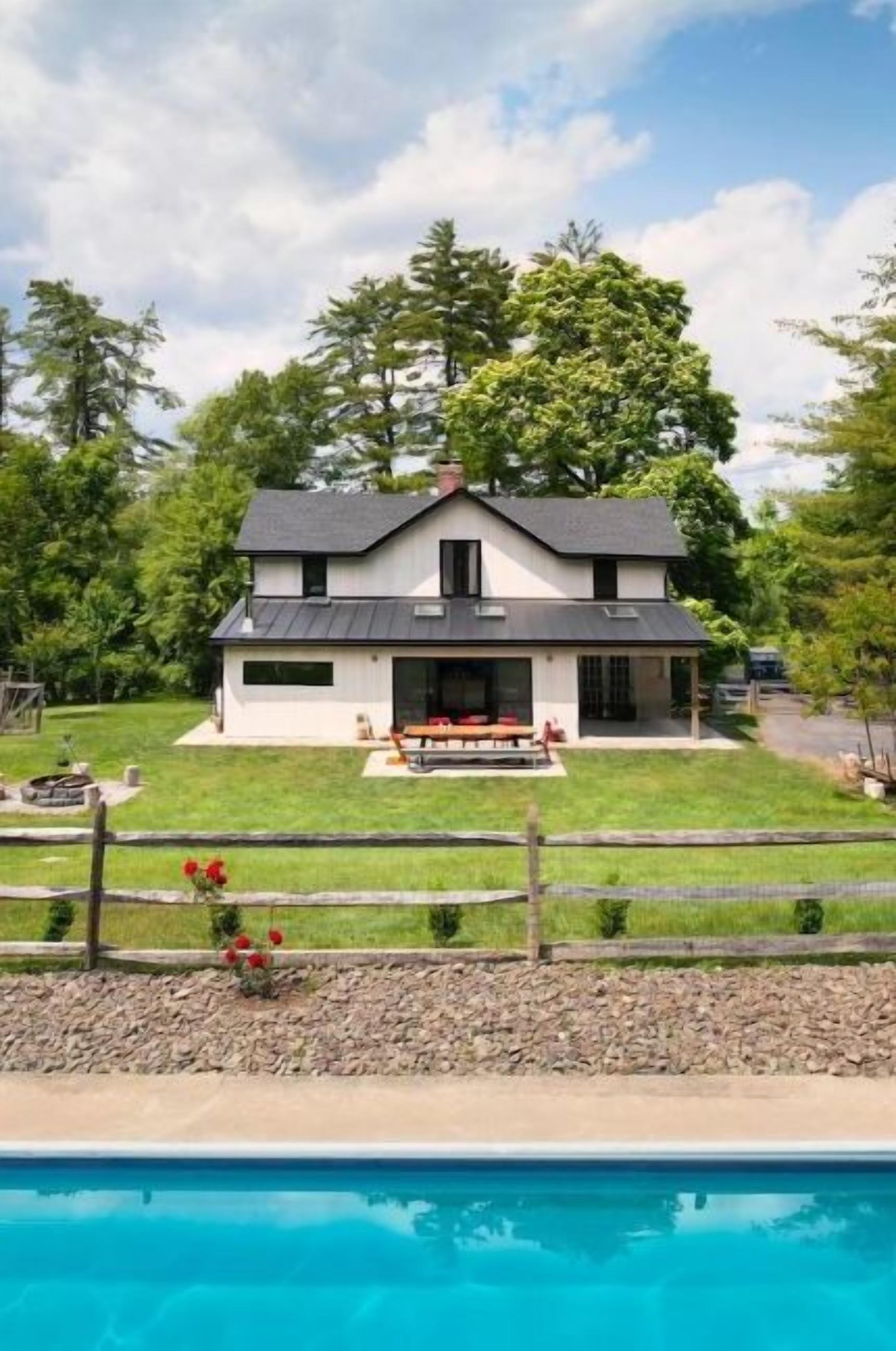 Majestic Restored Farmhouse High Falls Over the river and past the Blacksmith sits a newly renovated 1900 farmhouse. This beautiful one acre property has three bedrooms, two bathrooms, pool and wood fire sauna. Newly built chef’s kitchen with open dining room looks out to the garden. Our home has been lovingly restored and reimagined with artisanal craftsmanship while keeping many historic features. Conveniently located in the Hudson River Valley, close to gorgeous trails, restaurants, farm markets and antique shops. We welcome you.