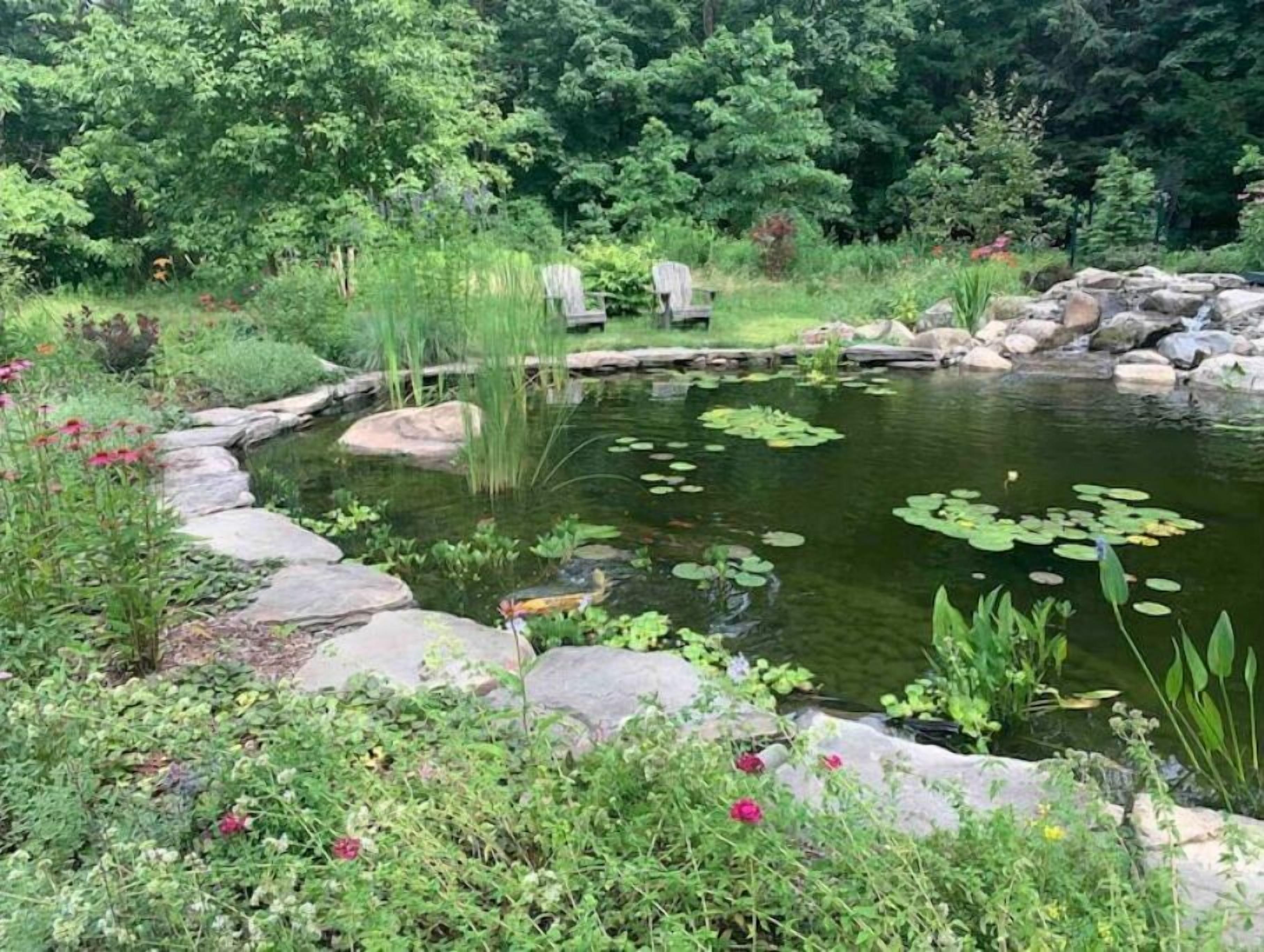 New Paltz Luxury Rental: 4 Bed Home with Pond & Deck Our stunning New Paltz luxury rental is a 4-bedroom, 3.5-bath home that is a tranquil oasis nestled in the heart of the Hudson Valley. With a serene koi pond, a covered deck, and a lush backyard, our home is the perfect place to unwind and enjoy the natural beauty of our surroundings.As soon as you step inside, you'll be greeted by a warm and in...