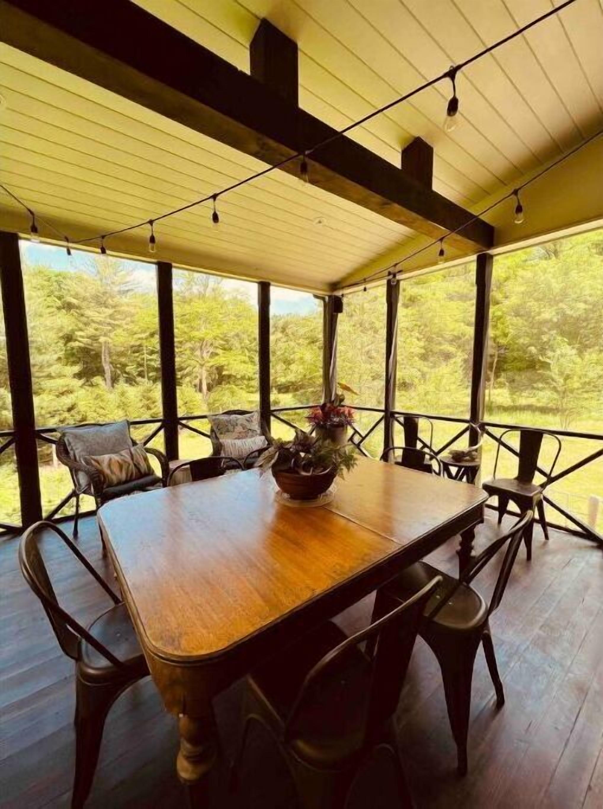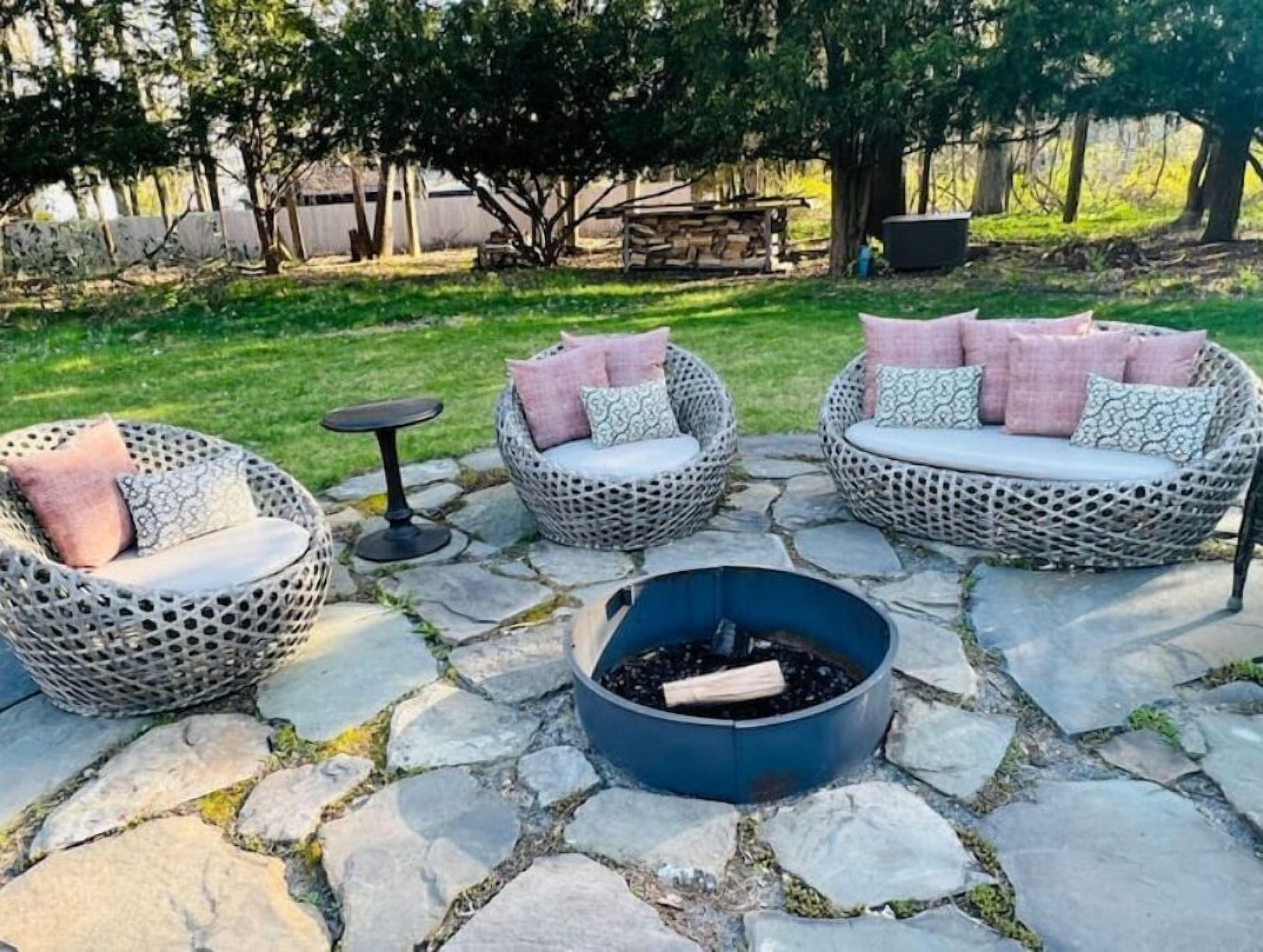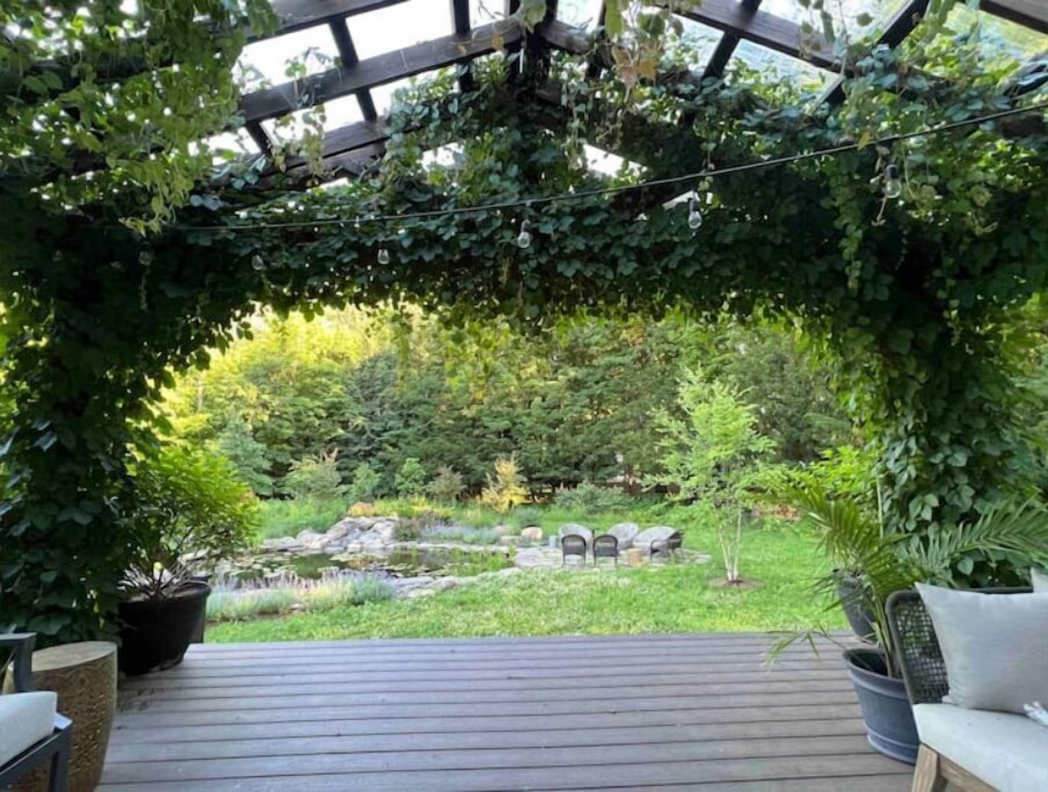 New Paltz Luxury Rental: 4 Bed Home with Pond & Deck Our stunning New Paltz luxury rental is a 4-bedroom, 3.5-bath home that is a tranquil oasis nestled in the heart of the Hudson Valley. With a serene koi pond, a covered deck, and a lush backyard, our home is the perfect place to unwind and enjoy the natural beauty of our surroundings.As soon as you step inside, you'll be greeted by a warm and inviting atmosphere. Our home is designed with comfort and relaxation in mind, from the plush couches in the living room to the cozy bedding in each of the four bedrooms. With plenty of natural light and beautiful views of the surrounding trees, our home is the perfect place to recharge and reconnect with loved ones.One of the highlights of our home is the luxury kitchen, fully equipped with everything you need to cook up a delicious meal. From the high-end appliances to the spacious dining area, our kitchen is the heart of the home. Whether you're a seasoned chef or a beginner, you'll love cooking in this beautiful space.But perhaps the best part of our home is the covered porch overlooking the koi pond. With fans, a table for 2, comfortable outdoor couches and chairs, and lush vines all around, it's the perfect spot to unwind and soak up the beauty of our tranquil surroundings. Whether you're sipping your morning coffee or enjoying a glass of wine at sunset, you'll love spending time on this peaceful porch.Our home also features a fire circle right beside the koi pond, making it the perfect spot to gather with family and friends and enjoy a cozy night under the stars. We provide plenty of firewood for our guests, so you can sit back and relax while roasting marshmallows or telling ghost stories around the fire. And with the koi pond teeming with fish, frogs, and dragonflies, you'll feel like you're surrounded by nature and all its wonders. It's the perfect place to create unforgettable memories with your loved ones.And if you're looking for a little bit of fun, our basement is the perfect space for playtime for kids and adults alike. Featuring a ping pong table and a home gym area for working out, our basement is a great place to let loose and have some fun.Of course, we also understand the importance of staying connected, which is why we offer high-speed internet and a smart TV with streaming capabilities. Whether you're working from home or just want to catch up on your favorite shows, you'll have everything you need to stay connected during your stay.We want to be super clear that this is our family home, and not an empty home exclusively set up for Airbnb. We DO NOT WANT, NOR ALLOW ANY PARTIES. Please do not request to book if you are looking for a party house. We take great pride in our home and have worked hard to make it a peaceful and inviting space for our family and guests. We hope you'll respect our rules and treat our home with the same care and consideration you would give to your own home.That said, we're thrilled to host respectful guests who will appreciate all that our home has to offer. Whether you're here for a family vacation, a romantic getaway, or just a weekend with friends, we know you'll love staying in our beautiful New Paltz home.And if you're looking for a little bit of extra relaxation, don't forget about our fire pit! With provided firewood and plenty of seating, it's the perfect place to gather around with loved ones and enjoy the warmth and comfort of a crackling fire.We have a STRICT NO PET POLICY due to our family's allergies. We understand that pets are a part of many families, but we hope you'll understand that we simply cannot make any exceptions.Thanks again for your interest, and we look forward to hosting you in our beautiful New Paltz home!