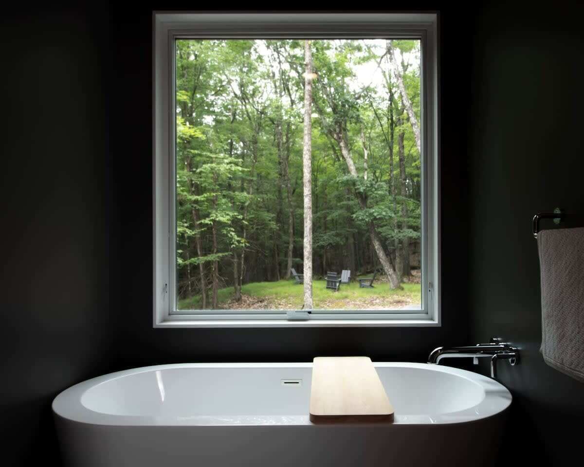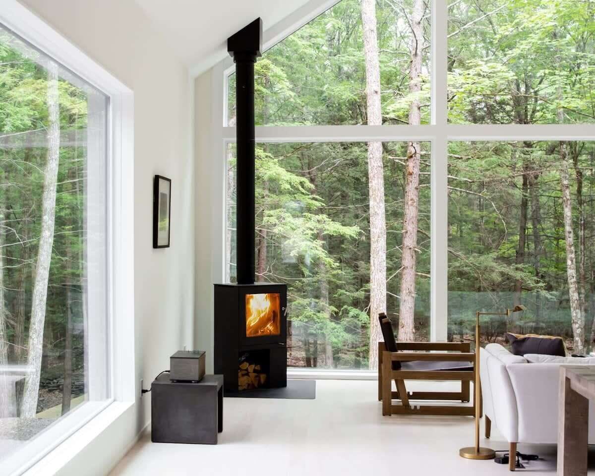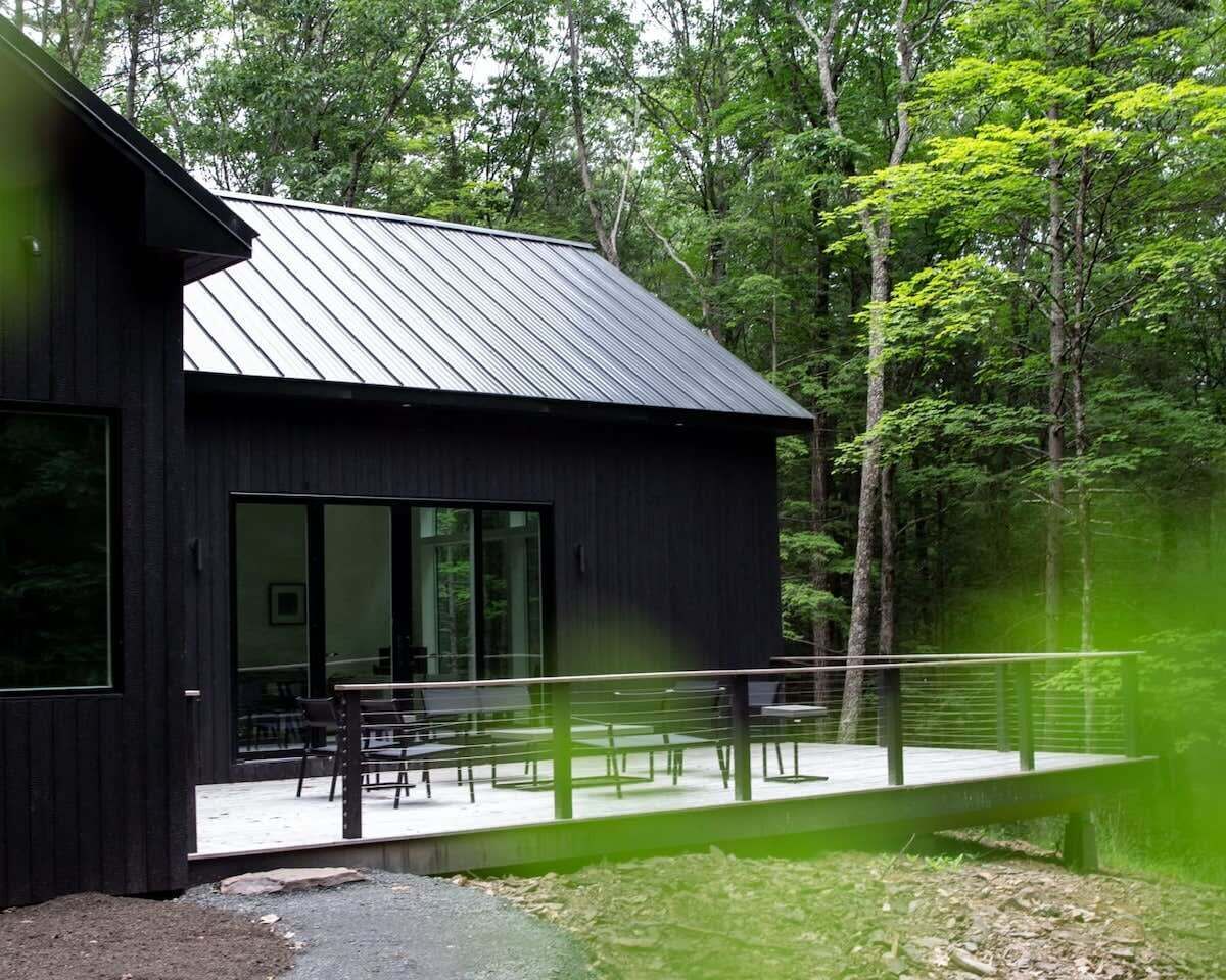 Bluestone Cove - Modern Escape in the Woods Summary:Discover the magic of Bluestone Cove, a secluded 3-bed, 2-bath modern retreat in NY's serene Olivebridge - just 2.5 hrs from NYC!Surrounded by nature, the cabin features a large deck, outdoor firepit, and scenic waterways. Inside, floor-to-ceiling windows fill the space with light, creating an inviting ambiance. Enjoy a master suite with a luxurious ensuite, a modern kitchen, and a cozy great room with a fireplace. Explore neighboring towns like Woodstock & Phoenicia.The Space:Welcome to your secluded contemporary cabin home in the heart of Olivebridge, NY! This stunning 3-bedroom, 2-bathroom retreat is a perfect blend of sleek design and natural beauty.As you step inside, you'll be greeted by an open and well-laid-out floor plan, perfectly complemented by large floor-to-ceiling windows that invite the picturesque outdoors into every corner of the home. The abundance of natural light creates an airy and welcoming ambiance that instantly puts you at ease.The bedrooms are bright and thoughtfully furnished for your utmost comfort. The master bedroom boasts a luxurious king bed and a private ensuite featuring a walk-in shower and a 72" tub, offering you a spa-like experience in the comfort of your own home. The guest bedrooms are equally inviting, furnished with plush queen beds and a convenient queen Murphy bed, providing ample space for everyone.The living area is designed for relaxation and entertainment. Gather around the cozy fireplace in the great room, where a flat-screen TV awaits your favorite movies and shows. Whether you're lounging indoors or dining at the large wooden indoor dining table, the beautiful views outside will always be in sight.The modern kitchen is a chef's delight, equipped with everything you need to prepare delicious meals. A sleek breakfast bar with stylish stools adds a touch of elegance to your dining experience. The white tile backsplash adds a clean and sophisticated finish to the space.Outside, a large deck beckons you to enjoy the fresh air and tranquility of nature. Dine al fresco with the outdoor dining area or gather around the firepit for cozy evenings under the stars. With access to the water and nearby hiking trails, adventure and relaxation are right at your doorstep.For added comfort during the warmer months, the bedrooms are equipped with A/C split units, ensuring you stay cool and comfortable throughout your stay.Experience the seamless blend of modern living and the beauty of the outdoors in this contemporary cabin home. Your tranquil escape awaits in Olivebridge, NY. Book your stay today and create unforgettable memories in this idyllic retreatThe Neighborhood:Welcome to Olivebridge, NY, a charming retreat in Ulster County. Embrace nature's beauty with outdoor adventures in summer, from boating on Ashokan Reservoir to exploring Catskill Mountains trails. In winter, hit the slopes at nearby ski resorts or cozy up in rustic lodges. Enjoy the warm ambiance, friendly locals, and delightful eateries year-round. Discover the magic of Olivebridge, where nature and community unite for an unforgettable escape!Getting Around:Bluestone Cove is 2.5 hours from New York and guests can travel around by car as it is a rural area with limited public transportation. In the winter, we recommend a car with four-wheel drive that can handle the snow and gravel roads.