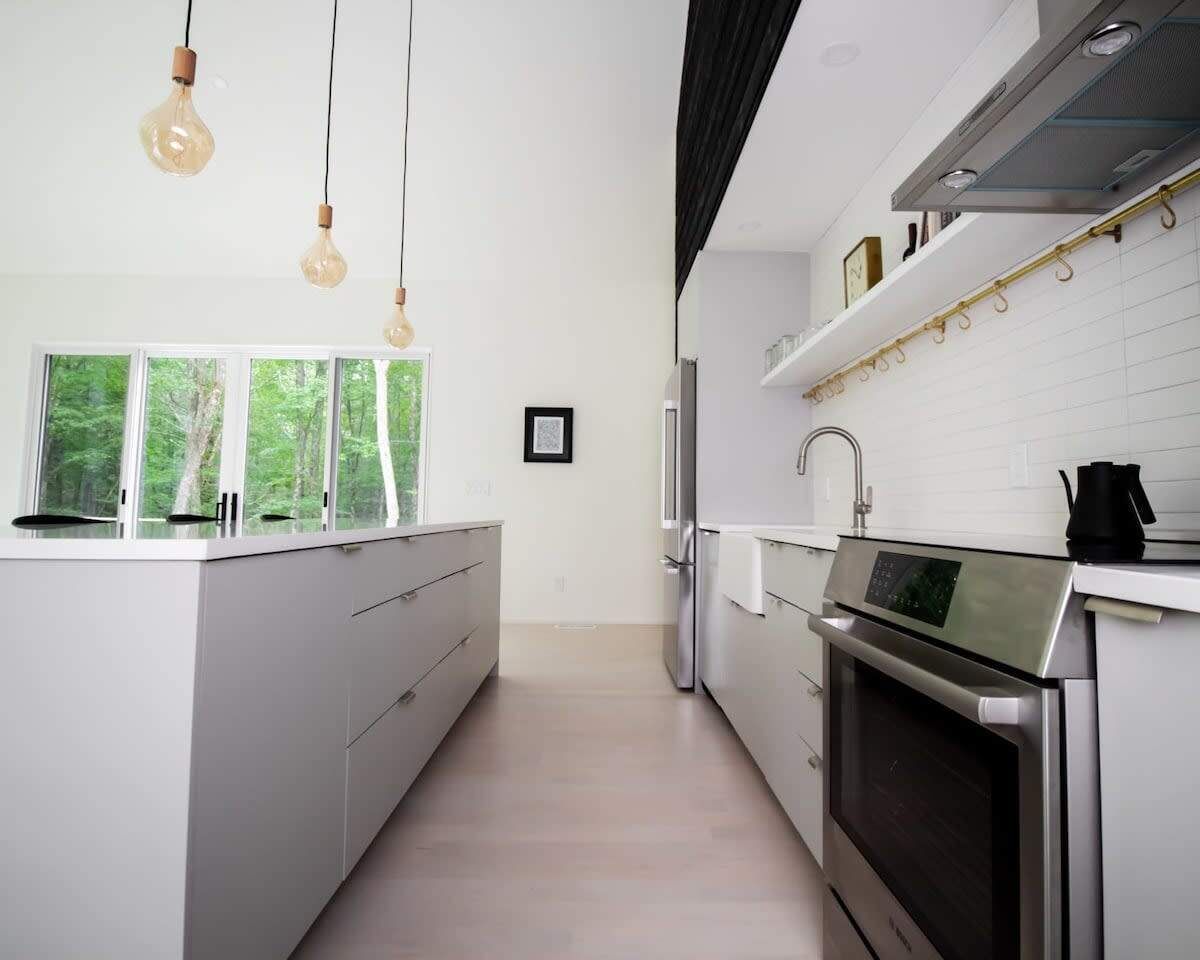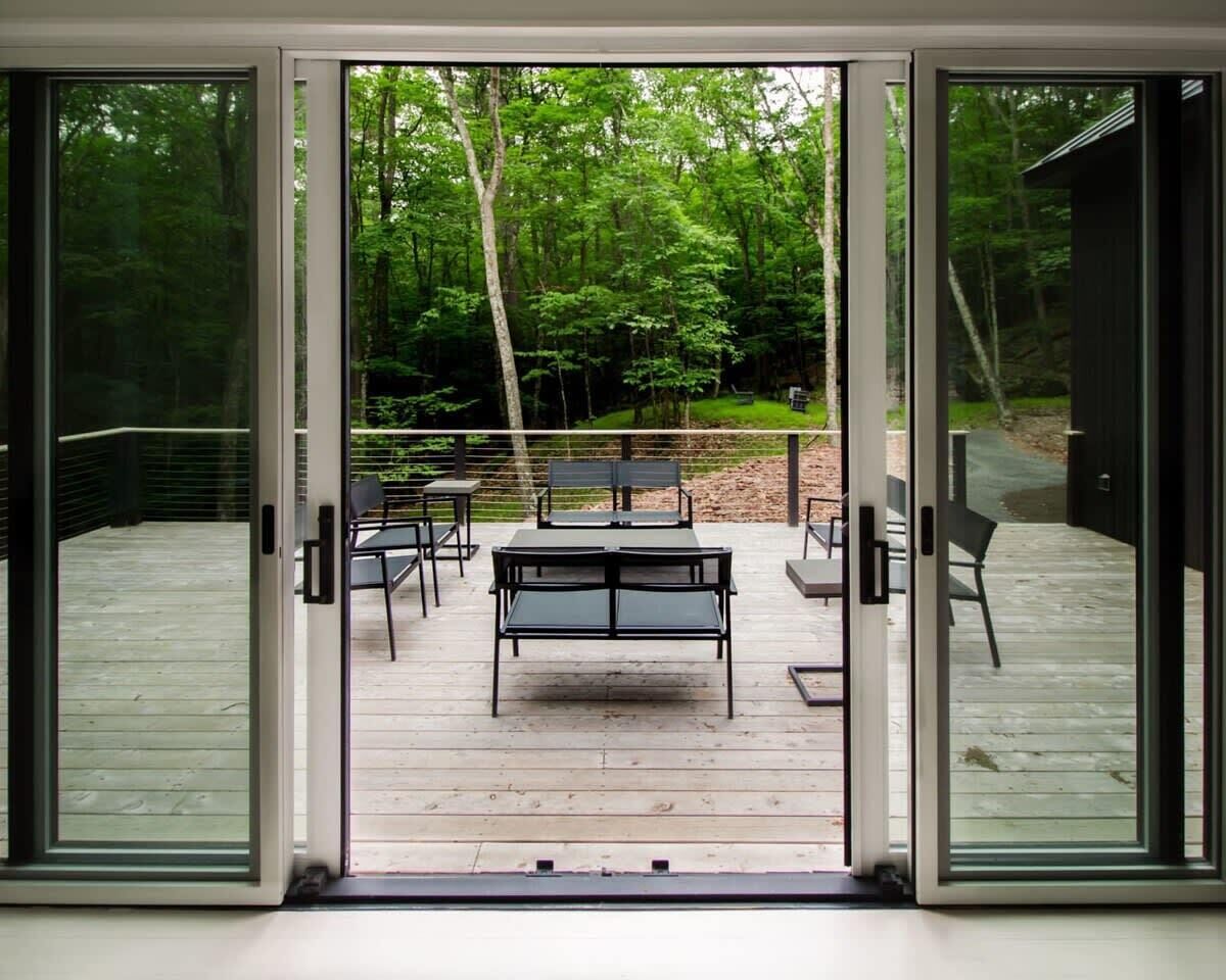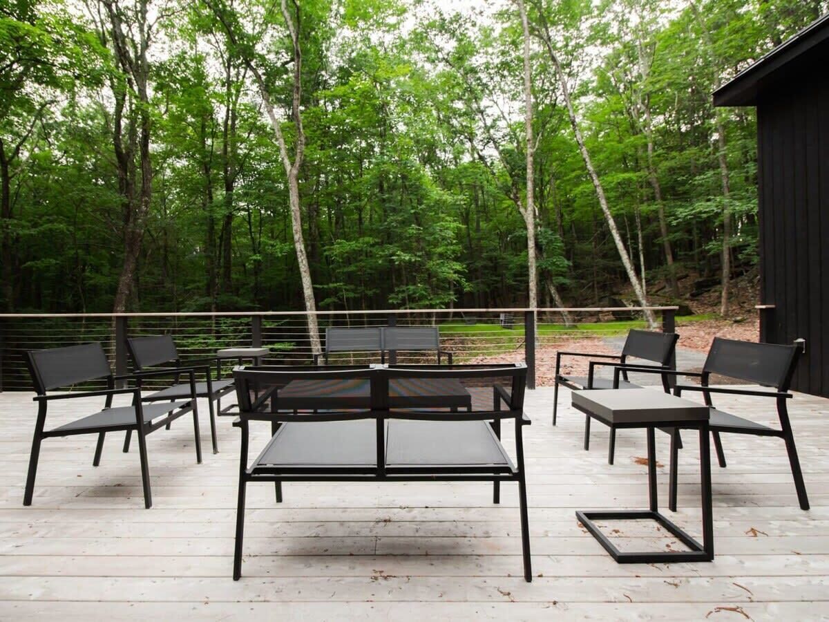 Bluestone Cove - Modern Escape in the Woods Summary:Discover the magic of Bluestone Cove, a secluded 3-bed, 2-bath modern retreat in NY's serene Olivebridge - just 2.5 hrs from NYC!Surrounded by nature, the cabin features a large deck, outdoor firepit, and scenic waterways. Inside, floor-to-ceiling windows fill the space with light, creating an inviting ambiance. Enjoy a master suite with a luxurious ensuite, a modern kitchen, and a cozy great room with a fireplace. Explore neighboring towns like Woodstock & Phoenicia.The Space:Welcome to your secluded contemporary cabin home in the heart of Olivebridge, NY! This stunning 3-bedroom, 2-bathroom retreat is a perfect blend of sleek design and natural beauty.As you step inside, you'll be greeted by an open and well-laid-out floor plan, perfectly complemented by large floor-to-ceiling windows that invite the picturesque outdoors into every corner of the home. The abundance of natural light creates an airy and welcoming ambiance that instantly puts you at ease.The bedrooms are bright and thoughtfully furnished for your utmost comfort. The master bedroom boasts a luxurious king bed and a private ensuite featuring a walk-in shower and a 72" tub, offering you a spa-like experience in the comfort of your own home. The guest bedrooms are equally inviting, furnished with plush queen beds and a convenient queen Murphy bed, providing ample space for everyone.The living area is designed for relaxation and entertainment. Gather around the cozy fireplace in the great room, where a flat-screen TV awaits your favorite movies and shows. Whether you're lounging indoors or dining at the large wooden indoor dining table, the beautiful views outside will always be in sight.The modern kitchen is a chef's delight, equipped with everything you need to prepare delicious meals. A sleek breakfast bar with stylish stools adds a touch of elegance to your dining experience. The white tile backsplash adds a clean and sophisticated finish to the space.Outside, a large deck beckons you to enjoy the fresh air and tranquility of nature. Dine al fresco with the outdoor dining area or gather around the firepit for cozy evenings under the stars. With access to the water and nearby hiking trails, adventure and relaxation are right at your doorstep.For added comfort during the warmer months, the bedrooms are equipped with A/C split units, ensuring you stay cool and comfortable throughout your stay.Experience the seamless blend of modern living and the beauty of the outdoors in this contemporary cabin home. Your tranquil escape awaits in Olivebridge, NY. Book your stay today and create unforgettable memories in this idyllic retreatThe Neighborhood:Welcome to Olivebridge, NY, a charming retreat in Ulster County. Embrace nature's beauty with outdoor adventures in summer, from boating on Ashokan Reservoir to exploring Catskill Mountains trails. In winter, hit the slopes at nearby ski resorts or cozy up in rustic lodges. Enjoy the warm ambiance, friendly locals, and delightful eateries year-round. Discover the magic of Olivebridge, where nature and community unite for an unforgettable escape!Getting Around:Bluestone Cove is 2.5 hours from New York and guests can travel around by car as it is a rural area with limited public transportation. In the winter, we recommend a car with four-wheel drive that can handle the snow and gravel roads.