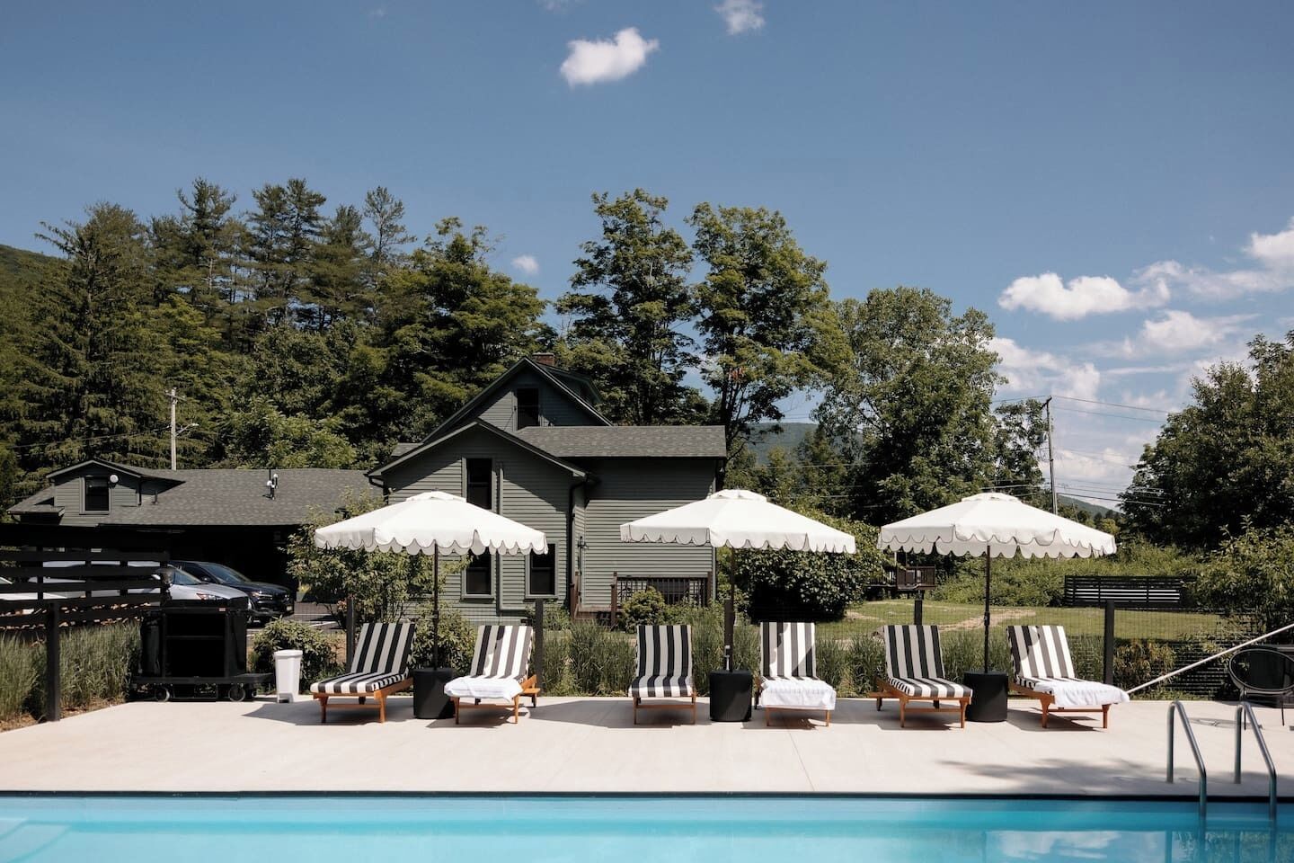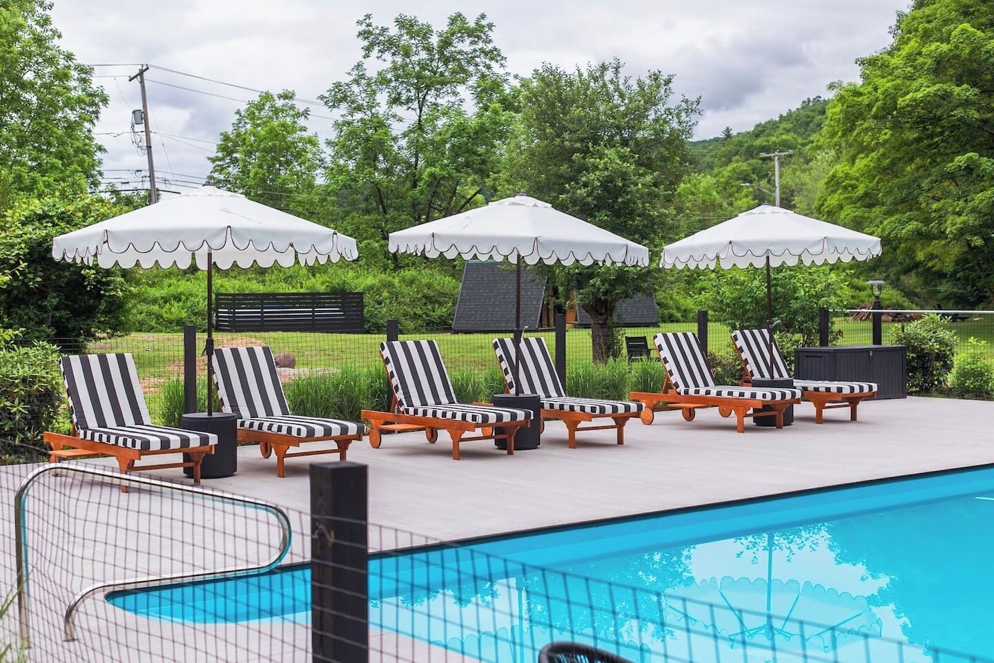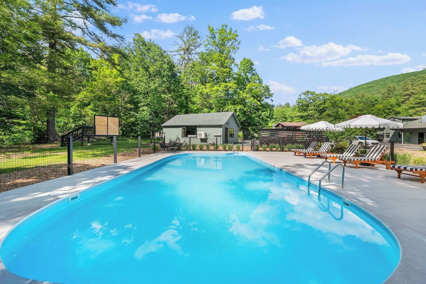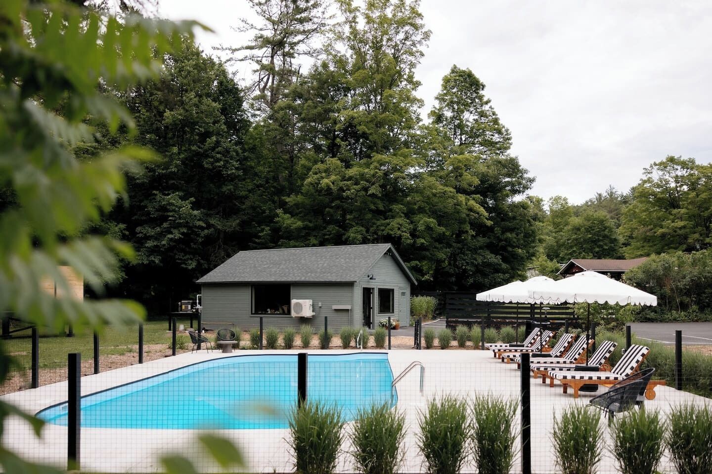 The Bend: The Cottage Welcome to The Bend - An exclusive adults-only (16+ years old and No Pets) retreat that offers five luxury boutique units nestled in the serene Catskills Mountains. Here, we've created a retreat where nature, comfort, and wellness harmoniously blend to offer you an unforgettable trip.The Cottage Suite, distinct as our exclusive standalone dwelling separate from the main building, is a masterpiece of earthy luxury design. It features a warm and inviting gas fireplace, a bespoke coffee and tea bar, and a private deck offering serene views of the creek and a poolside vista. This suite is an embodiment of secluded elegance and comfort, perfect for those seeking a unique and tranquil retreat.After your booking is confirmed, you will be provided with a unique code for a seamless check-in experience.The Bend is designed as a fully self-serve property, offering you complete autonomy during your stay. While we don't maintain full-time staff onsite, our local managers are readily available and can be onsite as needed to assist youThe Bend offers an exclusive adults-only retreat. This accommodation is part of a collection of five distinct units available for rent on the premises. During your stay, you may encounter other guests or the dedicated staff of The Bend, ensuring a welcoming and communal atmosphere.Our wellness retreat is exclusively for adults. We adore children, but our focus is on providing a serene and undisturbed environment for you to relax and disconnect.