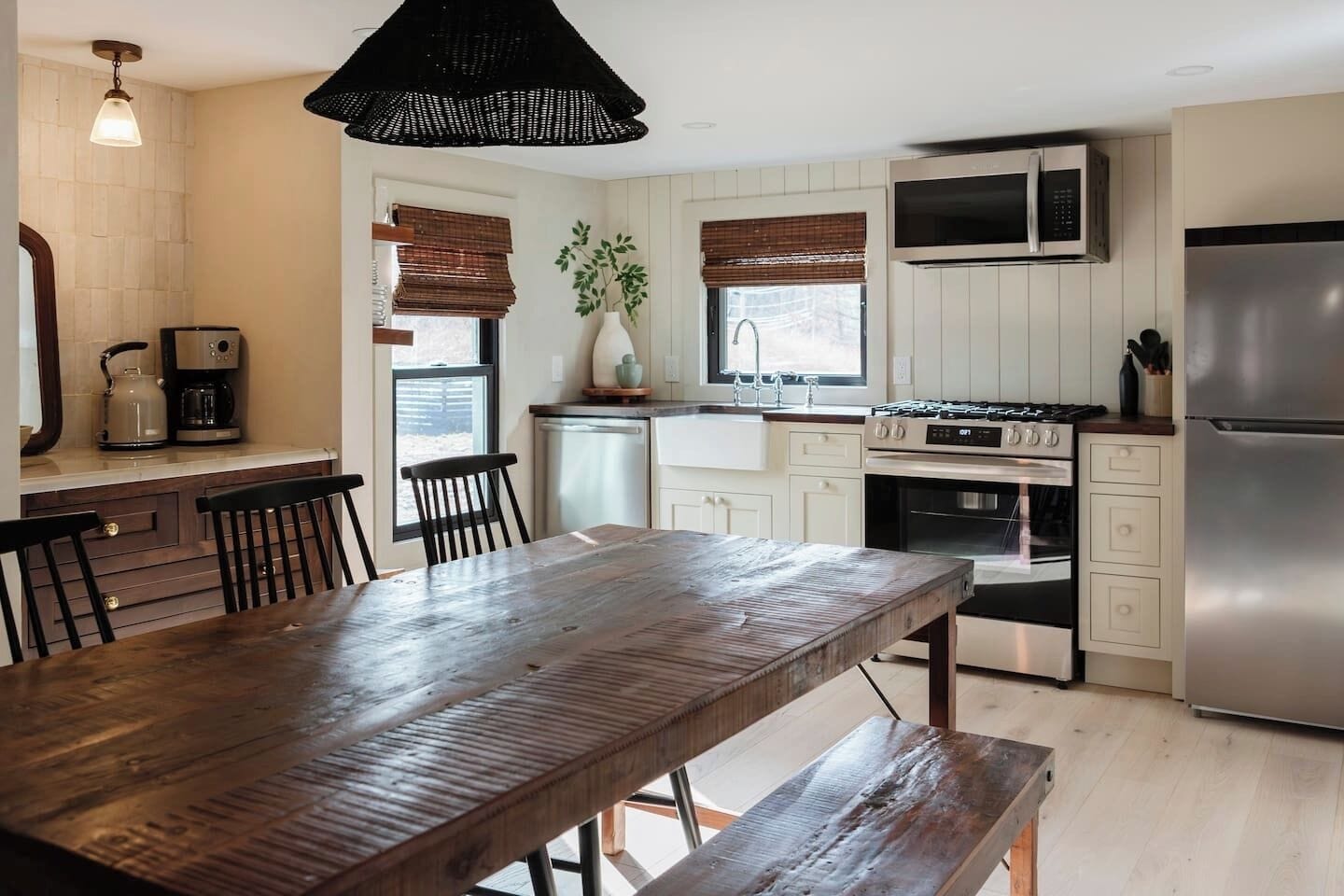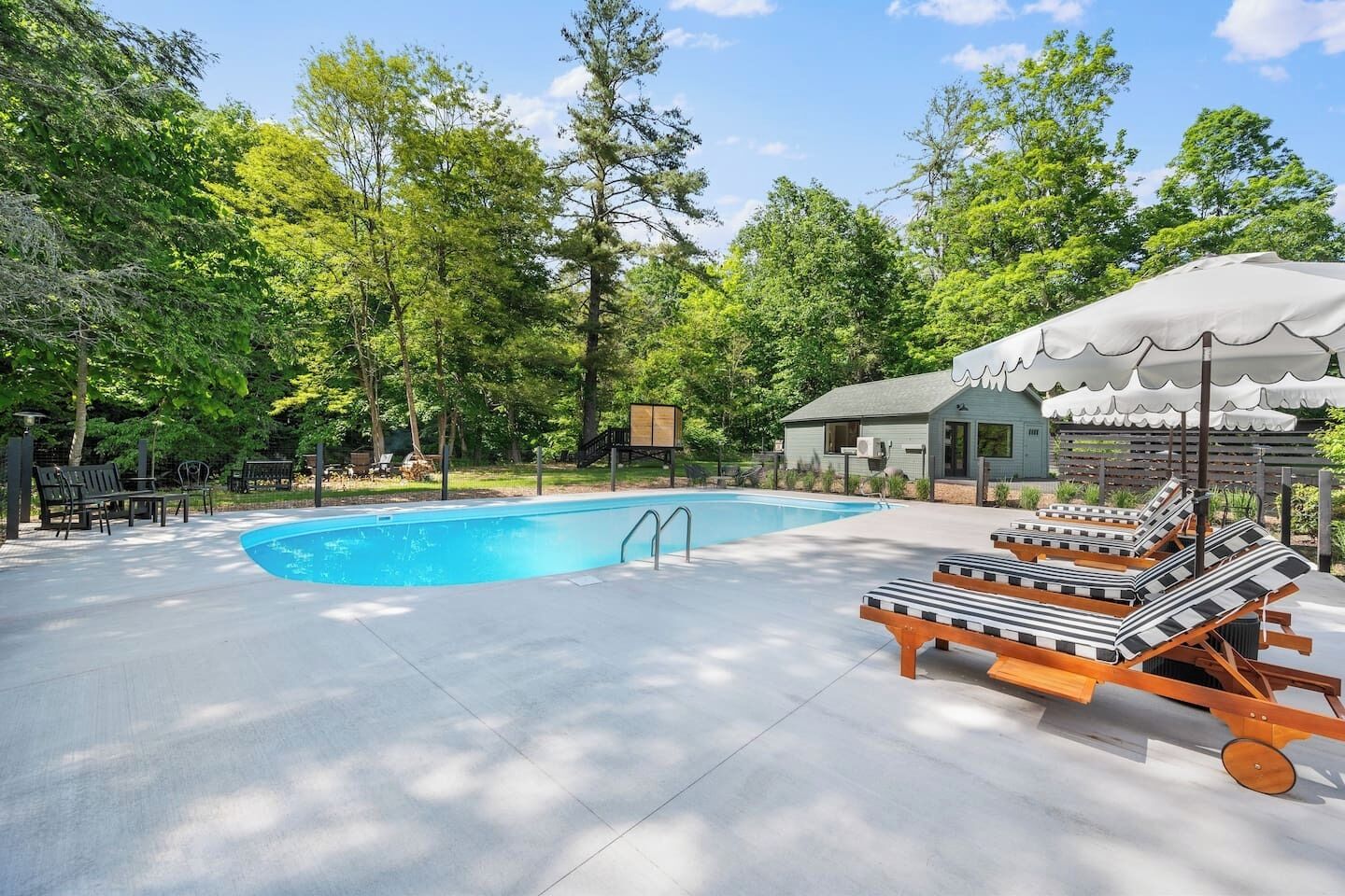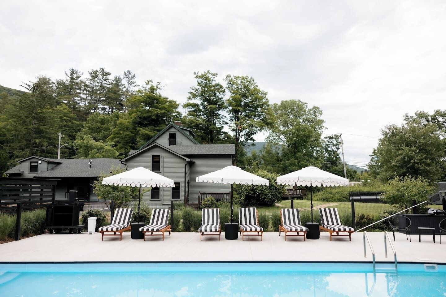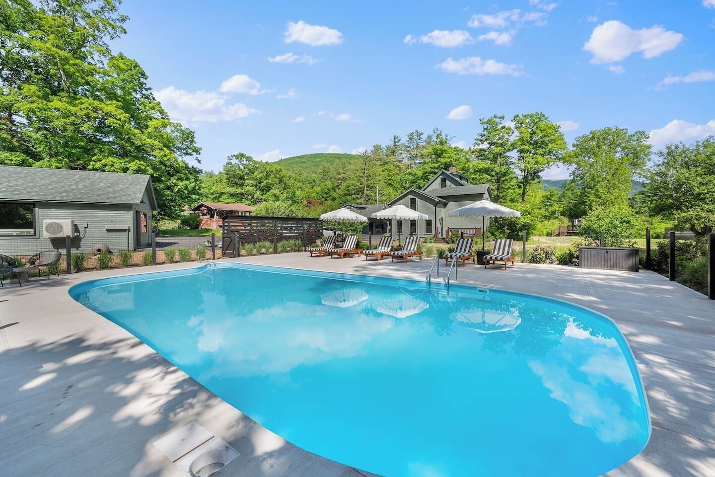 The Bend: The Cottage Welcome to The Bend - An exclusive adults-only (16+ years old and No Pets) retreat that offers five luxury boutique units nestled in the serene Catskills Mountains. Here, we've created a retreat where nature, comfort, and wellness harmoniously blend to offer you an unforgettable trip.The Cottage Suite, distinct as our exclusive standalone dwelling separate from the main building, is a masterpiece of earthy luxury design. It features a warm and inviting gas fireplace, a bespoke coffee and tea bar, and a private deck offering serene views of the creek and a poolside vista. This suite is an embodiment of secluded elegance and comfort, perfect for those seeking a unique and tranquil retreat.After your booking is confirmed, you will be provided with a unique code for a seamless check-in experience.The Bend is designed as a fully self-serve property, offering you complete autonomy during your stay. While we don't maintain full-time staff onsite, our local managers are readily available and can be onsite as needed to assist youThe Bend offers an exclusive adults-only retreat. This accommodation is part of a collection of five distinct units available for rent on the premises. During your stay, you may encounter other guests or the dedicated staff of The Bend, ensuring a welcoming and communal atmosphere.Our wellness retreat is exclusively for adults. We adore children, but our focus is on providing a serene and undisturbed environment for you to relax and disconnect.