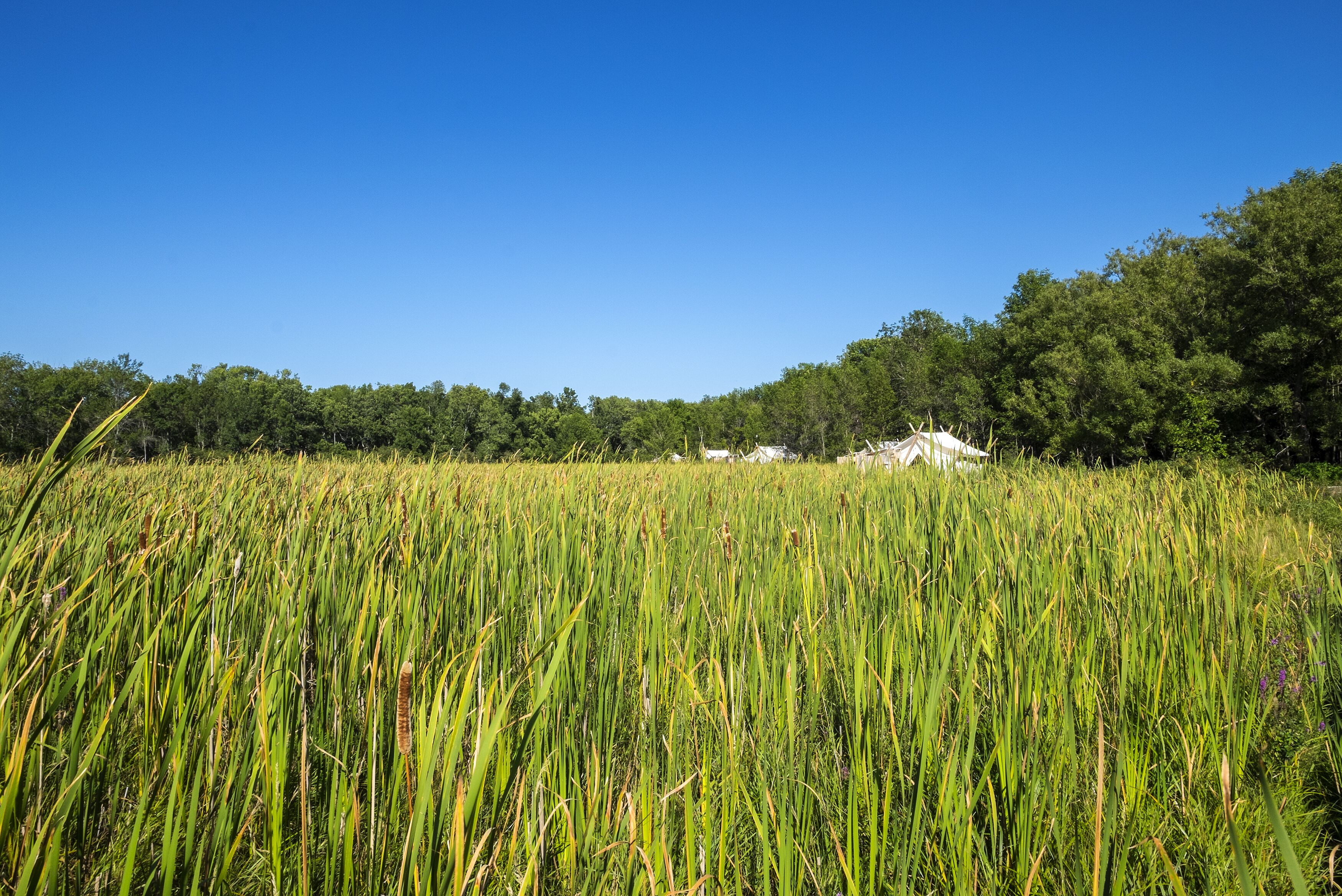CANVAS CABIN ON PRETTY FARM At the edge of a wildflower meadow with mountain views, this beautifully furnished glamping tent has a king-size water bed, sofa and private deck. Each tent has a kitchenette in the Lodge. There is a sweet new Bath House. Enjoy wood-fired pizza and our new all natural wood hot tub. Get fresh eggs from our henhouse. 40 acres of meadows, woods, pond, streams and trai...