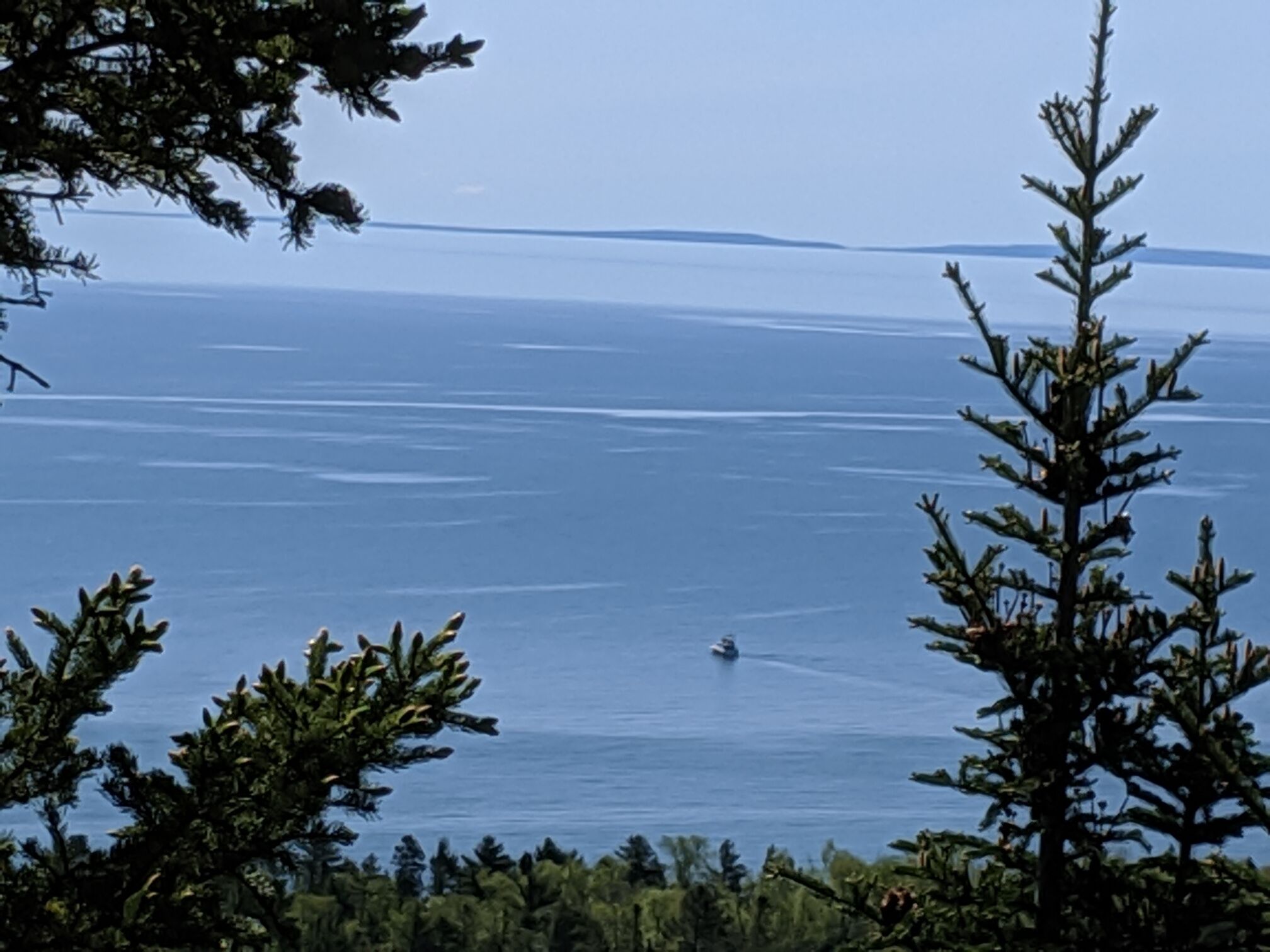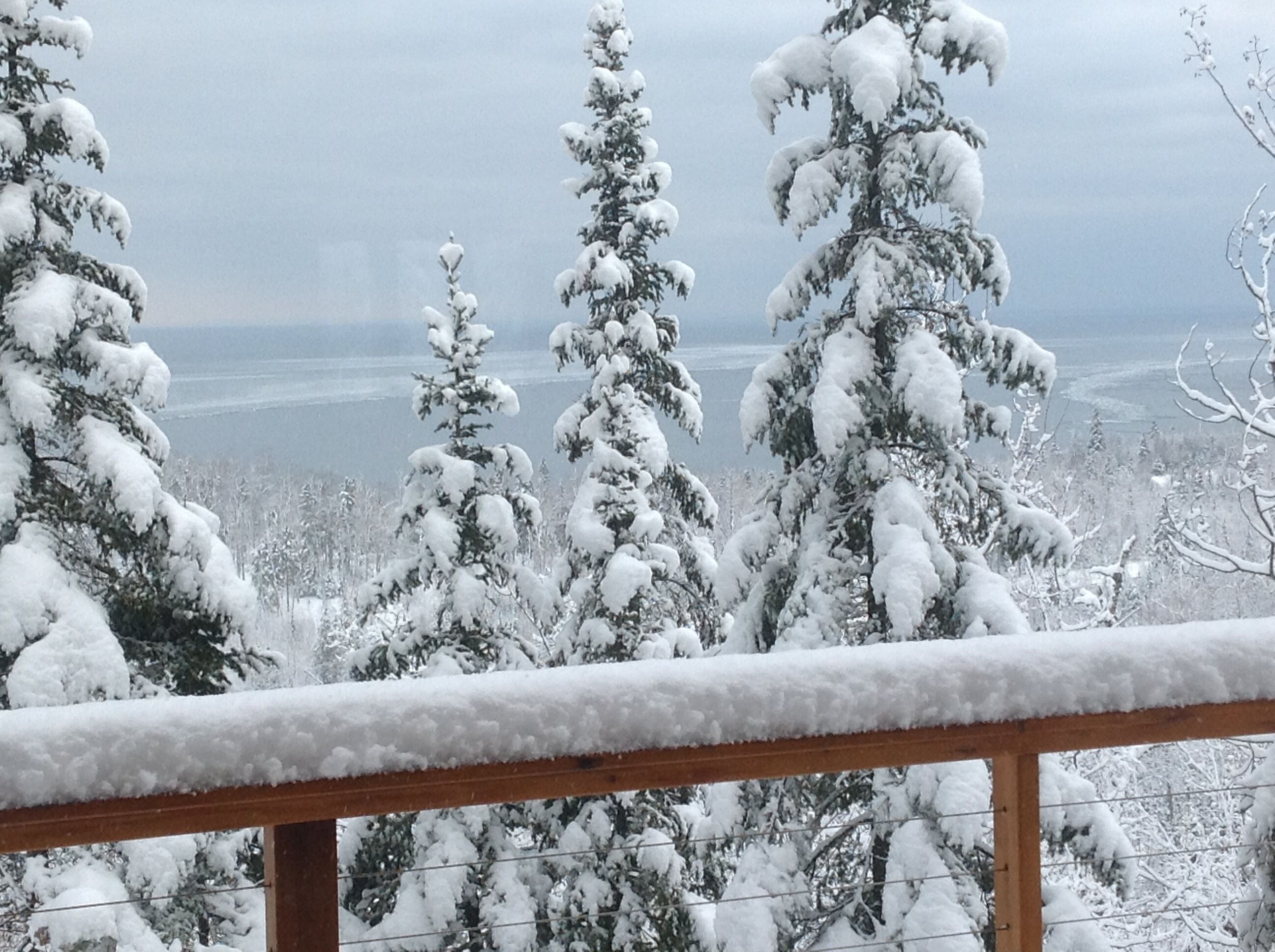 Tettegouche Log Cabin Lake Superior views, Sauna, 4 state parks Hand scribed log cabin perched high on a cliff overlooking lake superior. Surrounded by big red and white pines, it truly is the 'land of the pines.' Kick back on the deck or in the large screen porch and watch the ships coming and going from Silver Bay Harbor. Huge view of the lake and Palisade Head. Very private and peaceful.Tons to do, near Tettegouche, Judge Magney, Temperance and Split Rock state parks and Silver Bay Marina. Excellent waterfalls, Baptism river, swimming, hiking, fishing, biking, rock climbing, sailing, boating, kayaking, the list goes on...or a perfect spot to sit and take in the views and do nothing at all.Winter season brings a whole new array of activities and scenery. The snow covered white pines with the blue water of Lake Superior is amazing! We have a sweet dove tail wood fired sauna. There are 2 sets of snowshoes and trails from the door. Also several great cross country ski trails nearby, including Tettegouche State Park, where you can ski into an old hunting camp of several log cabins and a nice lodge. You can pack in a lunch and make a fire in the fireplace. There is also the Northwoods Ski Trail in Silver Bay and Flathorn-Gegoka in Isabella, just to name a few.There is a queen and a double bed in the loft with a huge skylight for star gazing and lightning storms. The screen porch also has incredible views and is a comfortable place to relax, there is also a comfy futon in the living room.Centrally located on the North Shore only 50 miles to Grand Marais, 58 miles to Duluth or 50 miles to Ely and the Boundary Waters. The Silver Bay Marina is only six miles away. Superior Hiking trail is a quarter mile. Ring doorbell is on site.Keywords: Log Cabin North shore Mn for rent, Rental, Lake Superior, North Shore, Sauna, Vacation Rental, Tettegouche State Park, Lutsen, Cross Country Skiing Nearby, Flathorn-Gegoka Trails, Snowmobiling, North Shore State Trail, Snowmobile the North Shore, Superior Hiking Trail, Finland, Red Dot trails, Palisade Head, Split Rock Lighthouse, Duluth, Great Lakes School of Log Building, North House Folk School, Crystal Cave, secluded sand beach, Grand Marais, Baptism River, Ely, Superior State Forest, Rent by Owner, Cabin rental, Sauna, MN, Minnesota, Wolf Ridge Environment Learning Center, close to Gooseberry state park, close to Split rock state park, close to Temperance state park, close to Crosby Manitou state park, Shovel point, black beach, honeymoon vacation rental, mini-moon vacation rental, most popular north shore vacation rental, romantic Cabin rental,Schroeder, Tofte.