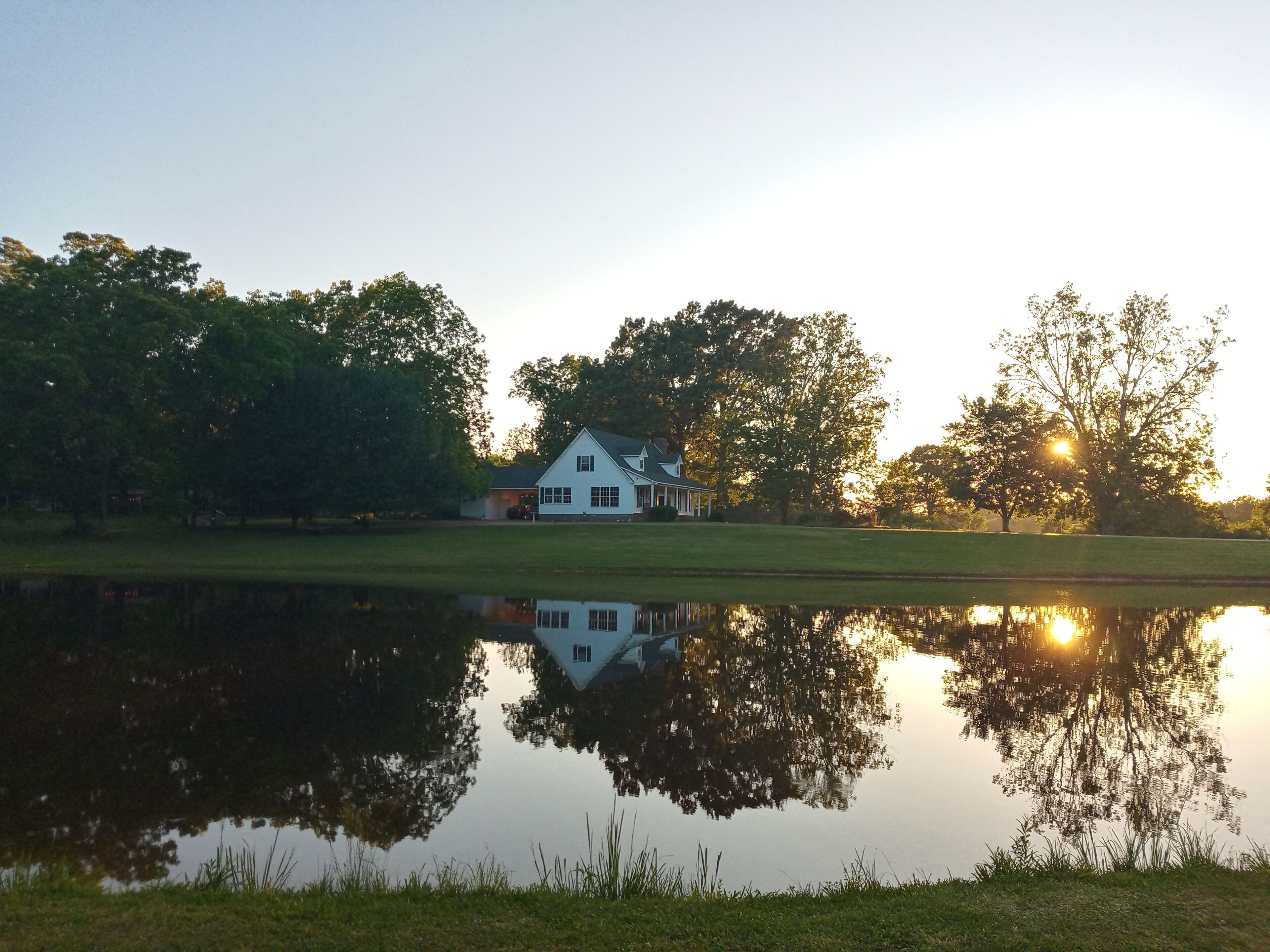 Tiny home cabin by the pond A beautiful little tiny Cabin guest house. Cabin is located behind the host family's house. Queen bed and futon couch ( ideal for small children). It has Private patio and fire pit. Take a walk on path through the woods to two additional fire pit/picknick areas, feed the goats and ducks, catch and release fishing. Kitchen with full stove/oven, microwave, mini fridge, coffee bar. Separate living room with futon couch. Wifi and Amazon prime.The Guest cabin is located on 11 acres behind the host family's house. Guests have access to all around the pond and cabin. Feel free to pet the goats and feed the ducks. Picknick table and fire pit across the pond view great sunsets. Hosts are available if you need anything.Your privacy is our priority- but you may see us going to the barn next to the cabin to take care of the animals😊