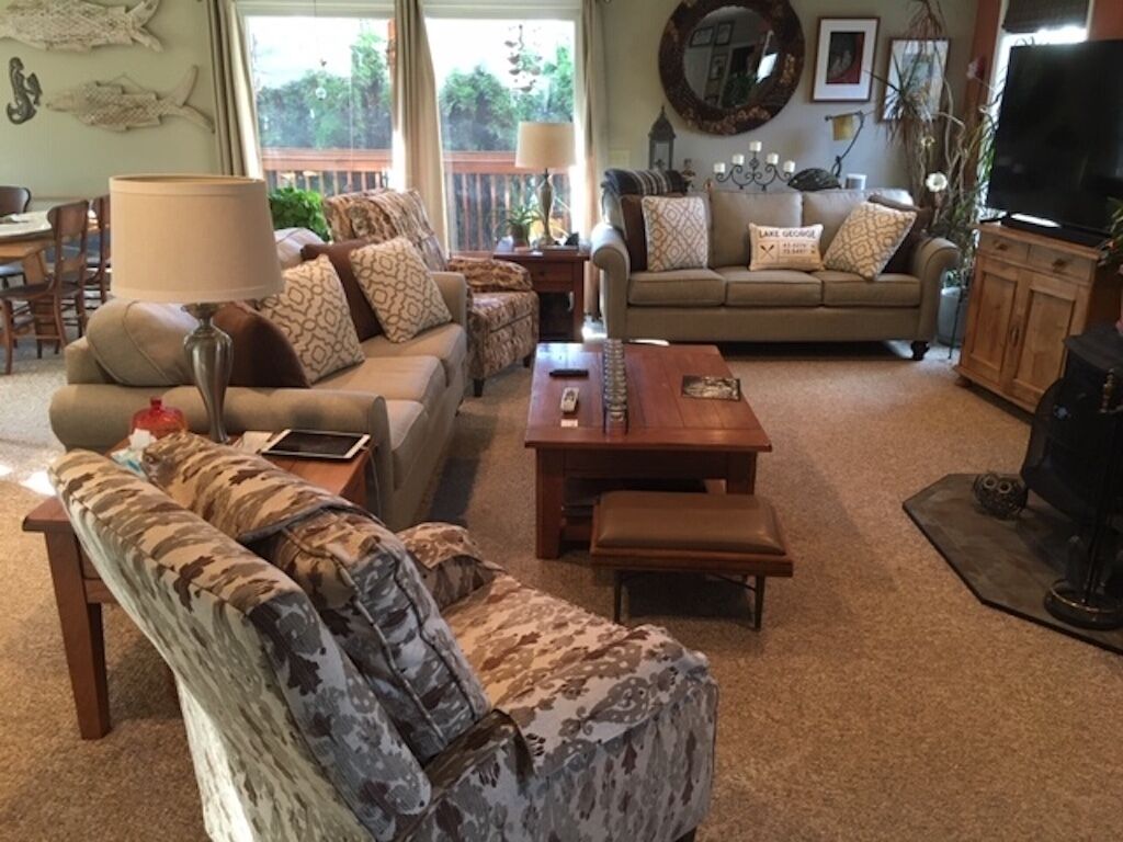 Beautiful 6 bedroom house short walk to Lake George On the east shore of Lake George, midway from the northern and southern points, is located the beautiful Huletts Landing summer resort. With mountain peaks as a background, heavily laden with sweet fragrance of pine and balsam, and the broad expanse of magnificent Lake George, Queen of the American lakes.This 3,600 Sq Ft year round home is walking distance to the lake, a nine hole golf course, sandy beach, two tennis courts, pickleball, volley ball and shuffle board court. Beach also has a large pavilion for family use. MBR with full bath and king bed4 Bedrooms with queen beds1 bunk room with 4 beds3 full bathsLarge family room on second floor with two couches, TV, treadmill, foosball and electric dartboardLaundry room with washer and dryerFull chef’s kitchen with utensils and cooking tools, two ovens, stove top, large fridge and freezer, microwave, icemaker and water cooler.Large dining room table seats 10, breakfast bar seats 6.Large living room with two couches, two recliners, 65” TV, high speed internet.All bedrooms, living room, dining room and family room have individual air conditioners.Two porches with back porch screened in to create a great reading room.Large 20’ x 25’ deck covered by gazebo. Table seats 8, porch seats 15. Beautiful view of lake. One car garage. Driveway fits 4 cars.Extras include everything you need for a wonderful vacation:Golf cartExtra linens6 beach chairs5 rafts and floatsBeach umbrella4 coolers4 tennis racquets4 pickleball racquetsNew weber grill2 single kayaks9 hole golf course within walking distance18 hole golf course 15 minutes awayMany adirondack hiking trails close byVermont 30 minute driveSaratoga Race Track 1 hour driveMontreal 2 ½ hour drive
