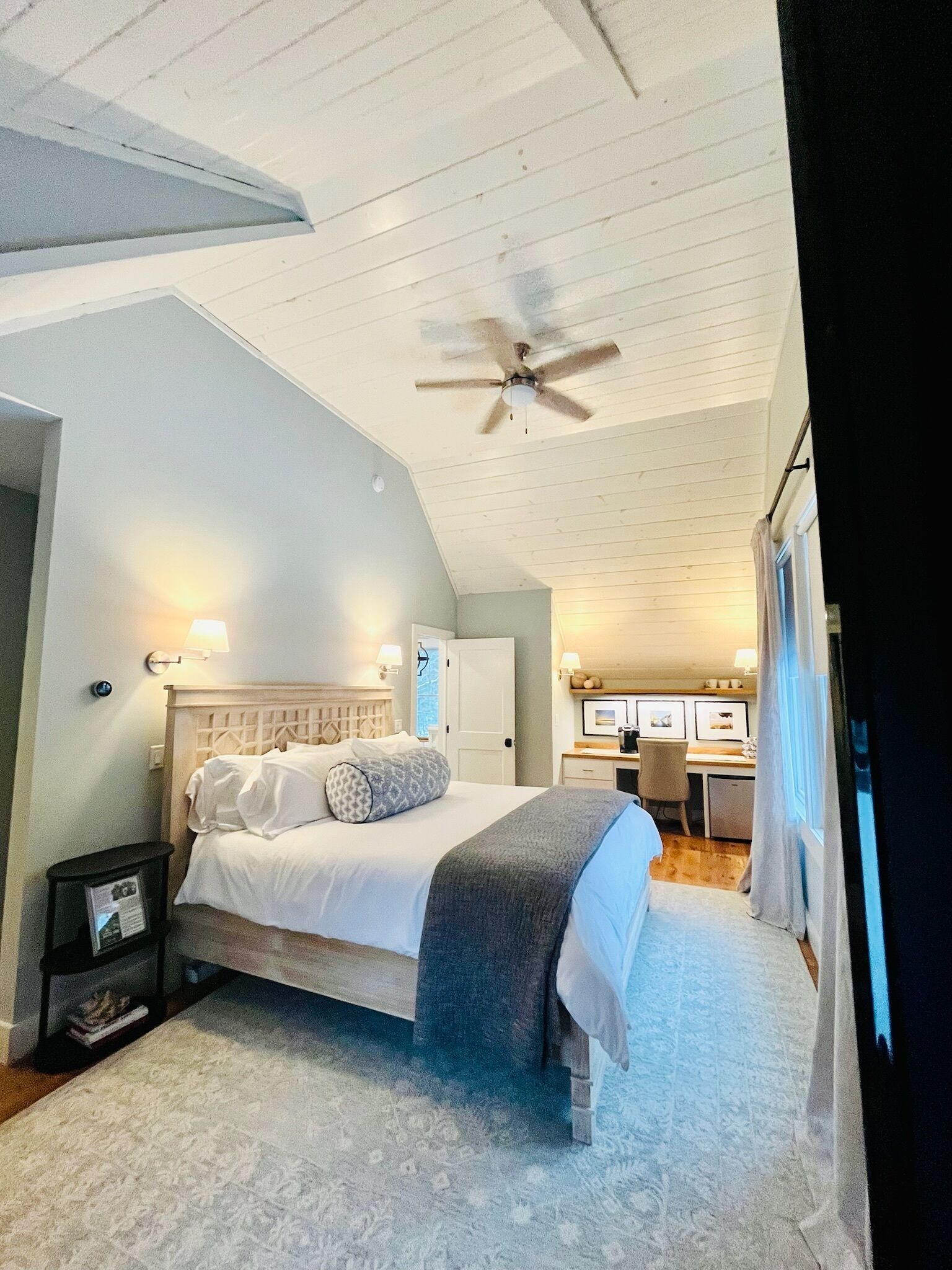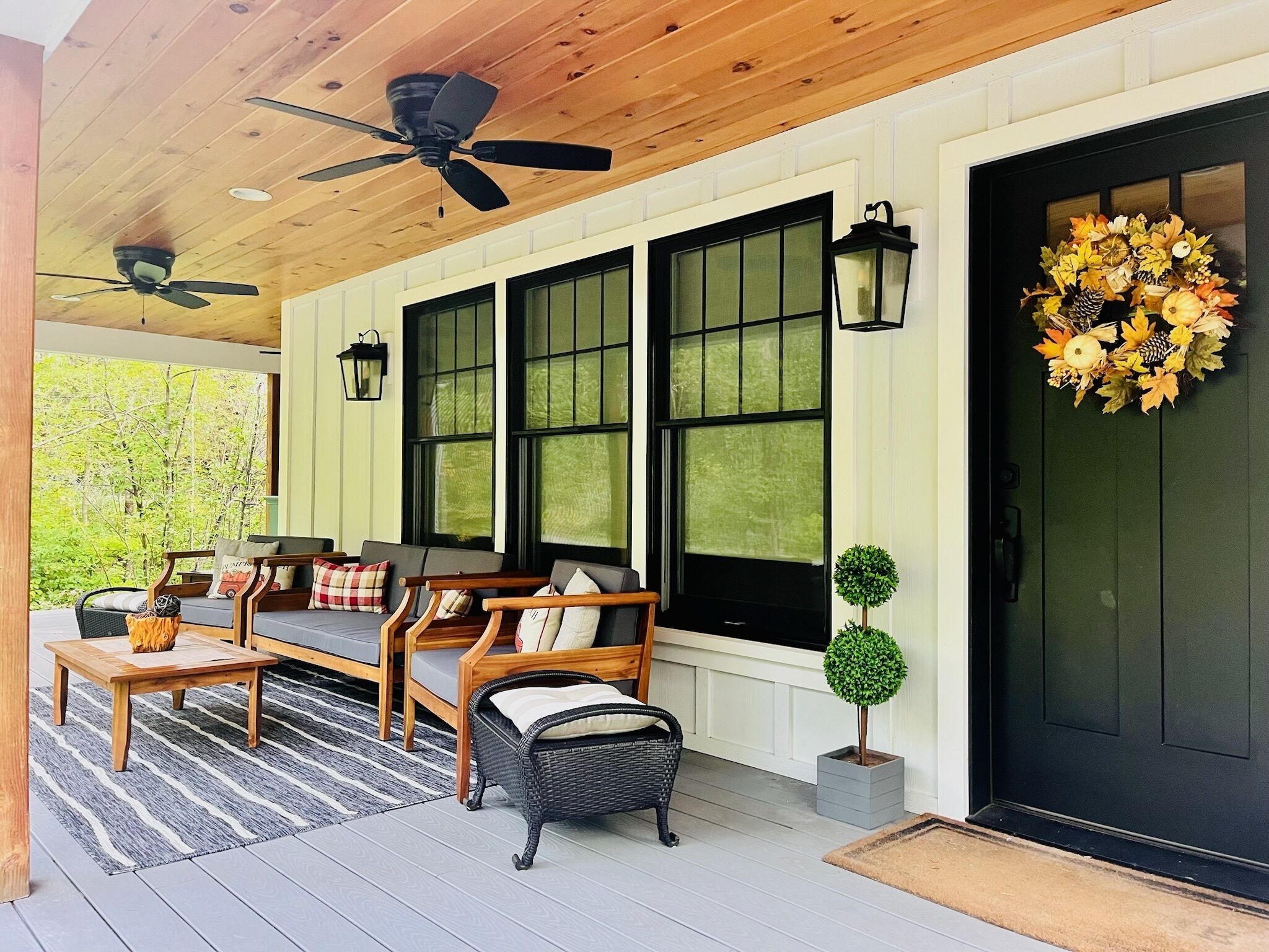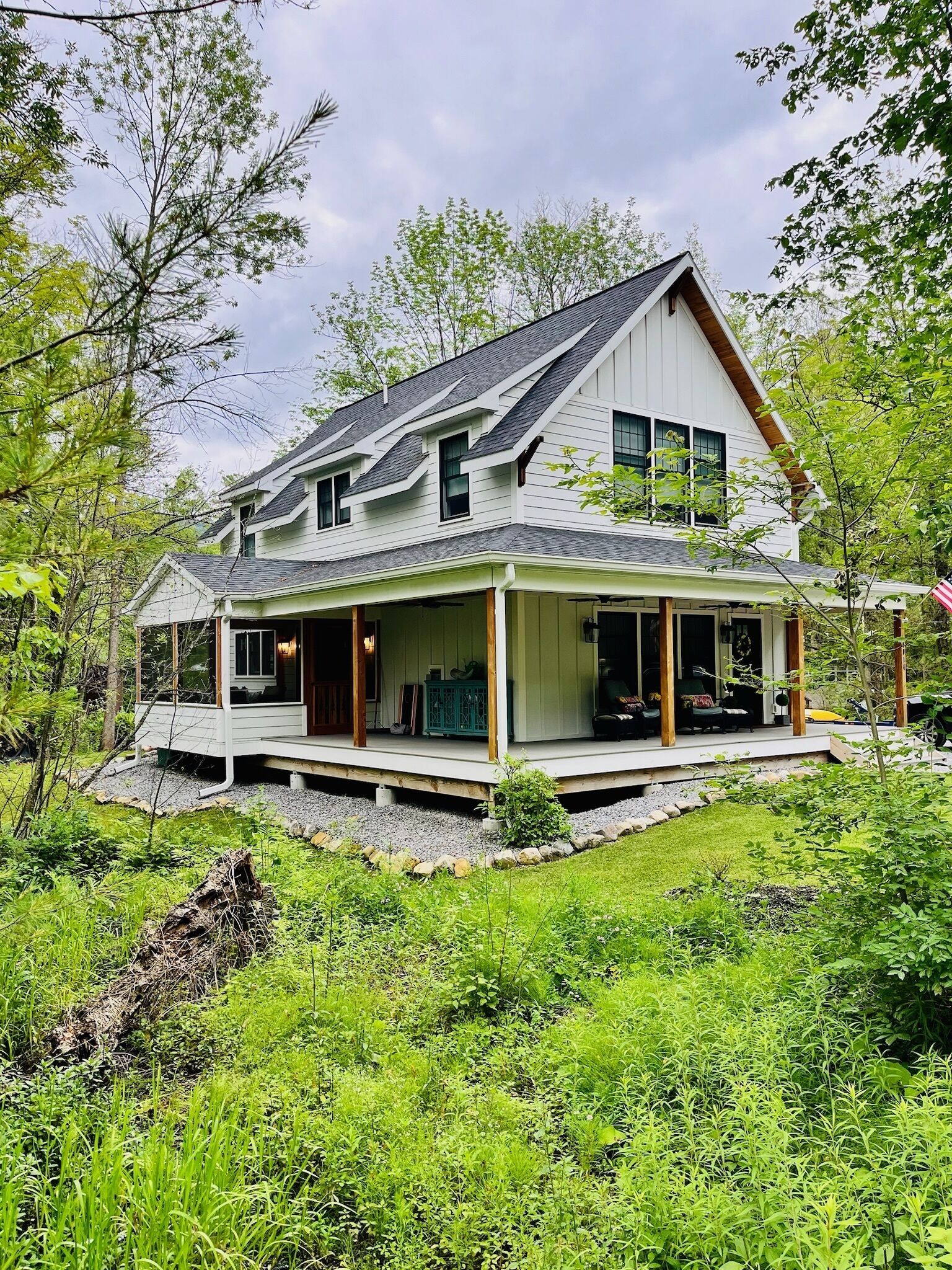 39- 5 Star Reviews on AirB, No Cleaning Fee, New Everything, CAC & Walk to Water Our newly constructed custom designed home has a wrap around porch, screened in room overlooking a creek with sectional dining seating, back grilling porch, chefs kitchen with island, built in bar, dining table, and cozy sectional and fireplace in open concept living area. The first floor also has a half bath and sleeping nook with a twin sized bed. Upstairs you will find a primary bedroom suite with seating are, coffee station, built in desk and custom closets, as well as a large cast iron jetted tub, custom double vanity, tiled shower and water closet. Down the hall, also on the second level, you will find a wardrobe and with linens, towels, and extra pillows and blankets. A tiled bathroom with shower is shared by two queen-sized bedrooms. Walk to Washington county beach where you will find tennis and basketball courts, grills, picnic tables, swings, bathrooms and areas for yard games. In season, there is also golf, a marina with a store, an ice cream shop, and bar. Black mountain and additional hiking areas are near by.