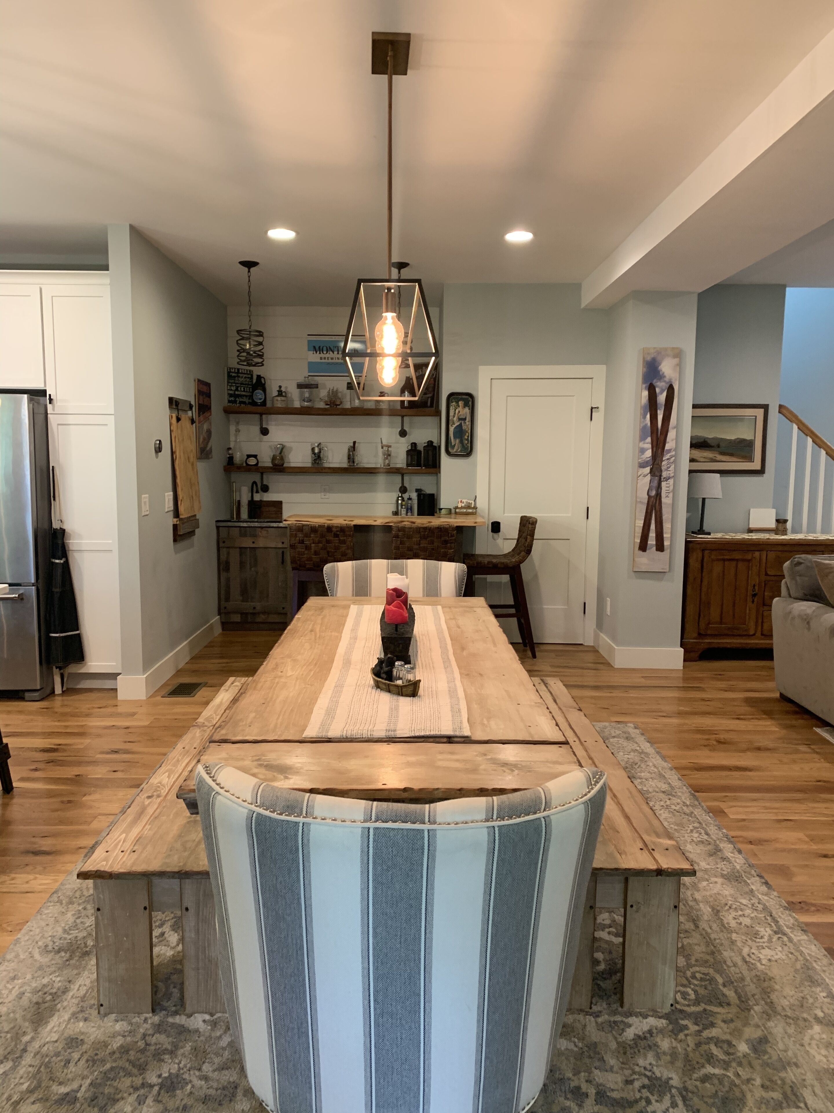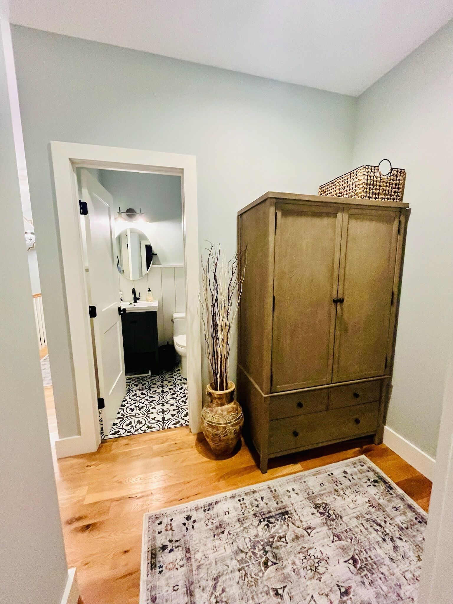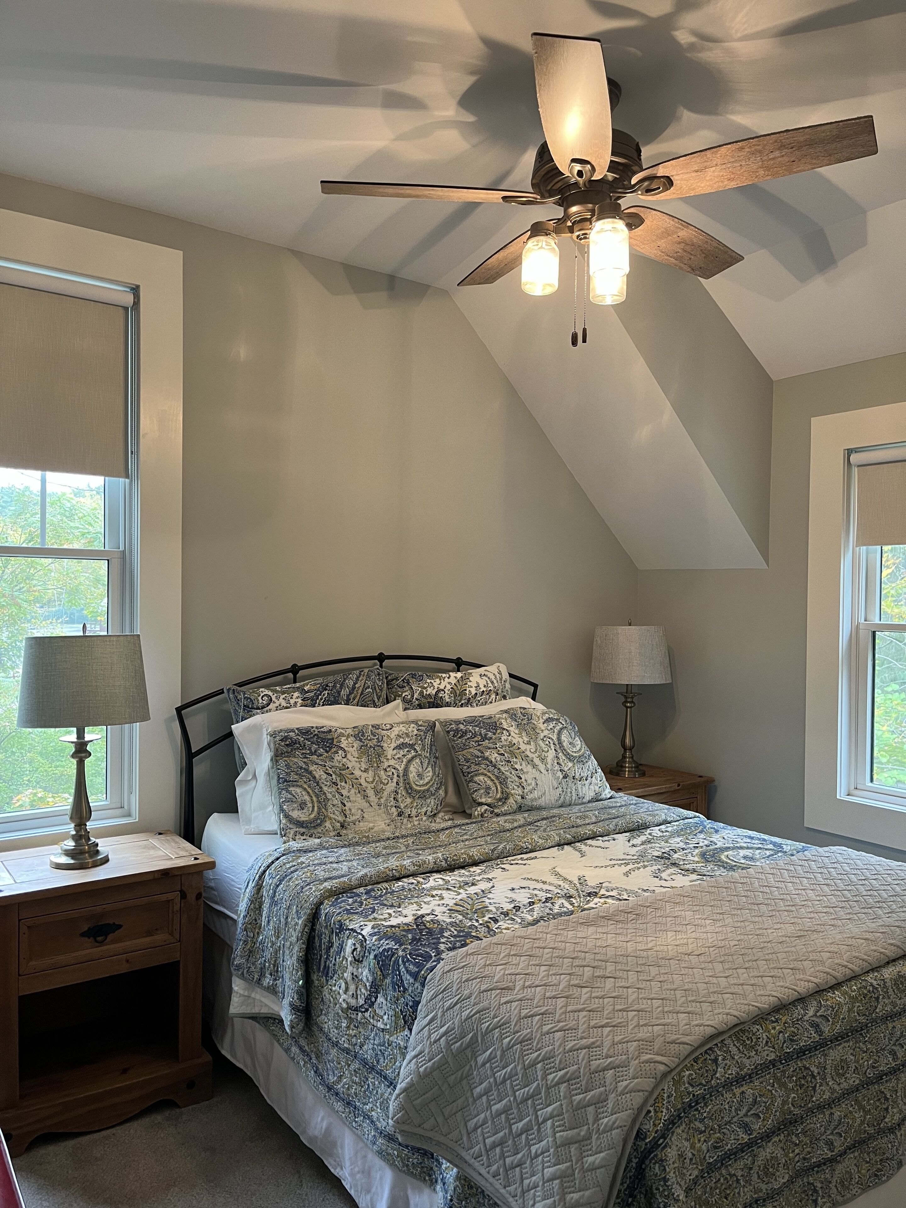 39- 5 Star Reviews on AirB, No Cleaning Fee, New Everything, CAC & Walk to Water Our newly constructed custom designed home has a wrap around porch, screened in room overlooking a creek with sectional dining seating, back grilling porch, chefs kitchen with island, built in bar, dining table, and cozy sectional and fireplace in open concept living area. The first floor also has a half bath and sleeping nook with a twin sized bed. Upstairs you will find a primary bedroom suite with seating are, coffee station, built in desk and custom closets, as well as a large cast iron jetted tub, custom double vanity, tiled shower and water closet. Down the hall, also on the second level, you will find a wardrobe and with linens, towels, and extra pillows and blankets. A tiled bathroom with shower is shared by two queen-sized bedrooms. Walk to Washington county beach where you will find tennis and basketball courts, grills, picnic tables, swings, bathrooms and areas for yard games. In season, there is also golf, a marina with a store, an ice cream shop, and bar. Black mountain and additional hiking areas are near by.
