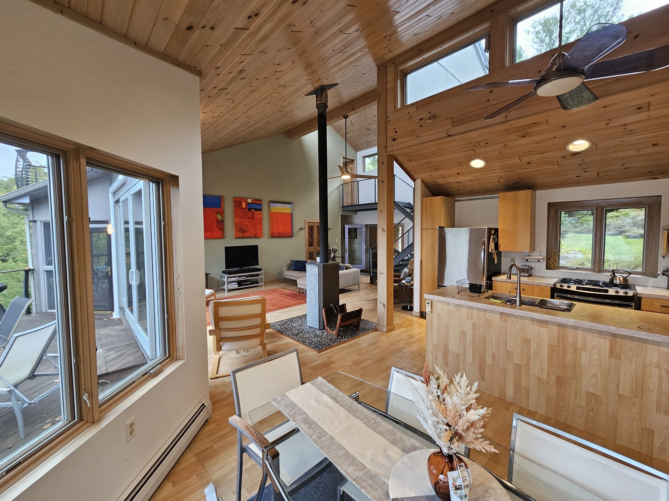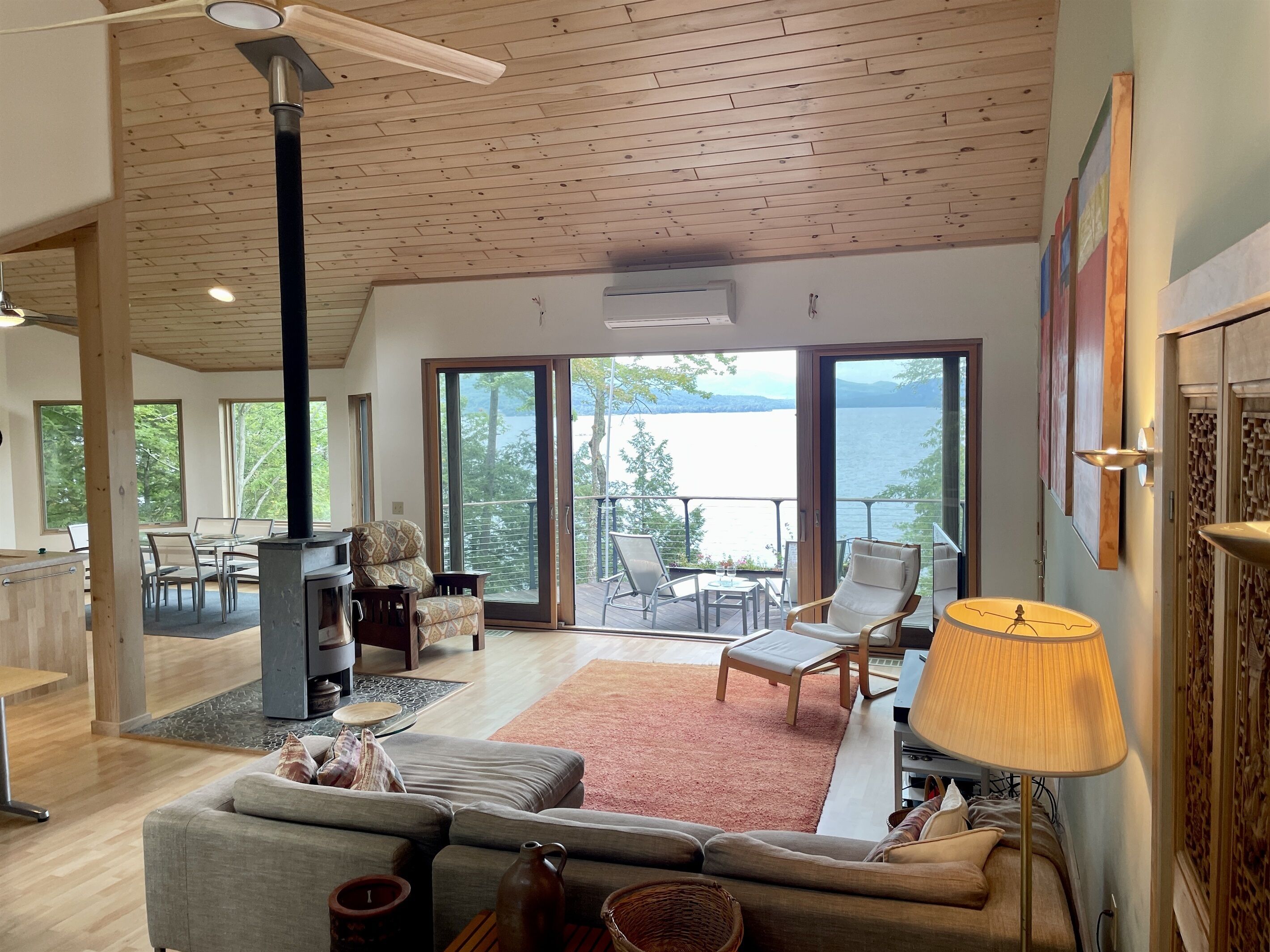 Stunning 4Bdrm Lake George Waterfront Experience Serene Luxury on Gull Bay - Your Lake George RetreatNestled in the heart of the Adirondacks, our stunning 4-bedroom, 3-bathroom vacation rental awaits your arrival. Perched majestically above the crystal-clear waters of Gull Bay on Lake George, this picturesque escape promises an unforgettable experience for up to 8 guests.Prepare to be captivated by the breathtaking panoramic views that greet you from every angle of this property. With decks extending from every room, you can savor your morning coffee while watching the sunrise or unwind with a glass of wine as the sun sets over the serene waters below. The gentle rustling of leaves and the soothing lull of the lake provide a natural symphony that invites relaxation.Inside, you'll find a spacious and thoughtfully designed retreat. The open-concept living area is bathed in natural light, creating a warm and inviting ambiance. The fully equipped kitchen, complete with modern appliances and ample counter space, beckons to culinary enthusiasts. Share meals and stories around the large dining table, perfect for family gatherings.Our 4 well-appointed bedrooms offer comfortable sleeping arrangements for your group. The master suite, with its private deck, invites you to wake up to the shimmering waters of Gull Bay. Three additional bedrooms provide flexibility and privacy for your guests. With 3 bathrooms, including one with a luxurious soaking tub, you'll find convenience and comfort throughout your stay.On your private dock, you'll find access to the pristine waters of Lake George. Spend your days swimming, kayaking, or simply soaking in the natural beauty of Gull Bay. We provide kayaks for your use, allowing you to explore the bay at your leisure. There is a beach at Gull Bay that you can use for swimming and sun bathing. There is also a pu-in for boats if you want to bring your own boat and tie-up at our dock.While Gull Bay offers tranquility and seclusion, you're only a short 10-minute drive from Ticonderoga, where you can explore historic sites such as Fort Ticonderoga or the Heritage Museum, dine at local restaurants, and stock up on supplies. The Adirondack region offers a plethora of outdoor activities, from hiking and biking to fishing and boating, ensuring there's something for everyone.Escape to our Gull Bay retreat and discover the true essence of Adirondack living. Whether you seek adventure, relaxation, or a bit of both, our vacation rental promises an experience you'll treasure forever. Book your stay today and make memories that will last a lifetime.