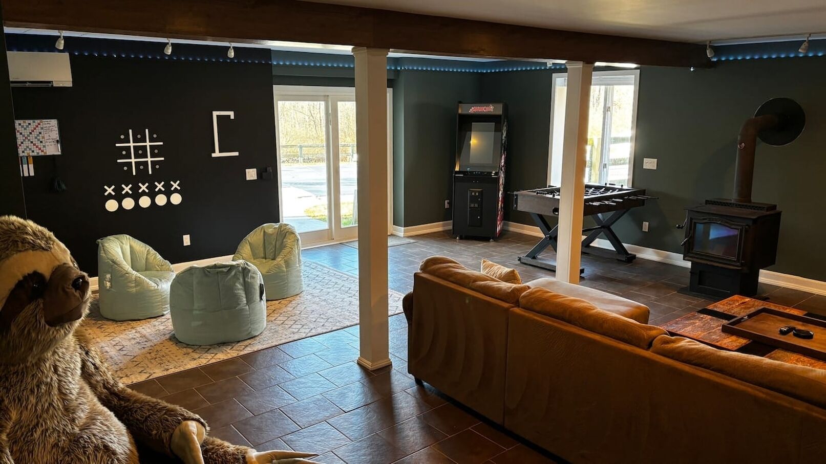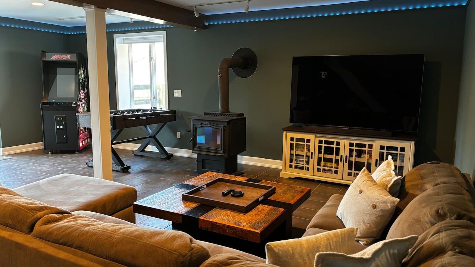 Modern Retreat w/ Pool GameRoom Firepit HBO Private Pool [MidMay - MidSeptember]Grill & Outdoor Seating Area, FirepitUnforgettable Game Room with life size games, foosball, and an arcade machineMultiple desks for Remote WorkingGym Room w/ Weight SetFireplace[Save us for later! Add us to your wishlist by clicking on the ♥ in the upper right hand corner!]★ ADDITIONAL KEY FEATURES ★✔ 3 bedrooms + Off...