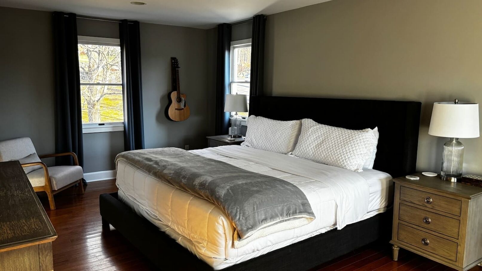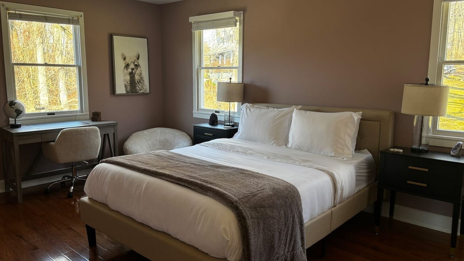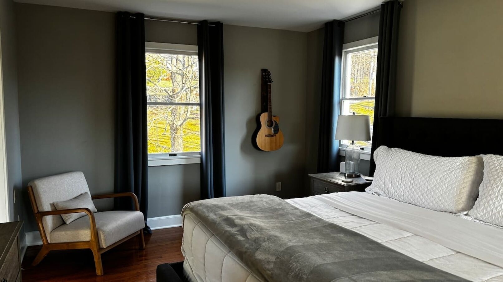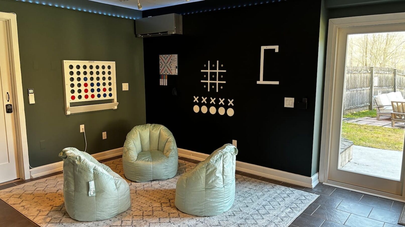 Modern Retreat w/ Pool GameRoom Firepit HBO Private Pool [MidMay - MidSeptember]Grill & Outdoor Seating Area, FirepitUnforgettable Game Room with life size games, foosball, and an arcade machineMultiple desks for Remote WorkingGym Room w/ Weight SetFireplace[Save us for later! Add us to your wishlist by clicking on the ♥ in the upper right hand corner!]★ ADDITIONAL KEY FEATURES ★✔ 3 bedrooms + Office w/ Full Size Murphy Bed✔ Multiple Smart TV's (Free HBOMax)✔ Board Games✔ Washer / Dryer✔ Modern Kitchen w/ Dishwasher✔ Large Kitchen Dining Area for the whole group✔ Drip Coffee Maker✔ Parking for 3 cars✔ Self Check-In 24/7A few kind words from past guests:"Wonderful home; perfect for relaxing and entertaining family and friends." - Myra"The house was terrific and very well appointed. The beds were comfortable. Everyone loved the game room!" - Joanne"This house was amazing! Had everything you could ask for and more!! Sara was an extraordinary host that went out of her way to make our stay phenomenal. Will definitely stay again." - James"Amazing stay! Really loved the house and the location. And there were still so many amenities we didn’t even get to take advantage!" - Devika★ PRIMARY BEDROOM ★✔ King size bed and mattress ✔ Dresser storage✔ Walk-In Closet w/ hanging storage✔ Full length mirror✔ Private full size bathroom✔ Charming lounging corner / bench✔ Accent Chair✔ 2 nightstands and Lamps✔ Samsung Smart TV, use your login for any apps✔ Blackout curtains★ SECOND BEDROOM ★✔ Queen size bed and mattress ✔ Large mirror✔ Desk & Desk Chair✔ Cozy accent chair✔ Luggage Rack✔ 2 nightstands and Lamps✔ Blackout shades★ THIRD BEDROOM ★✔ Queen size bed and mattress ✔ Desk & Desk Chair✔ Closet w/ hanging storage✔ Luggage Rack✔ Blackout shades★ OFFICE / FUTON ★✔ Full size Murphy bed✔ Desk & Desk Chair✔ Shelving for Storage✔ Light filtering shades for privacy★ BATHROOMS ★1. Lower half bath2. Upper full bath w/ walk-in shower3. Upper full bath w/ tub and shower★ FAMILY ROOM ★✔ Comfortable 3 seater and 2 seater couches ✔ Samsung Smart TV, use your login for any apps✔ Large sturdy coffee table for games and activities✔ Gorgeous reading shelves full of books ✔ Light filtering shades★ LIVING ROOM ★✔ Fireplace w/ provided wood✔ 3 Seater Leather Couch✔ Accent Chair and Bench✔ Hooks for personal items✔ Light filtering shades ★ KITCHEN / DINING ★✔ Coffee bar w/ ground coffee and drip coffee maker ✔ Pots & pans, glass baking dishes, Colander✔ Measuring cups and spoons✔ Cutting Boards ✔ Spatula, Can Opener, Whisk, Tongs✔ Electric Kettle✔ Kitchen Island w/ 3 stool seating✔ Dishes & Silverware ✔ Dishwasher, Microwave, Refrigerator, Stovetop, Oven✔ Toaster✔ Grilling tools✔ Foldable High Chair✔ Beautiful acacia table w/ bench seating for 8✔ First Aid Kit, Fire Extinguisher, Fire Blanket★ DEN / GAME ROOM ★ ✔ Comfortable Seating✔ Large Screen TV✔ Board Games✔ Children's Reading Nook✔ Large Size Connect 4 / Scrabble / TicTacToe / Hangman✔ Arcade Machine✔ Foosball Table✔ Remote control LED Lighting.We respect diversity and inclusion. Our home is open and accepting of guests from all backgrounds.★ RENTAL CONTRACT ★We have disclosed the terms of our Rental Contract in the Additional Rules section of the House Rules. This contract includes house rules, liability regarding on site activities, and fees for breaking rules. By booking this property you acknowledge that you have read, understand and agree to be bound by all terms, conditions, and policies in the Rental Contract.★ DOG RULES ★One dog is allowed for a fee of $75. We require dogs to be:✔ Over the age of 1 year old✔ Under 50 pounds✔ Housebroken and leash trained✔ Not considered a "heavy shedder"✔ Not an excessive barkerThe yard is NOT entirely fenced in and dogs must ALWAYS be on a leash when outdoors. All pet waste must be disposed of properly in the outdoor trash bins. Note that dogs are not allowed in the pool. Any damage caused by your pet will be charged back to you! ★ ADDITIONAL NOTES ★✔ You must be 25 or older to rent this home✔ Please note this home is in a neighborhood setting and is not remote. You can hear street noise from the front of the house, but the noise is mostly drowned out by nature in the back area. Please respect quiet hours!✔ The wood burning fireplace on the main floor is available for use by guests, but the wood burning stove in the den is off limits. Please only use fireplace if you are comfortable and have previous experience. There may be leftover wood there upon your arrival, but that is not guaranteed. ✔ Your safety matters. The property has three security cameras on the property that record video and audio upon motion: the front door doorbell, an overhead camera looking down on the driveway, and an overhead camera looking down at the back door entrance. There are NO cameras in or around the pool area. No cameras face any interior spaces.✔ Please note use of the gym and pool is at your own risk. The pool is roughly 40ft x 20ft. If you are staying with us in May or September please inquire whether the pool will be open for your stay. ✔ While we work to create a safe space for all ages, be sure to watch children carefully at all times.