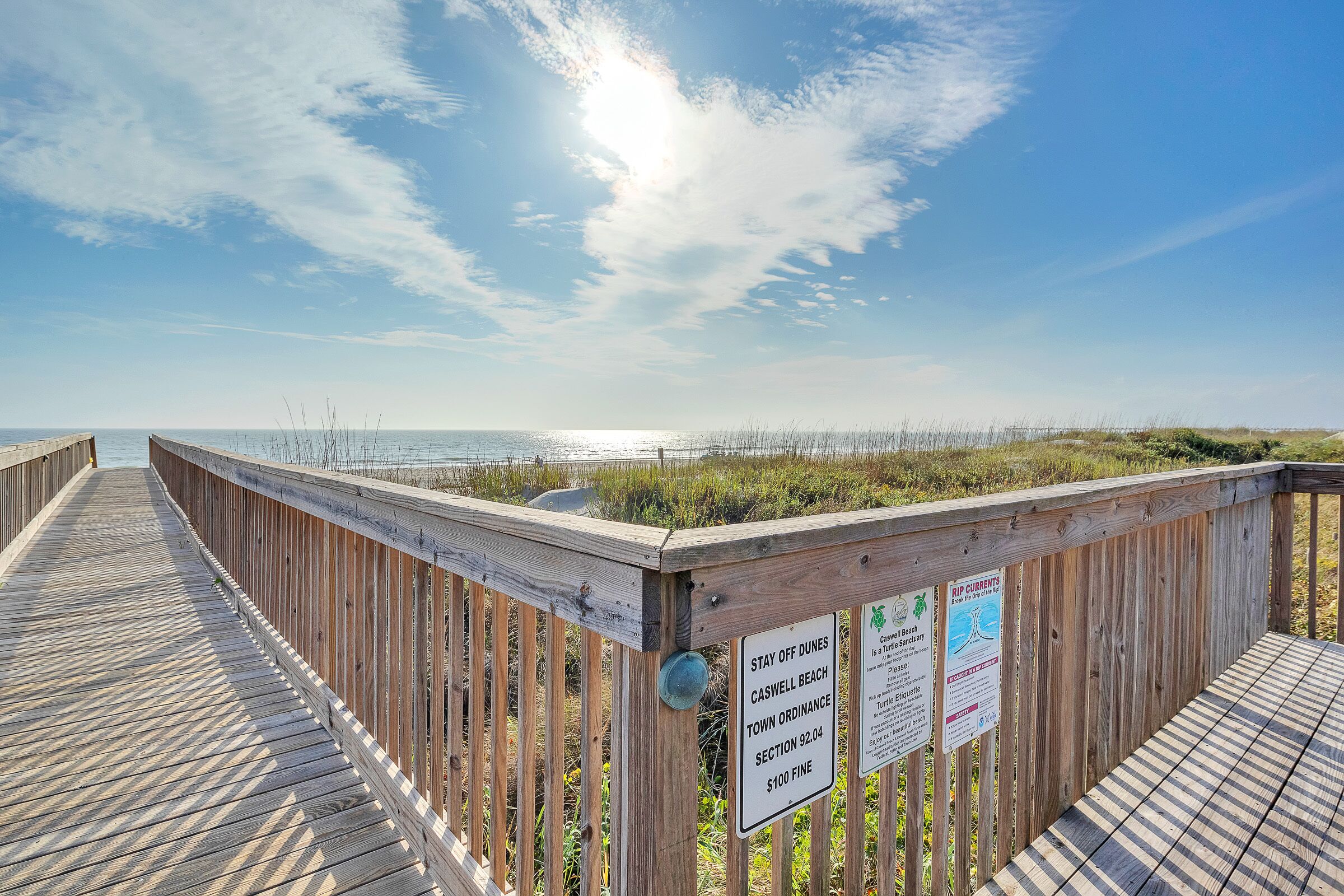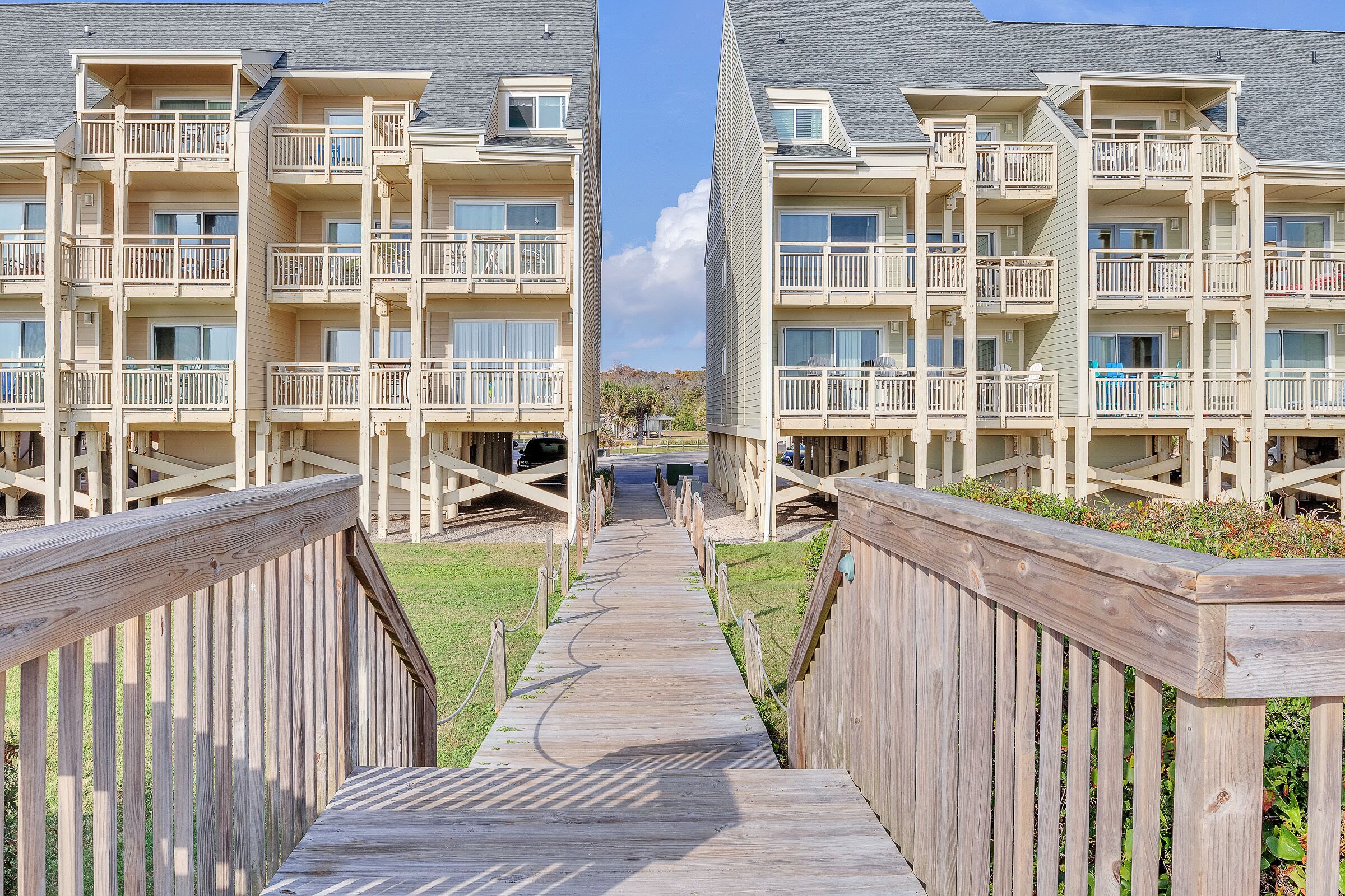 House at the Beach: Oceanfront Condo with Covered Porch and Community Pool 2 Bedrooms | 1 Full Bathroom | 3rd Level Condo1 Queen | 2 TwinsOne Amazon Fire TV in living room (requires an Amazon account to sign in) and one Roku TV in the master bedroom, wireless internet. Oceanfront covered porch with furniture, walkway to beach, seasonal pool access, grilling area. Each unit has outside shower for rinsing off. Across the street from Oak Island Golf Club and Duffer's Bar and Grill. Hardwood floors, carpet and tile throughout, walk-in shower with seat. This is a third-level condo with stair access. Off season monthly rentals available.The OIBV pool is open annually from Memorial Day to Labor Day. Specific condo communities may keep the pool open past Labor Day depending on the homeowner's association's recommendation.