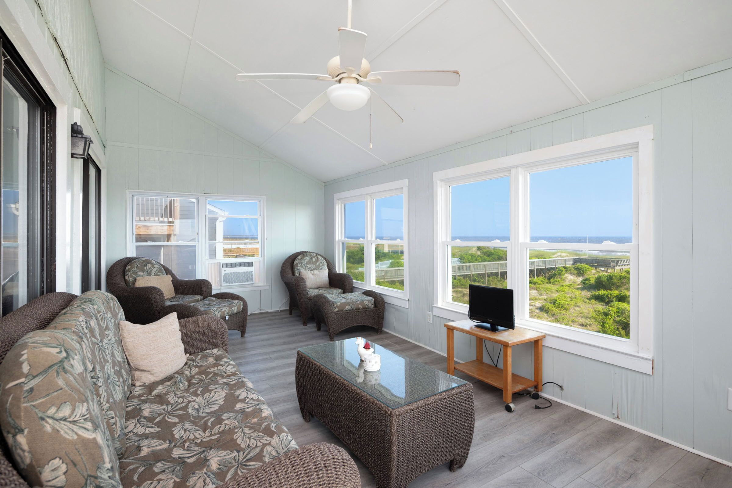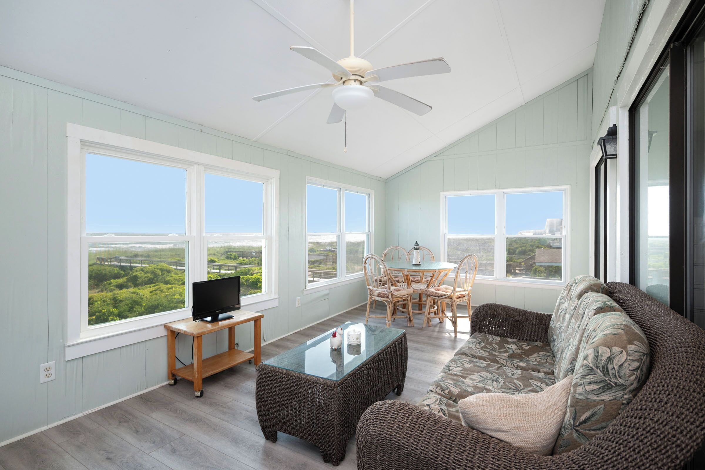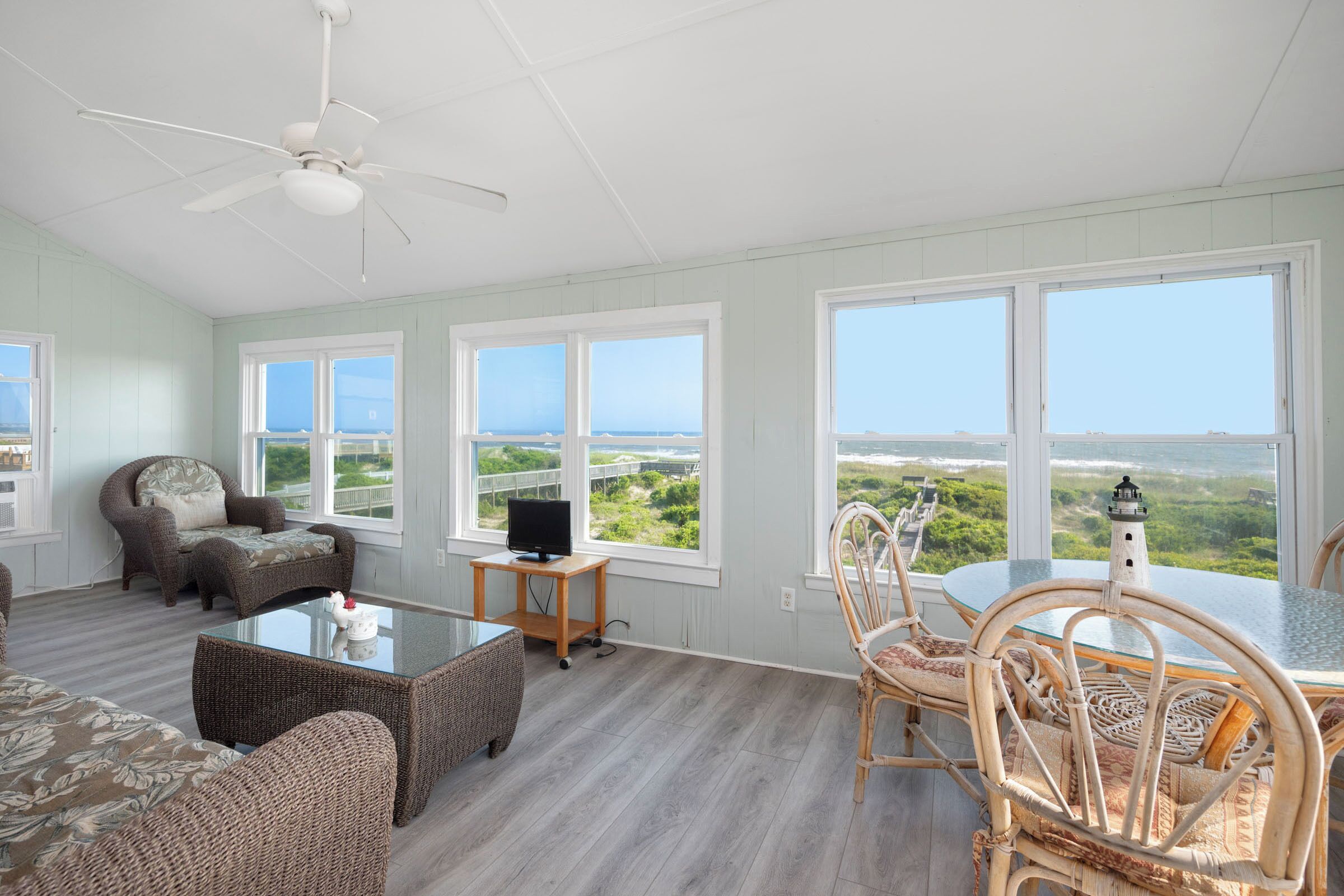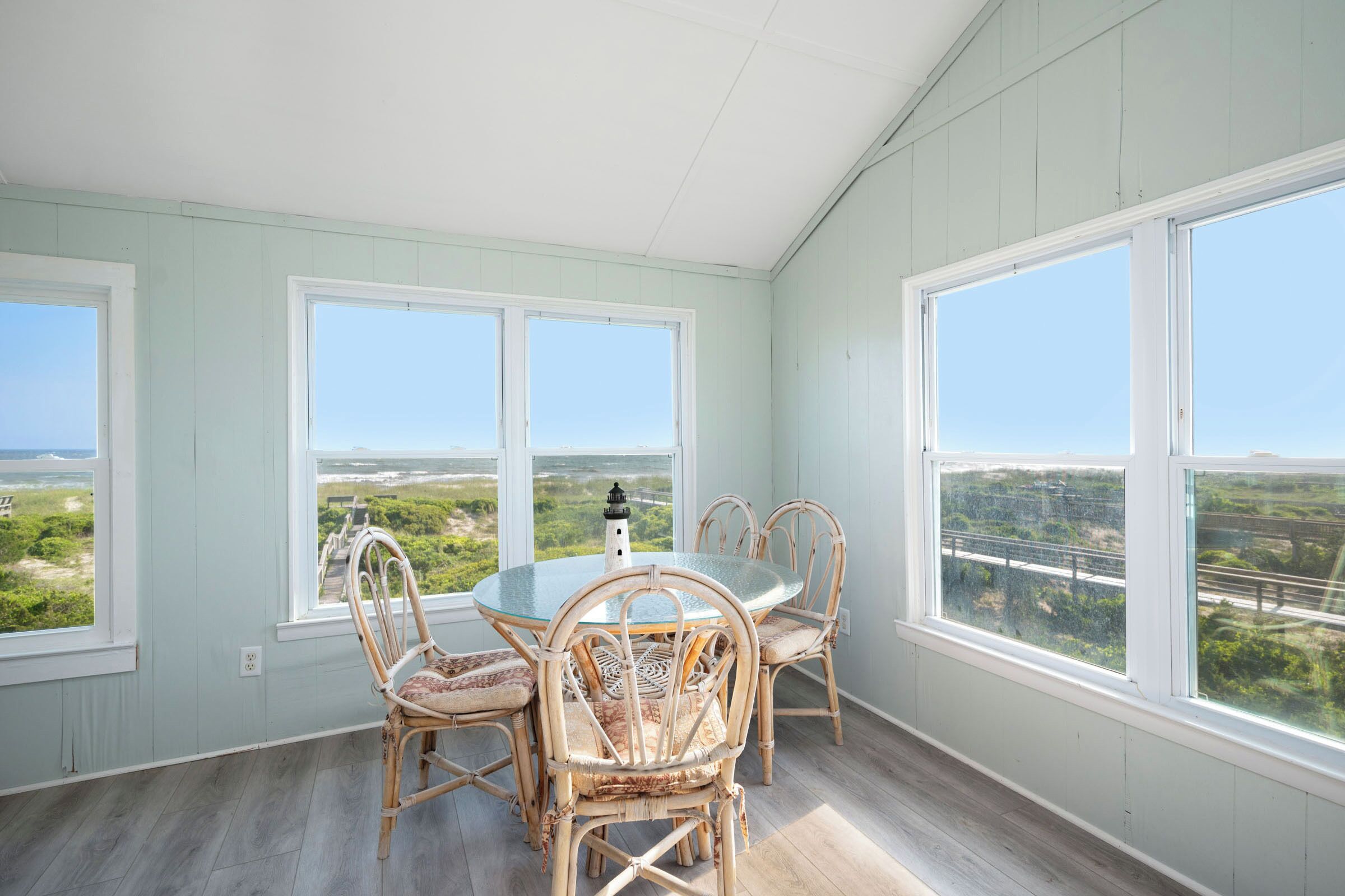 Sea Salt: Sunlit and Airy Remodeled Beachfront Home on Caswell Beach 4 Bedrooms | 2 Full Bathrooms1 King | 1 Queen | 1 Double | 2 Twins Two TV's with basic cable, wireless internet access. This vacation rental welcomes up to two dogs per reservation year-round and for off-season monthly rentals.This gorgeous coastal gem reflects the breathtaking natural surroundings throughout its interior spaces with calming shades of blue and aqua enhanced with accents in sand, driftwood and cloud white. The open concept living area includes an updated kitchen with stainless steel appliances. Spiral stairs lead up to a loft which features an amazing sunroom with comfortable furniture and plenty of space for lounging, dining, or just taking in the view. Outside, you’ll find a covered porch, outdoor shower with hot and cold water and a dune top perch where built-in benches provide a front row seat to watching your family enjoy themselves on the beautiful beachfront.