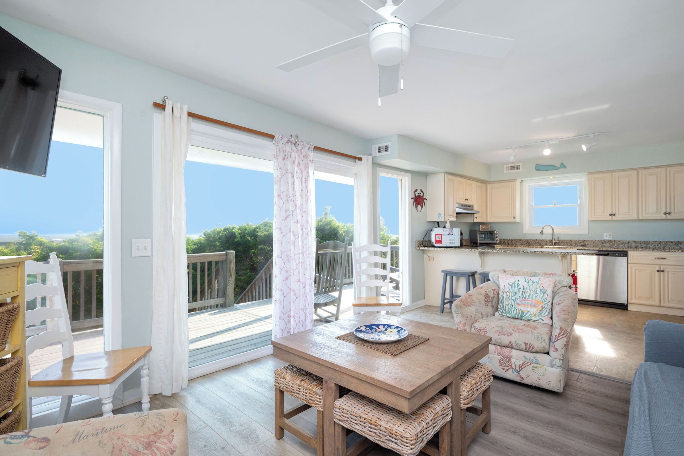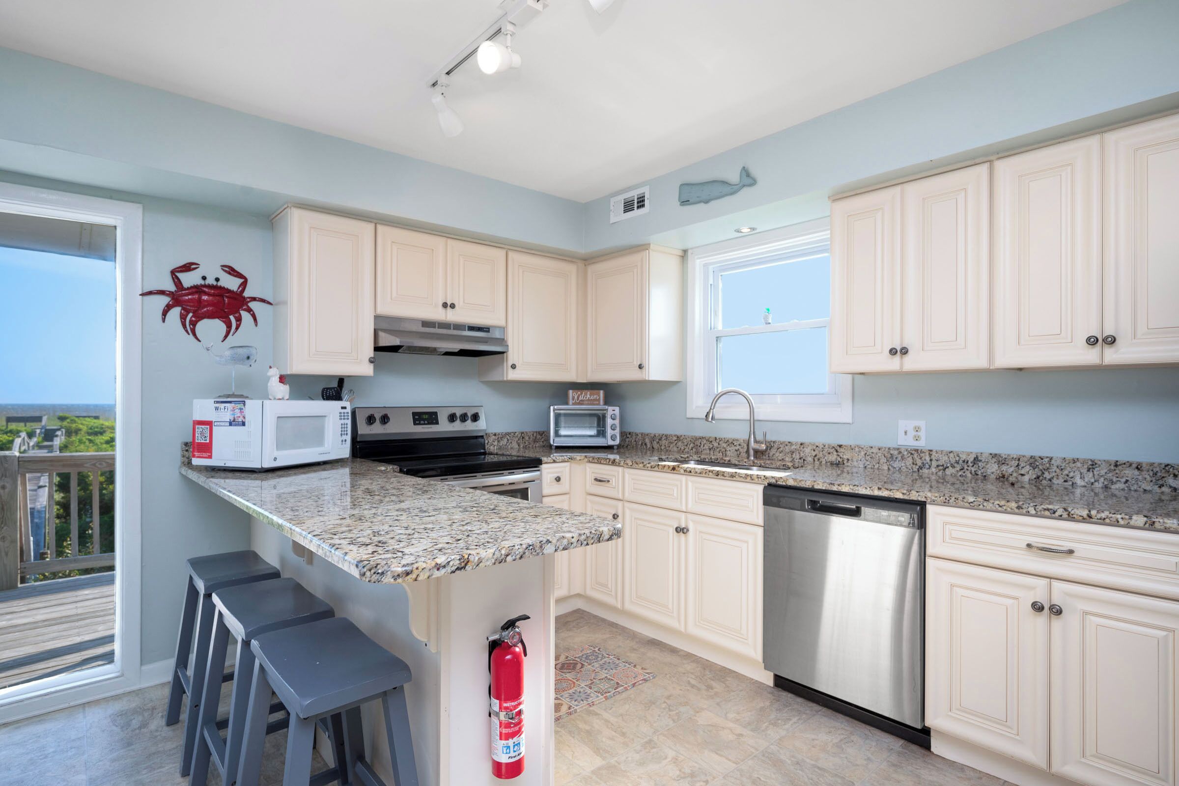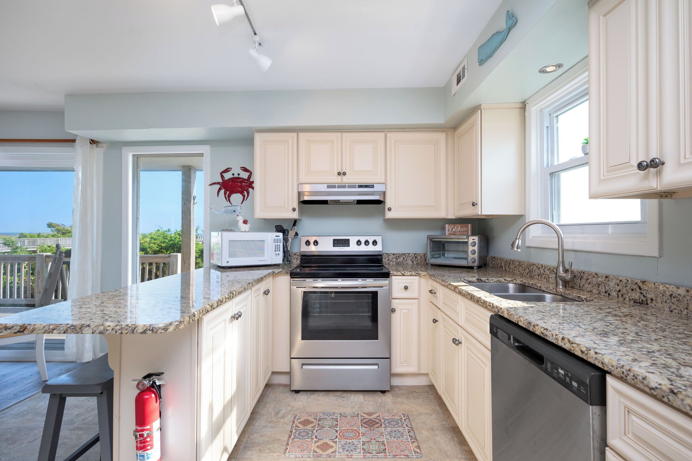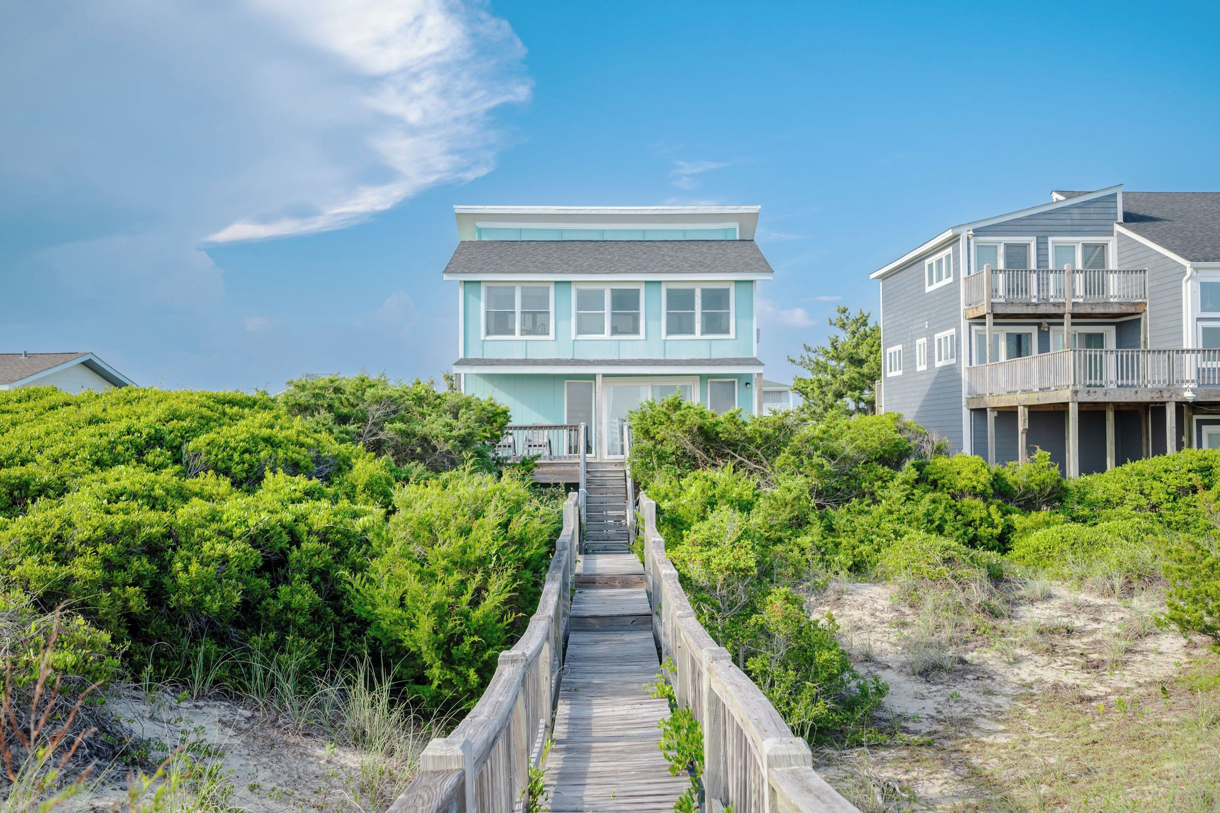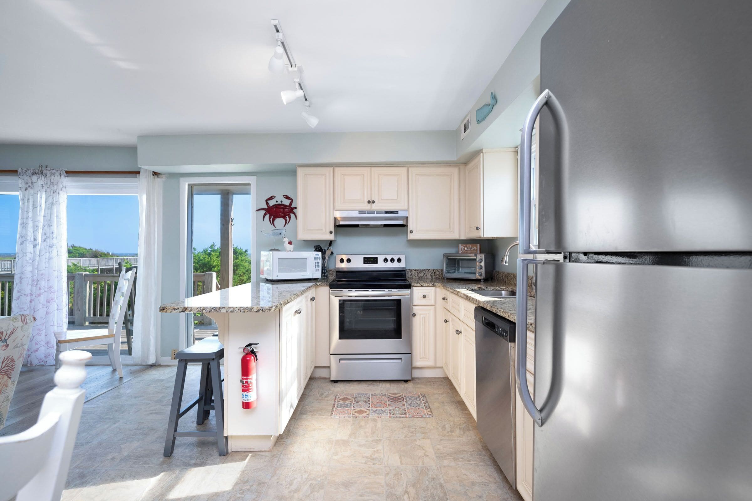 Sea Salt: Sunlit and Airy Remodeled Beachfront Home on Caswell Beach 4 Bedrooms | 2 Full Bathrooms1 King | 1 Queen | 1 Double | 2 Twins Two TV's with basic cable, wireless internet access. This vacation rental welcomes up to two dogs per reservation year-round and for off-season monthly rentals.This gorgeous coastal gem reflects the breathtaking natural surroundings throughout its interior spaces with calming shades of blue and aqua enhanced with accents in sand, driftwood and cloud white. The open concept living area includes an updated kitchen with stainless steel appliances. Spiral stairs lead up to a loft which features an amazing sunroom with comfortable furniture and plenty of space for lounging, dining, or just taking in the view. Outside, you’ll find a covered porch, outdoor shower with hot and cold water and a dune top perch where built-in benches provide a front row seat to watching your family enjoy themselves on the beautiful beachfront.