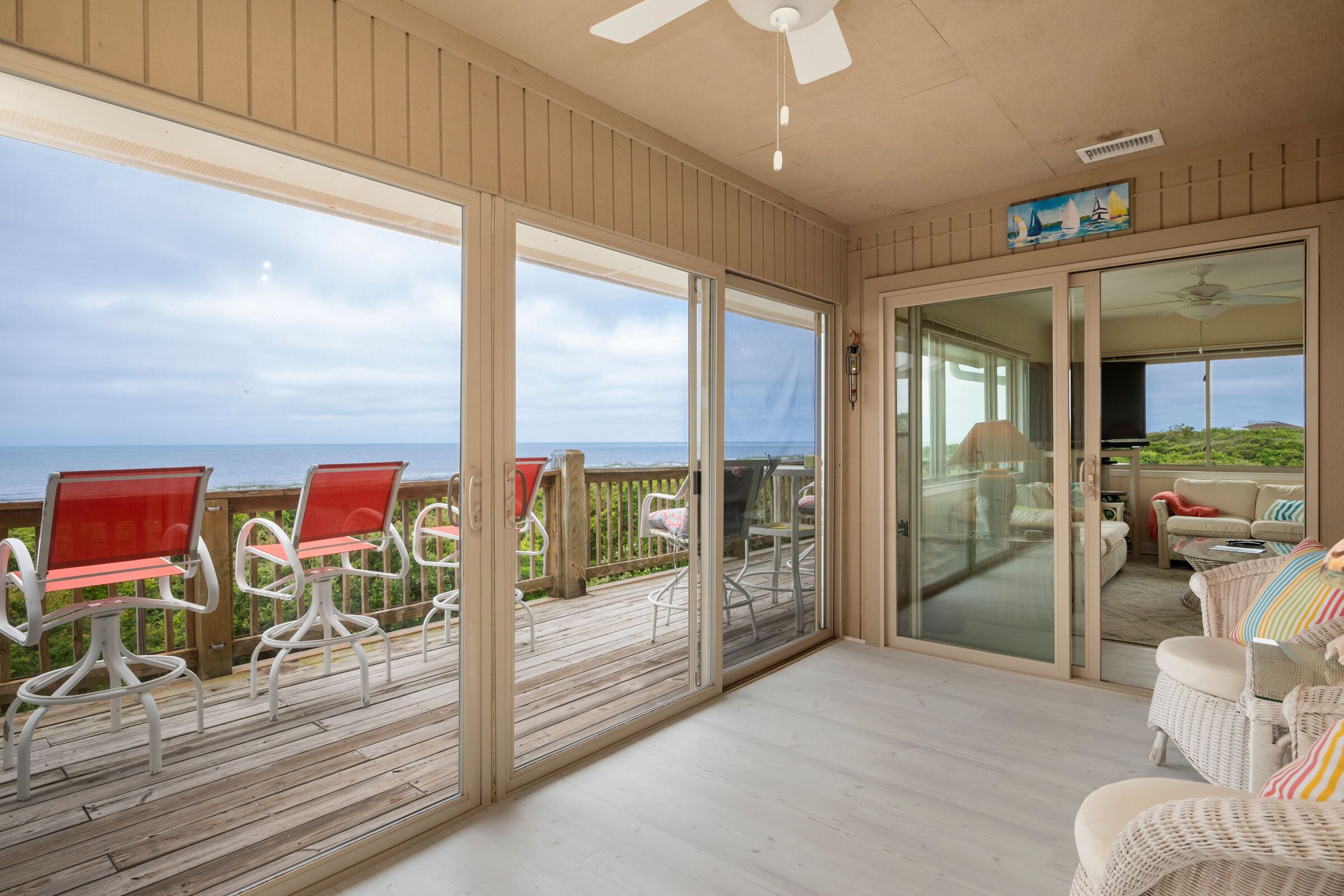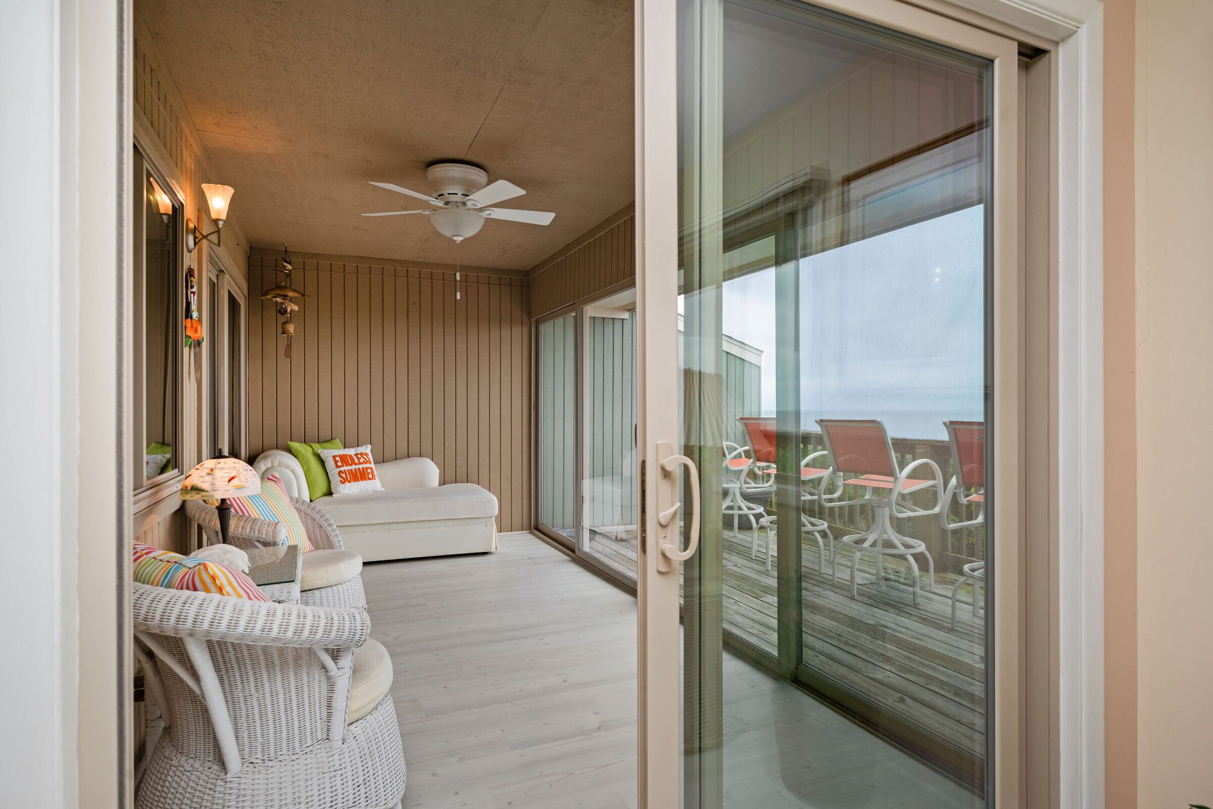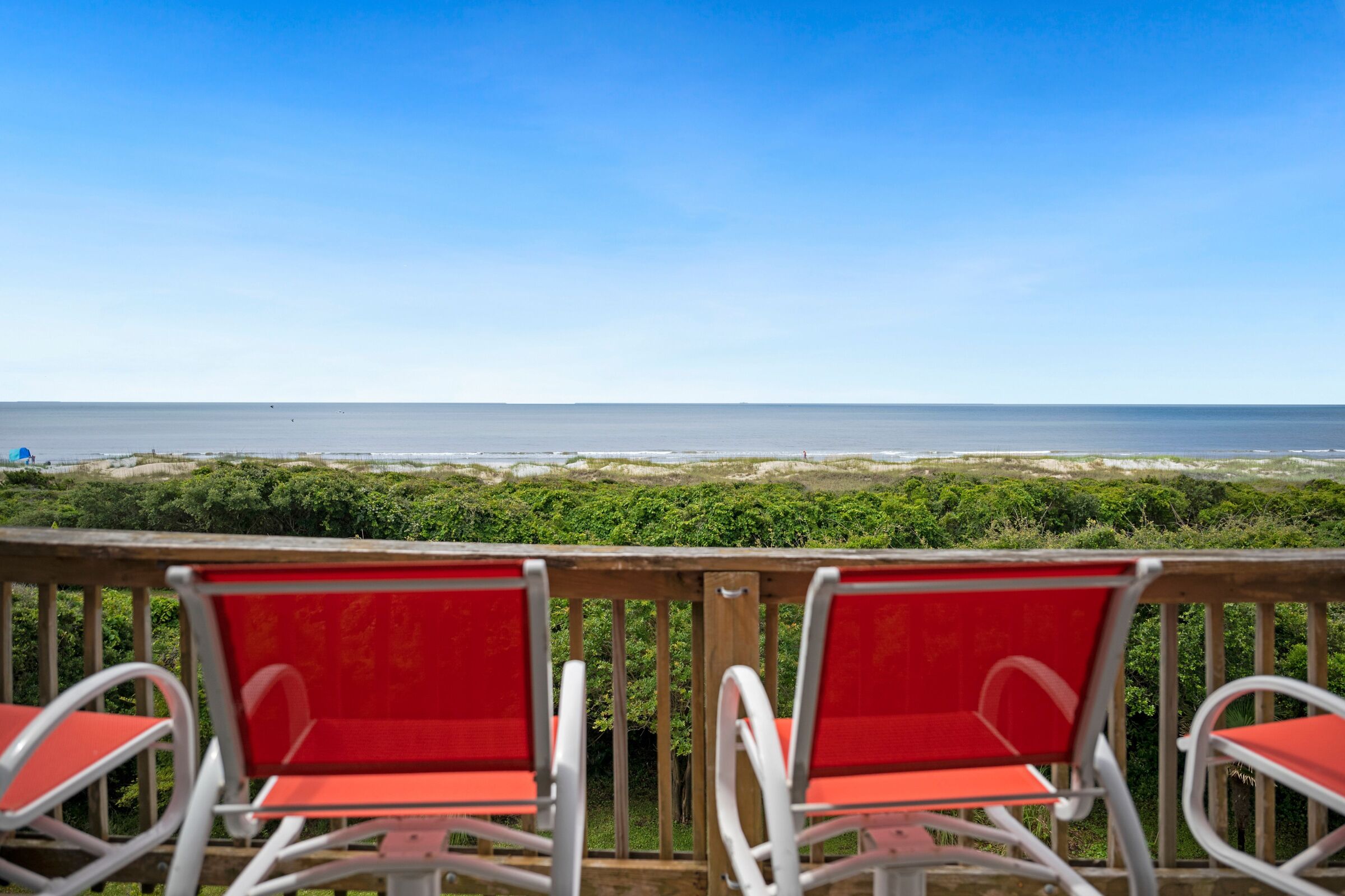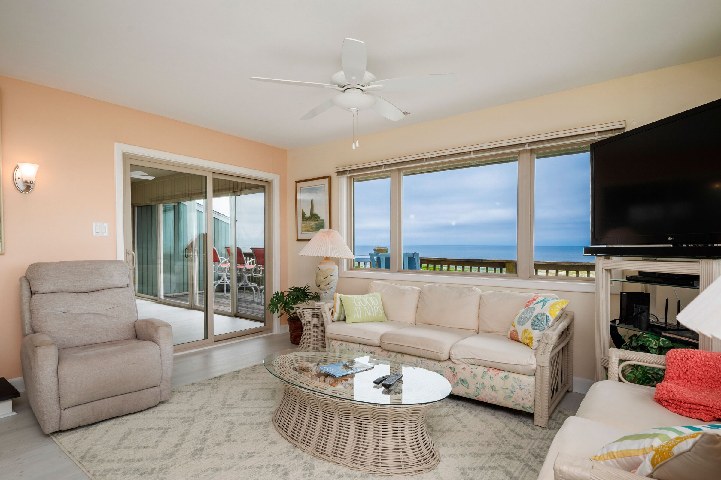 A Searious Sunset View: Condo with Panoramic Ocean Views and Community Pool 3 Bedrooms | 2 Bathrooms | 2nd Level Condo1 King | 1 Queen | 2 TwinsCaswell Dunes condo with large sun porch with furniture and ceiling fan. Over-sized ocean view deck with furniture. Enjoy the unobstructed panoramic ocean views from just about every window. Guests can use the Caswell Dunes community footpath to reach a pu...