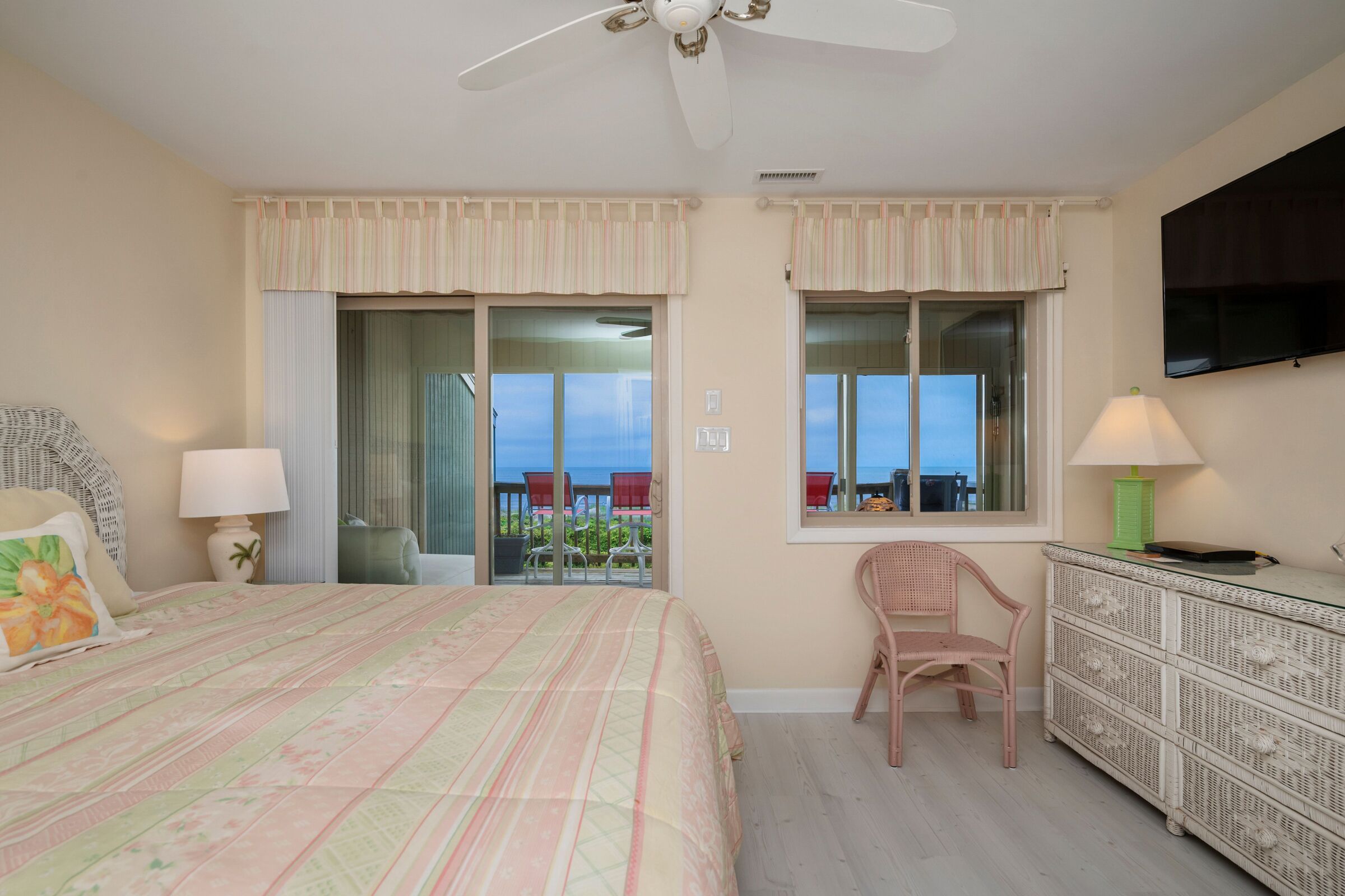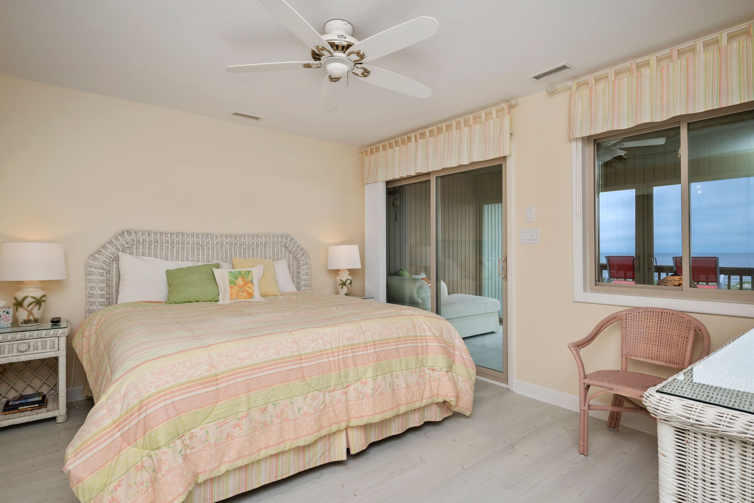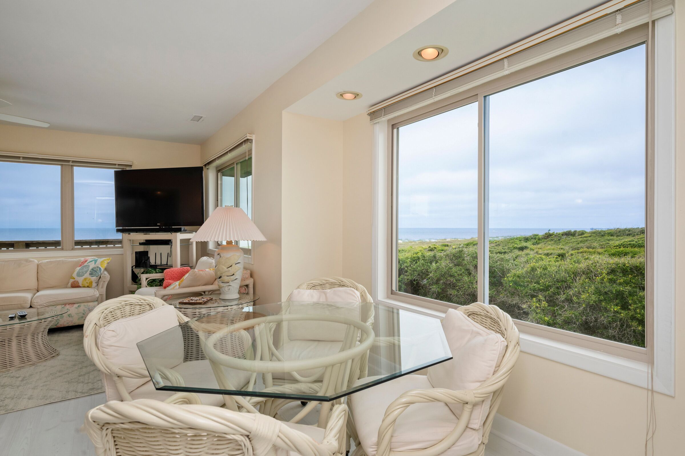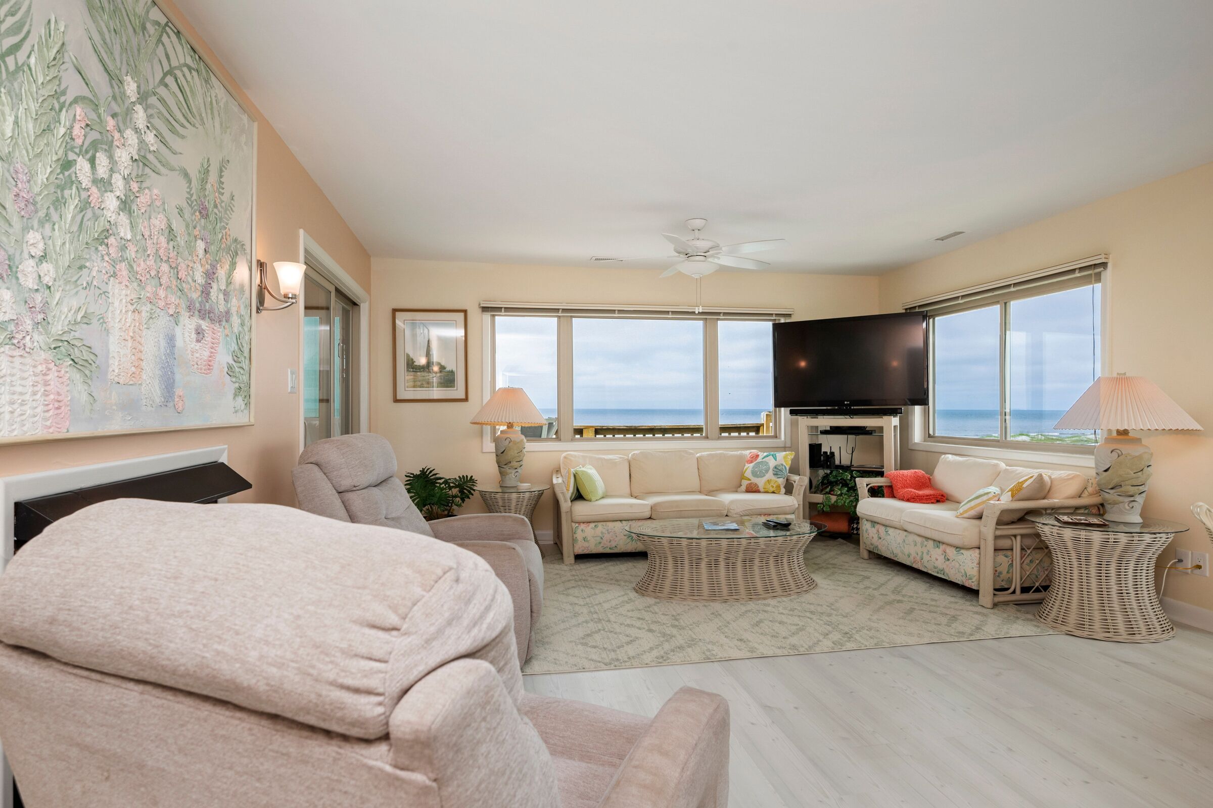 A Searious Sunset View: Condo with Panoramic Ocean Views and Community Pool 3 Bedrooms | 2 Bathrooms | 2nd Level Condo1 King | 1 Queen | 2 TwinsCaswell Dunes condo with large sun porch with furniture and ceiling fan. Over-sized ocean view deck with furniture. Enjoy the unobstructed panoramic ocean views from just about every window. Guests can use the Caswell Dunes community footpath to reach a pu...