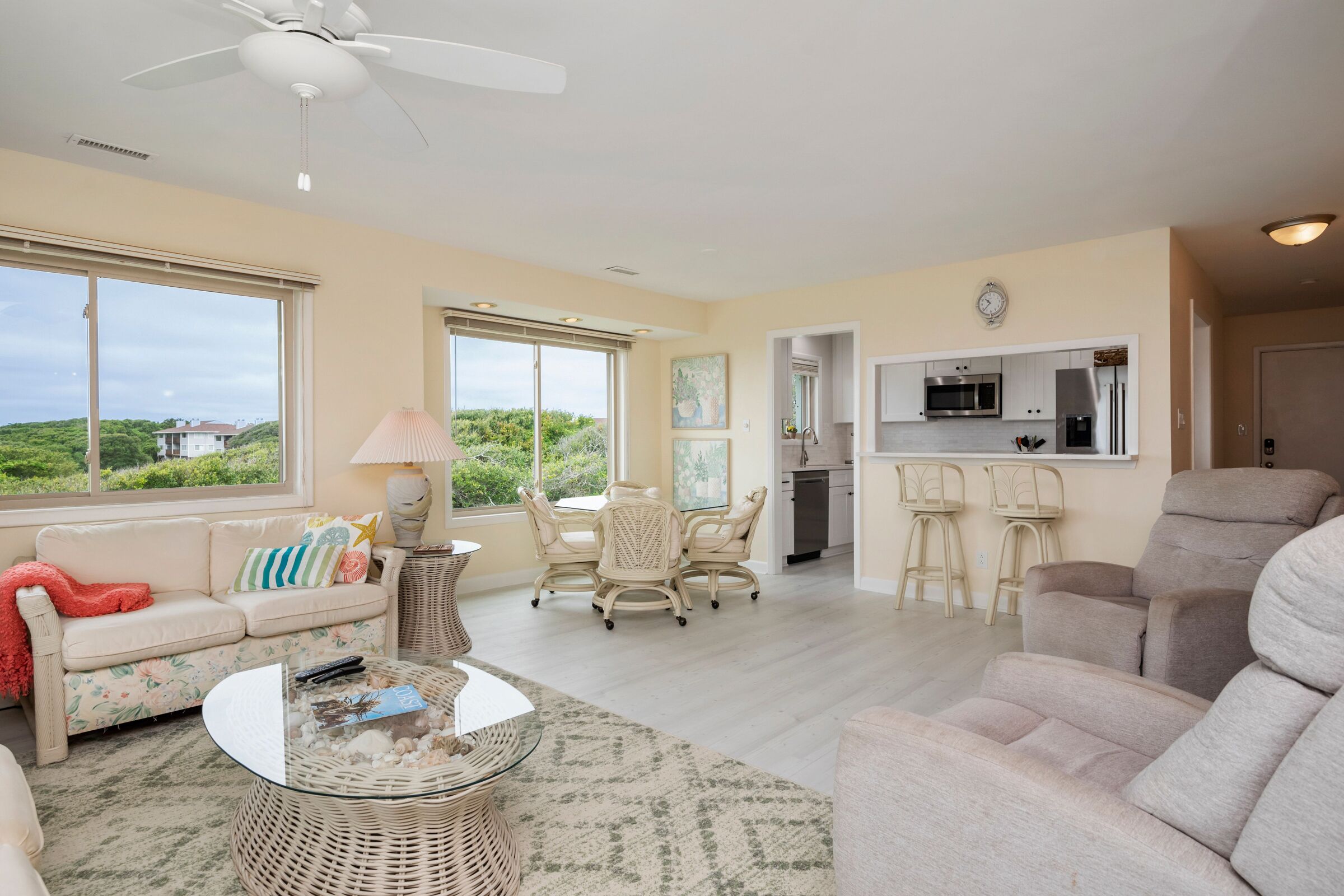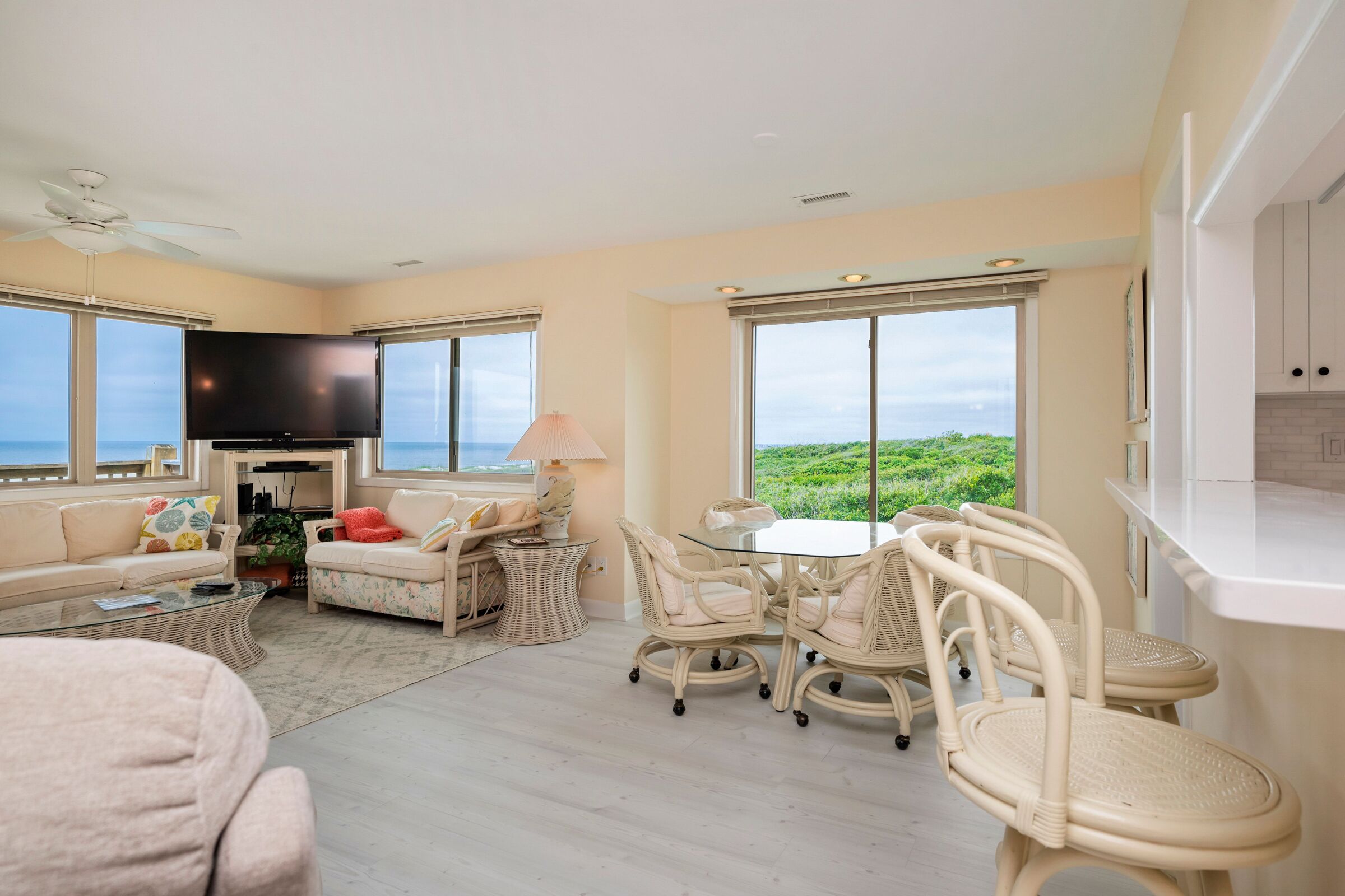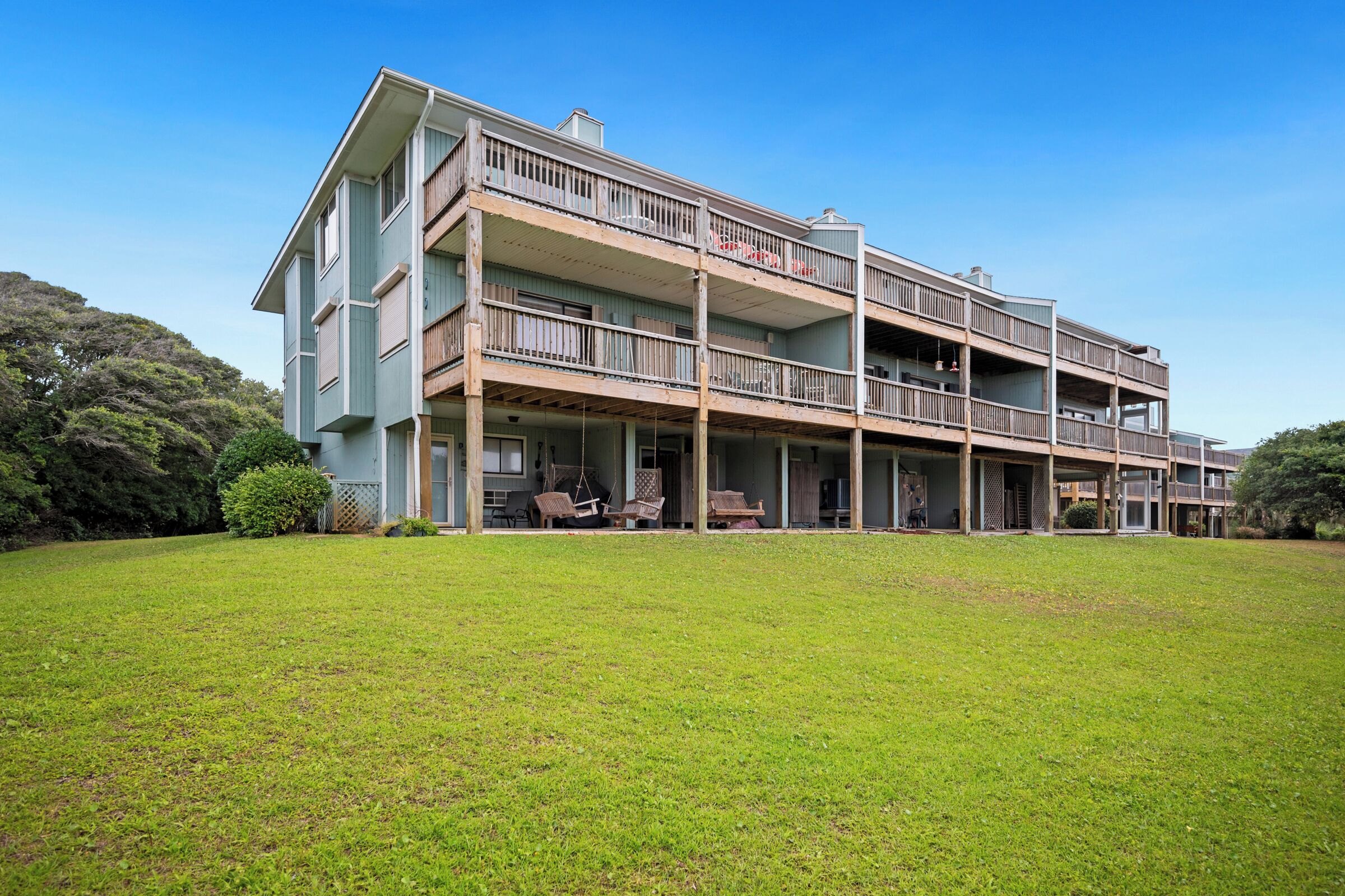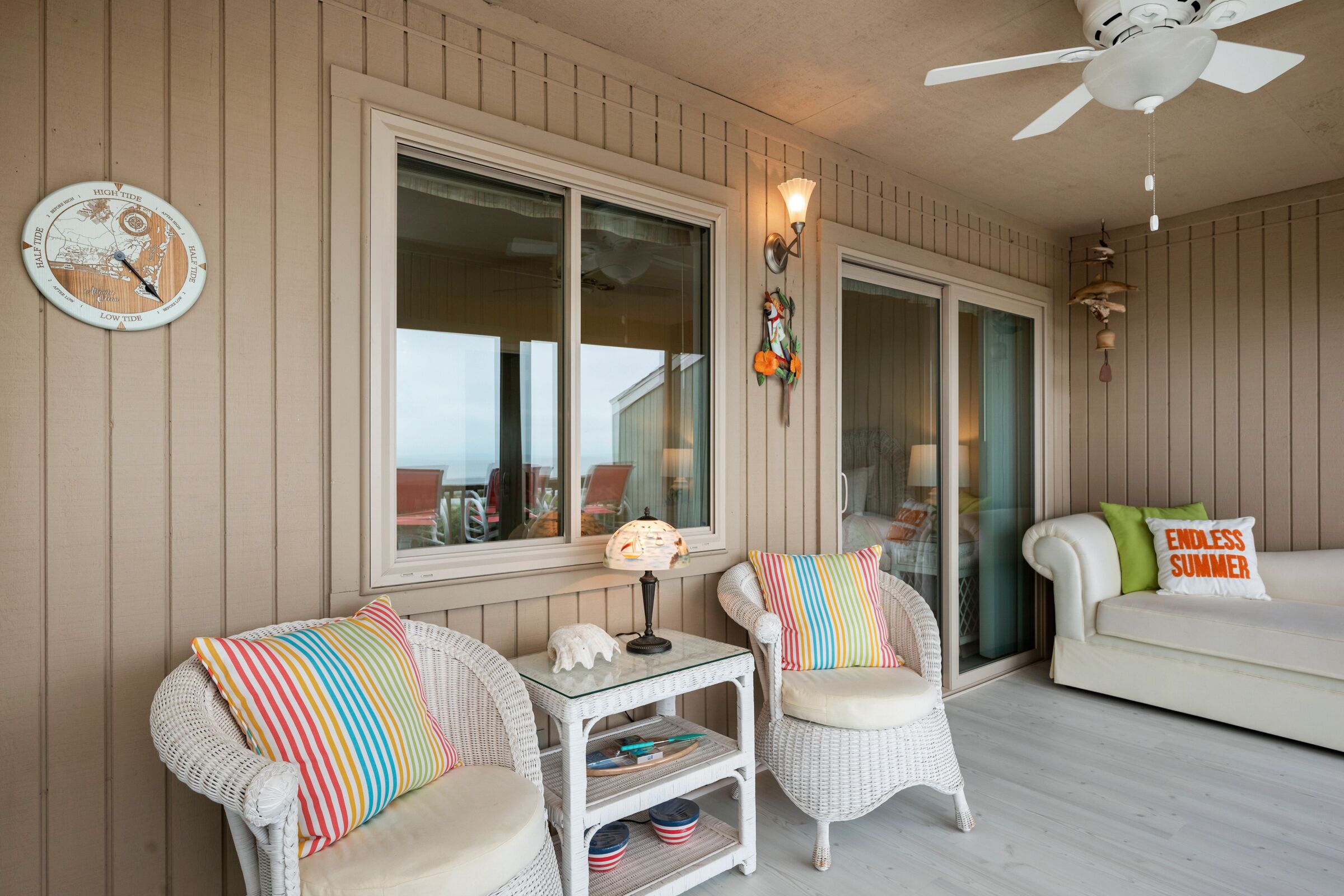 A Searious Sunset View: Condo with Panoramic Ocean Views and Community Pool 3 Bedrooms | 2 Bathrooms | 2nd Level Condo1 King | 1 Queen | 2 TwinsCaswell Dunes condo with large sun porch with furniture and ceiling fan. Over-sized ocean view deck with furniture. Enjoy the unobstructed panoramic ocean views from just about every window. Guests can use the Caswell Dunes community footpath to reach a pu...