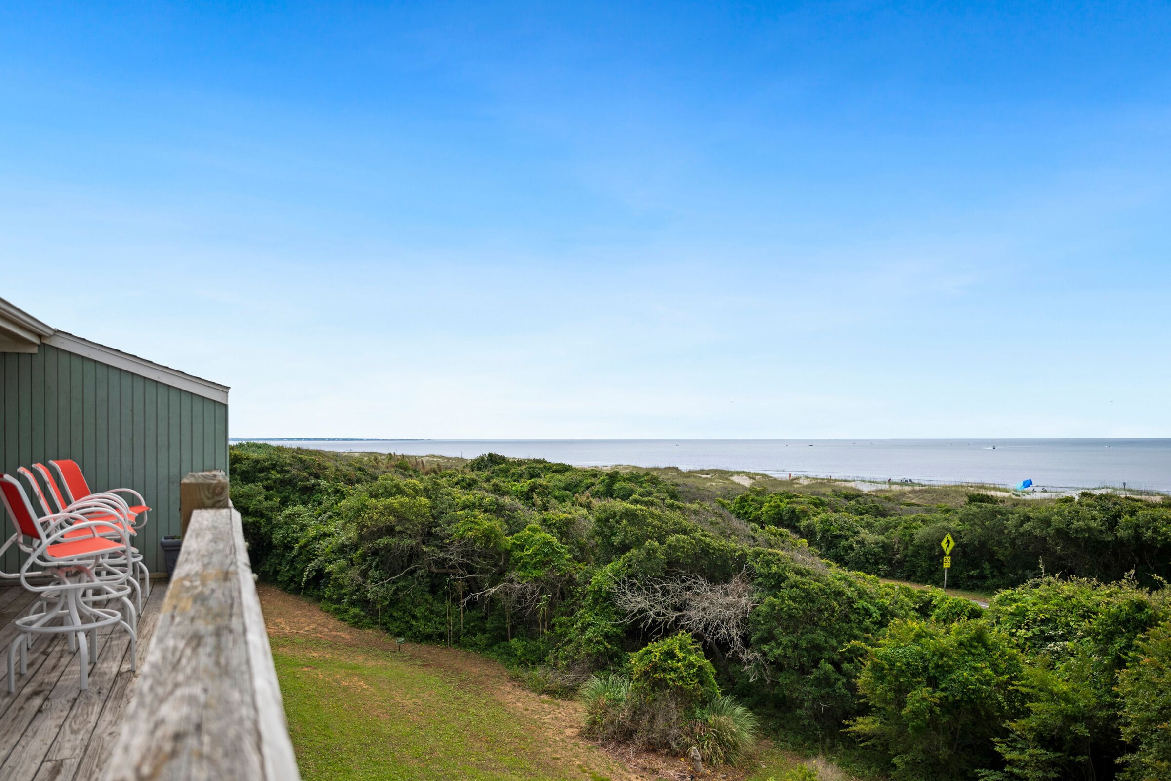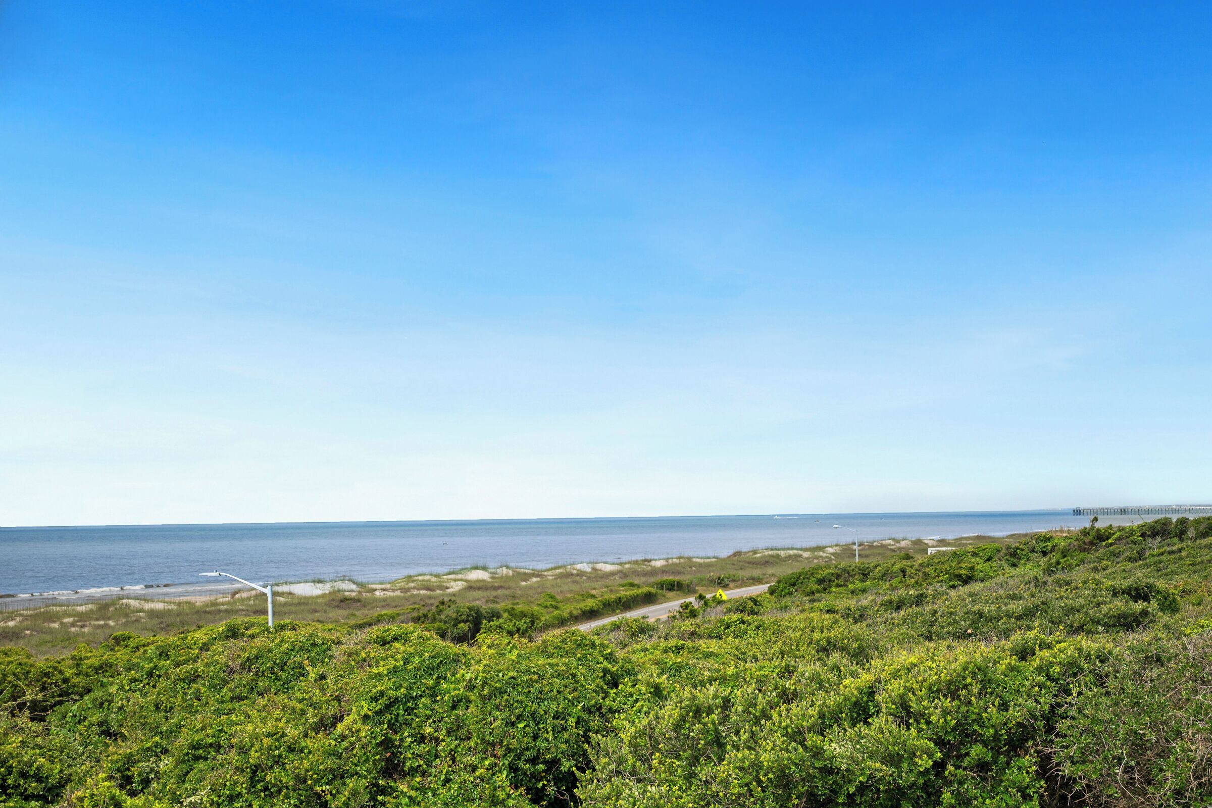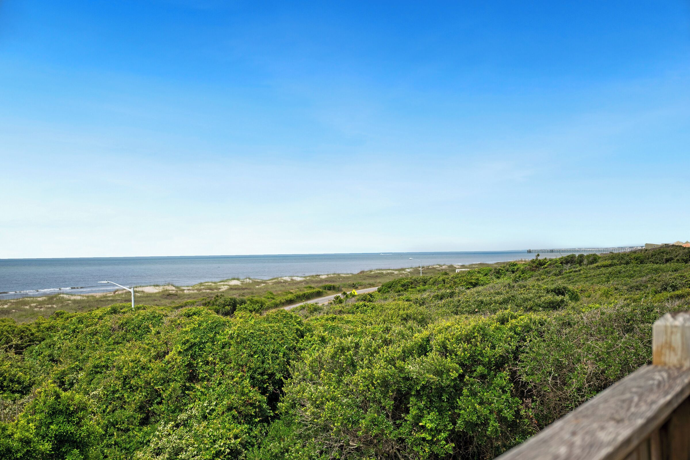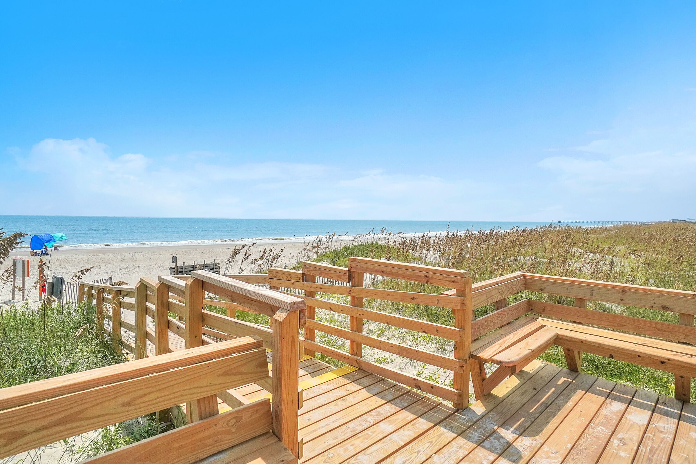 A Searious Sunset View: Condo with Panoramic Ocean Views and Community Pool 3 Bedrooms | 2 Bathrooms | 2nd Level Condo1 King | 1 Queen | 2 TwinsCaswell Dunes condo with large sun porch with furniture and ceiling fan. Over-sized ocean view deck with furniture. Enjoy the unobstructed panoramic ocean views from just about every window. Guests can use the Caswell Dunes community footpath to reach a public beach access across Caswell Beach Road. This unit is also close to one of the community's swimming pools. Bring your bike and enjoy the ride through the quiet streets.Four TV's, Alexa Dot, four DVD players, VCR, Nintendo 64 with games, stereo system with CD player and wireless internet access. DVD's and videos.Jacuzzi tub in master bathroom plus a step-in shower with seat. Ceiling fans, highchair, Port-A-Crib, books and puzzles. Please note that fireplace is not available for guest use.The Caswell Dunes pool is open annually from Memorial Day to Labor Day. Specific condo communities may keep the pool open past Labor Day depending on the home owner's association's recommendation.