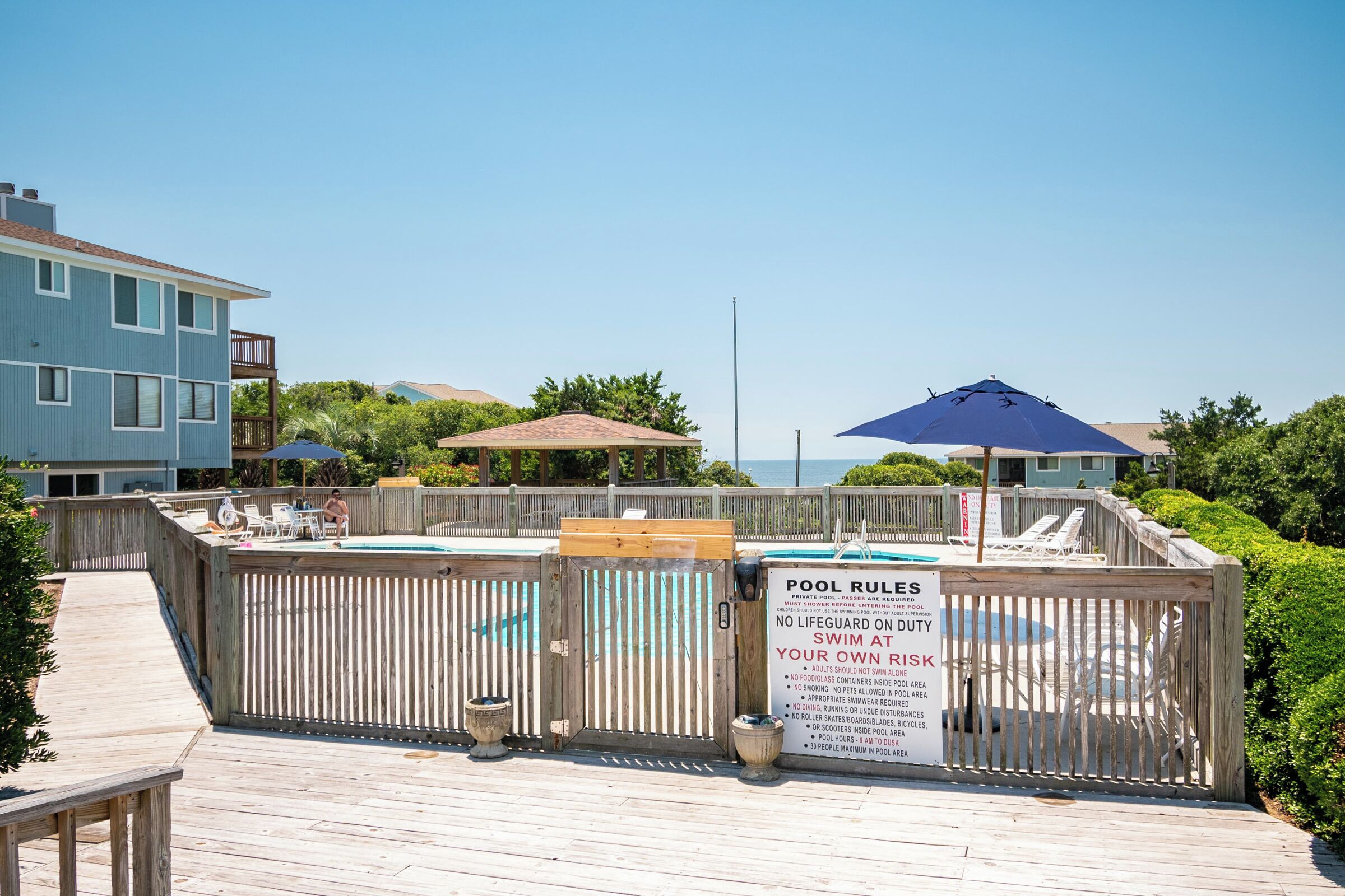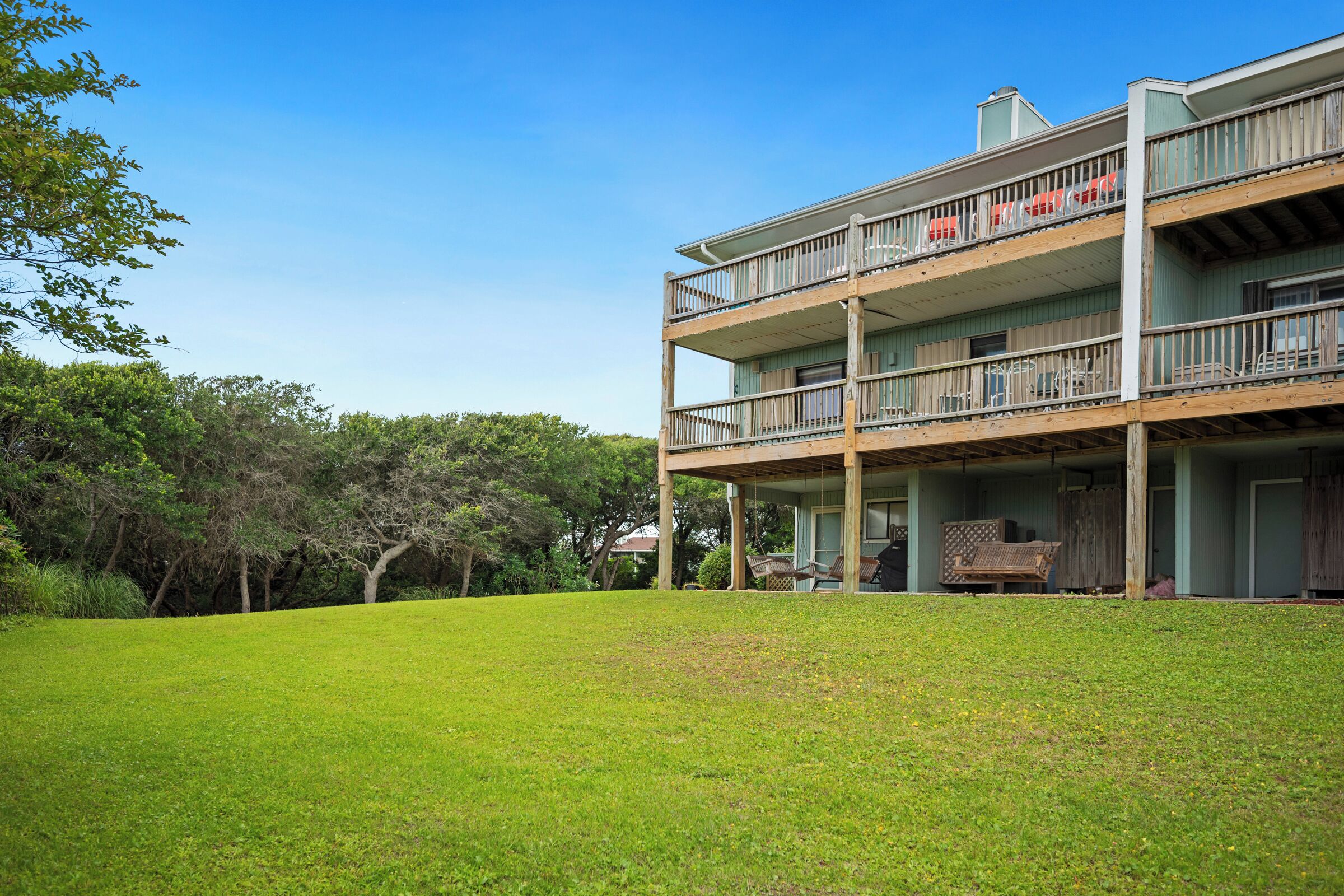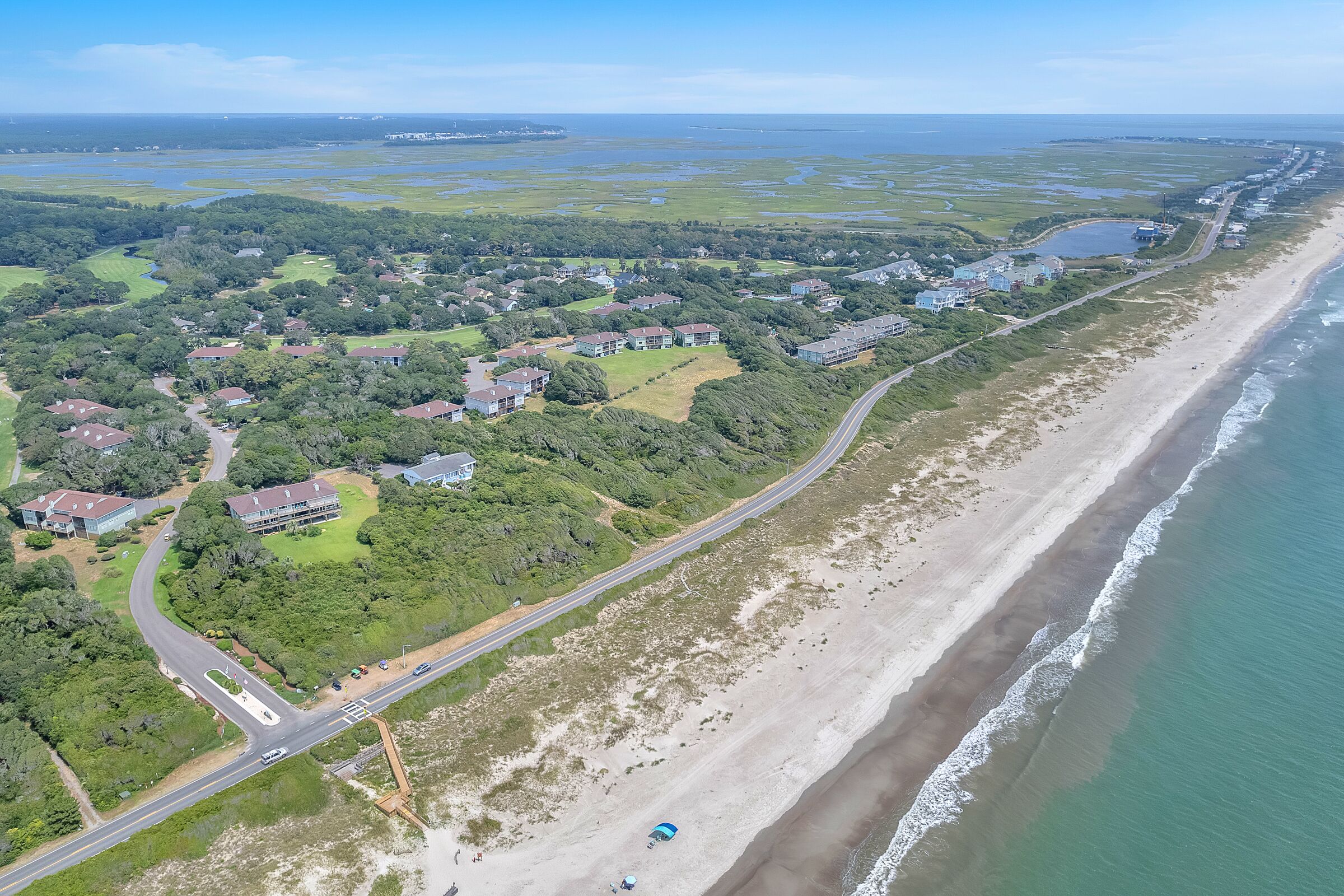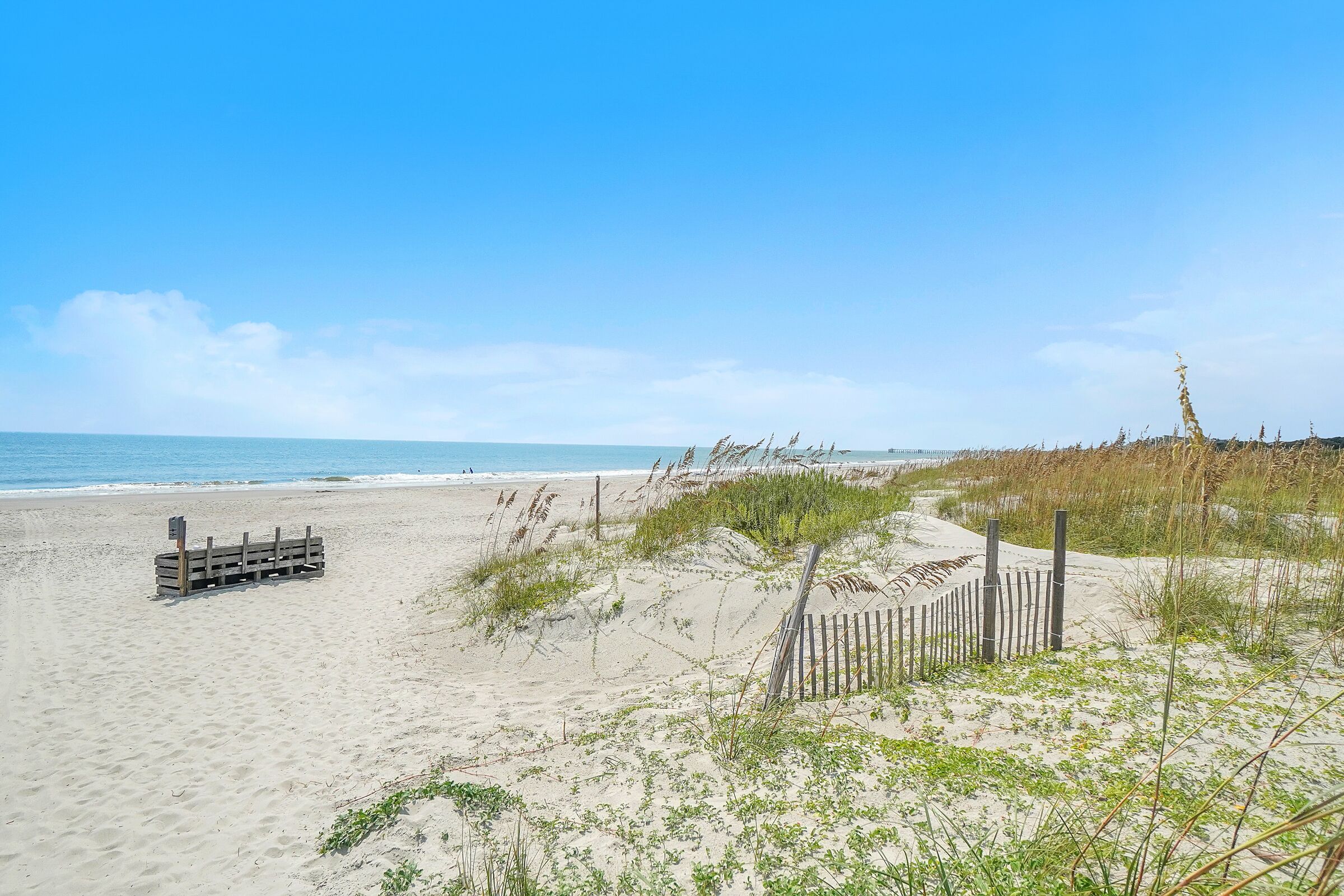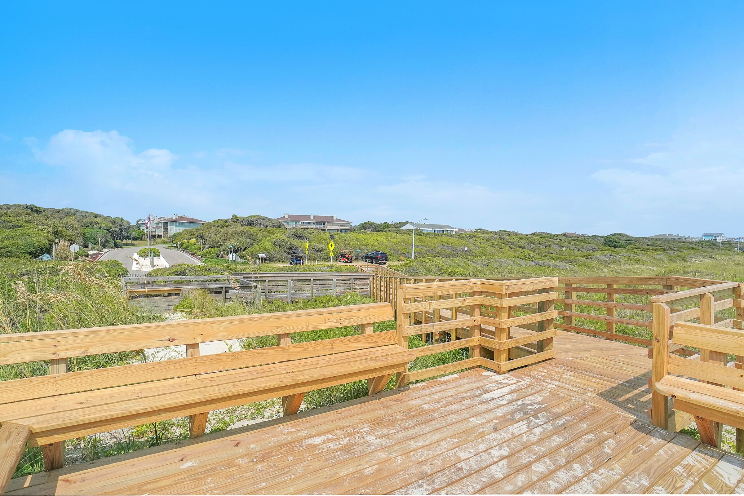 A Searious Sunset View: Condo with Panoramic Ocean Views and Community Pool 3 Bedrooms | 2 Bathrooms | 2nd Level Condo1 King | 1 Queen | 2 TwinsCaswell Dunes condo with large sun porch with furniture and ceiling fan. Over-sized ocean view deck with furniture. Enjoy the unobstructed panoramic ocean views from just about every window. Guests can use the Caswell Dunes community footpath to reach a public beach access across Caswell Beach Road. This unit is also close to one of the community's swimming pools. Bring your bike and enjoy the ride through the quiet streets.Four TV's, Alexa Dot, four DVD players, VCR, Nintendo 64 with games, stereo system with CD player and wireless internet access. DVD's and videos.Jacuzzi tub in master bathroom plus a step-in shower with seat. Ceiling fans, highchair, Port-A-Crib, books and puzzles. Please note that fireplace is not available for guest use.The Caswell Dunes pool is open annually from Memorial Day to Labor Day. Specific condo communities may keep the pool open past Labor Day depending on the home owner's association's recommendation.