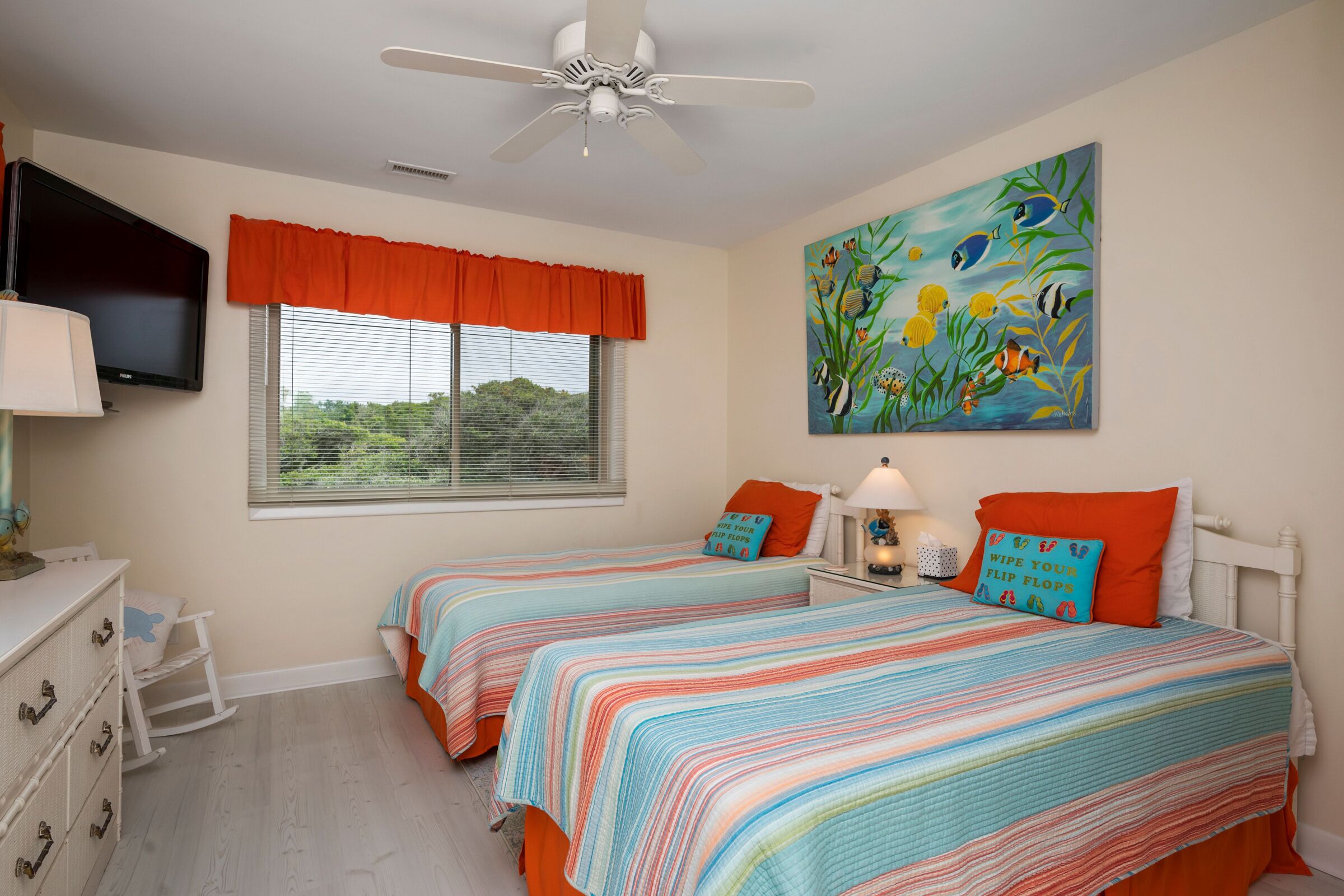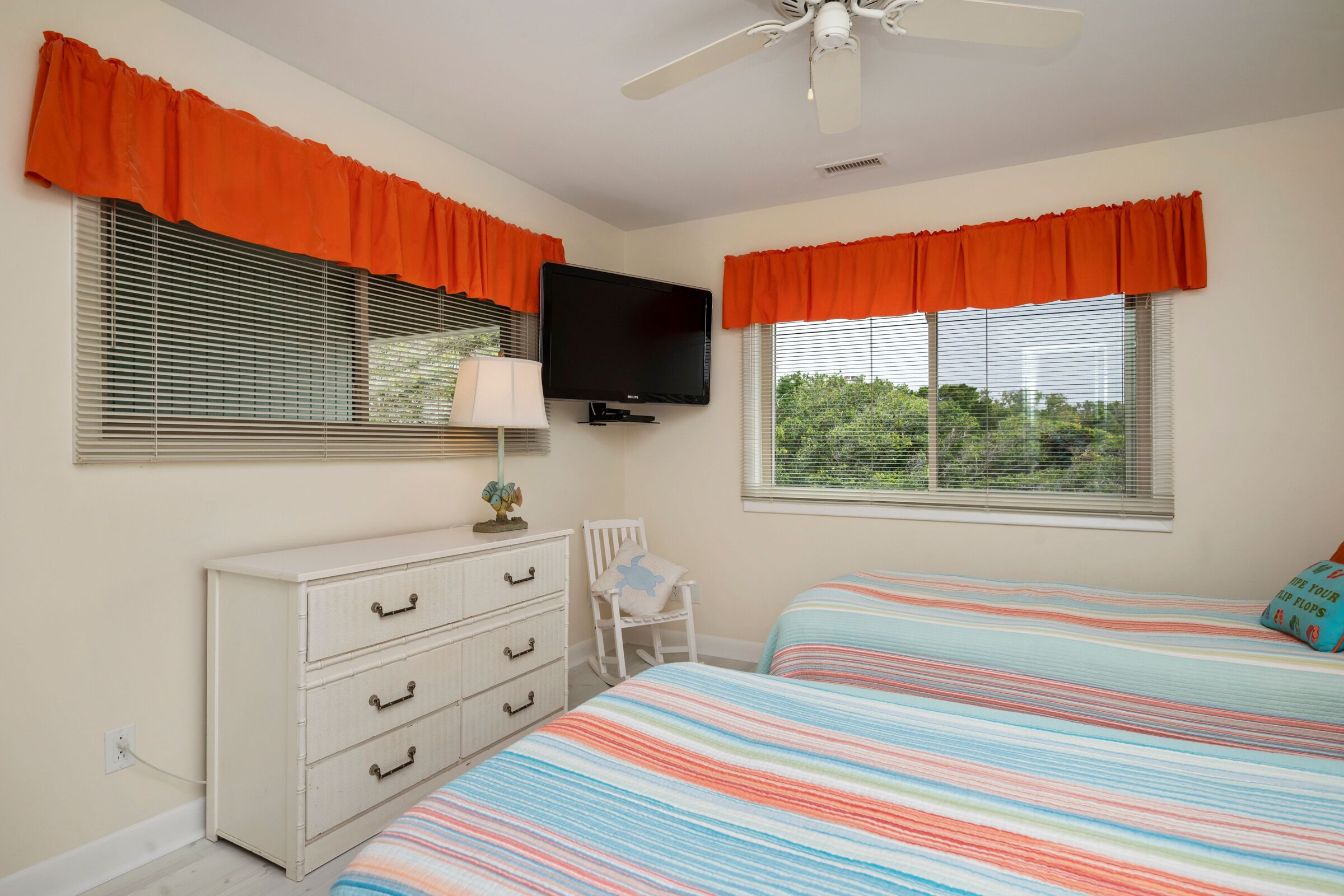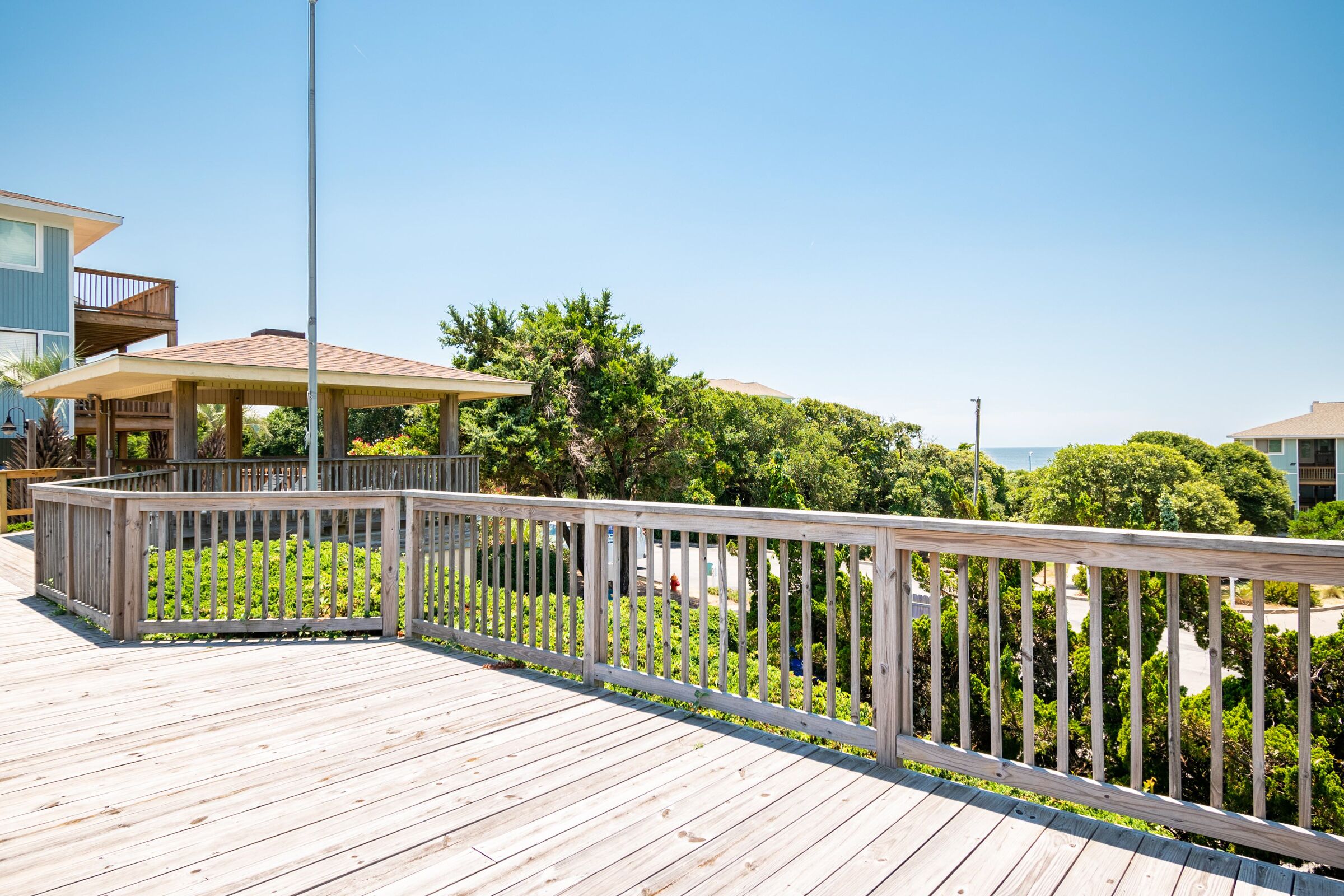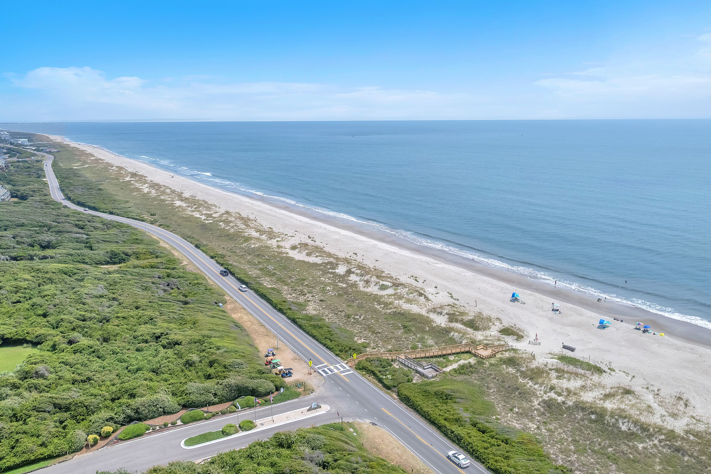 A Searious Sunset View: Condo with Panoramic Ocean Views and Community Pool 3 Bedrooms | 2 Bathrooms | 2nd Level Condo1 King | 1 Queen | 2 TwinsCaswell Dunes condo with large sun porch with furniture and ceiling fan. Over-sized ocean view deck with furniture. Enjoy the unobstructed panoramic ocean views from just about every window. Guests can use the Caswell Dunes community footpath to reach a public beach access across Caswell Beach Road. This unit is also close to one of the community's swimming pools. Bring your bike and enjoy the ride through the quiet streets.Four TV's, Alexa Dot, four DVD players, VCR, Nintendo 64 with games, stereo system with CD player and wireless internet access. DVD's and videos.Jacuzzi tub in master bathroom plus a step-in shower with seat. Ceiling fans, highchair, Port-A-Crib, books and puzzles. Please note that fireplace is not available for guest use.The Caswell Dunes pool is open annually from Memorial Day to Labor Day. Specific condo communities may keep the pool open past Labor Day depending on the home owner's association's recommendation.