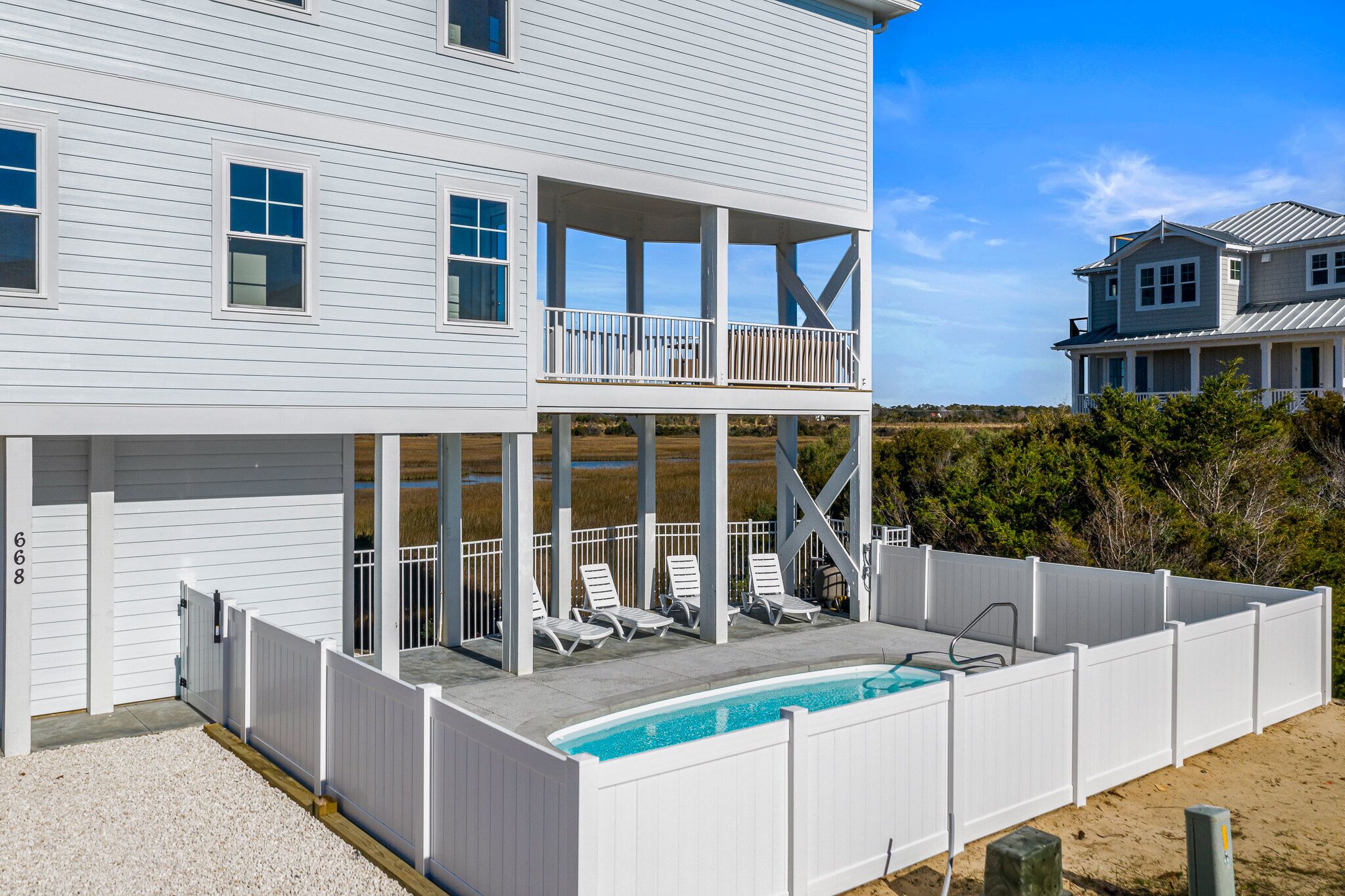 "Dozin By The Sea" - 2nd Row Home w/ pool, 3 Bedrooms / 3.5 Bathrooms Welcome to your NEW home away from home!! "Dozin By The Sea" is a 3 bedroom 3 1/2 bath, second row home located on the marsh, with its own private saltwater swimming pool, sparkling ocean views and never-ending marsh views, "Dozin By The Sea" is the perfect vacation spot! With all new everything! This beautiful new home has luxury vinyl plank flooring throughout, all new stainless steel kitchen appliances with subway tile backsplash in the kitchen, all new furniture, and tastefully decorated throughout! Accommodating up to 10 guests, the master bedroom is furnished with 1 king bed and 1 unique twin stow-away bed, with a private bathroom (Linens are not included for stow-away bed). Bedroom #2 offers a queen bed with a private bathroom. Bedroom #3 offers a unique triple, twin size, bunk bed unit, with a private bath. **Please note that the triple bunk beds have a weight limit of 140 lbs per bed** For additional bedding, there is a sleeper sofa in the living room (bed linens not provided for sleeper sofa), and you will appreciate having the convenience of a half bath just off the living room. With seating for 6 at the bar, and 8 at the dining table, there will be room enough for the whole gang to gather together just hanging out, playing games or enjoying meals, while making sweet memories. You will enjoy the enclosed outdoor hot & cold shower after a long day in the sand. Imagine having the perfect day swimming laps or lounging by the 10' x 20' private saltwater pool, or relaxing on the porch while taking in captivating marsh views, along with some of the most gorgeous sunsets that Holden Beach has to offer! "Dozin By The Sea" will be your NEW favorite vacation spot! This is a NO PET Property. Swimming pools are open each year from April 15 thru October 15. Pool heating is not available for this home. Pools are cleaned prior to arrival, and also cleaned mid-stay for 7 night rentals)Discounts may be available for this property. To view your total vacation price, including any available discounts, please input your stay dates with number of guests and click Book Now. (Don't worry, your vacation will not be booked until you have confirmed the terms)