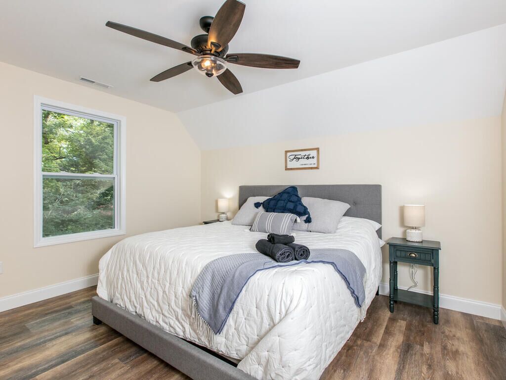 SLEEPS 20| HOT TUB| ARCADE GAME| FOOSEBALL| CORNHOLE Have a large group, but want to stay together? Sleeps 20. Rent both cottages and enjoy time together, parking for 5 cars, central to all your needs. Enjoy the privacy of these cottages, tucked behind Lake Tomahawk. Each home has a hot tub, a fooseball table, arcade game and firepits! You are a short drive from Downtown Asheville, Biltmore, and even closer to the charm that downtown Black Mountain has to offer. Spend the day hiking, zip lining, mountain biking, wine testing, or exploring art museums. The variety is endless in the mountains of North Carolina.