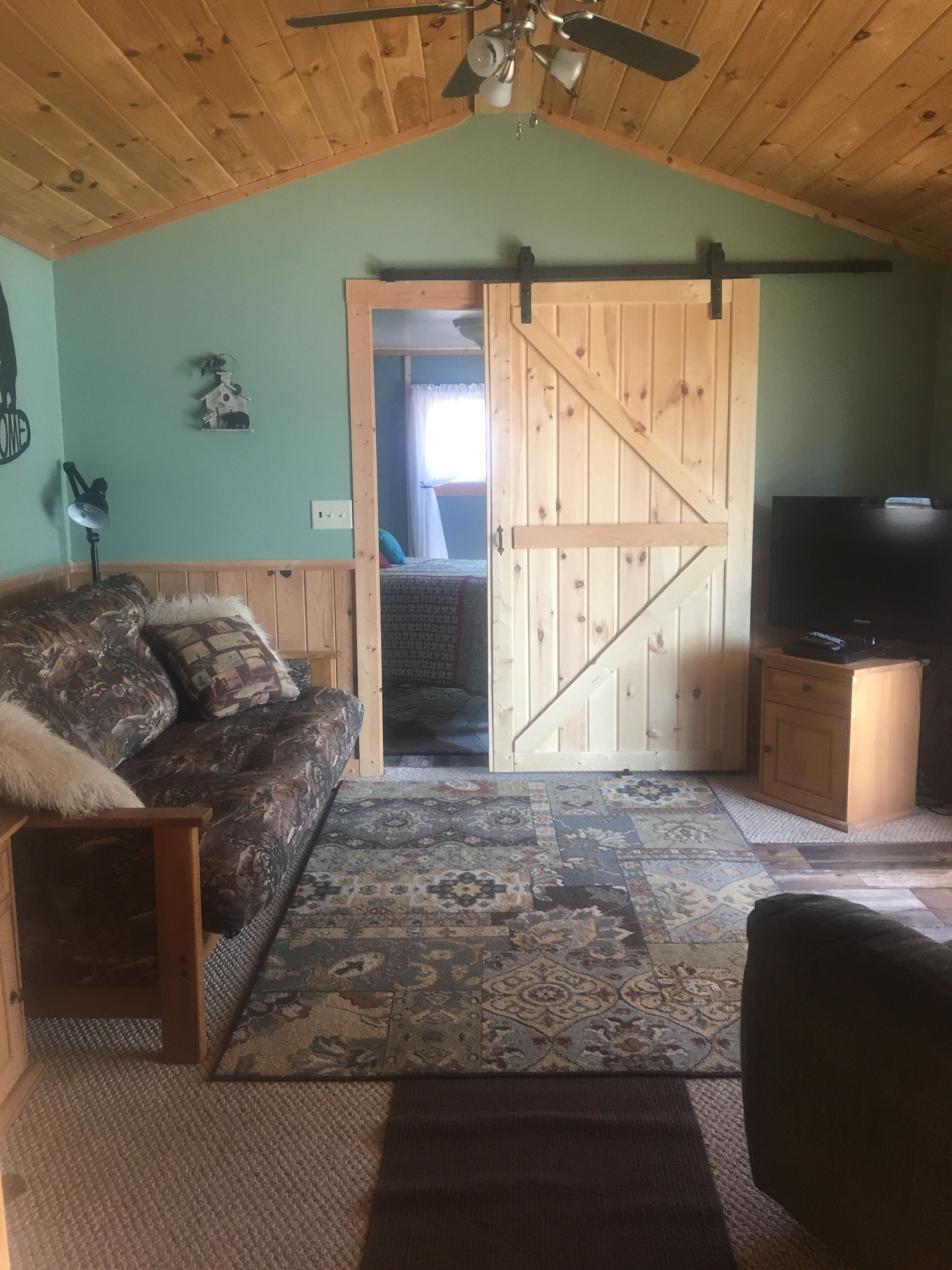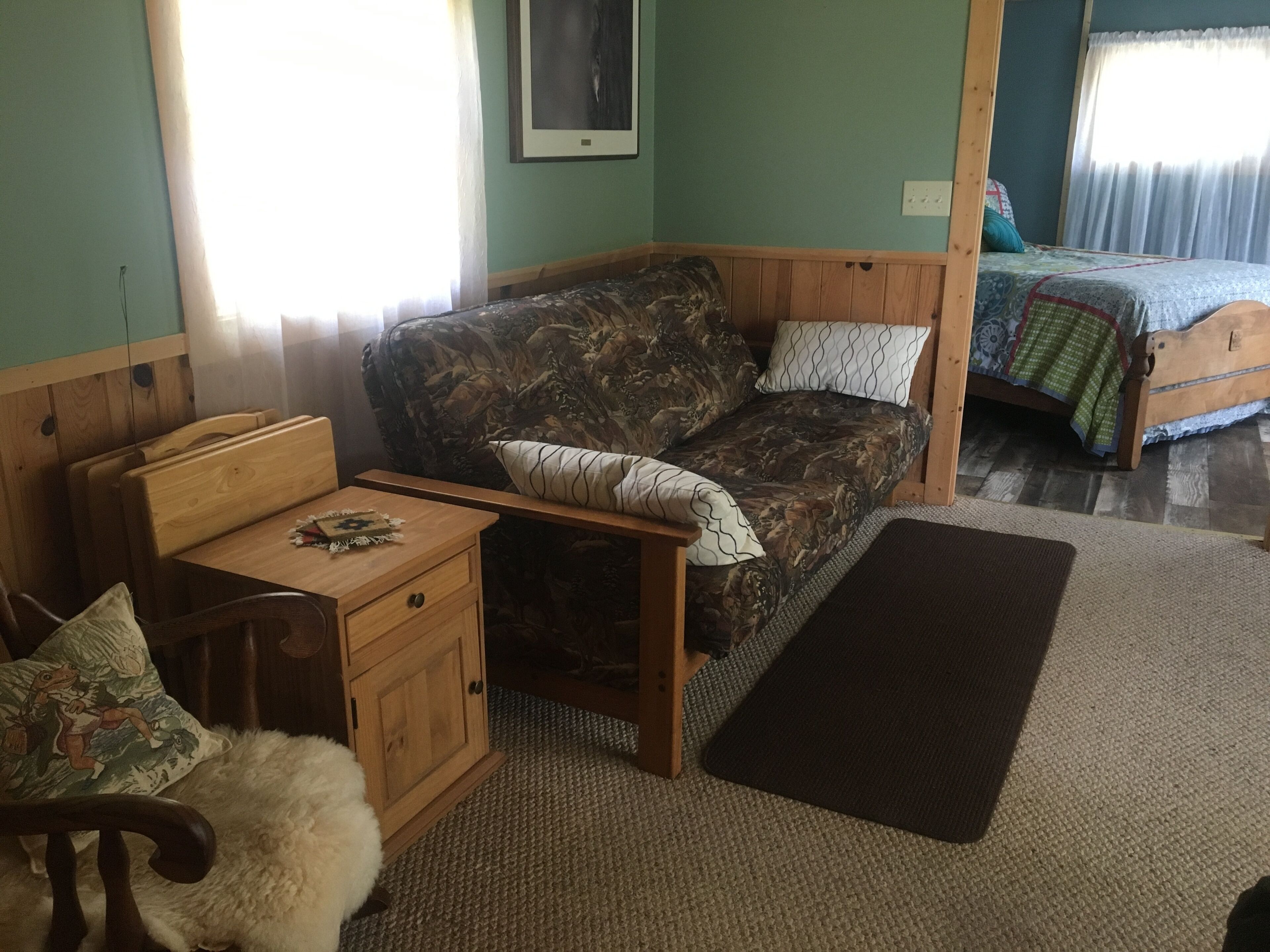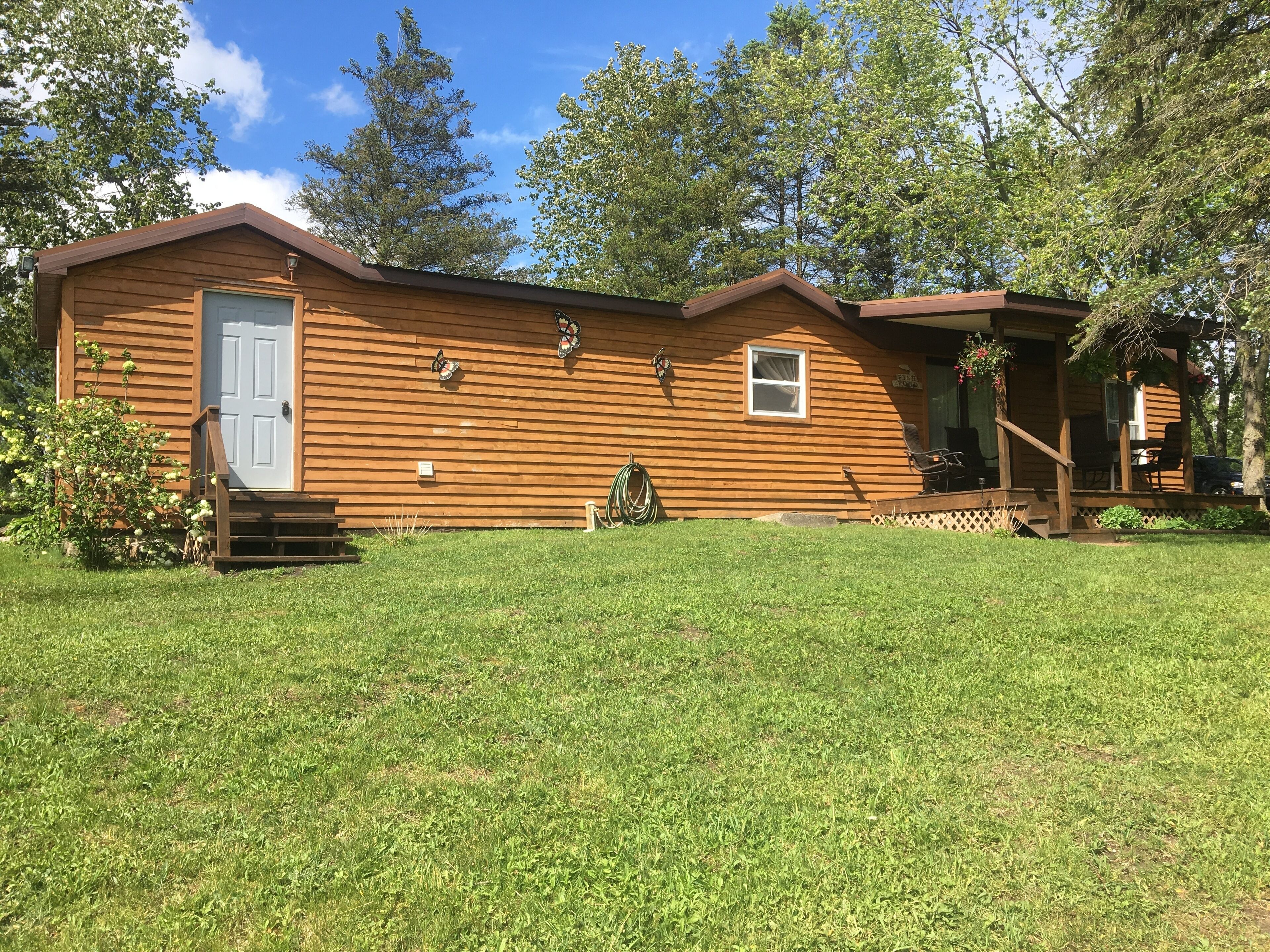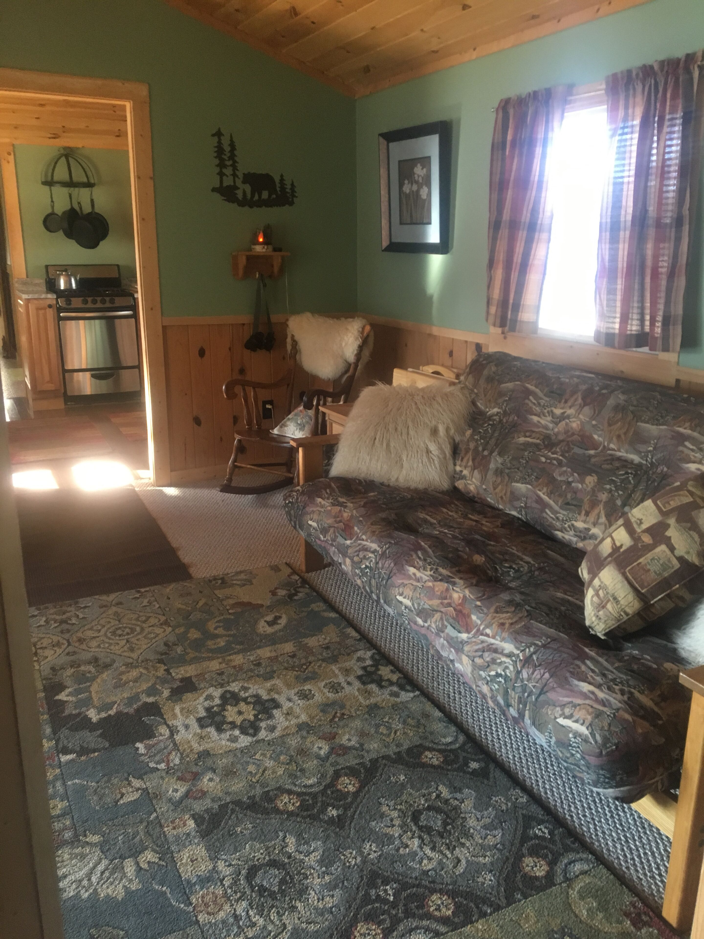 Mill pond hideaway Mill Pond Hide-a-way is a charming cottage nestled on The Mill Pond near the head waters of the Little Manistee River. The tastefully decorated cabin sleeps six comfortably with two private bedrooms (wth air conditioning units) separated by a living area with a futon. The fully furnished kitchen has all the amenities of home including a washer and dryer available for use for no additional charge. Just out the back door you will find a spacious covered porch with a scenic view of the pond. It is perfect for leisure dining or just relaxing and enjoying the wonderful wildlife. Also available for your enjoyment is a charcoal grill, horse shoes, and 2 a fire pits.Mill Pond Hide-A-Way is conveniently located to ORV trails, no trailering needed. The village of Luther is within walking distance and includes fun for the whole family including the Luther Dam park and 2 different taverns with full menus are also available. Linens, coffee and microwave popcorn included with your reservation. Pets welcome for a small cleaning fee.Sorry, no WiFi available but bring your Hulu-Netflix login, smart tv provided. Non-smoking (deposit will be forfeited if non-smoking rule is not adhered to and if pet hair is found on beds and bedding) smoking outdoors only.