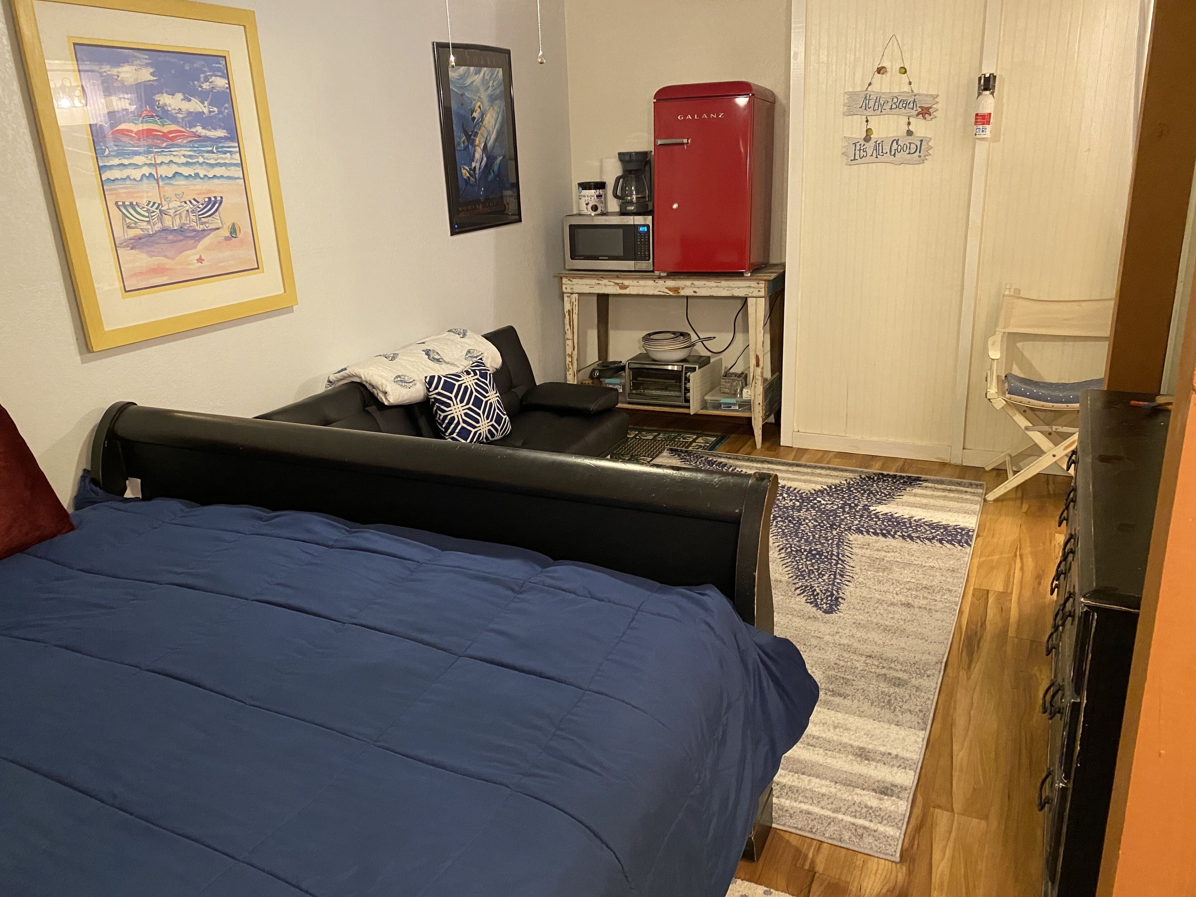 Ground floor efficiency apartment close to all attractions.One mile to hospital Private, renovated ground floor efficiency apartment. Keyless entry and no shared space. Enjoy being close to all the area attractions. There is a large deck, grill, hot plates,and electric smoker available for your use. More seating is in the backyard with large umbrellas. Included are king bed ,fold out single sofa, youtubetv,, WiFi, Netflix, small refrigerator, coffee maker, and microwave. Four blocks to the Atlantic Beach bridge and one mile to the hospital. Beach cooler and chairs are available.There is an apartment above this unit. The apartment is tucked off the road and you can enjoy the large deck. A grill, electric smoker, hot plates, pots and pans make for a great outdoor cooking area. This apartment is perfect for long or shorts stays.