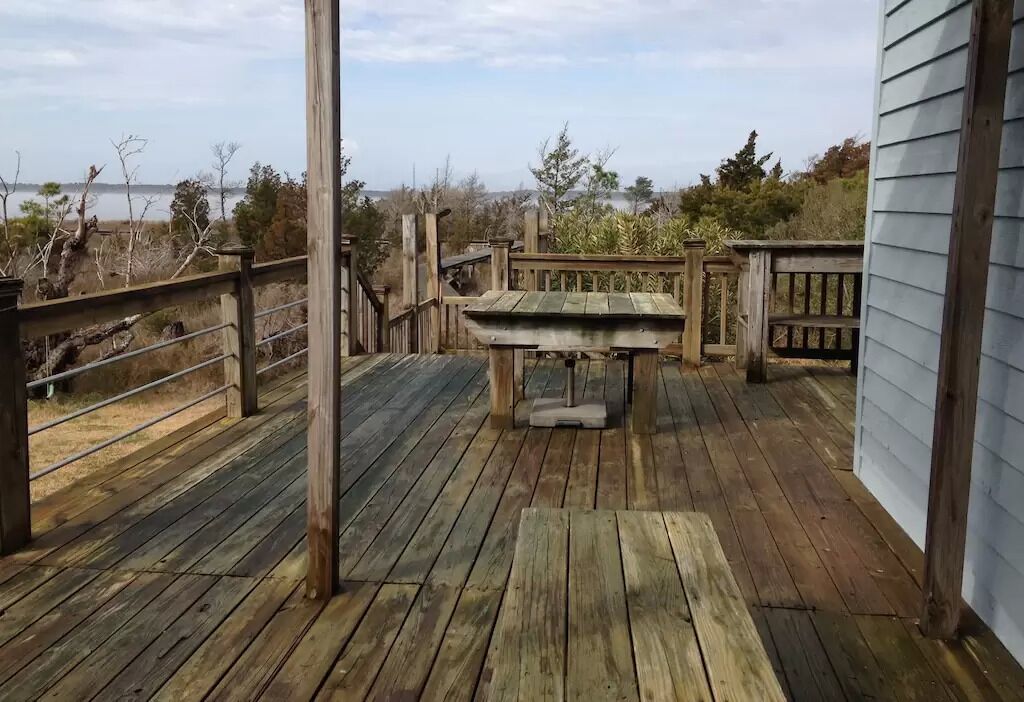 Family-Friendly Private Waterfront Getaway! 3 Bedroom, One Bath Waterfront Home On Nelson Bay (Core Sound)This sound-front home is perfect for the family who enjoys water activities such as swimming, fishing, kayaking, sailing, windsurfing or just relaxing while enjoying the spectacular waterfront view. The sound is shallow and kid-friendly and an ideal site for learning to swim and frolic in the water. For a couple, it's ideal for a peaceful, private get-away.Private sandy beach, shallow water dock suitable for smaller boat, excellent fishing and crabbing right off the dock. Crab pots provided no license needed in NC for a crab pot tied to your private dock.There is a nearby boat launch. Unspoiled beaches can be reached by a boat ride across Core Sound or by car on Cedar Island, 8 miles away. Ferry's are available in Atlantic or Cedar Island for day trips to local beaches as well as Okracoke Island (a fun day trip-take bikes).Outstanding cuisine can be enjoyed 30 miles away in historic Beaufort.