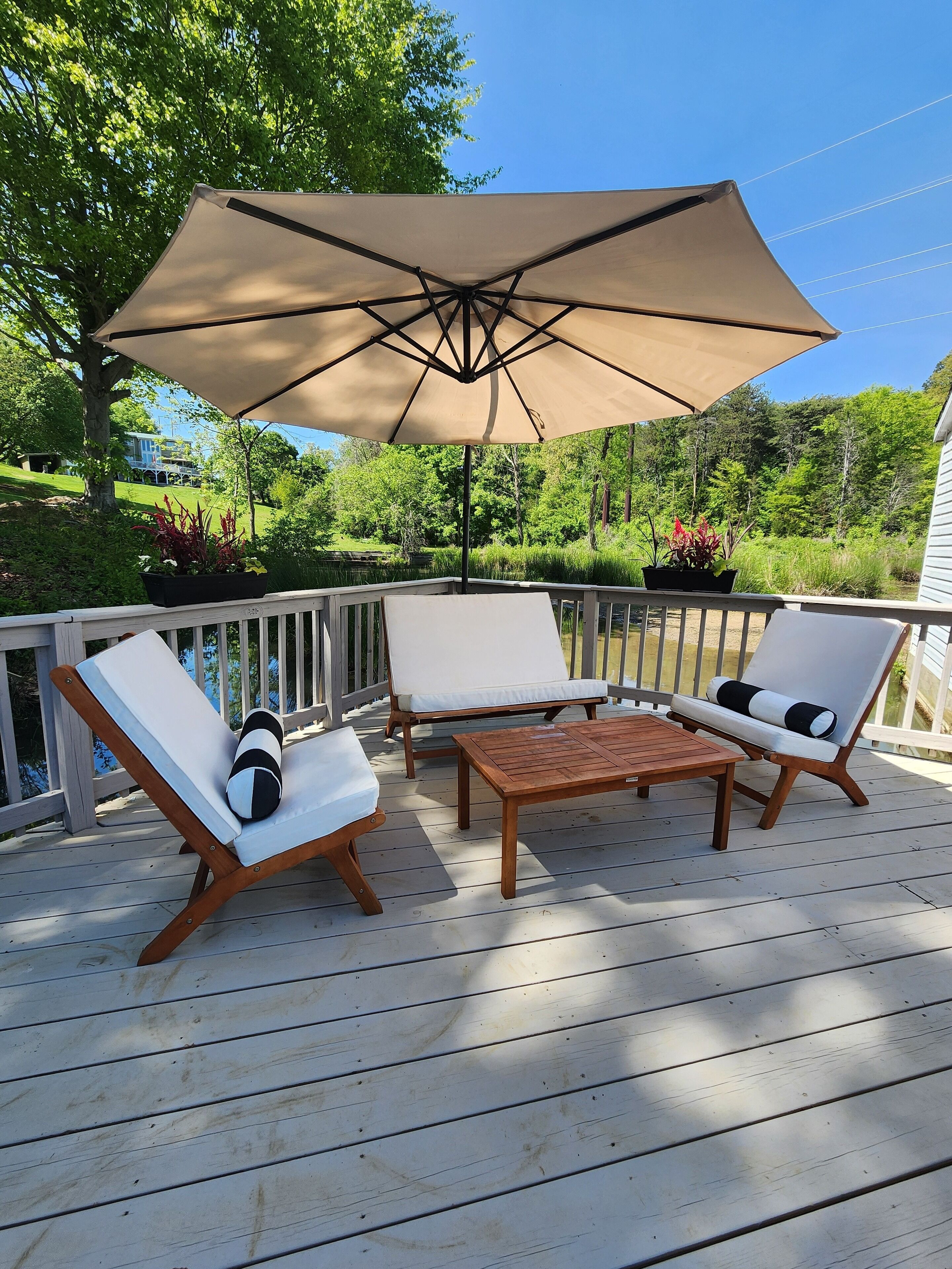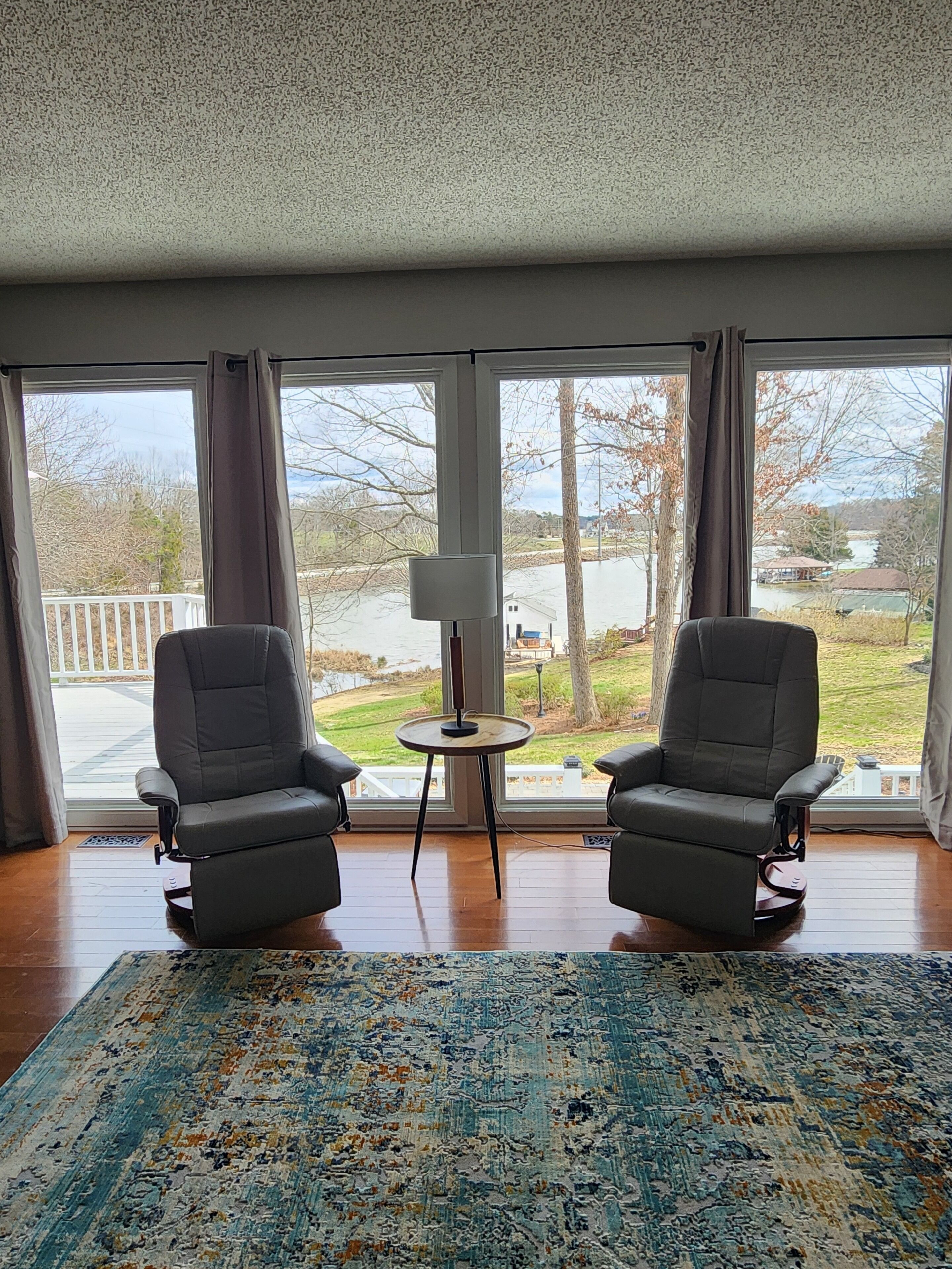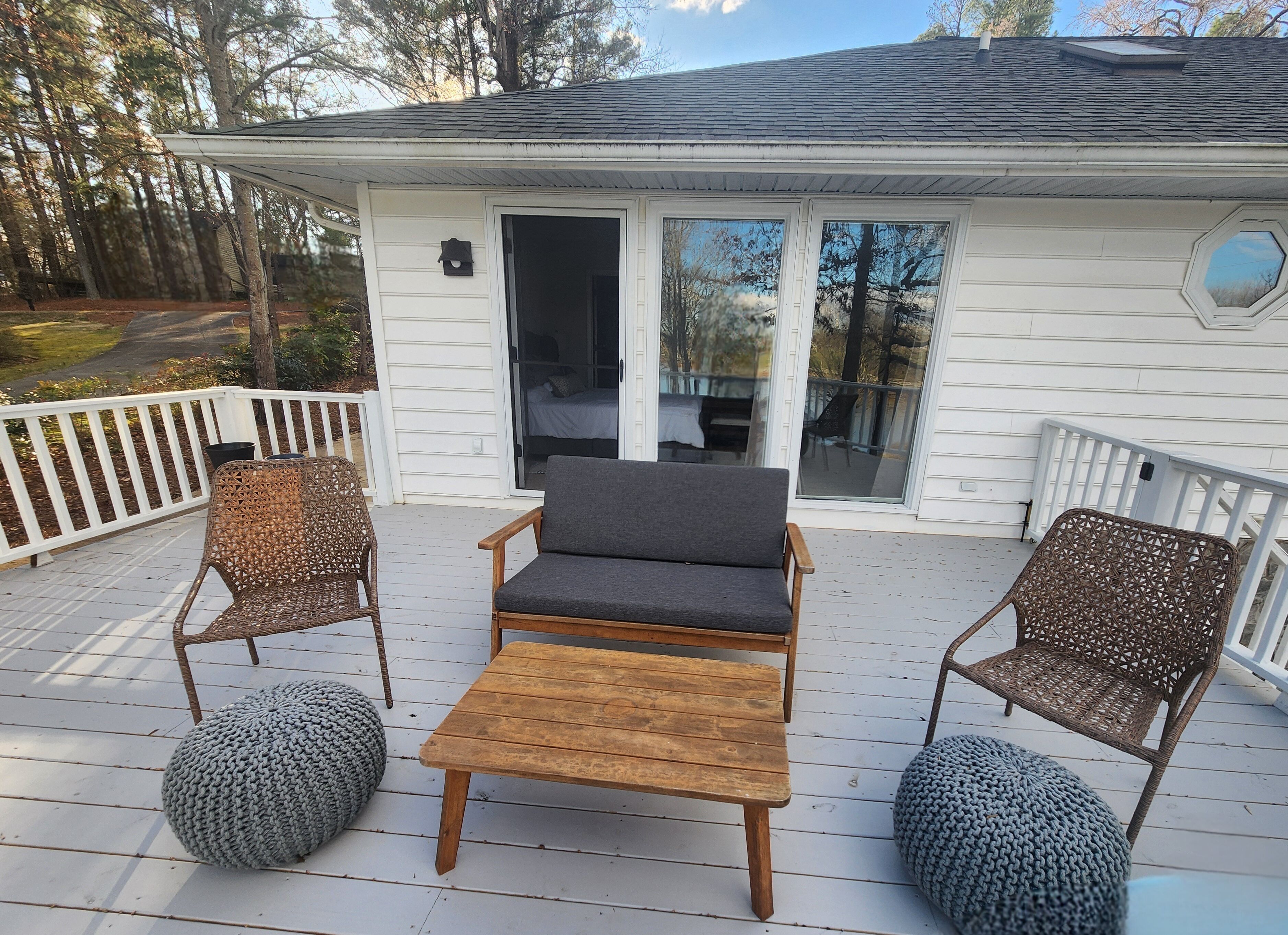 Hyco Lake, family friendly, dock, fire pit, 1 level, close to VIR and Casino. Get ready to relax in this 3-bedroom house at Hyco Lake. 8 miles to VIR. 21 miles to Casino in Danville. Recently updated. Walk in and instantly view the lake from the walls of windows. This fantastic property offers a calming atmosphere that will make you feel right at home. The master bedroom has king size bed with a new large walk-out deck and smart TV. The master deck offers seating with access to the landing and a large patio with fire pit. The 2nd and 3rd bedrooms both offer comfy queen beds and Smart TV's. Spectrum highspeed internet-a luxury on the lake! All bedrooms have black out curtains for a good night's sleep. The house has 2 full baths and 1 half bathroom, complete with amenities like a towel warmer, hair dryers, & complimentary shampoo, conditioner and body wash. The living room has plenty of seating for 8. The living room also offers a large 60-inch smart TV, DVD player, DVD's and books. Enjoy the beautiful view of the lake from this room.The kitchen is fully stocked with all the essentials. A Keurig coffee maker, complimentary coffee bar, coffee bean grinder, mixer, crock pot, blender, waffle maker, and much more are available for your use. Full size appliances plus a beverage refrigerator. Dishwasher with complimentary detergent during your stay. Large dining area for 8 at the table and 4 at the breakfast bar plus a highchair. The large pantry offers plenty of storage for your kitchen food items during your stay. Stone Ridge's laundry room offers an LG washer & dryer set with complimentary laundry detergent, an ironing board and iron. The sunroom is a perfect place for a cup of coffee, watch TV, read a book or take a nap. The sunroom opens onto the large grilling & dining deck. This room features a desk and a wireless printer for remote work.The large grilling & dining deck has a dining table for 6, a grill with complimentary LP tank, and extra seating. This deck has access to the landing and a large patio. The landing has more seating to enjoy the lake views. From the landing you will find the new patio with lots of seating and a fire pit. Enjoy the complimentary starter firewood to get you going during your stay. From the patio you will find a gently sloped walk down to the water. There are low rise steps to the water. There is a view landing at the water with seating. The spacious dock offers plenty of seating. The dock has 2 sets of steps going directly into the water, the newest set has anti-slip water treads. At times, depending on the water level, there is a small beach area off 1 side of the dock, perfect for the kids to play. There is a large porch swing just over the water to relax at Stone Ridge.We offer assorted sizes of life jackets for your use, if you want to ensure your best fit and size, please bring your own. We have plenty of space to tie your boat up. If you are interested in renting a boat, we can provide you with a list of local boat rental companies. We are at the end of the cove and it's great for enjoying the water, 2-minute boat ride to the public boat launch and 3-minute boat ride to the marina.The neighborhood is paved, and we have a large parking pad for 4 to 5 vehicles. We are a family friendly property. We have plenty of board games, outdoor games, toddler/youth toys, highchair, baby gate and a pack & play with sheets. The deck off the master porch offers a closing gate to keep the little ones from navigating the stairs. This is a 1 level house, perfect for a multi-generational family. There are just 3 steps to the inside of the house. The 2 large balcony decks are level to the house. All linens are provided, with extra pillows, blankets and sheet sets. All linens are washed in hot water with detergent and sanitizer. All cleaning practices are per Covid standards. We have an air purifier in the main living room. SAFETY FEATURES:Fire extinguishers, smoke and carbon monoxide detectors, basic first aid kit and deadbolt locks. Outdoor security cameras.THINGS TO KNOW:*A maximum of 8 guests at the property at all times. *No Parties or events at this property. *We have security cameras on the outside of the property. We do not monitor these regularly, they are for safety and security of the house when we are not there. These do not face towards the inside of the property. *The internet operates all of our smart devices for the home. If we notice the smart devices are offline, and there is no outage reported in the area, we may contact you to ask if the internet has been unplugged. Do not unplug the internet unless it is being reset, it runs our smart devices in the home.*Also, at the lake, the power and internet can go out from time to time. Simply unplug and replug the internet box to reset it. This is out of our control, there are no refunds for these types of events.*We do not allow the boat lifts to be used by guests. There is a $350.00 fee for any damage to the boat lifts. *The garages are not for guests to use unless otherwise specified.*The master closet, boat house and storage under the deck are not for guest use. *No Smoking at this property. There is a $2500.00 cleaning fee if smoke is detected in the house.*There are door ajar sensors on each outside door, this is for the Smart AC unit. *This is your vacation, please feel free to adjust the inside temperature to your liking. please, however, do not turn the AC down past 68. This may freeze the unit. Any damage will be charged to you.*No wet bathing suits on the furniture.*Please clean all your items from the fridge and freezer upon departure. *Trash bin is outside. Please sack your trash and put it in bin. *Trash Pick Up is on Tuesday, the trash bin must be placed at the top of the driveway by Monday night for pick up. *The yard maintenance crew comes once a week. You may see them during your stay. They do not start before 8am. They usually finish service in 45 minutes. *If the house and property is left exc