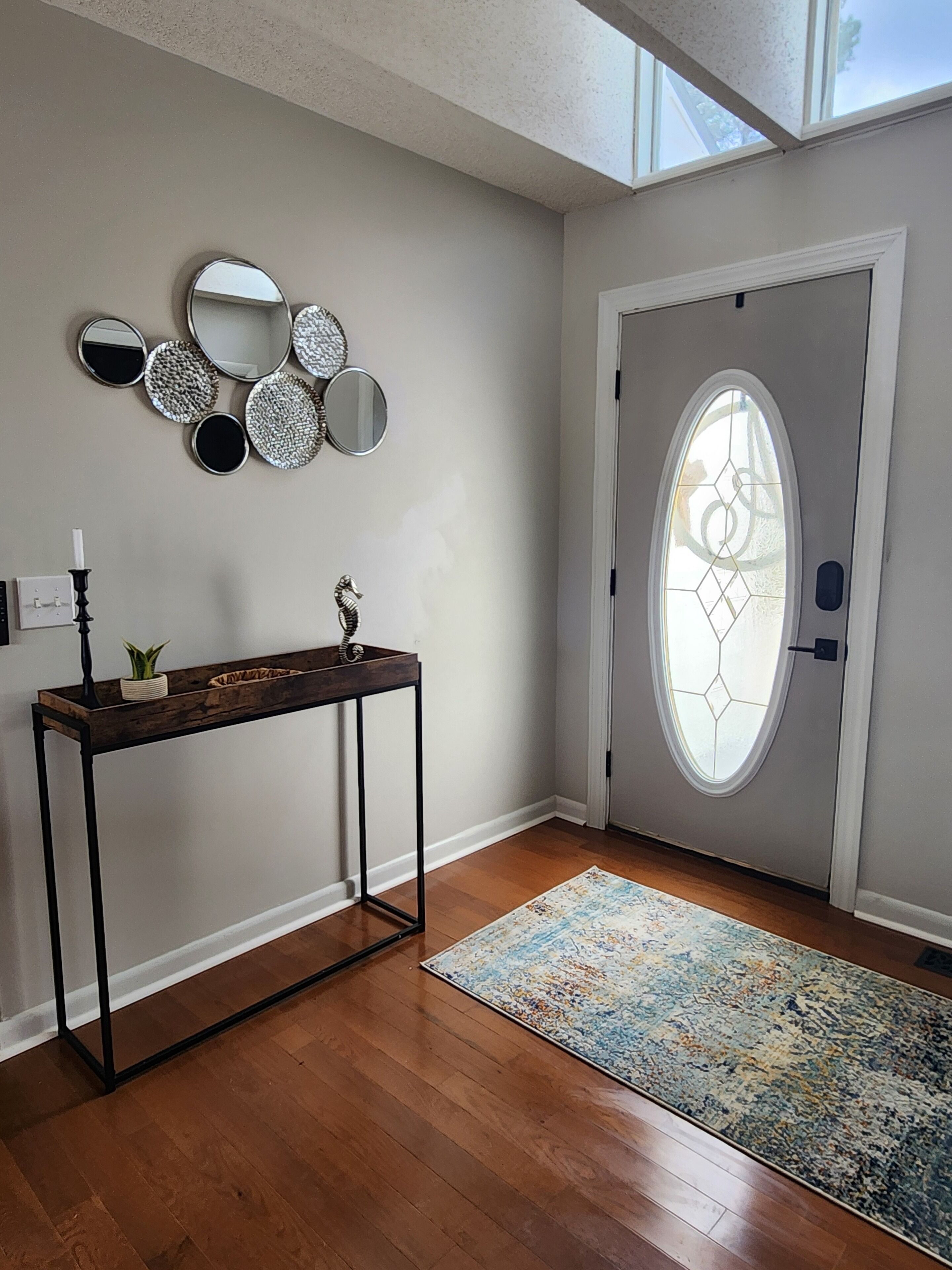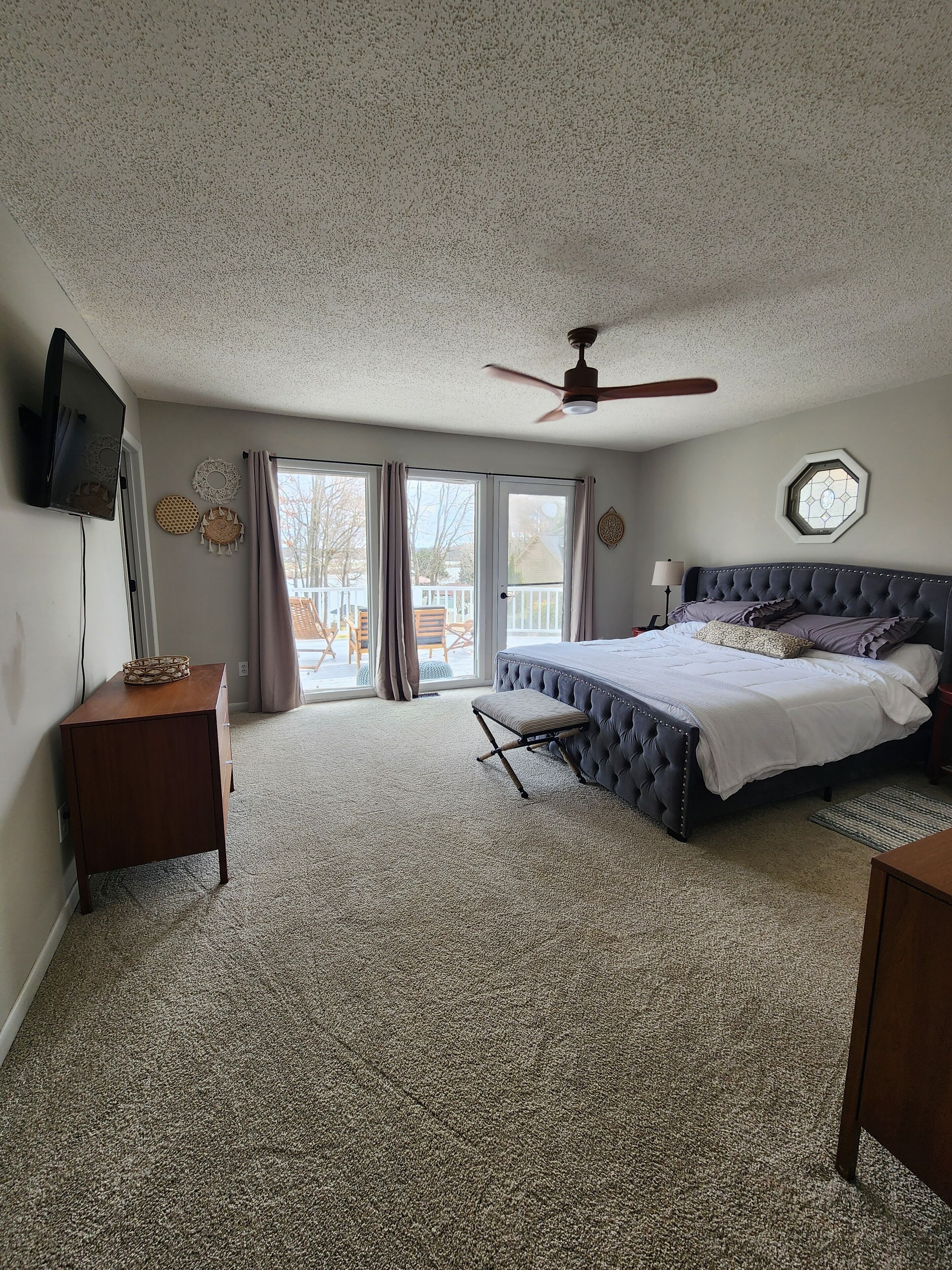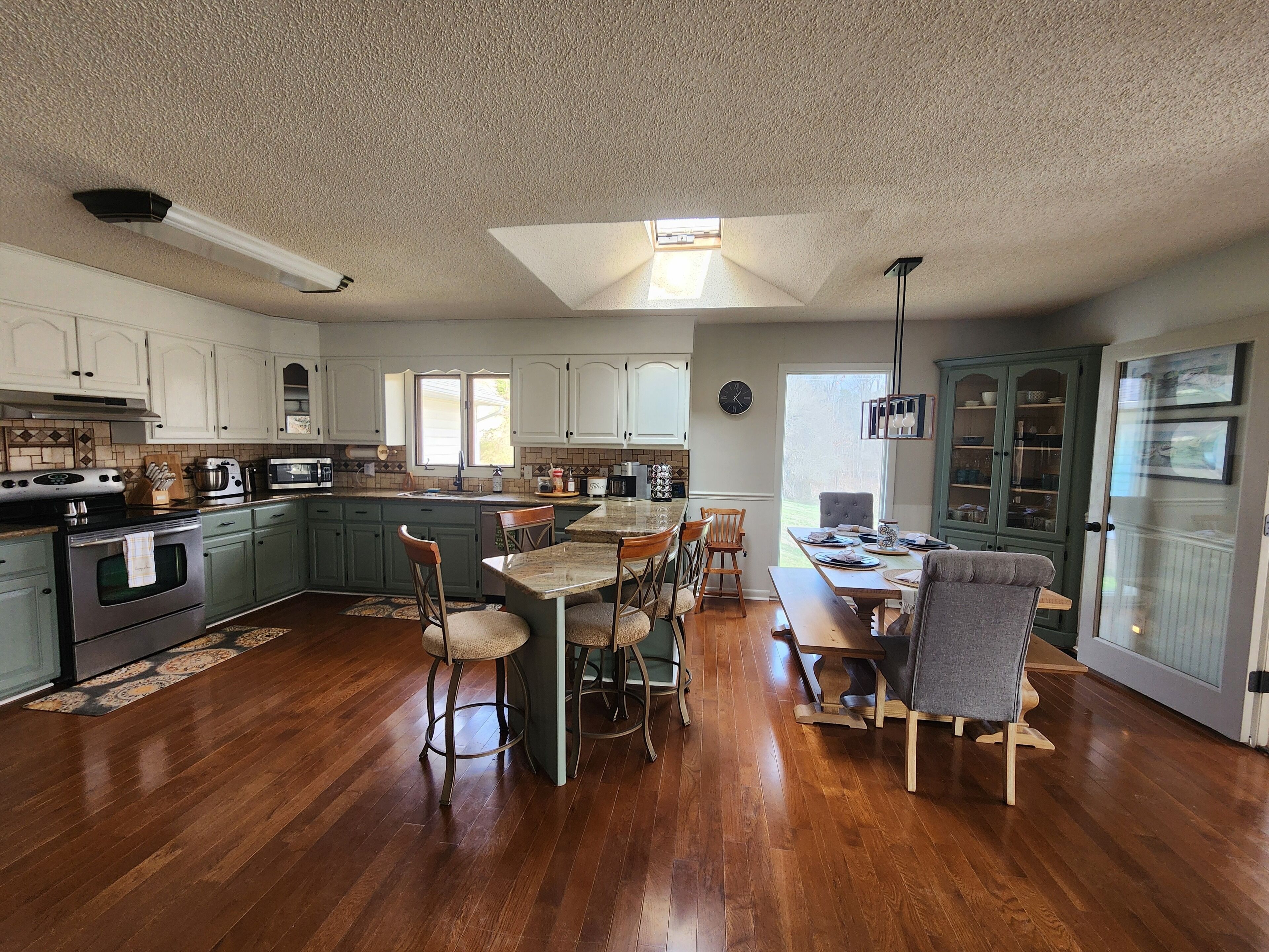 Hyco Lake, family friendly, dock, fire pit, 1 level, close to VIR and Casino. Get ready to relax in this 3-bedroom house at Hyco Lake. 8 miles to VIR. 21 miles to Casino in Danville. Recently updated. Walk in and instantly view the lake from the walls of windows. This fantastic property offers a calming atmosphere that will make you feel right at home. The master bedroom has king size bed with a new large walk-out deck and smart TV. The master deck offers seating with access to the landing and a large patio with fire pit. The 2nd and 3rd bedrooms both offer comfy queen beds and Smart TV's. Spectrum highspeed internet-a luxury on the lake! All bedrooms have black out curtains for a good night's sleep. The house has 2 full baths and 1 half bathroom, complete with amenities like a towel warmer, hair dryers, & complimentary shampoo, conditioner and body wash. The living room has plenty of seating for 8. The living room also offers a large 60-inch smart TV, DVD player, DVD's and books. Enjoy the beautiful view of the lake from this room.The kitchen is fully stocked with all the essentials. A Keurig coffee maker, complimentary coffee bar, coffee bean grinder, mixer, crock pot, blender, waffle maker, and much more are available for your use. Full size appliances plus a beverage refrigerator. Dishwasher with complimentary detergent during your stay. Large dining area for 8 at the table and 4 at the breakfast bar plus a highchair. The large pantry offers plenty of storage for your kitchen food items during your stay. Stone Ridge's laundry room offers an LG washer & dryer set with complimentary laundry detergent, an ironing board and iron. The sunroom is a perfect place for a cup of coffee, watch TV, read a book or take a nap. The sunroom opens onto the large grilling & dining deck. This room features a desk and a wireless printer for remote work.The large grilling & dining deck has a dining table for 6, a grill with complimentary LP tank, and extra seating. This deck has access to the landing and a large patio. The landing has more seating to enjoy the lake views. From the landing you will find the new patio with lots of seating and a fire pit. Enjoy the complimentary starter firewood to get you going during your stay. From the patio you will find a gently sloped walk down to the water. There are low rise steps to the water. There is a view landing at the water with seating. The spacious dock offers plenty of seating. The dock has 2 sets of steps going directly into the water, the newest set has anti-slip water treads. At times, depending on the water level, there is a small beach area off 1 side of the dock, perfect for the kids to play. There is a large porch swing just over the water to relax at Stone Ridge.We offer assorted sizes of life jackets for your use, if you want to ensure your best fit and size, please bring your own. We have plenty of space to tie your boat up. If you are interested in renting a boat, we can provide you with a list of local boat rental companies. We are at the end of the cove and it's great for enjoying the water, 2-minute boat ride to the public boat launch and 3-minute boat ride to the marina.The neighborhood is paved, and we have a large parking pad for 4 to 5 vehicles. We are a family friendly property. We have plenty of board games, outdoor games, toddler/youth toys, highchair, baby gate and a pack & play with sheets. The deck off the master porch offers a closing gate to keep the little ones from navigating the stairs. This is a 1 level house, perfect for a multi-generational family. There are just 3 steps to the inside of the house. The 2 large balcony decks are level to the house. All linens are provided, with extra pillows, blankets and sheet sets. All linens are washed in hot water with detergent and sanitizer. All cleaning practices are per Covid standards. We have an air purifier in the main living room. SAFETY FEATURES:Fire extinguishers, smoke and carbon monoxide detectors, basic first aid kit and deadbolt locks. Outdoor security cameras.THINGS TO KNOW:*A maximum of 8 guests at the property at all times. *No Parties or events at this property. *We have security cameras on the outside of the property. We do not monitor these regularly, they are for safety and security of the house when we are not there. These do not face towards the inside of the property. *The internet operates all of our smart devices for the home. If we notice the smart devices are offline, and there is no outage reported in the area, we may contact you to ask if the internet has been unplugged. Do not unplug the internet unless it is being reset, it runs our smart devices in the home.*Also, at the lake, the power and internet can go out from time to time. Simply unplug and replug the internet box to reset it. This is out of our control, there are no refunds for these types of events.*We do not allow the boat lifts to be used by guests. There is a $350.00 fee for any damage to the boat lifts. *The garages are not for guests to use unless otherwise specified.*The master closet, boat house and storage under the deck are not for guest use. *No Smoking at this property. There is a $2500.00 cleaning fee if smoke is detected in the house.*There are door ajar sensors on each outside door, this is for the Smart AC unit. *This is your vacation, please feel free to adjust the inside temperature to your liking. please, however, do not turn the AC down past 68. This may freeze the unit. Any damage will be charged to you.*No wet bathing suits on the furniture.*Please clean all your items from the fridge and freezer upon departure. *Trash bin is outside. Please sack your trash and put it in bin. *Trash Pick Up is on Tuesday, the trash bin must be placed at the top of the driveway by Monday night for pick up. *The yard maintenance crew comes once a week. You may see them during your stay. They do not start before 8am. They usually finish service in 45 minutes. *If the house and property is left exc