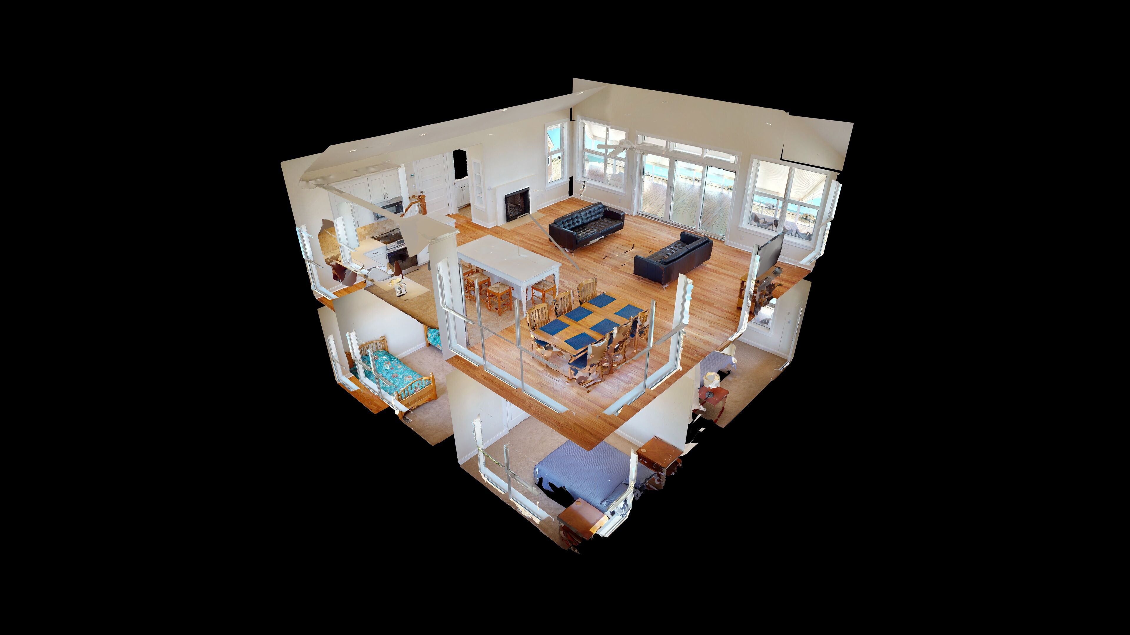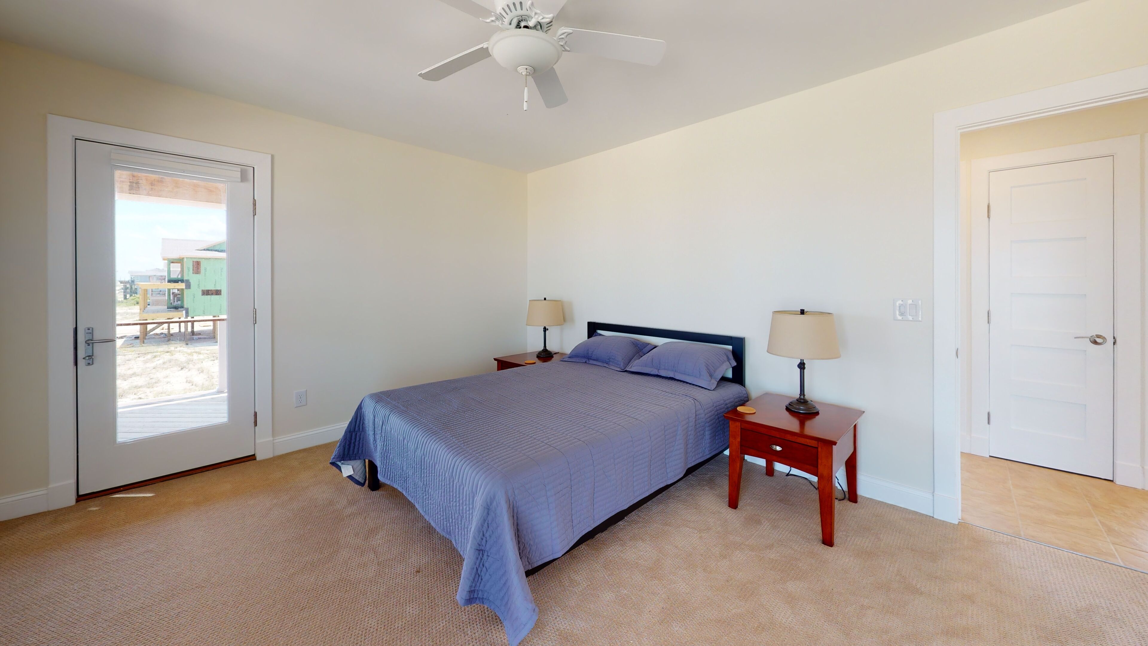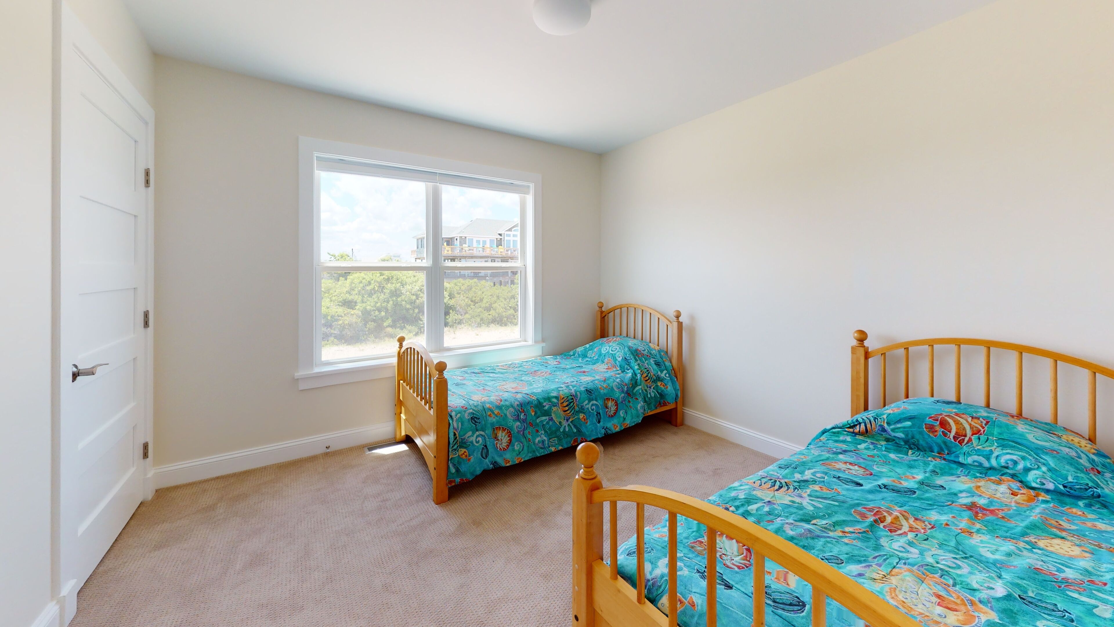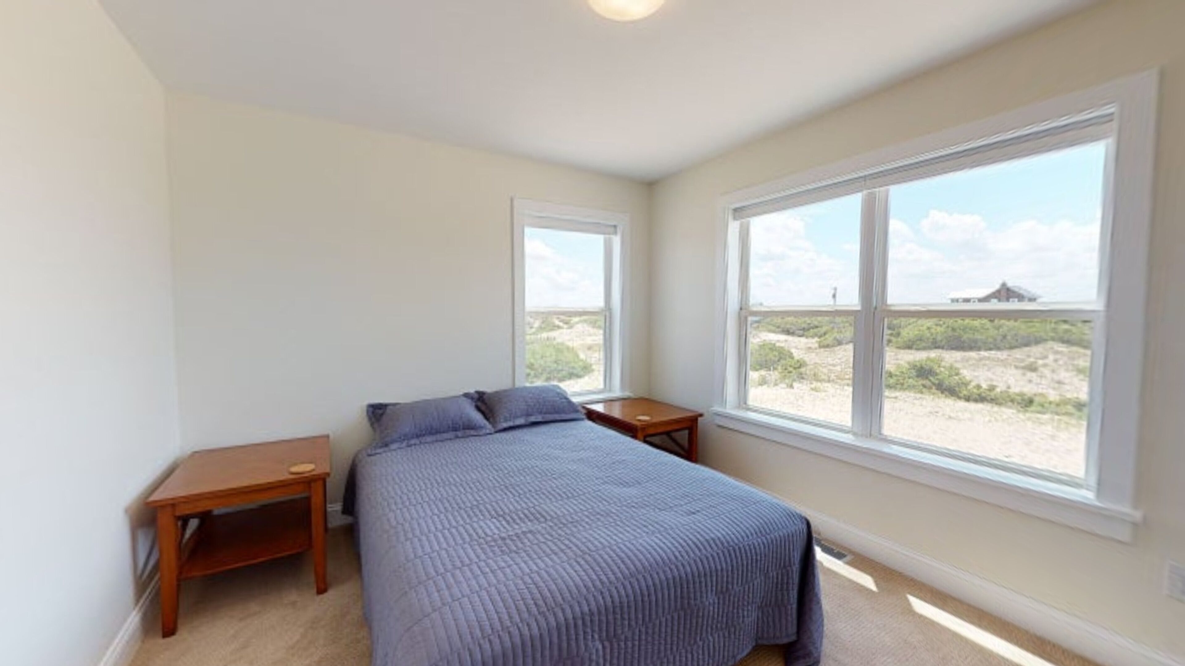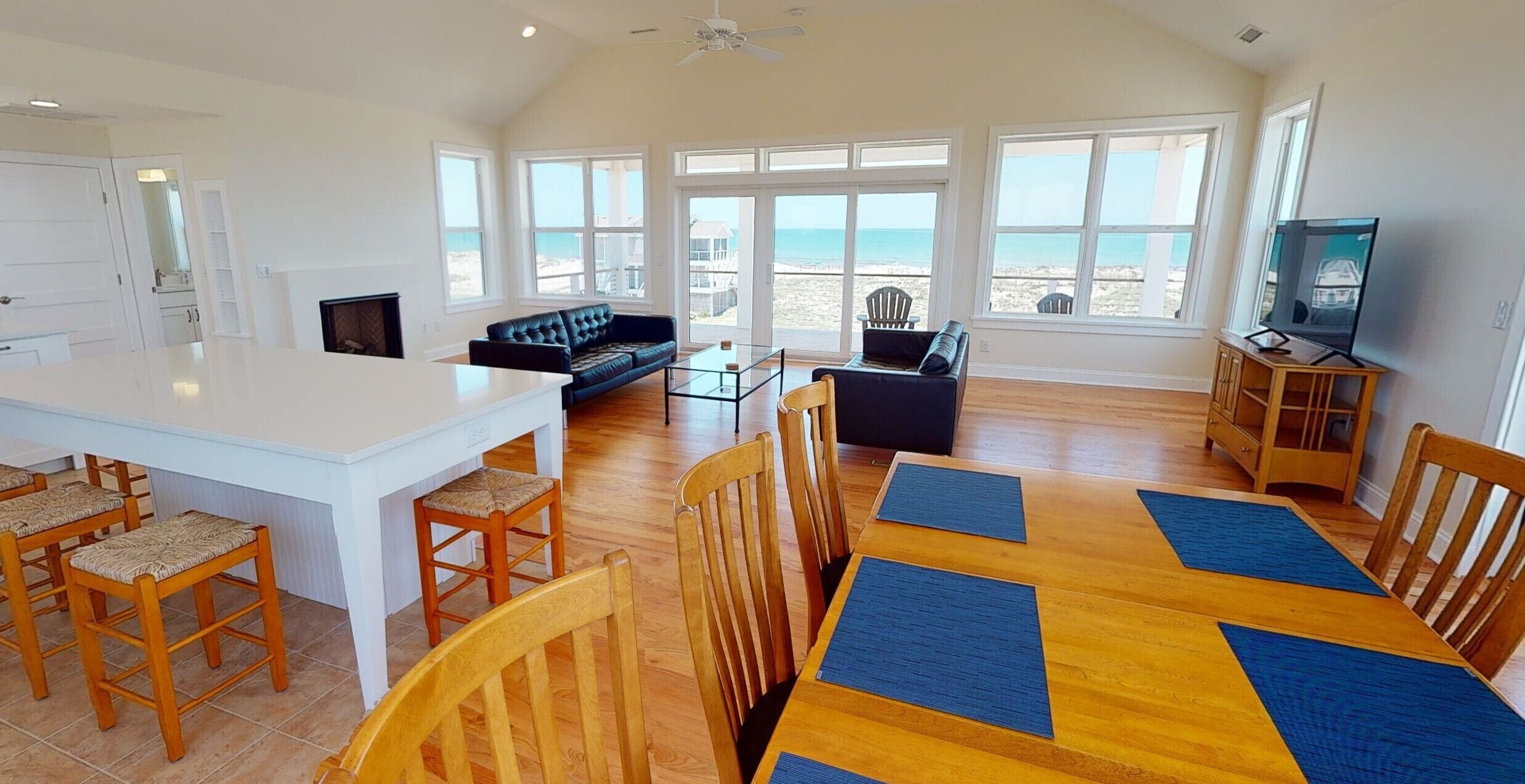 New home by premier builder. Fantastic Views! 4x4 Required Welcome to Harper House, a lovely 3BR home with fantastic ocean views on the 4x4 beach. The wide beach and close beach access make this North Swan home an easy choice! Located on the second row with no oceanfront home directly in front, Harper House views and sounds of the surf come right into the living room! The heavenly breezes will whoosh all of your cares away and relax your soul. The owners of this home love the minimalist approach and it shows in the outfitting of every room. The Ocean is the main focal point from both levels. There IS a tv for the diehard.... but there are no other screens to divert your attention from the focus of the Atlantic Ocean and your family. Level one has a keyless entry which makes life so much easier! No keys to find or lose! On level two there is a queen master bedroom with a gorgeous master bath and huge private deck. The other two bedrooms on level two share a hallway bath and are a queen in one, and two twins in the other. Linens and towels are provided. On level three you will find a wide open kitchen with very comfortable and inviting island seating, leather sofas, the lone smart TV connected to satellite and a huge dining room table. Expansive wrap around decks invite you to partake in a sun drenched south exposure or the more relaxed ocean side covered porch. The teak outside dining table will invite you to picnic while listening to the pounding surf. The fact that there are no homes between you and the ocean makes Harper House a delightful way to reconnect with nature. The ocean views will delight you with dolphins, pelicans, shore birds and surf, while the occasional fox or wild horse will top off the back to basics feeling that Harper House provides. The ocean is calling.. come experience it in full at Harper House.Saturday Check in - 4 Wheel Drive Required - Linens and Towels provided - located approximately 7 miles up the 4x4 beach - NO pets. Parking passes for parking two cars on the beach are included with this home. Parking at the house is free and unlimited. There is No Pool or Hot Tub at this home.Save money by booking directly on the Carova Cottages website: