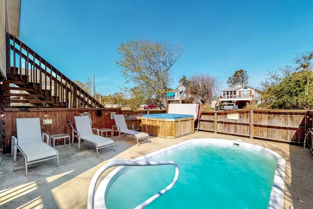 Renovated + Pool + 5min Walk to Beach in Nags Head We recently purchased our Historic Nags Head Style Cottage here on the Outer Banks! This neighborhood is one of our favorite locations on the entire barrier island. RENOVATED with new kitchen, updated bathroom vanities and all new decor! We have spent the last few months preparing for YOU, our guests, to enjoy this cottage over these summer months. Packed with quality features from flooring to memory foam mattresses cleaned and encased for extra peace of mind. We have a high-level of cleanliness expectations for our property that we know our guests appreciate. While this cottage is a new listing, we have owned and rented several properties across the barrier island since 2014. We are professional hosts that live here locally and take great care of our guests and our property!Availability Note: We are changed to a 7-night minimum June through August with limited smaller openings. The rest of the year we range 3-4 night minimum. Pool is OPEN April 25 - October 27.Hot Tub is OPEN year-round, > Both are professionally maintained twice a week. >> Learn more about our property including Rules, FAQ's and our local recommendations on our website. https://vacationontheobx.com/>>> Take a 3D Virtual Tour of our cottage: http://bit.ly/3FwNl21You will enjoy our neighborhood! Our beach access is just a .2 mi or 5 minute walk or walk to Dowdy Park, which hosts Farmers Markets and great activities throughout the summer. (.5 mi or 9 minute walk or shorter bike ride) Drive to Bonnett Street Beach Access, which has 68 available parking spots, stabilizing beach mat for wheelchairs, wooden walkway, lifeguard and bathhouse. Our cottage also has an outdoor shower for getting clean after a sandy beach day. Nags Head Pier is a .4 mi or 8 minute walk from the house. They have a restaurant and tiki bar with unbeatable ocean views. Walk or bike to several restaurants like Lucky 12, Tortugas Lie, Surfin Spoon (Frozen Yogurt), The Spot (Waffles, Ice Cream and Acai Bowls). Great restaurants and shopping are walkable in the area! RULES + OWNERS NOTES * Parking is limited to five vehicles, which is tight. No yard or street parking possible at our location. Our septic system is in our side yard - please do not drive or park in the yard. This will damage our fragile system.* We live locally just a few minutes away from our rental property. This property is not suitable for parties, events or illegal activities. We are excited to share our beach house, which we reserve in the off-season for our family members. Our neighborhood consists of full-time residents (like us), second home owners and a small number of rental properties. WE INSIST THAT ALL RENTERS respect our neighbors at the property and the noise ordinance in our town to reduce outdoor noise after 10:00 pm at night.* Pets! We are big dog people. However, dogs should not be left barking in the house all-day causing a disturbance to neighbors. Please plan for your pet on these hot summer days! Most importantly, all pets should be flea and tick free prior to arrival and on flea and tick preventative. If the property requires pest treatment, the guest will be penalized. There is no fence in the yard. Please be respectful of the neighbors when taking dogs in the yard. The neighbors do not want dogs in their yard and monitor their property. They contact us directly with issues. * No dogs are allowed in the pool. Even a hypoallergenic, poodle-doodle dog that has dander is equivalent to 20 people using the pool and our pump system according to our pool company. Our pool vendor does inform us when animals have been in the pool, which will result in additional costs to you and the guests. * Lastly, Pool + Hot Tub + Water Safety is our top priority. Never prob open the pool gate. PLEASE inform us of any safety issues or concerns immediately so that we can have them addressed. We have a vendor that maintains the pool and hot tub on the weekly basis to ensure cleanliness for all guests. >>> Visit our private website to see water safety tips. https://vacationontheobx.com/
