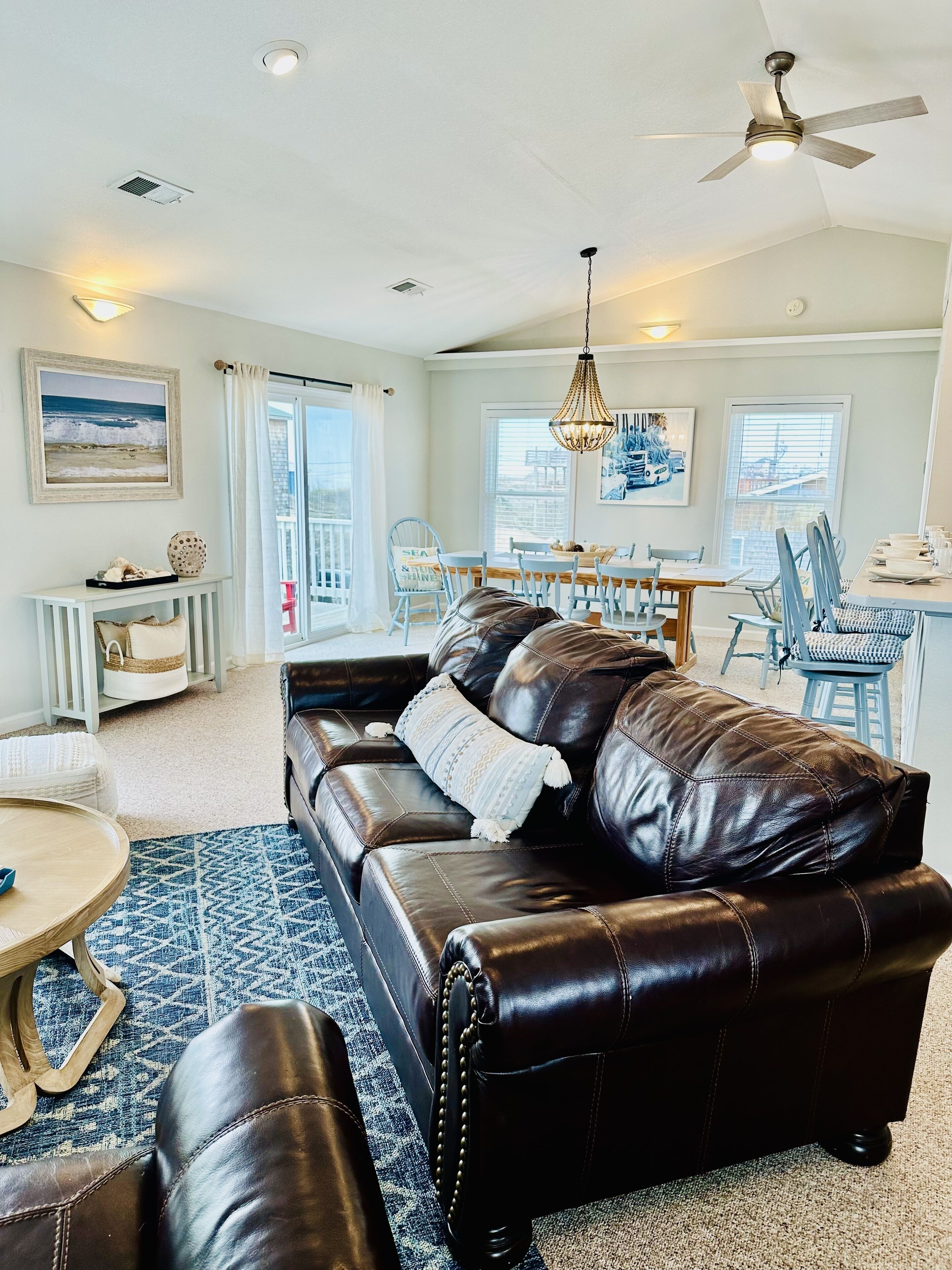 Family friendly Sea Heaven! Semi-oceanfront with hot tub, steps to the beach! 4 Night minimum September- December and April - May. SEA HEAVEN is semi-oceanfront, but you will feel oceanfront as we sit one lot back with only a small fisherman's cottage in front. Beautiful views from both levels and steps to the beach! Our family-friendly beach cottage is located on beautiful Hatteras Island in the Outer Banks of North Carolina. Sip your morning coffee while watching the sunrise from the spacious upper deck or take in the sights & sounds from the lower deck while relaxing in the bubbly hot tub or swinging hammock chairs. Rodanthe is a quiet village on Hatteras Island that will transport you to simpler times.The area attracts nature lovers, fishermen, water sports enthusiasts, star-gazers, sun-bathers, history buffs and anyone seeking to just feel the breeze and be at ease. We welcome you to our little slice of Heaven by the sea! The perfect home base as you explore all Cape Hatteras National Seashore has to offer. Sea Heaven is a smoke-free, pet-free home. 5 bedrooms, 3.5 bath, Sleeps 12.The Extras! Welcome Basket - Guests are treated to a welcome basket filled with an assortment of snacks. We also provide assorted coffee and tea for our coffee bar and starter supplies that include dishwashing liquid & dishwasher pods, kitchen sponge and towel set, paper towel roll & laundry detergent pods. in addition, each bathroom will have hand soap, extra toilet paper, trial size shampoo & conditioner. Beach Gear - Our Guests will have access to 6 Tommy Bahama beach chairs, 2 soft top surf boards, boogie boards, corn hole, sand toys & 3 beach cruisers for exploring the island.Baby Equipment -Sea Heaven has 1 pack n' play, 1 high chair and 2 booster seats. We recommend reserving additional equipment with Ocean Atlantic Rentals in Avon, NC.Charcoal Grill with grilling accessories.Free WIFI.This home features:Hot Tub - Relax in the hot tub or let the sea breeze gently rock you to sleep as you lounge in one of the swinging hammock chairs located on the covered lower deck. Outdoor cedar shower with hot & cold water and rinsing station with hose. 5 Bedrooms - All linens provided. Beds made upon arrival. All 5 bedrooms and laundry area with full size washer & dryer located on the first level. Bedroom 1: Queen Master Suite with private bath and lower deck access to hot tub.Bedroom 2: Queen Master Suite with private bathBedroom 3: Queen bedroom with lower deck access to hot tub. Bedroom 4: Twin daybed with trundle (Sleeps 2) Bedroom 5: Bunk room with 2 bunk beds (Sleeps 4)42" smart TV's with ROKU in every bedroom with the exception of the bunk room.3.5 Baths - 2 full private baths in Queen master suites and 1 full bath centrally located in hallway on lower level, 1 half bath on upper level.Spacious open living area on second level with beautiful ocean views while washing dishes in the kitchen, eating at the dining table, watching tv from the couch or relaxing on the wide sundeck!Fully stocked kitchen for family entertaining! Brand new small kitchen appliances , refrigerator with ice-maker, 2 large stockpots for seafood boils, crab mallets and picks, roasting pans, crockpot, electric griddle, electric can opener, 4 slice Cuisinart toaster, Cuisinart blender, Cuisinart cutlery, pizza stone, hand mixer, rolling pin, plenty of serving bowls & platters, measuring spoons, measuring cups, cocktail glasses, wine glasses, kid-friendly plates and cups, glass storage containers, tupperware & more!Coffee bar with Keurig Coffee Maker and 14 cup Coffee Maker, assorted coffee and teas.Serve dinner at the dining table that can comfortably seat 8 or belly up to the breakfast bar that seats 4.Wide upper level sundeck! Enjoy dinner or cocktails under the stars on the wide sundeck where you will find a picnic table that seats 6, a bar height table for 2 and 2 Adirondack rockers just for relaxing or stargazing. Relax in the cozy living area with ocean views, a 60 inch Smart TV with ROKU, an XBOX 360, DVD player and plenty of board games and puzzles for the whole family to enjoy!