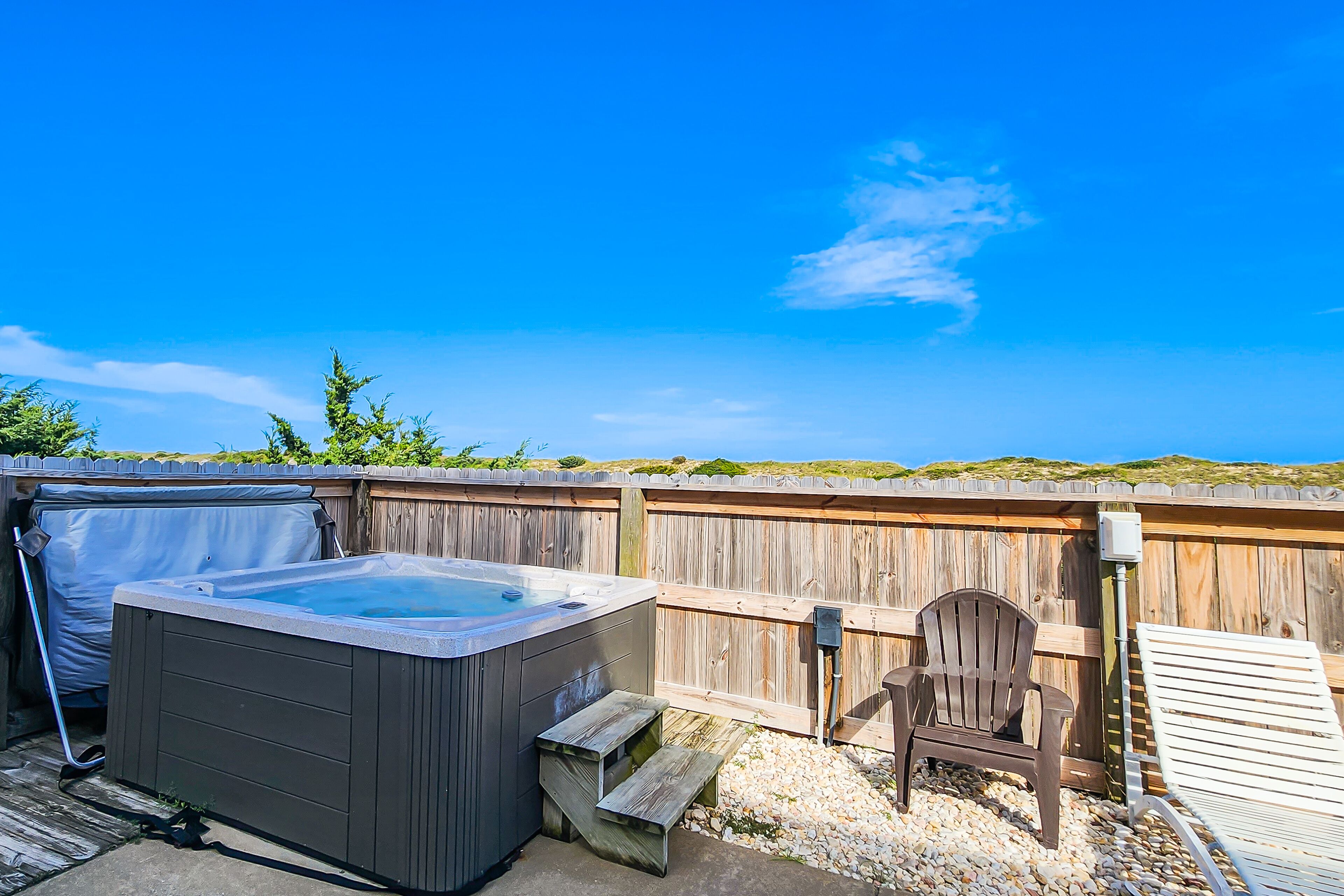 Oceanfront dog-friendly home with private hot tub, pool, beach access, & decks Castle on the Beach 005Our calendar is updated in real-time & our nightly rates are accurately displayed. Simply enter your desired dates and click 'Book Now!'Escape to Castle on the Beach, an elite home with all the amenities you need for your next big break. Located right on the secluded, spacious beaches in Salvo, this home is only steps from the sand and sea, just a short walk over the dunes. You can soak away your cares in the private pool and the sparkling, six-person hot tub and cook out with your family and friends on the Weber grill. As you make your way through the home, you'll notice bright, beachy decor creating the perfect island setting. There are TVs in all of the bedrooms and two levels of outdoor decks where you can watch the sunrise over the Atlantic. Wake up to the sound of waves crashing and end your days with unforgettable views.The upper-level living room holds a lavish, leather sectional with enough seating for your whole crew. Preparing meals is a breeze in the custom kitchen equipped with all new stainless steel appliances, new granite countertops, and a large stainless steel sink. Luxury furnishings, coastal decor, and exquisite details await in this oceanfront gem only steps from the sandy shores of Hatteras Island. Things to KnowThe pool is open seasonally from April through mid-October. Dates are subject to change.This property is managed by Vacasa North Carolina, LLC.If you are bringing a dog on your trip, the pet fee is already included in your quote when selecting ‘Yes’ to pets. If you would like to add more dogs, please contact us. The pet fee is per stay and ranges between $150 and $200, depending on the bedroom count, and will apply for each additional dog.Parking notes: There is free parking available for 2 vehicles.Due to local laws or HOA requirements, guests must be at least 25 years of age to book. Guests under 25 must be accompanied by a parent or legal guardian for the duration of the reservation.