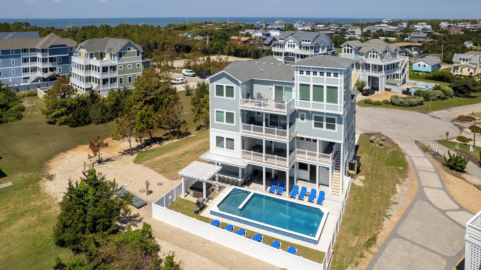 Summer Salt 10 Bedroom Home at Hattie Creef Landing Welcome to Summer Salt by KEES Vacations!**BRAND NEW CONSTRUCTION now available for the 2024 season**This amazing 10-bedroom, pet-friendly home features a private heated pool, hot tub, elevator, theater room, and arcade room. This semi-oceanfront vacation rental is sure to be the place for you to relax and unwind and enjoy an amazing Outer Banks...