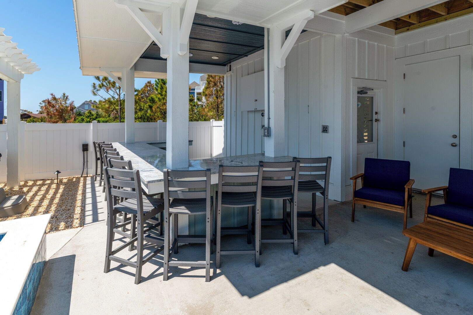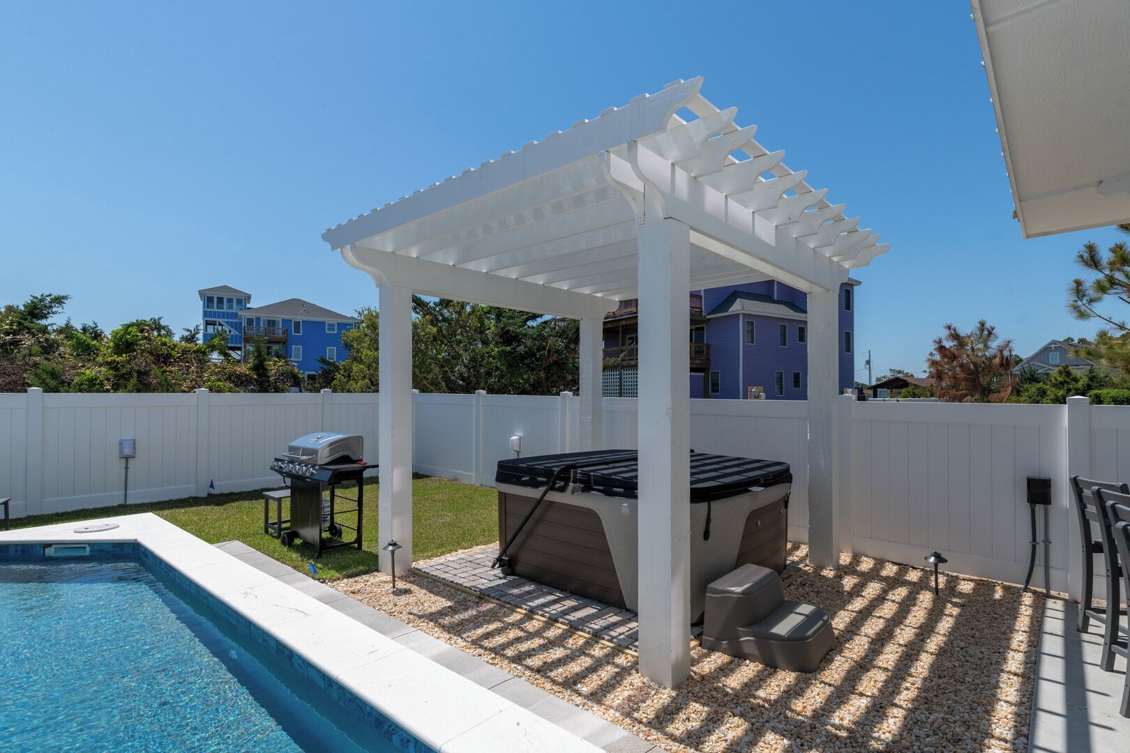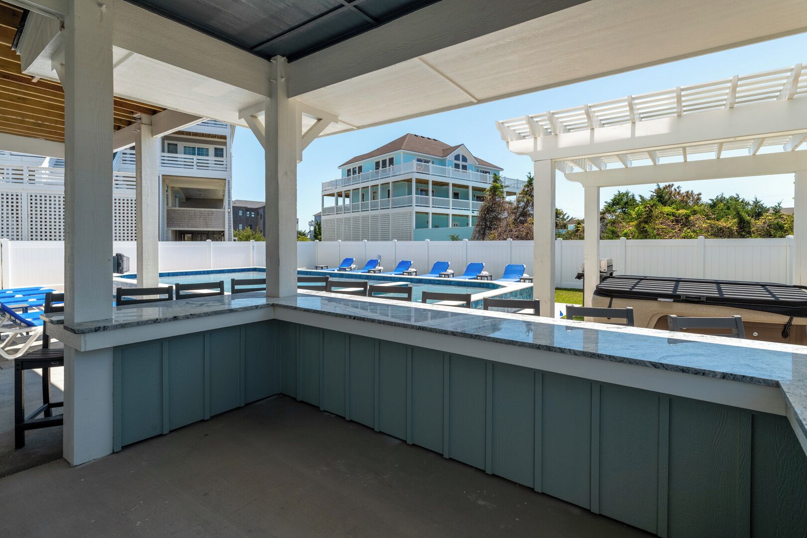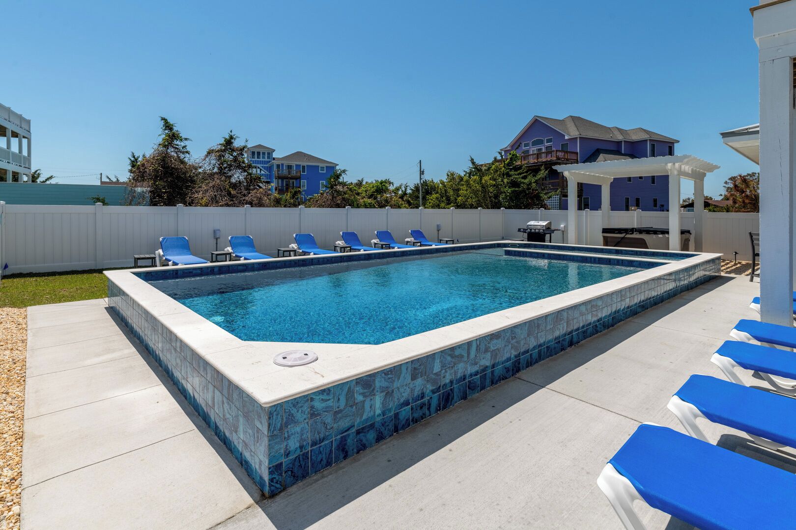 Summer Salt 10 Bedroom Home at Hattie Creef Landing Welcome to Summer Salt by KEES Vacations!**BRAND NEW CONSTRUCTION now available for the 2024 season**This amazing 10-bedroom, pet-friendly home features a private heated pool, hot tub, elevator, theater room, and arcade room. This semi-oceanfront vacation rental is sure to be the place for you to relax and unwind and enjoy an amazing Outer Banks vacation!Located within walking distance to the beach in the heart of the tri-villages on Hatteras Island, this Salvo rental is close to all things Outer Banks! Enjoy quick day trips to Ocracoke, Bodie Island, and Roanoke Island, visit multiple lighthouses during your stay, and explore the Hatteras Villages from the waters while vacationing here.On the first level, you will find 2 King En Suites and den with 1 Twin/Twin Bunk. This is also where you will spend hours of fun hanging out in the theater room watching a great movie after a sun-filled day at the beach or hanging out in the recreation room challenging your friends/family to various games. Walk outside to the private pool, hot tub, and tiki bar. Enjoy an outdoor shower and an elevator to the other levels as well. You might never want to leave your oasis!Head up to the second level to find more sleeping accommodations. How will the 6 beautifully decorated King En Suites be divided up amongst the group? Everyone has their own bathroom!Finally, the third level is where you will probably spend the most time besides the pool area. Up here is the spacious living area, the modern, large kitchen with barstool seating, and a dining room area for the whole group. There is a half bath up here for convenience. Step out onto the amazing decks for tranquil views. Do not miss an amazing Outer Banks sunrise or sunset. There are two more options for sleeping arrangements on this level: 2 more King En Suites. Contactless vacationing is easier than ever in this brand-new home! Offering the KEES FlexStay program, check-in or out any day of the week! No longer are you tied to a Saturday or Sunday arrival and departure date; with FlexStay, you choose your vacation dates.Summer Salt is pet-friendly, so there is no need to leave your pooch at home! For a small one-time fee of $135, you can bring up to two dogs to our pet-friendly property. No cats or other animals, dogs only.This property has 10 parking spots for guests.Want added comfort? Consider adding the Heated Pool option! A Heated Pool option can be added upon request for $50 per night of your reservation. This fee is added to your reservation at the time of the request, which must be a minimum of 72 hours before arrival. Pool heat must be added for the entirety of your stay.This pool is heated by a heat pump. An ambient air temperature of 60 degrees or higher is needed to heat the pool, meaning that if the temperature drops below 60 degrees the pump will not continue to heat. Max pool temperature is 80 degrees.****Private heated pools will open on April 1st and close on November 1st. Pools and hot tubs are cleaned weekly and no later than 6 p.m. on check-in day. Vendors are subject to enter the backyard to clean the pool and/or spa on scheduled cleaning days. No pets allowed in pools.Check-In begins at 4pm.Your keyless entry code will begin granting access at this time. Check-Out is 10am. First Level 2 King En Suites Den with Twin over Twin Bunk Recreation Room Theater Room Outdoor Private Hot Tub Tiki Bar Second Level 6 King En Suites Third Level 2 King En Suites Living Room Kitchen Dining Area Half Bath