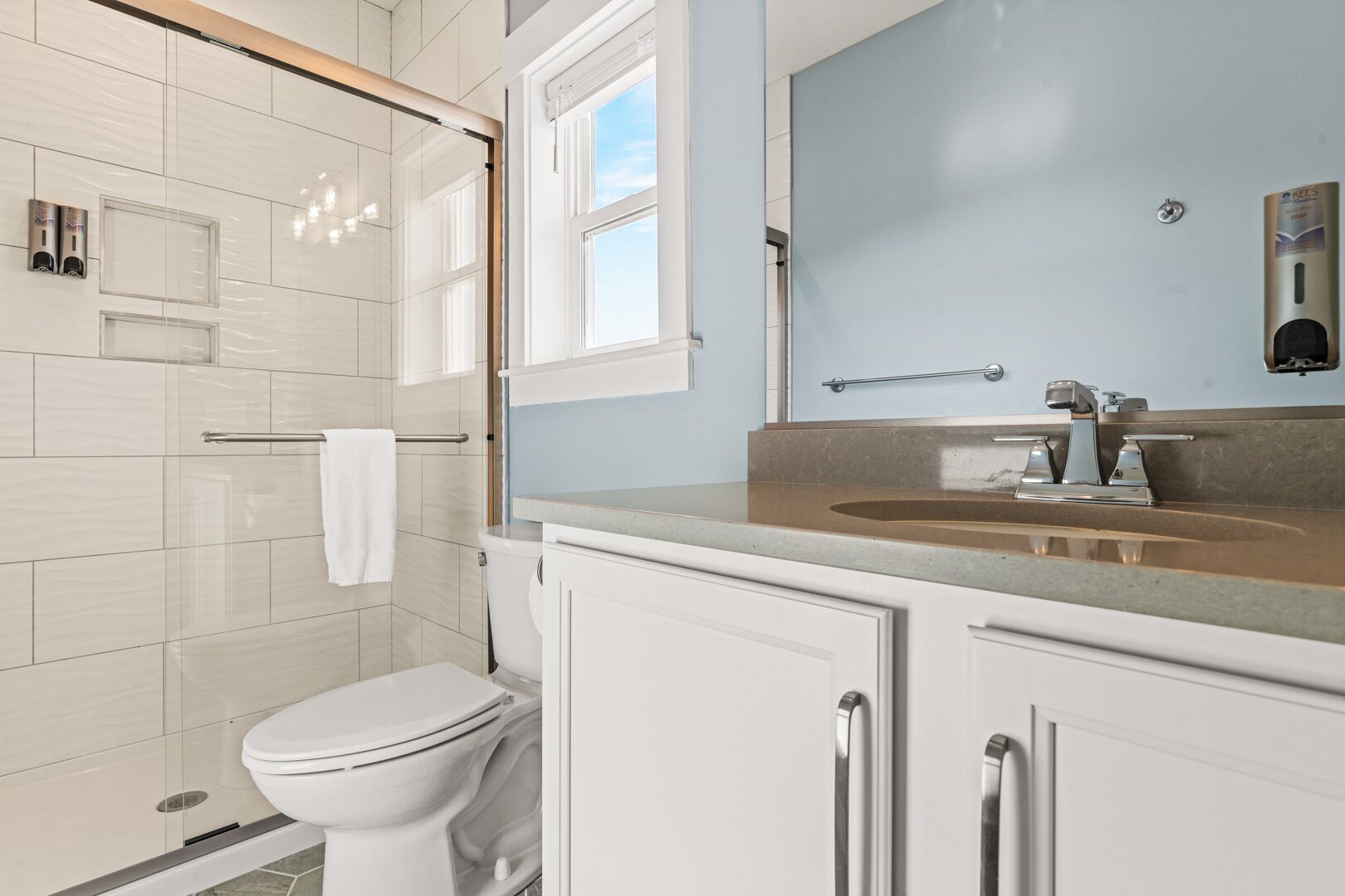 - beach 3 min drive